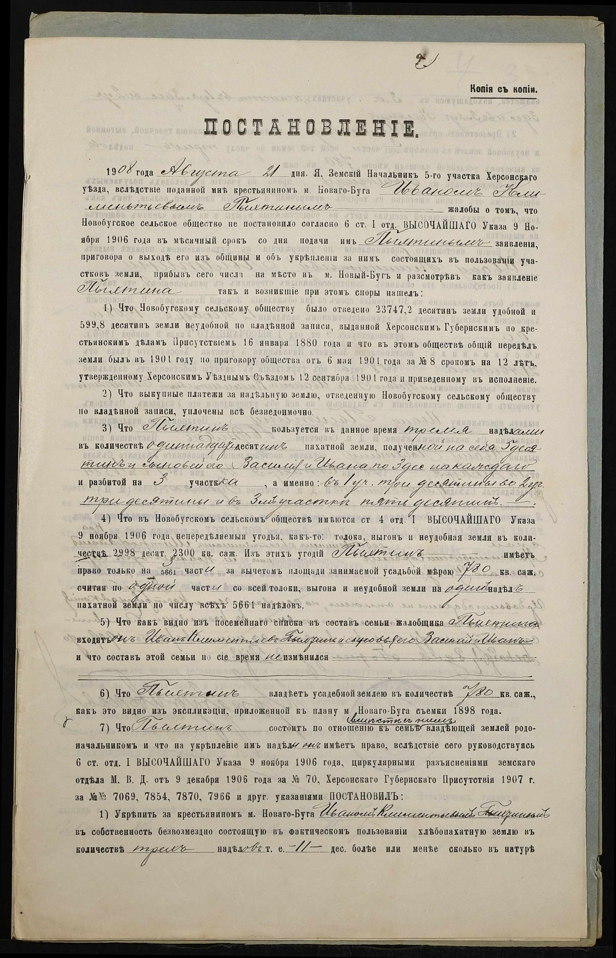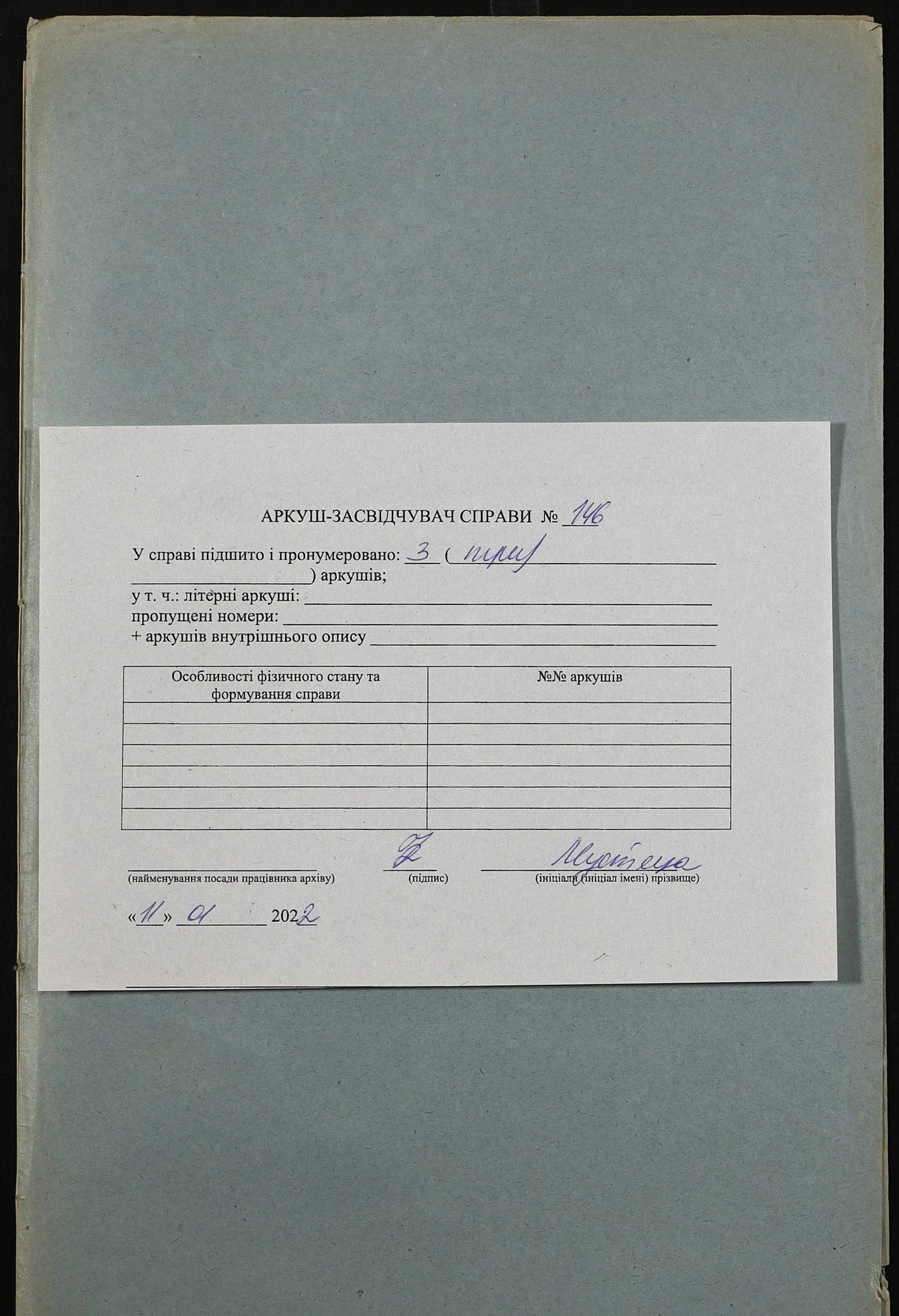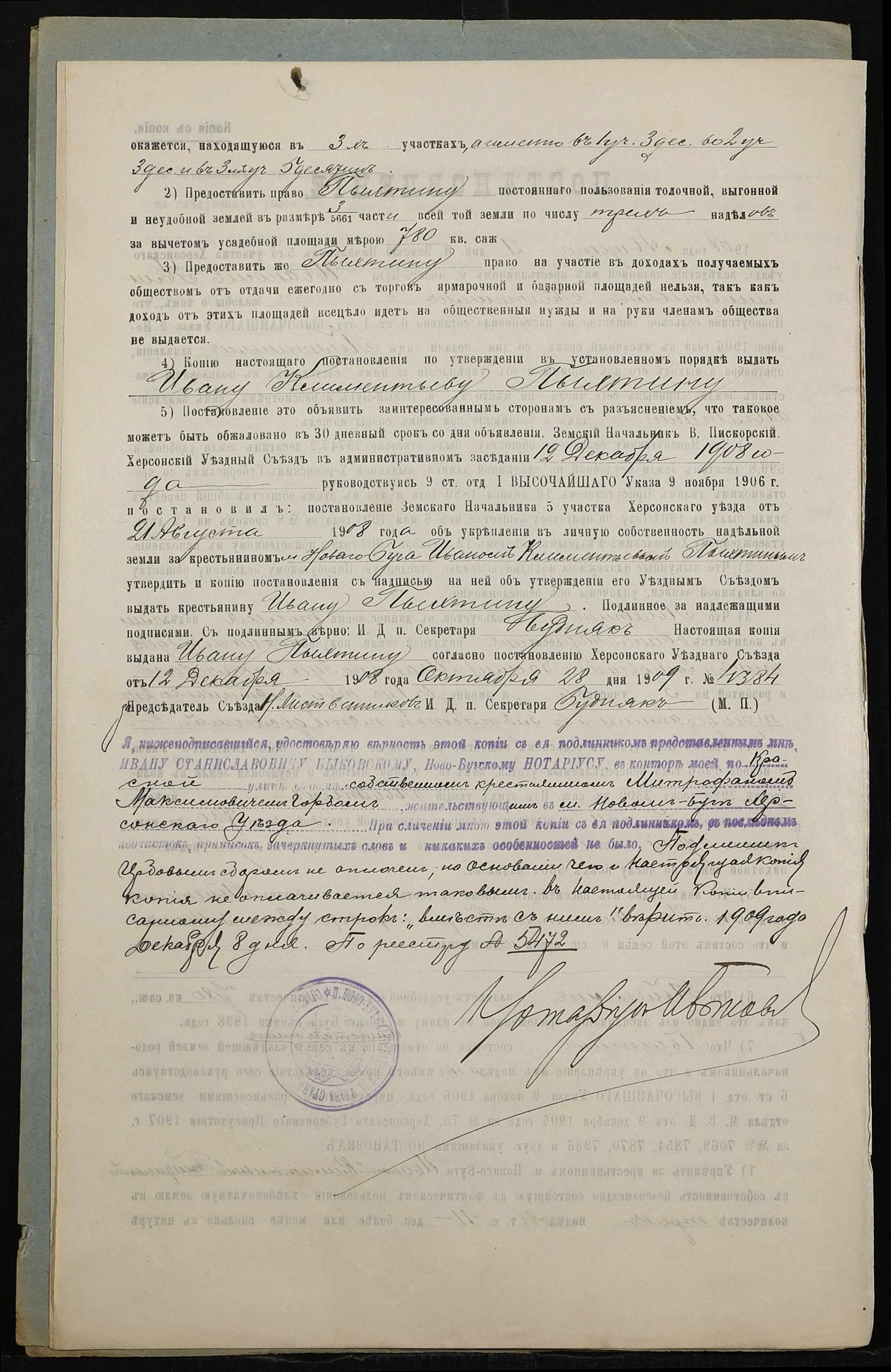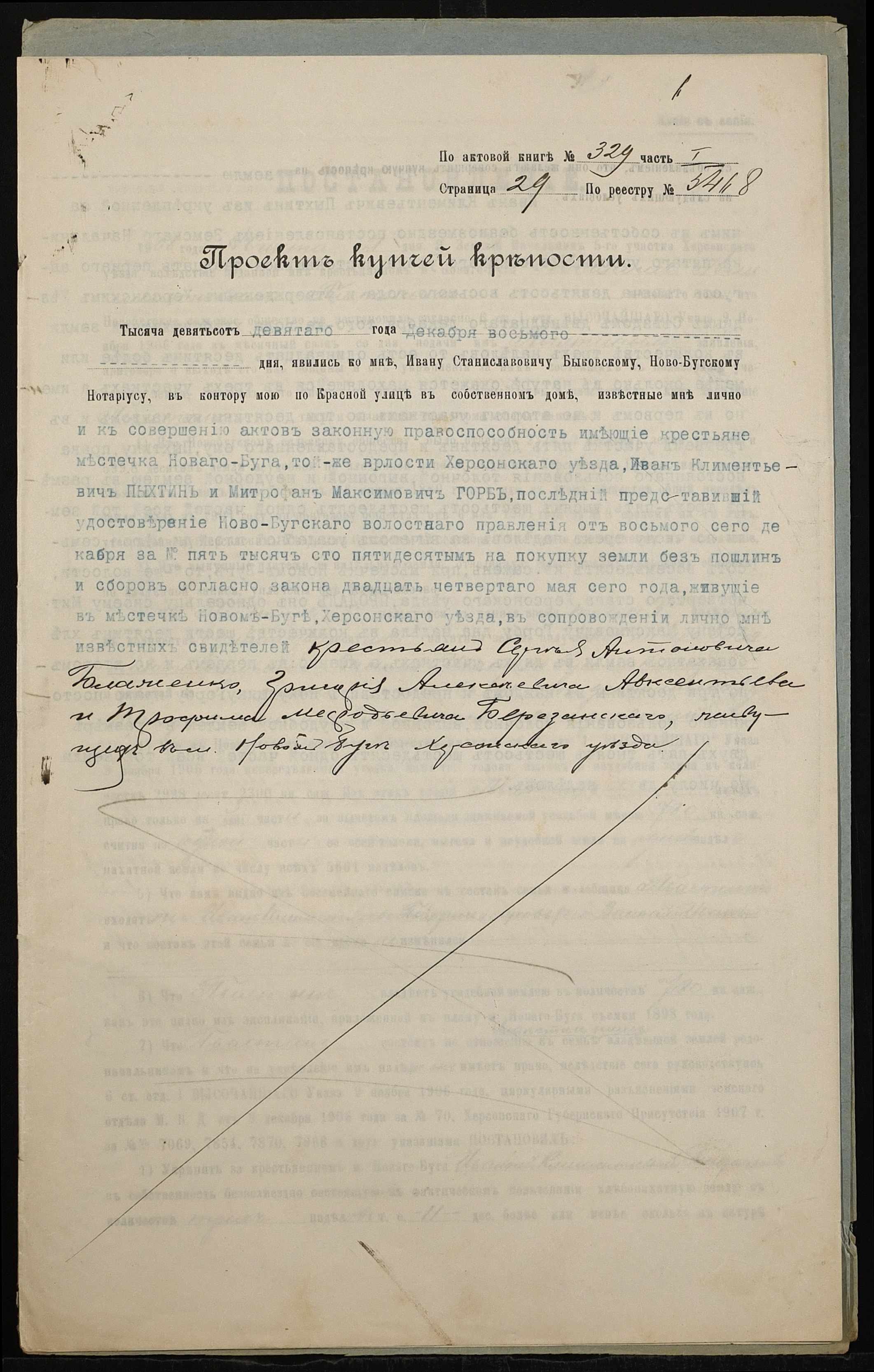 • • • • Справа № 146 “Справа про вчинення купчої про продаж землі селянином Пихтіним Іваном Климентійовичем (Пыхтиным Иваном Климентьевичем) на користь селянина Горба Митрофана Максимовича”