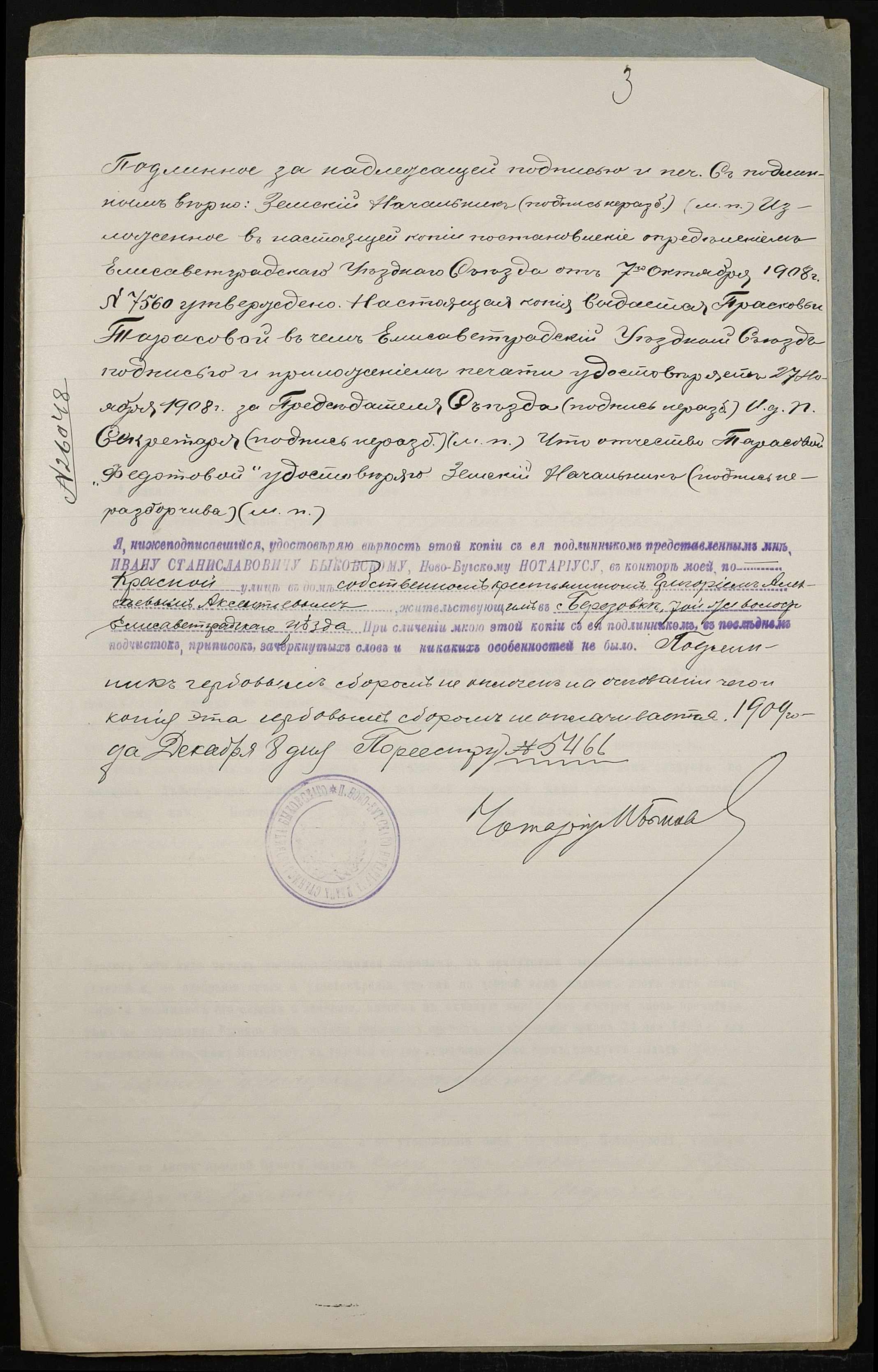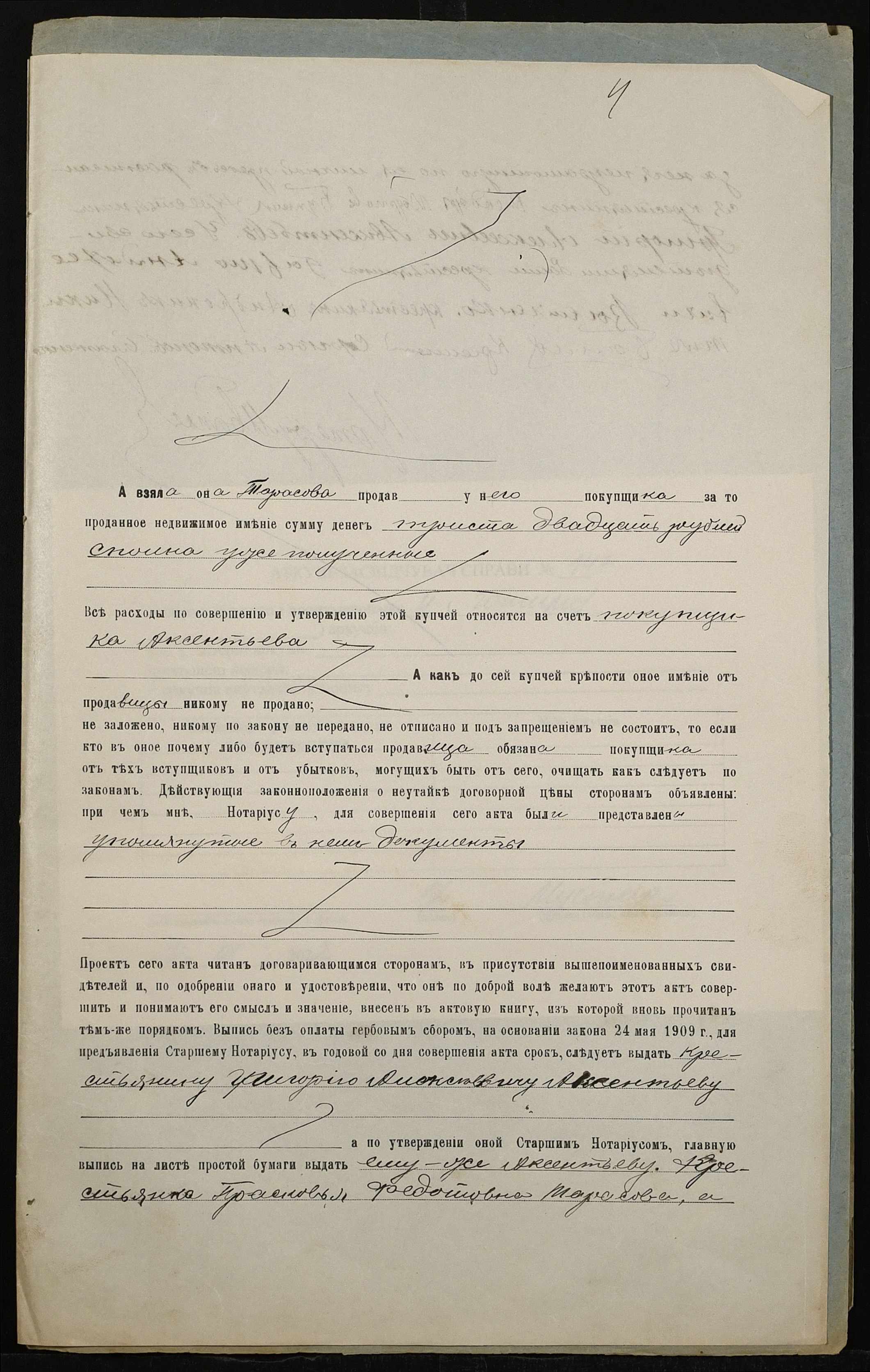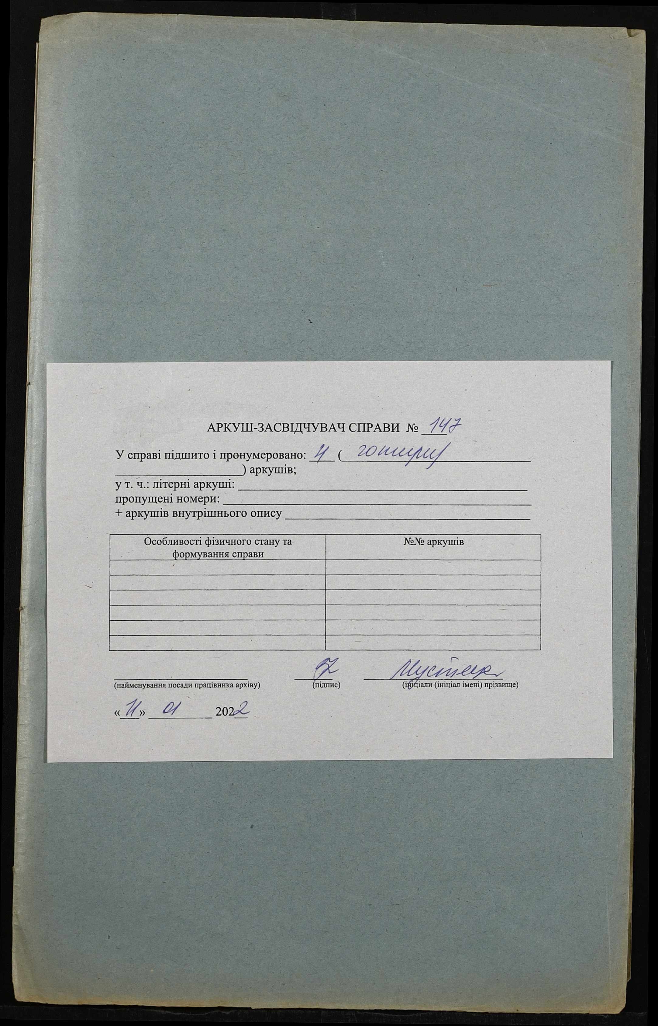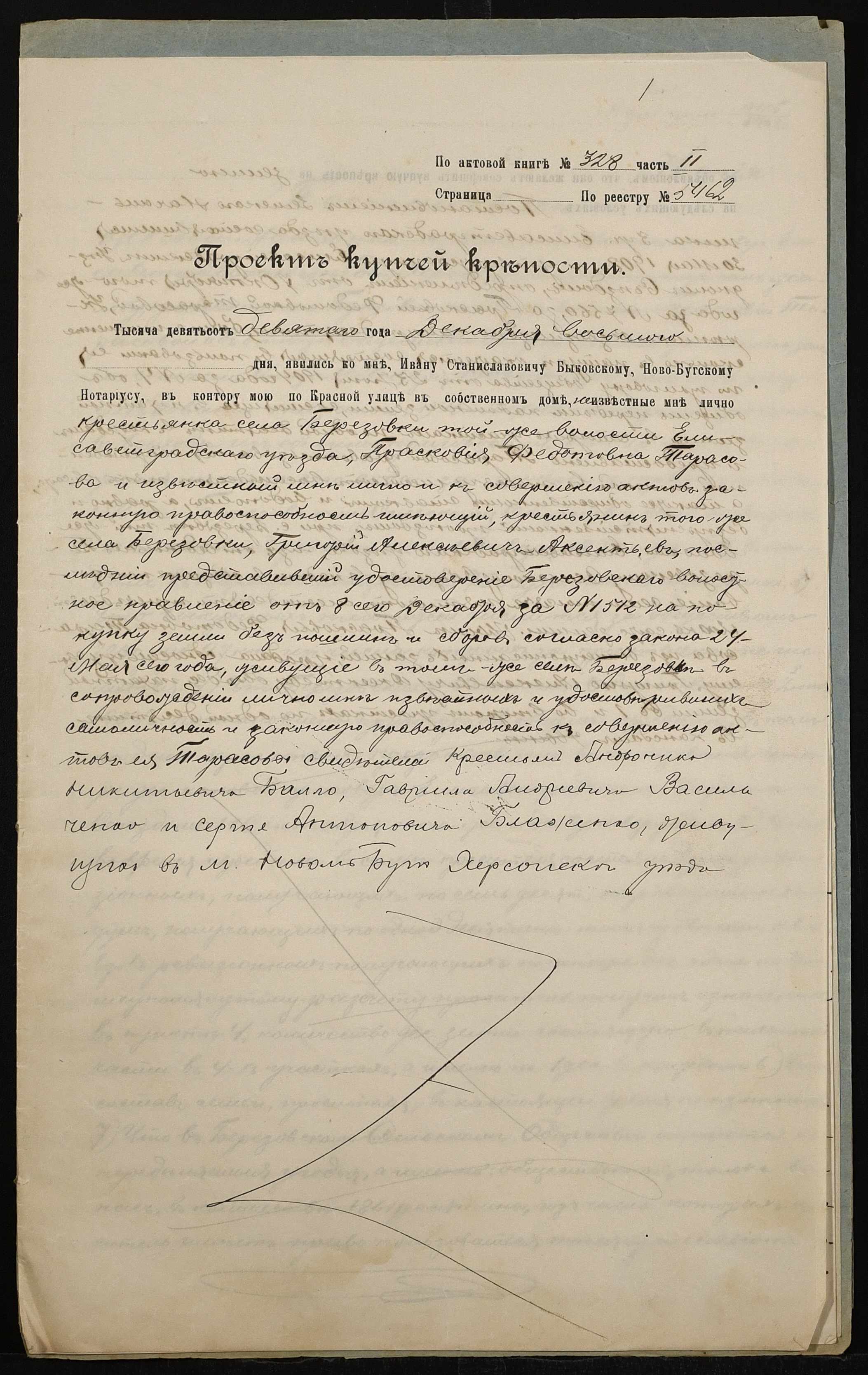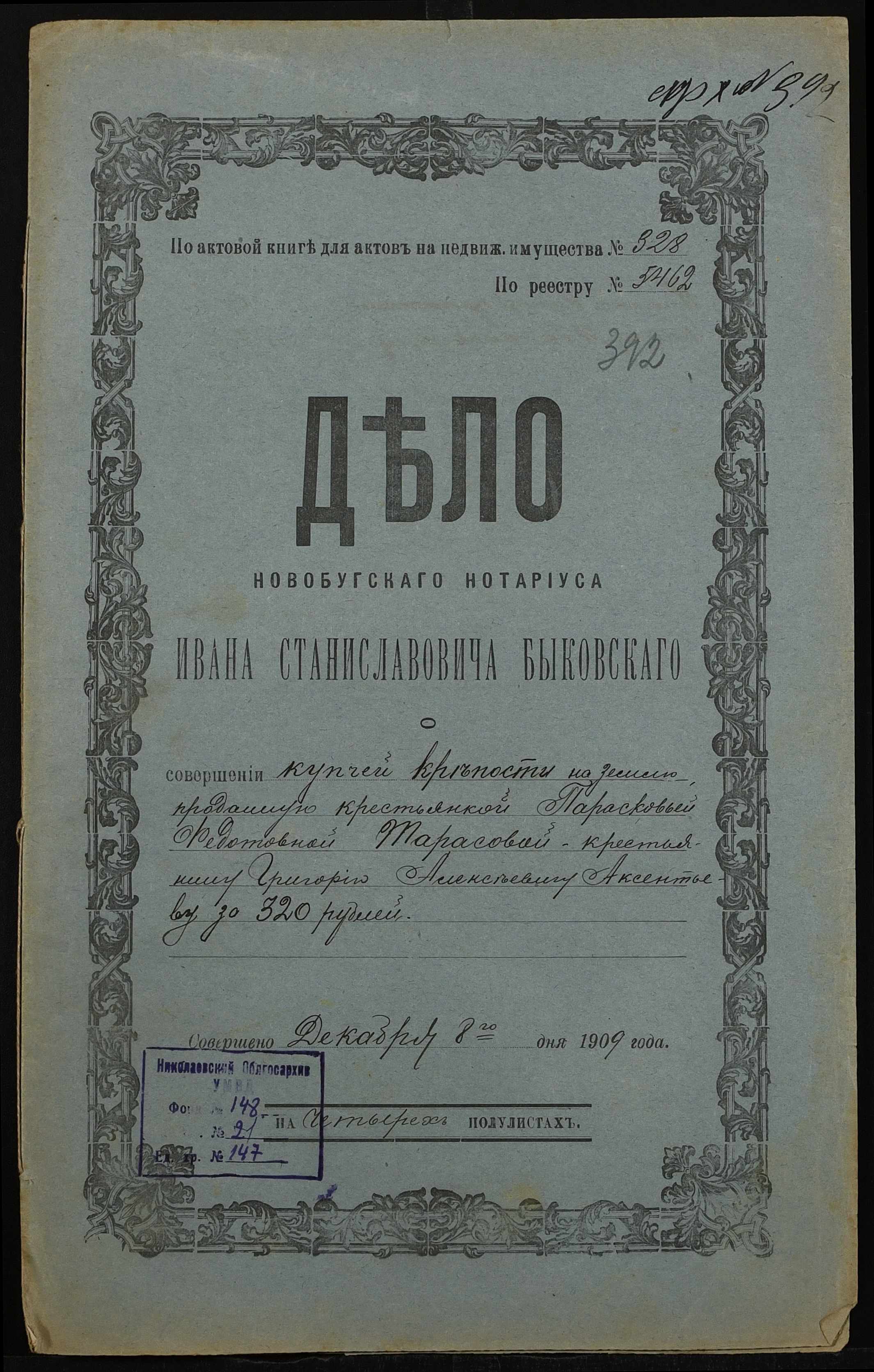 • • • • Справа № 147 “Справа про вчинення купчої про продаж землі селянкою Тарасовою Парасковією Федотівною (Тарасовой Прасковьей Федотовной) на користь селянина Аксентьєва Григорія Олексійовича (Аксентьева Григория Алексеевича)”