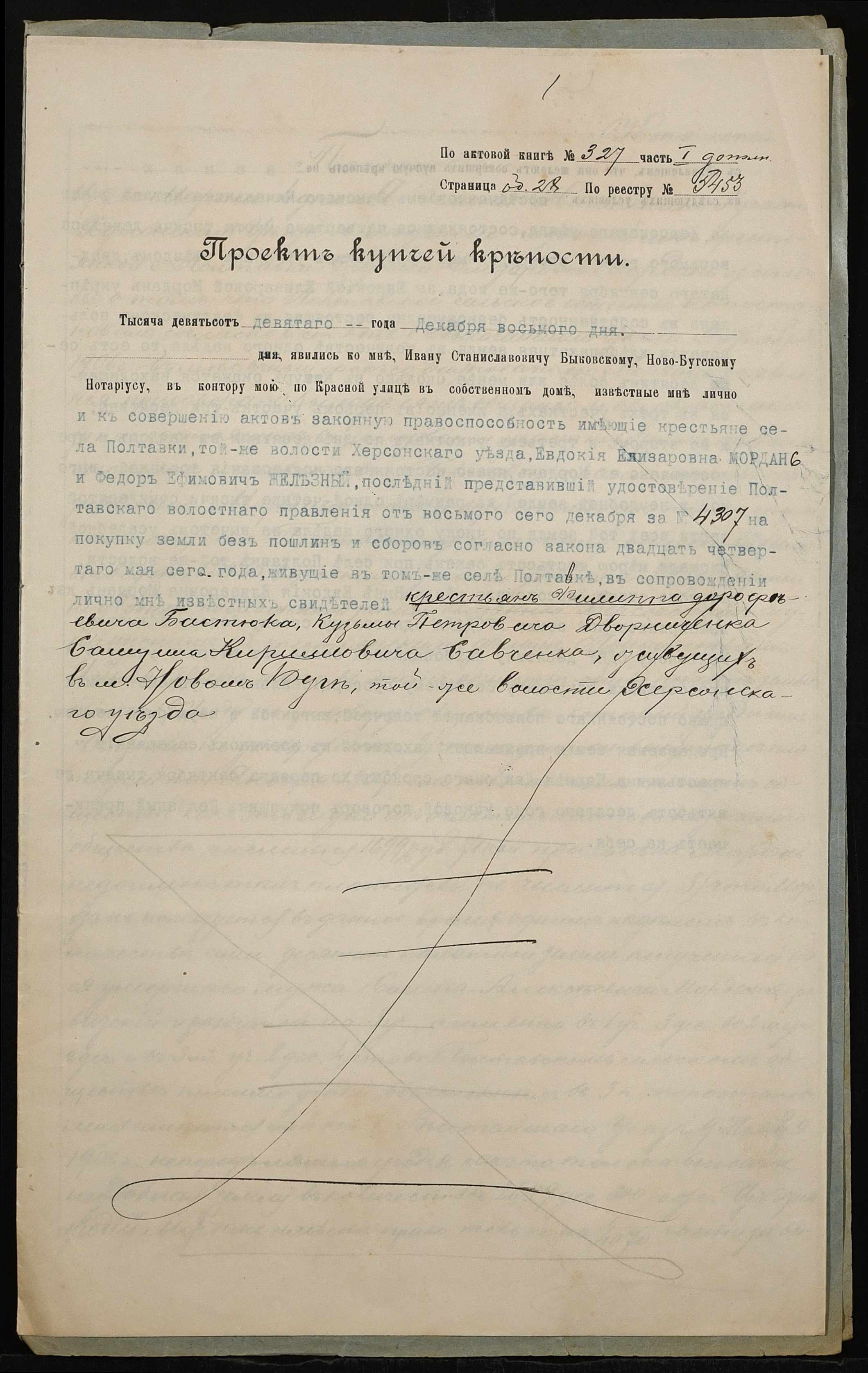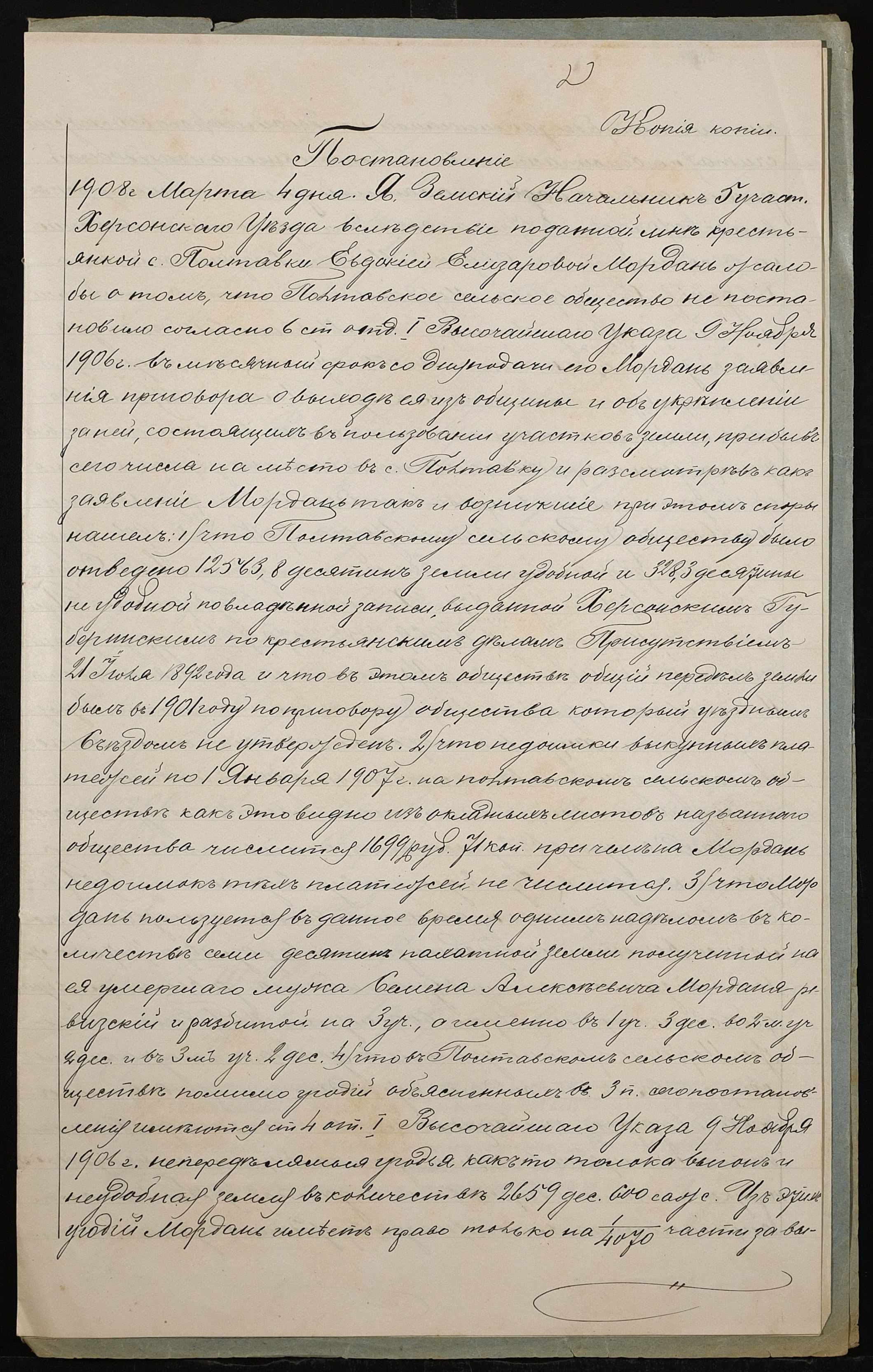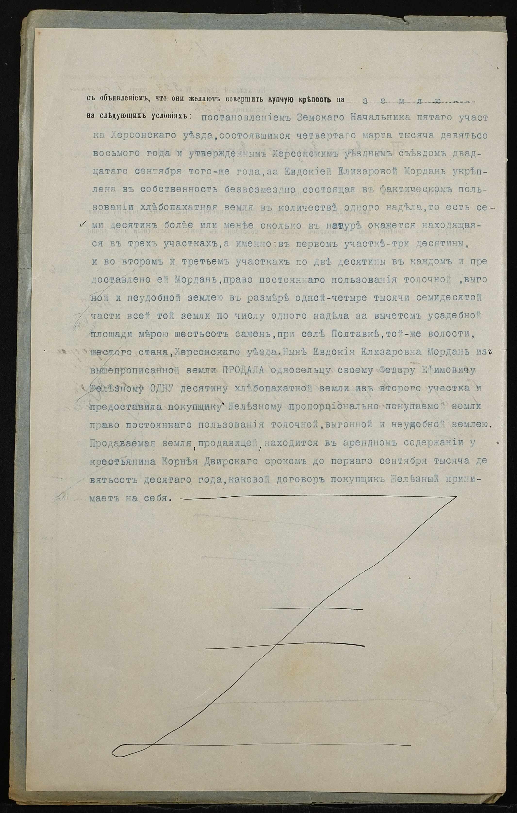 • • • • Справа № 148 “Справа про вчинення купчої про продаж землі селянкою Мордань Євдокією Єлізарівною (Евдокией Елизаровной) на користь селянина Желєзного (Железного) Федора Юхимовича (Ефимовича)”