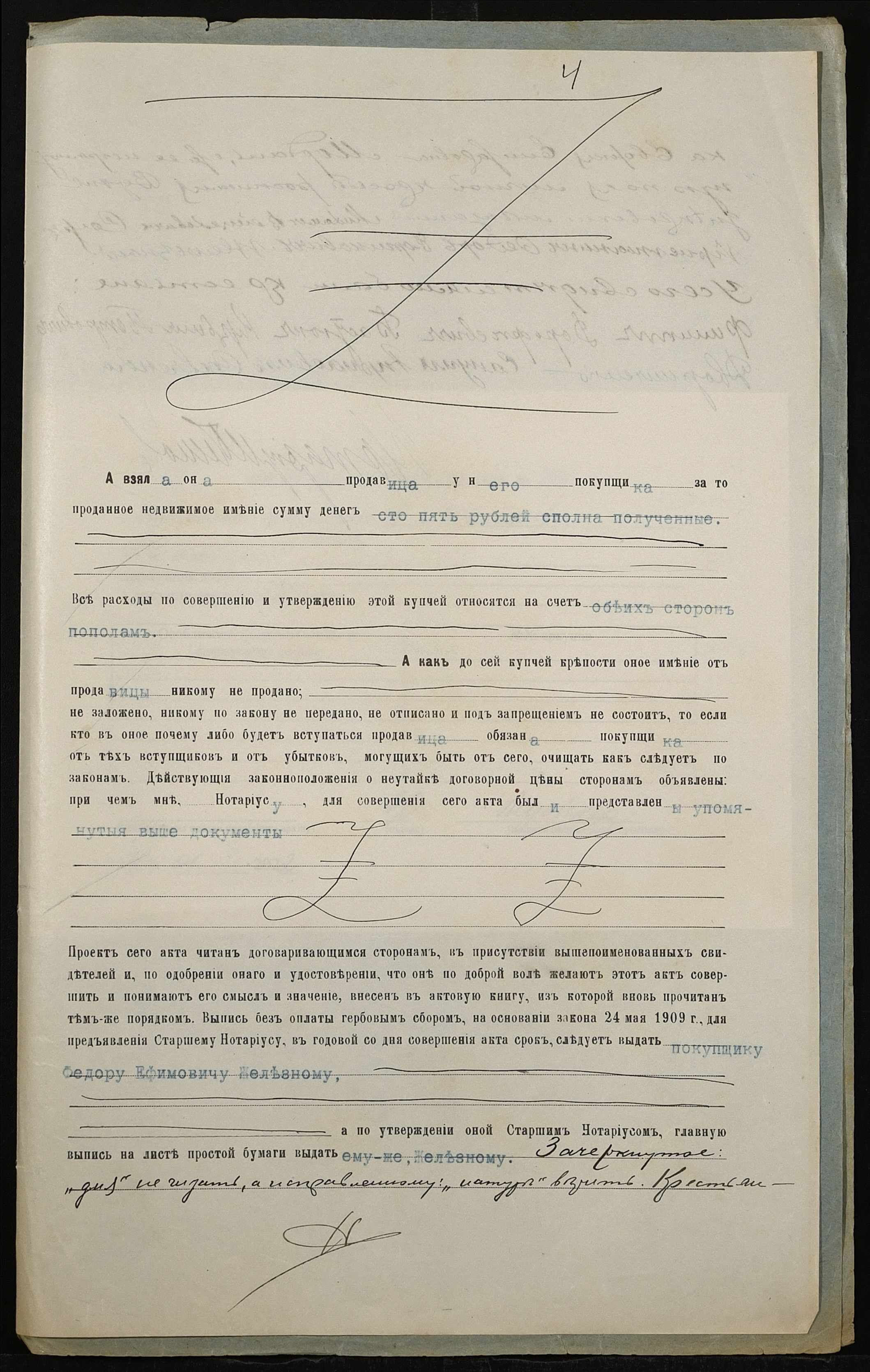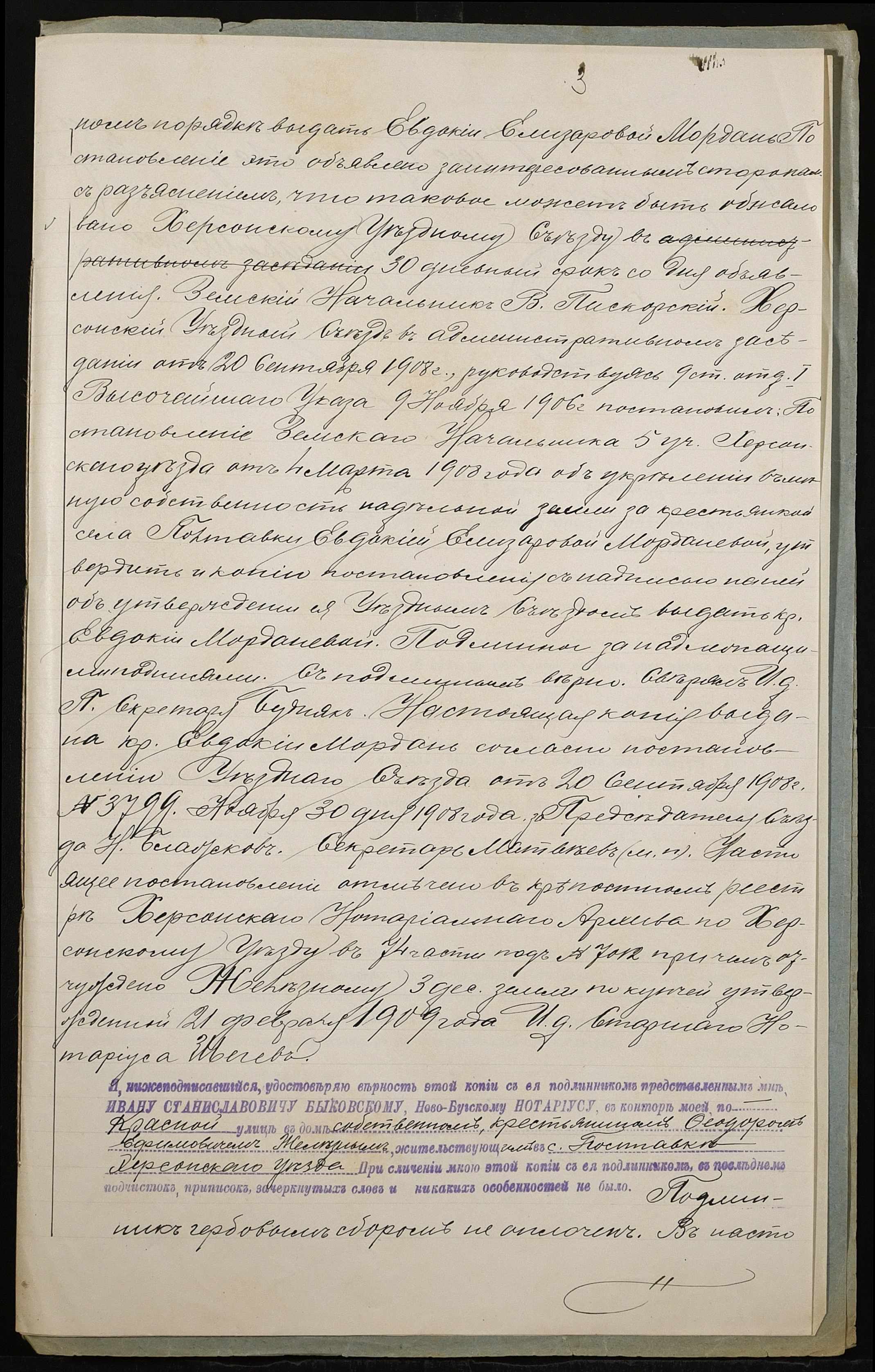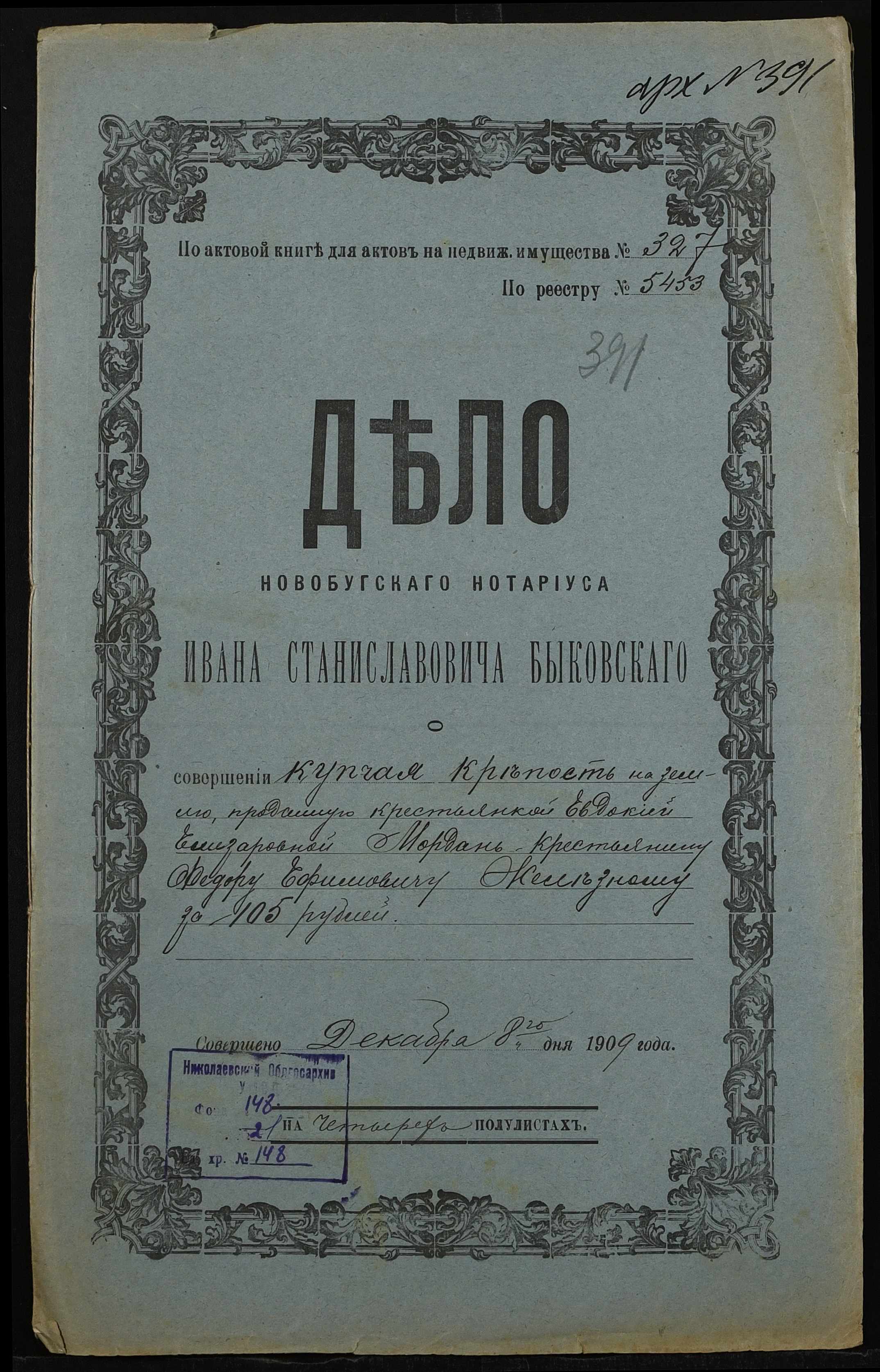 • • • • Справа № 148 “Справа про вчинення купчої про продаж землі селянкою Мордань Євдокією Єлізарівною (Евдокией Елизаровной) на користь селянина Желєзного (Железного) Федора Юхимовича (Ефимовича)”