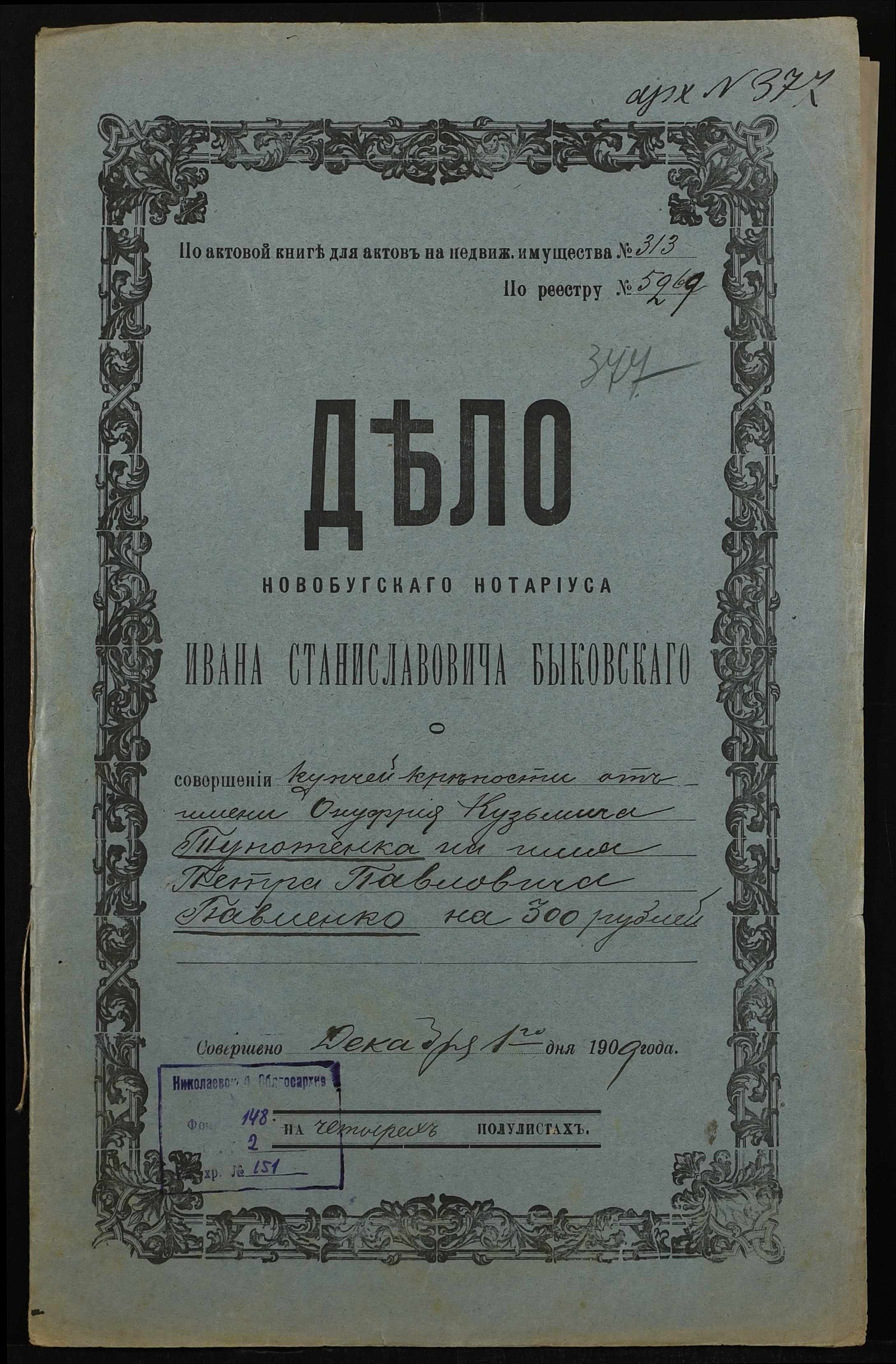 ◦ ◦ Фонд № 148 “Контора новобузького нотаріуса Биковського Івана Станіславовича”