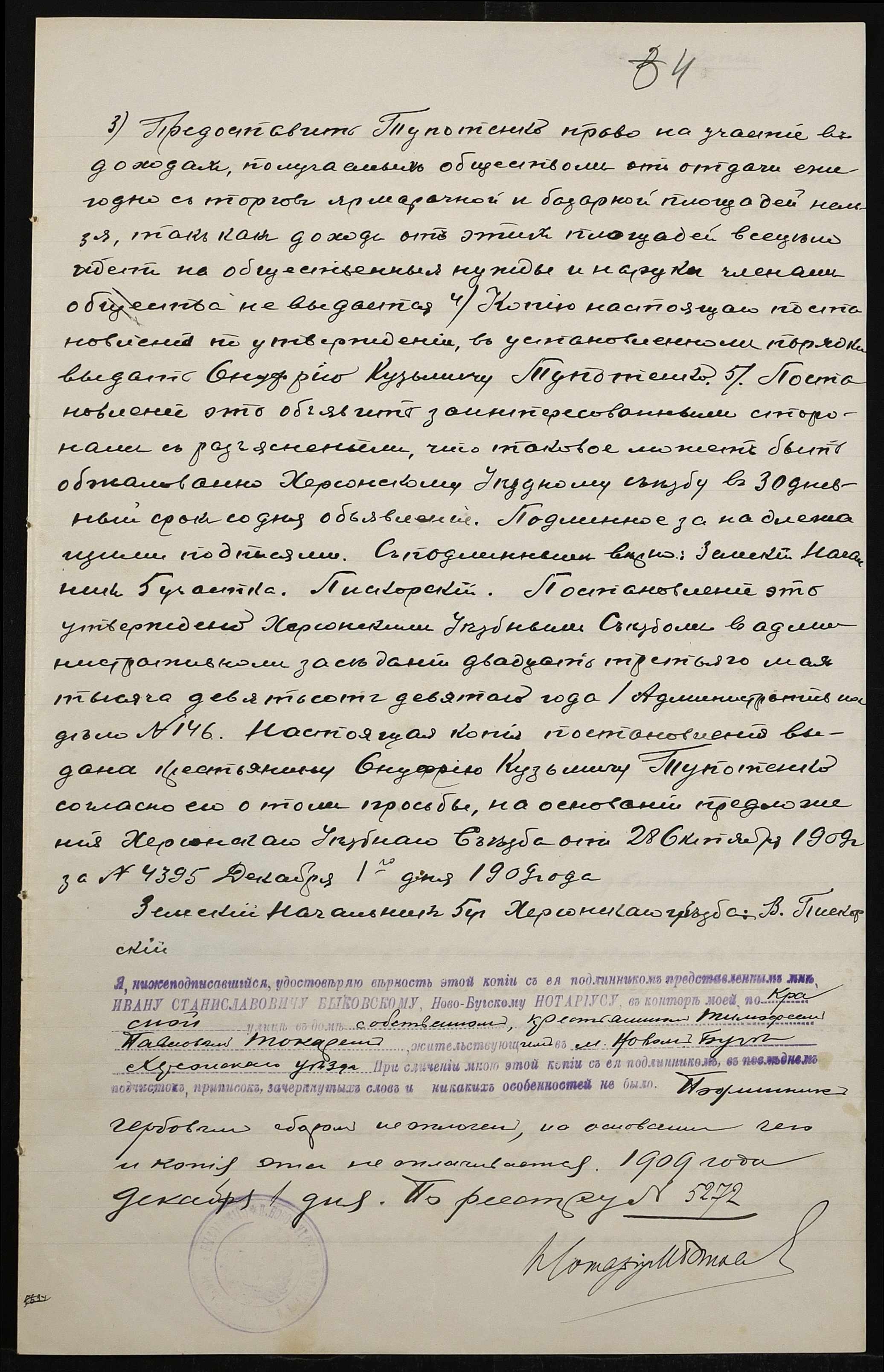 • • • • Справа № 151 “Справа про вчинення купчої про продаж землі селянином Тупотенком Онуфрієм (Тупотенко Онуфрием) Кузьмичем на користь селянина Павленка (Павленко) Петра Павловича”