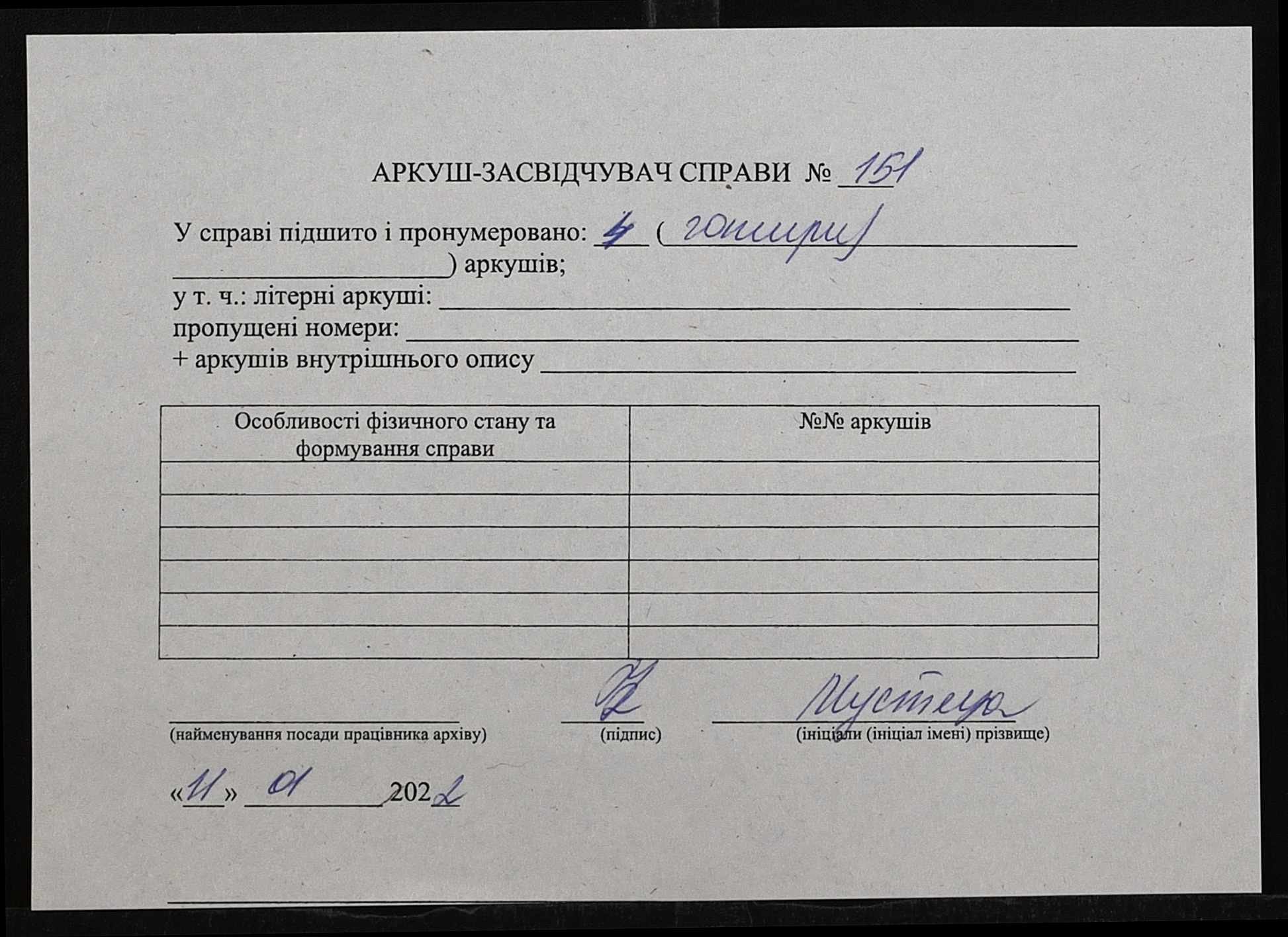 Фонд 148 / Опис 1 / Справа 151