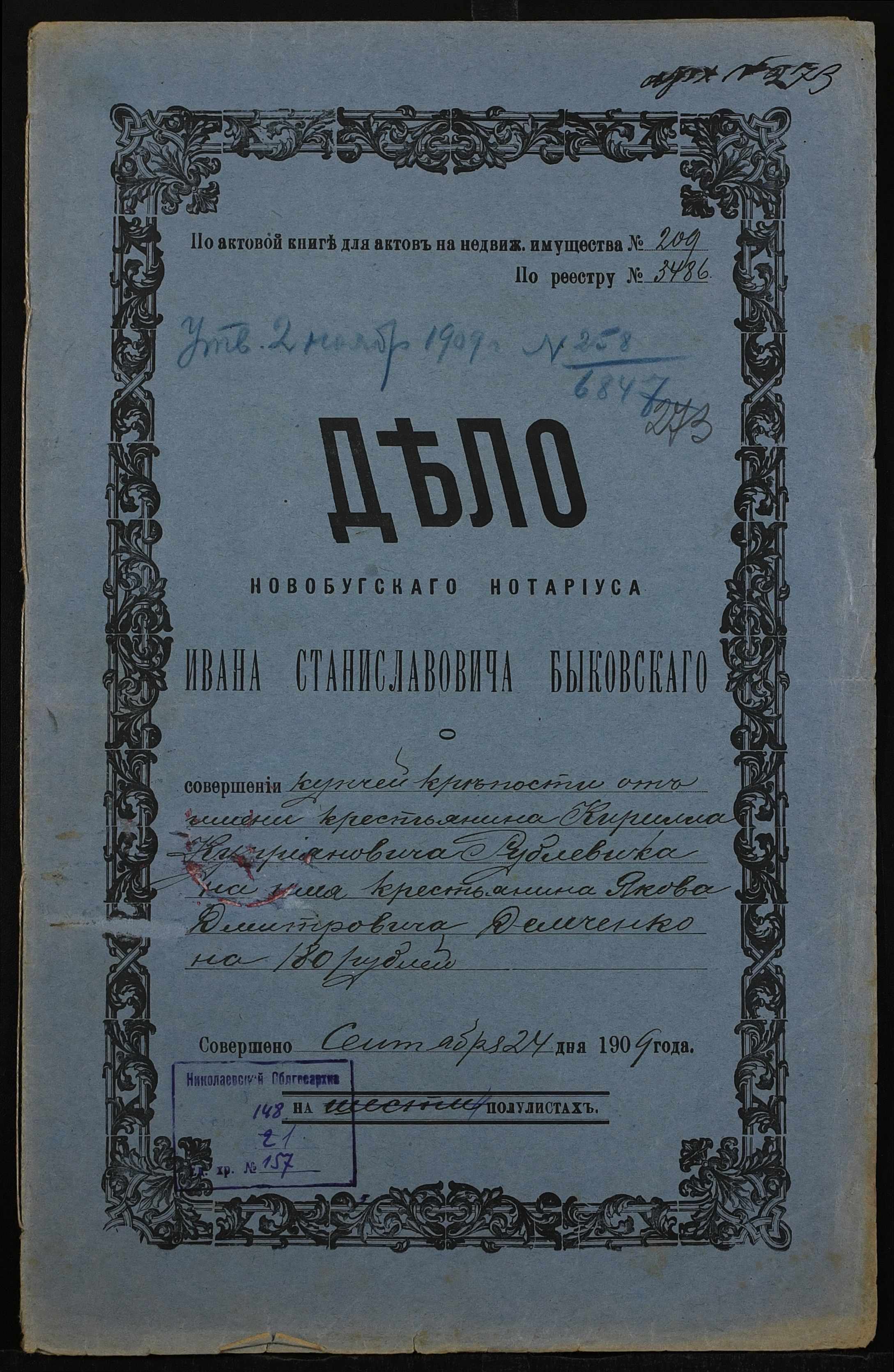 ◦ ◦ Фонд № 148 “Контора новобузького нотаріуса Биковського Івана Станіславовича”