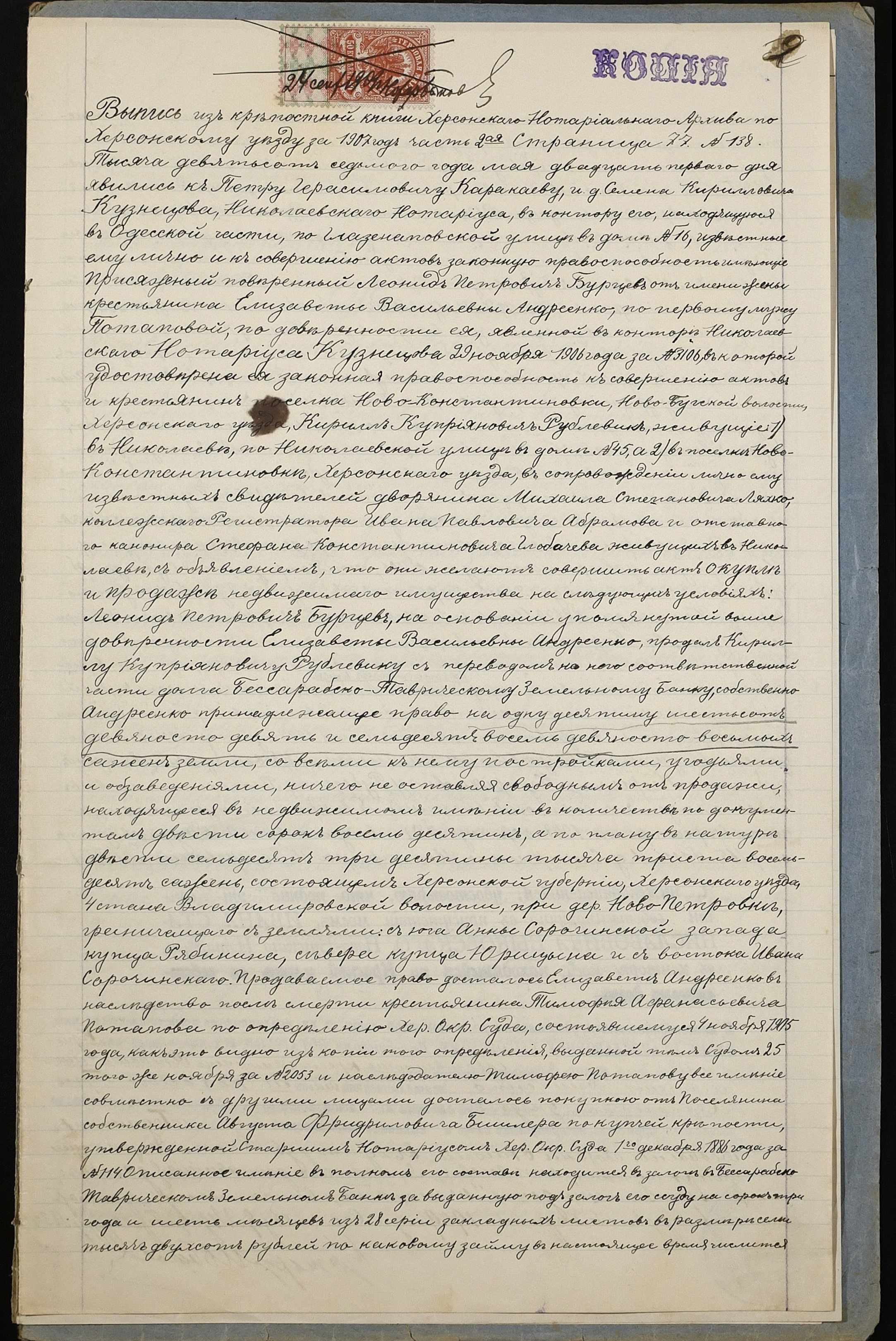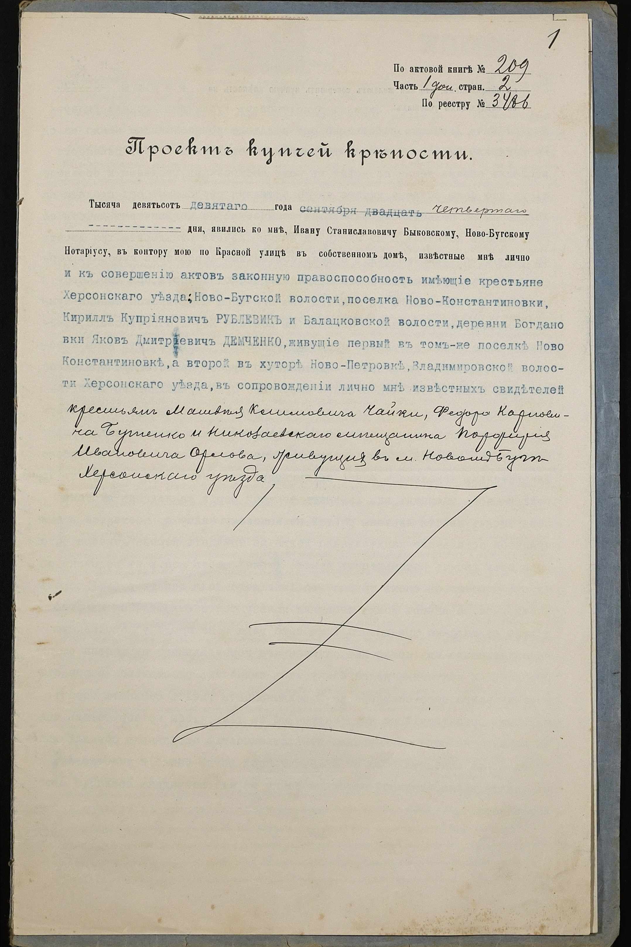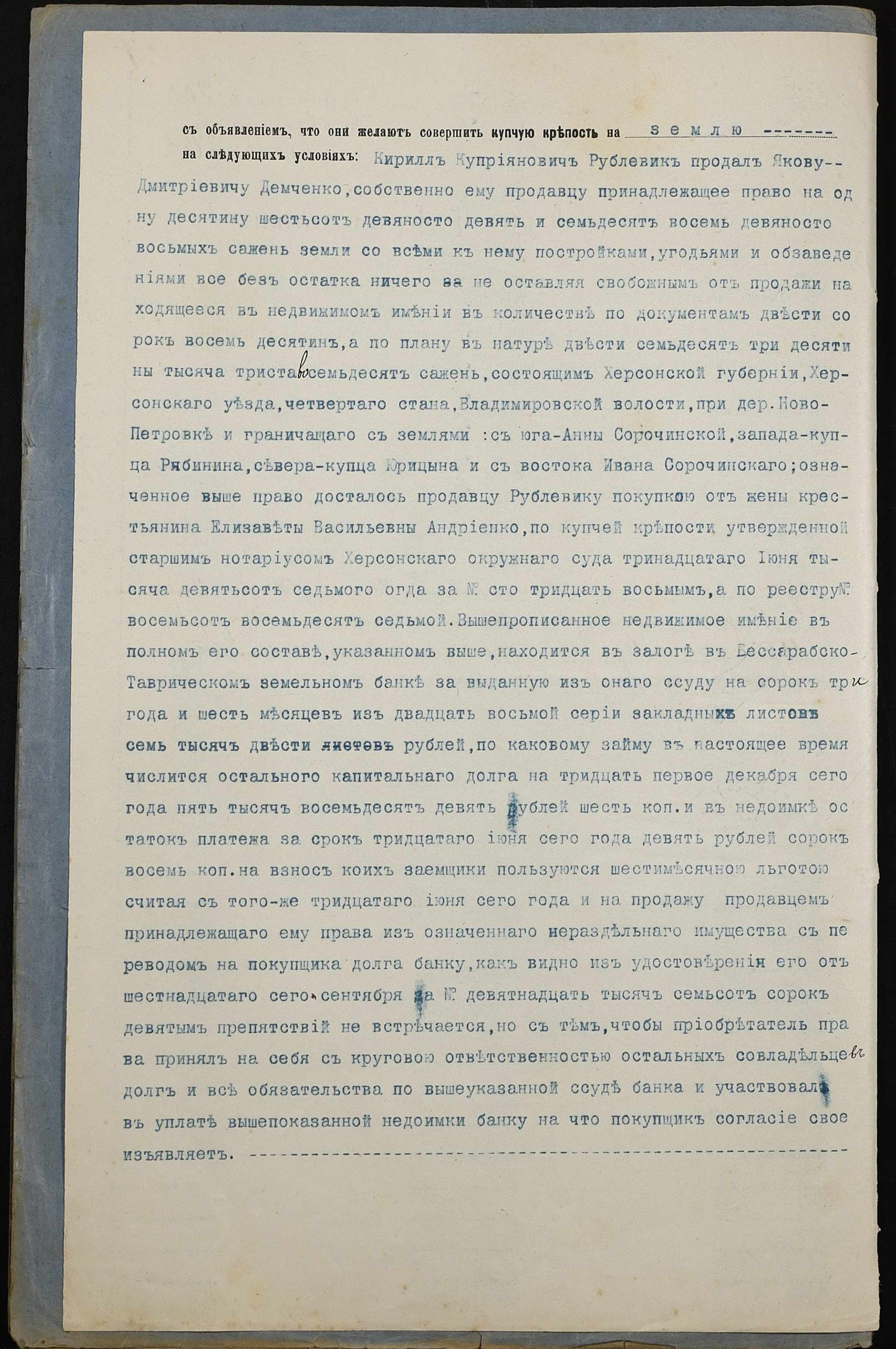 • • • • Справа № 157 “Справа про вчинення купчої про продаж землі селянином Рублевиком Кирилом Купріяновичем (Кириллом Куприяновичем) на користь селянина Демченка (Демченко) Якова Дмитровича (Дмитриевича)”