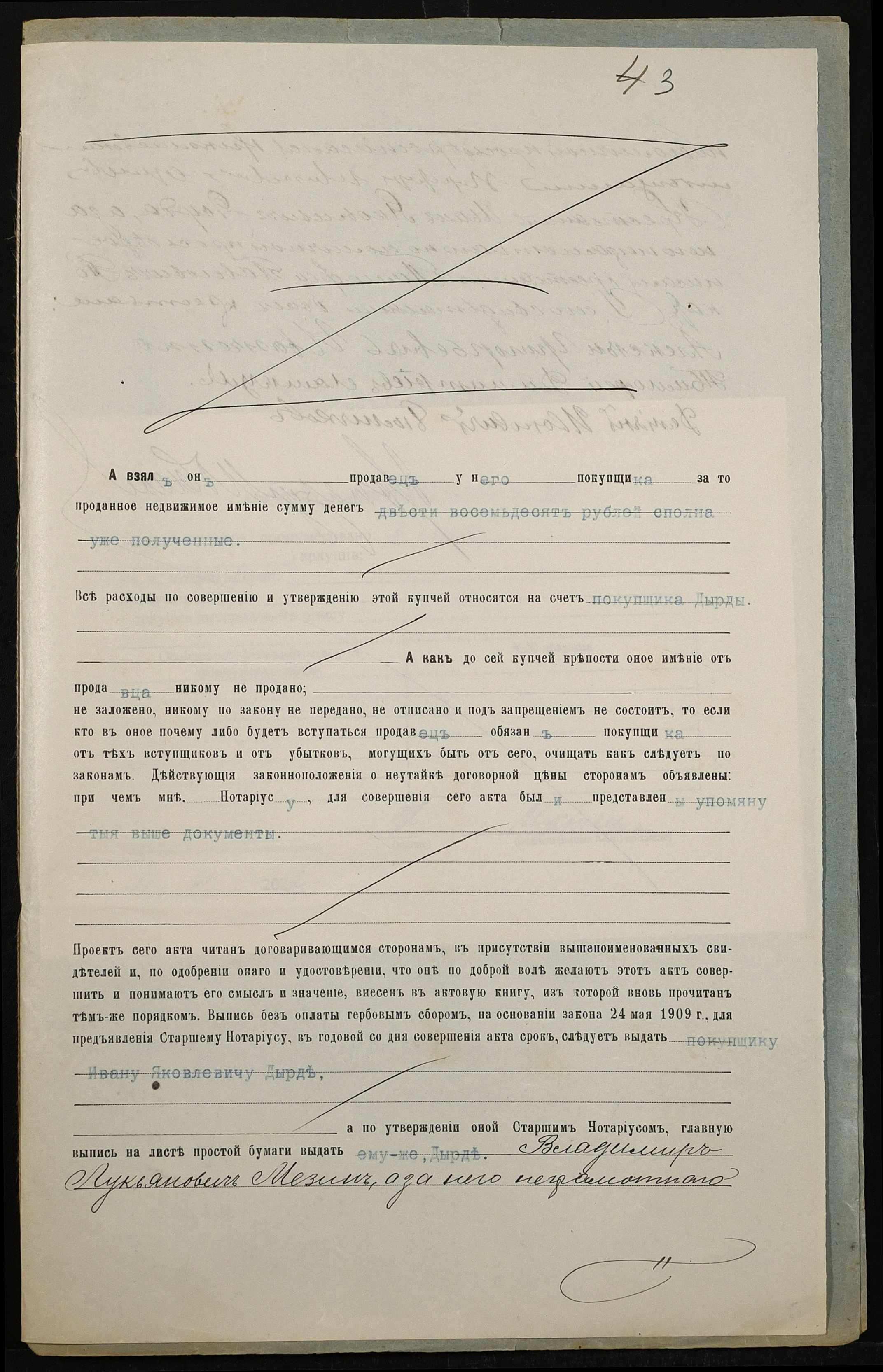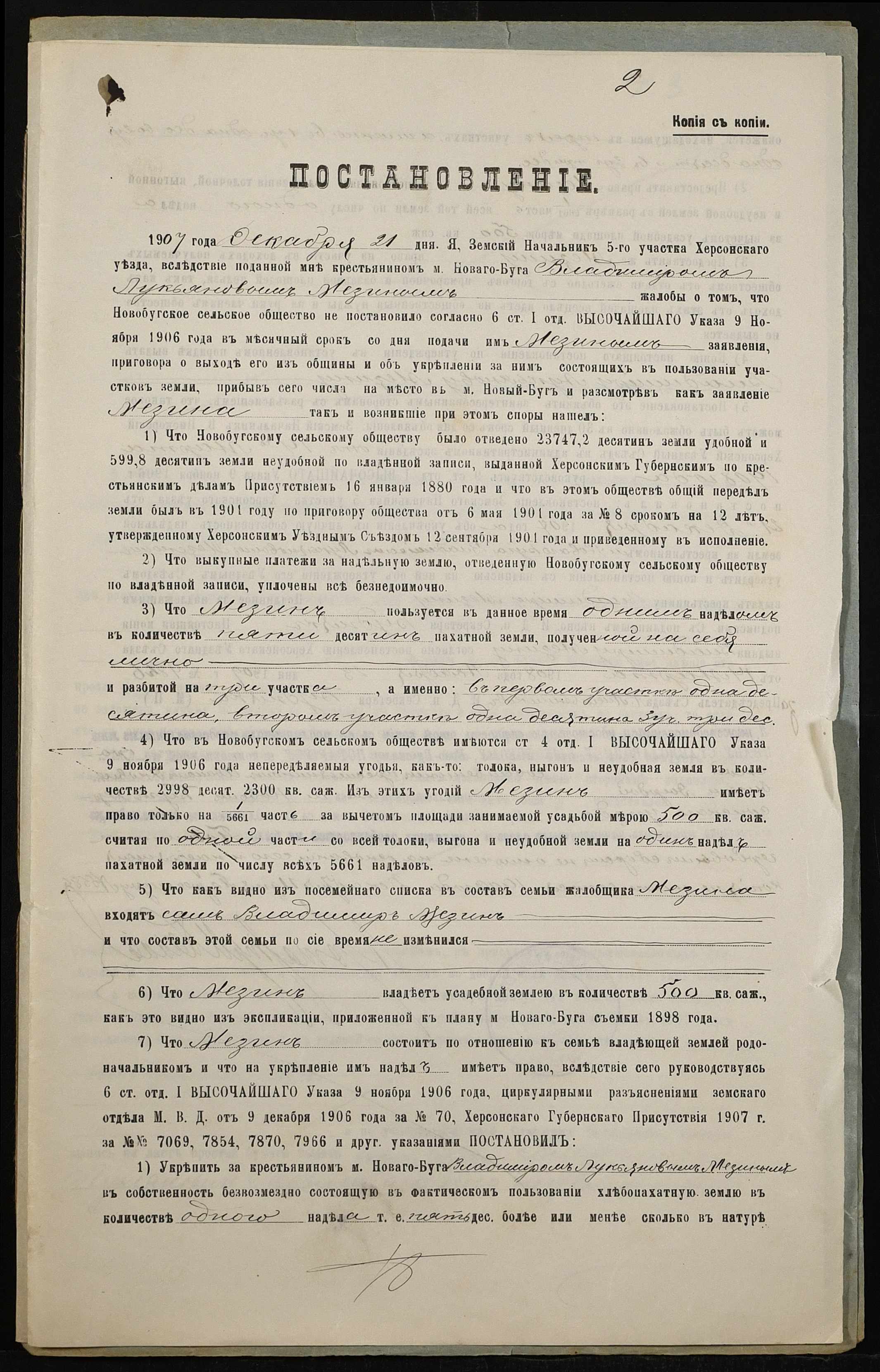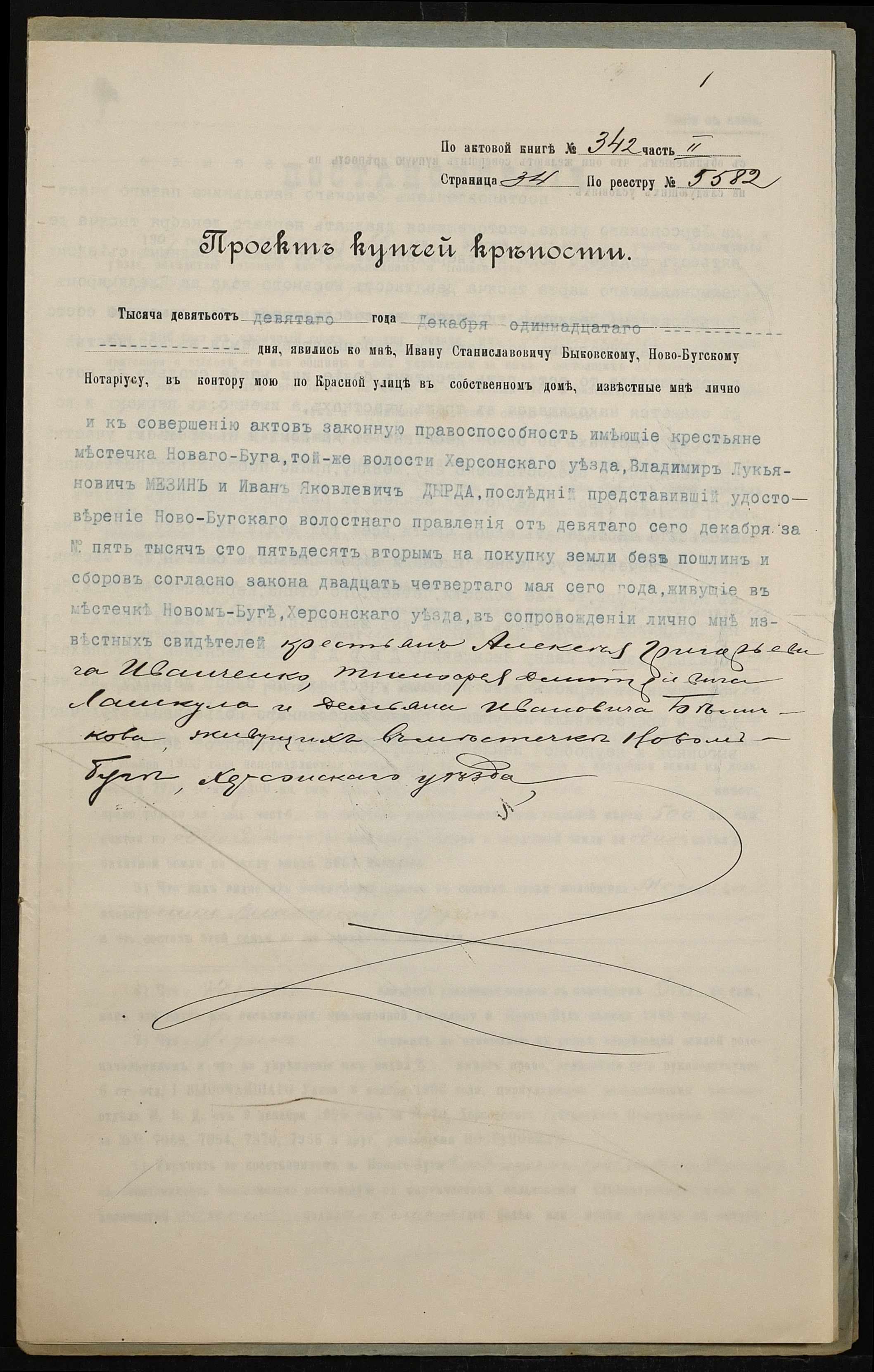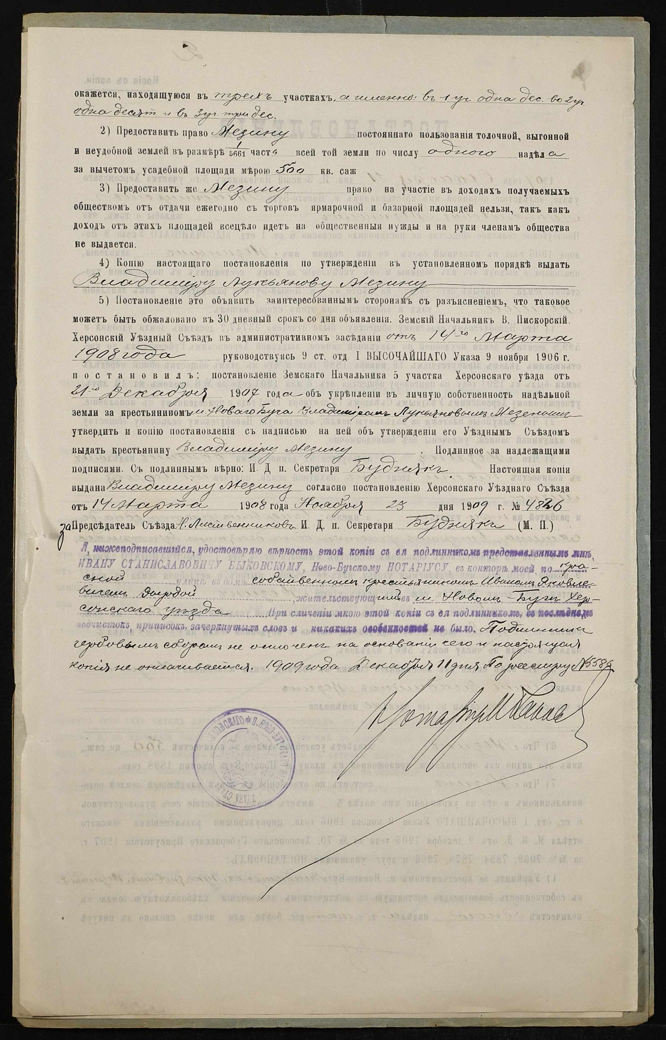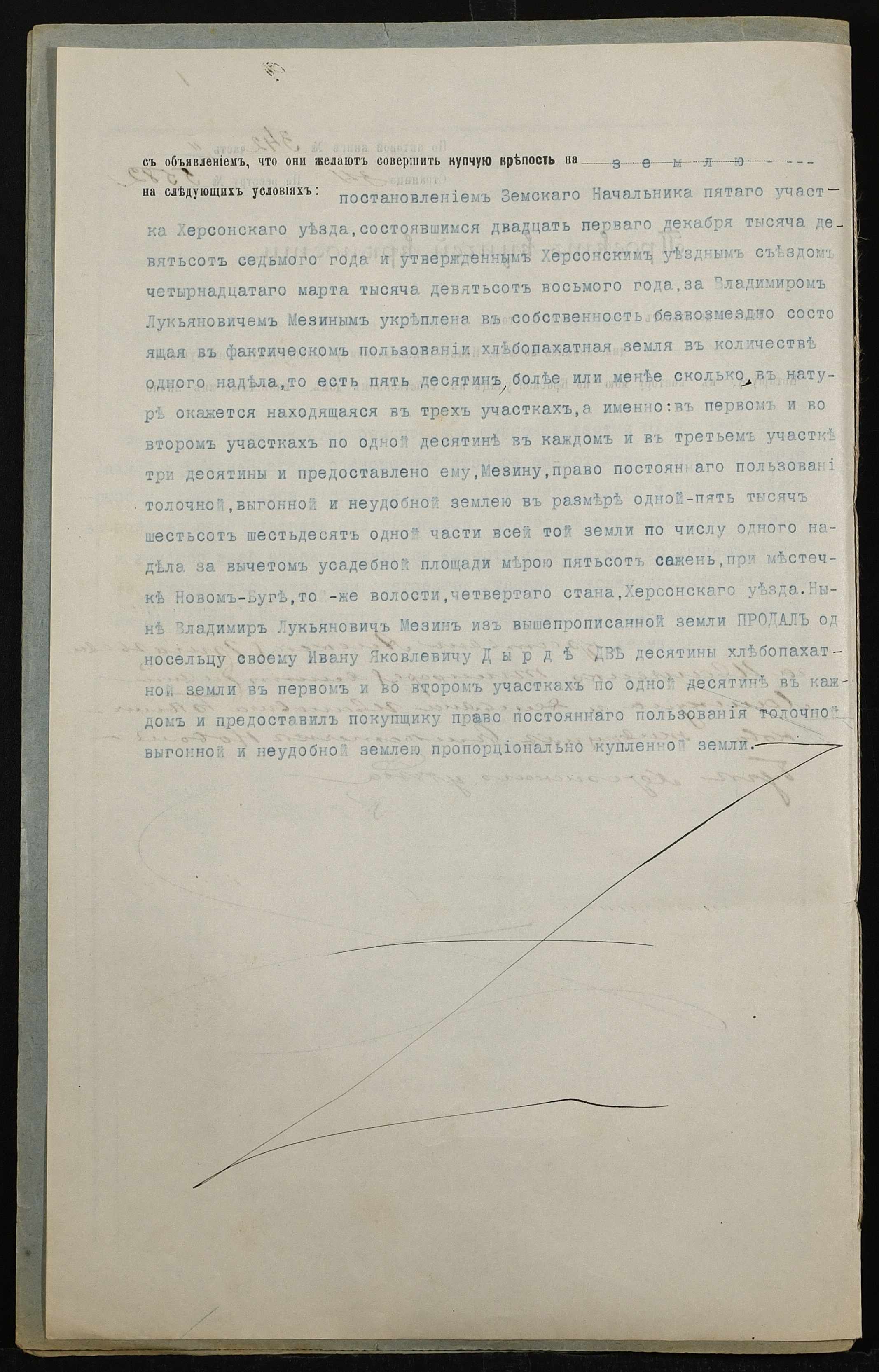 • • • • Справа № 161 “Справа про вчинення купчої про продаж землі селянином Мезіним Володимиром Лук’яновичем (Мезиным Владимиром Лукьяновичем) на користь селянина Дирди Івана Яковича (Дырды Ивана Яковлевича)”