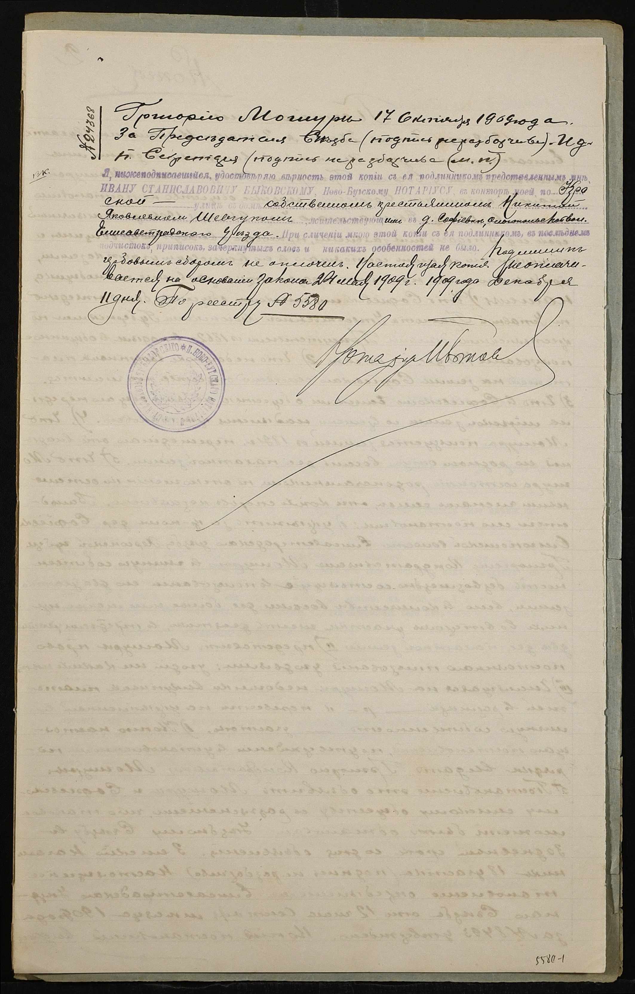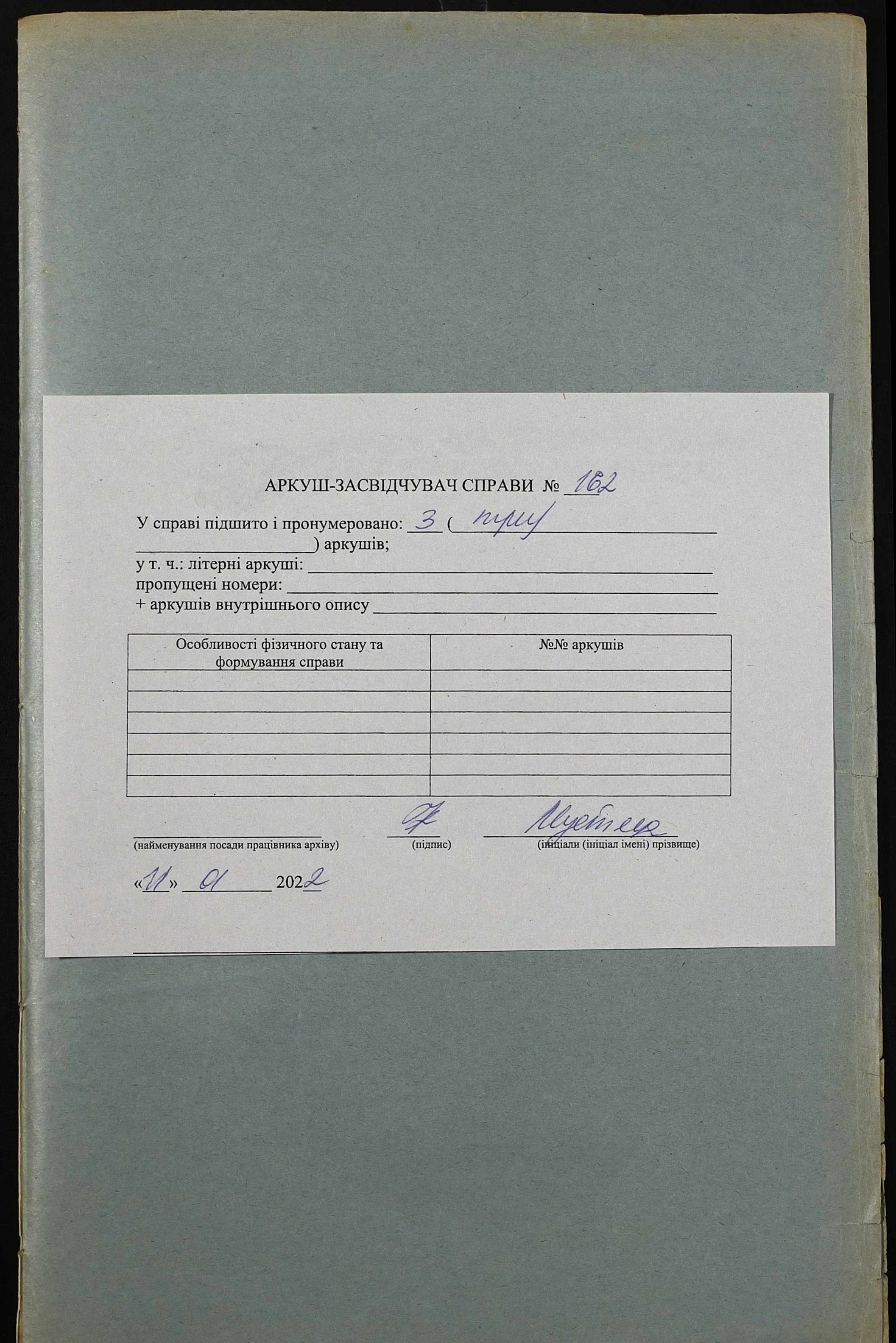 • • • • Справа № 162 “Справа про вчинення купчої про продаж землі селянином Мошурою Григорієм Кіндратовичем (Мошурой Григорием Кондратьевичем) на користь селянина Шевчука Микити Яковича (Никиты Яковлевича)”
