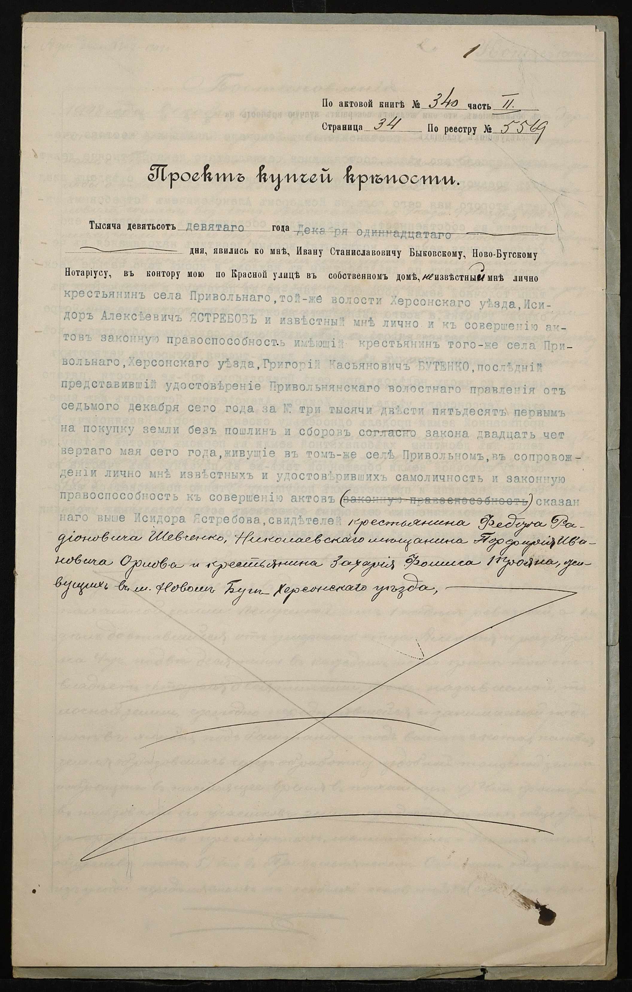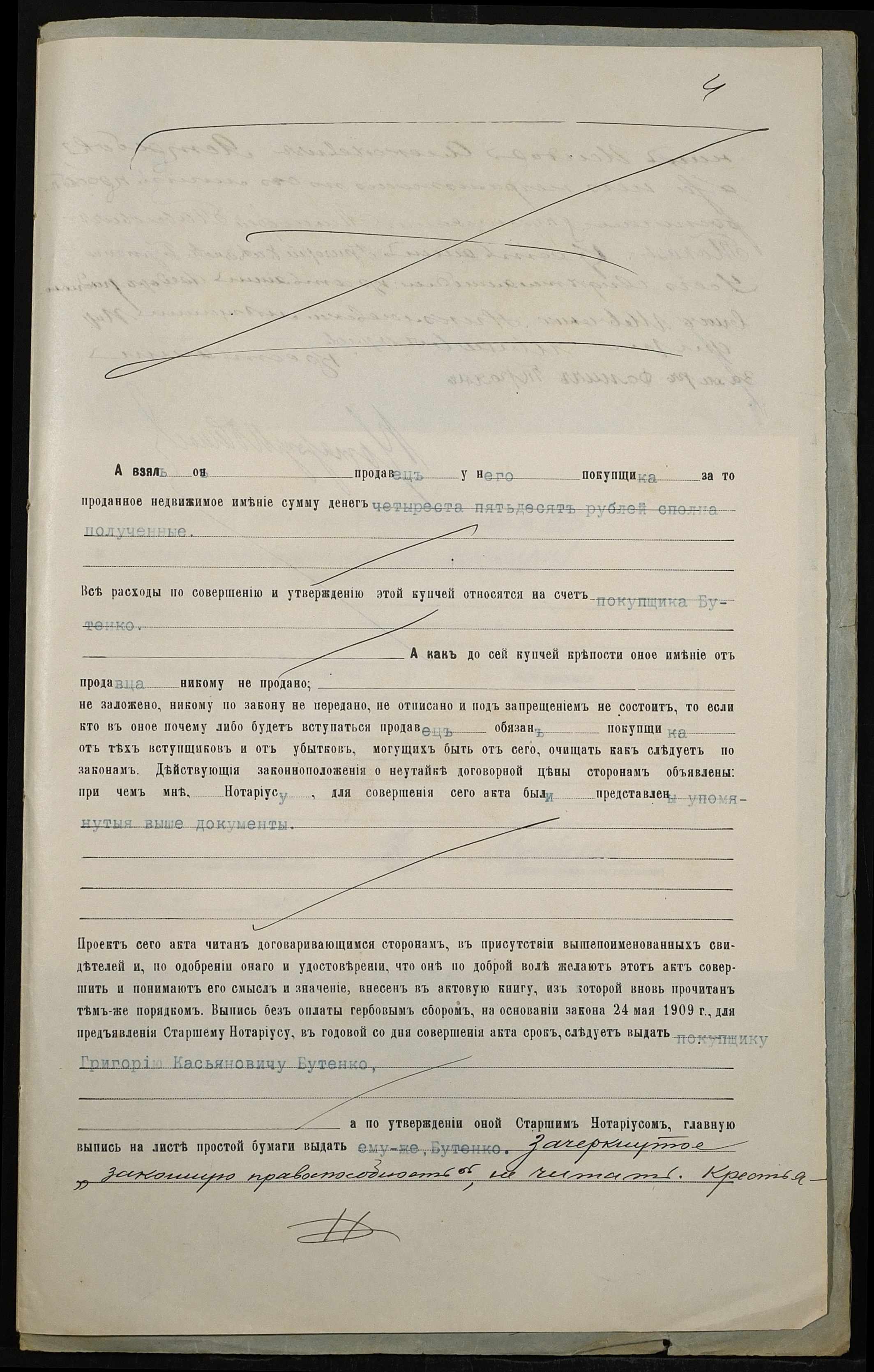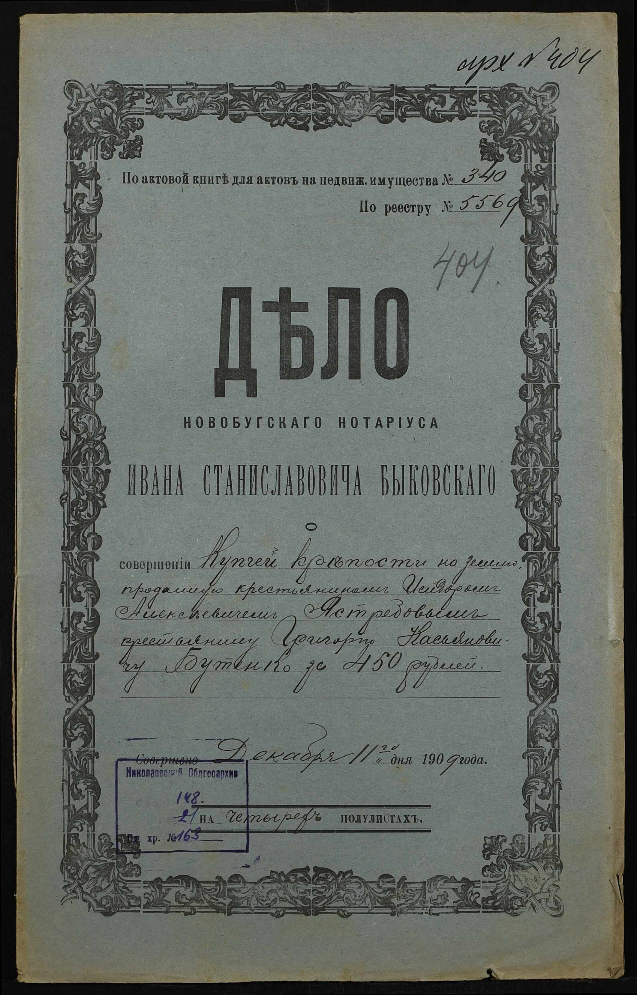 • • • • Справа № 163 “Справа про вчинення купчої про продаж землі селянином Ястребовим Ісидором Мойсейовичем (Ястребовым Исидором Моисеевичем) на користь селянина Бутенка Григорія (Бутенко Григория) Касьяновича”
