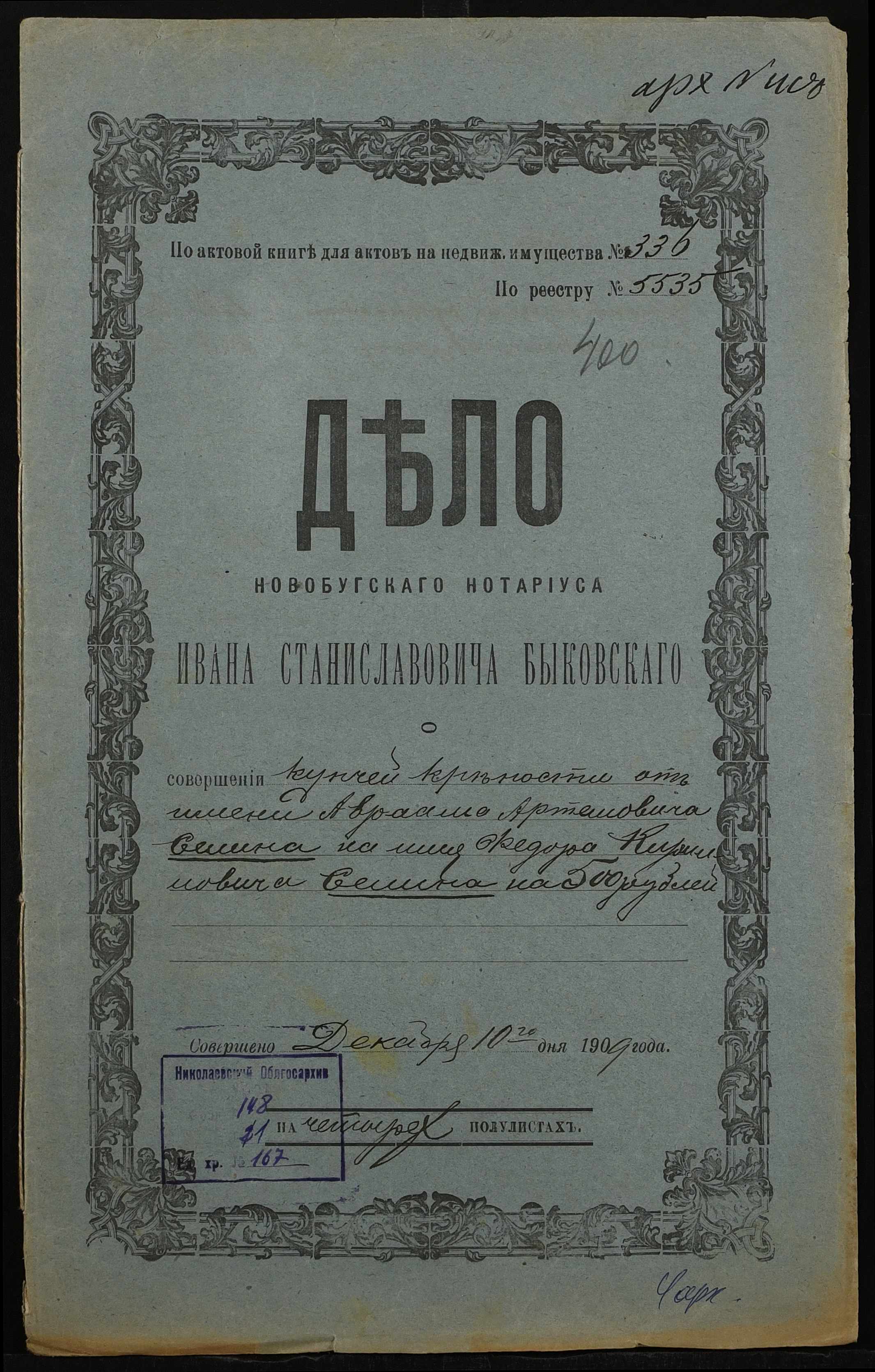 ◦ ◦ Фонд № 148 “Контора новобузького нотаріуса Биковського Івана Станіславовича”