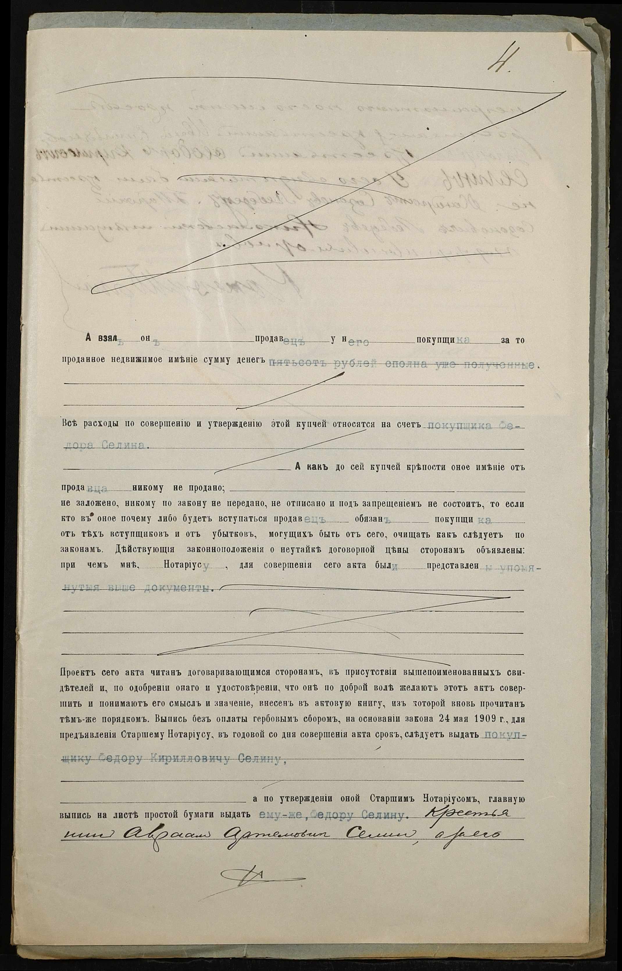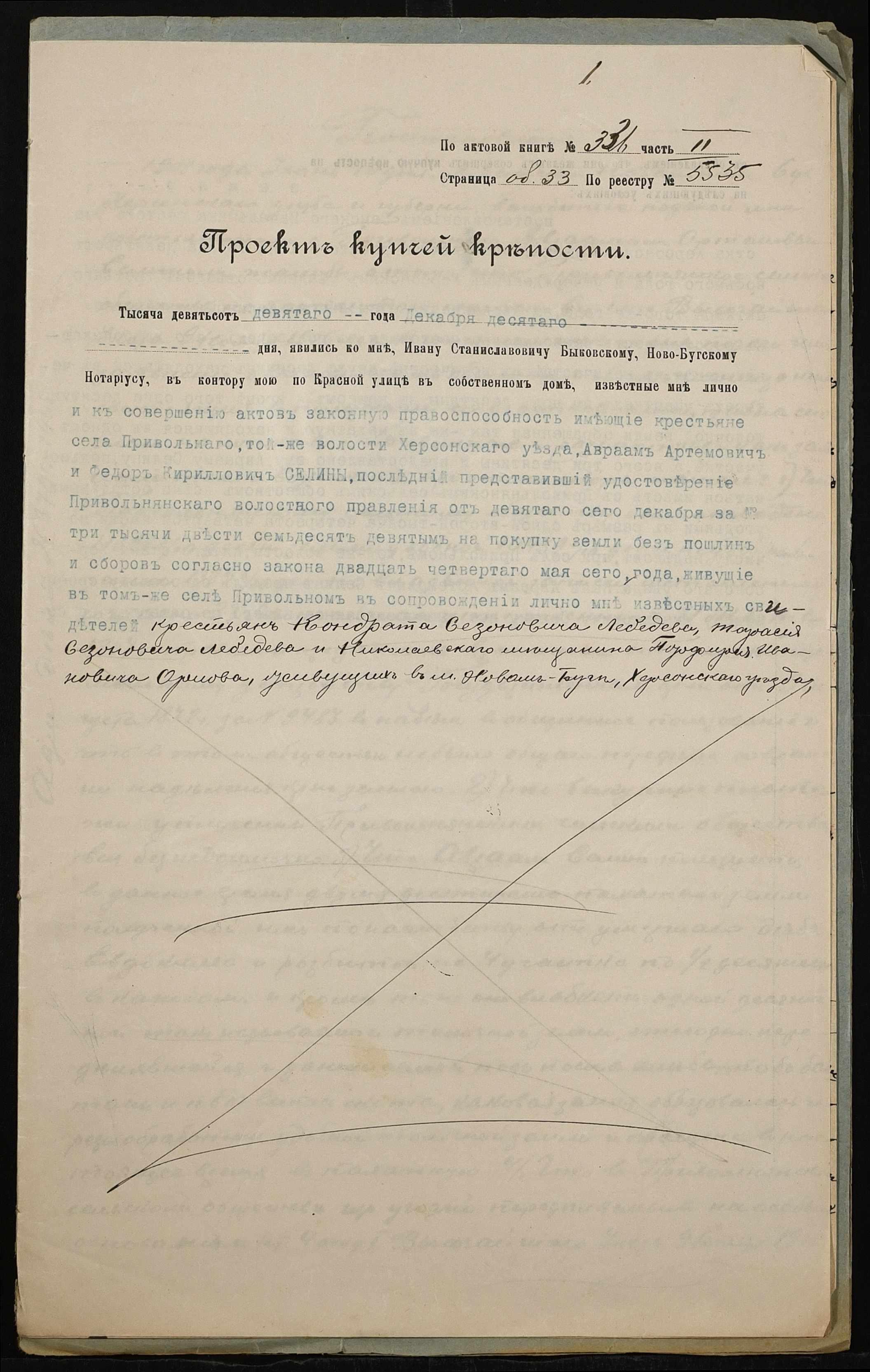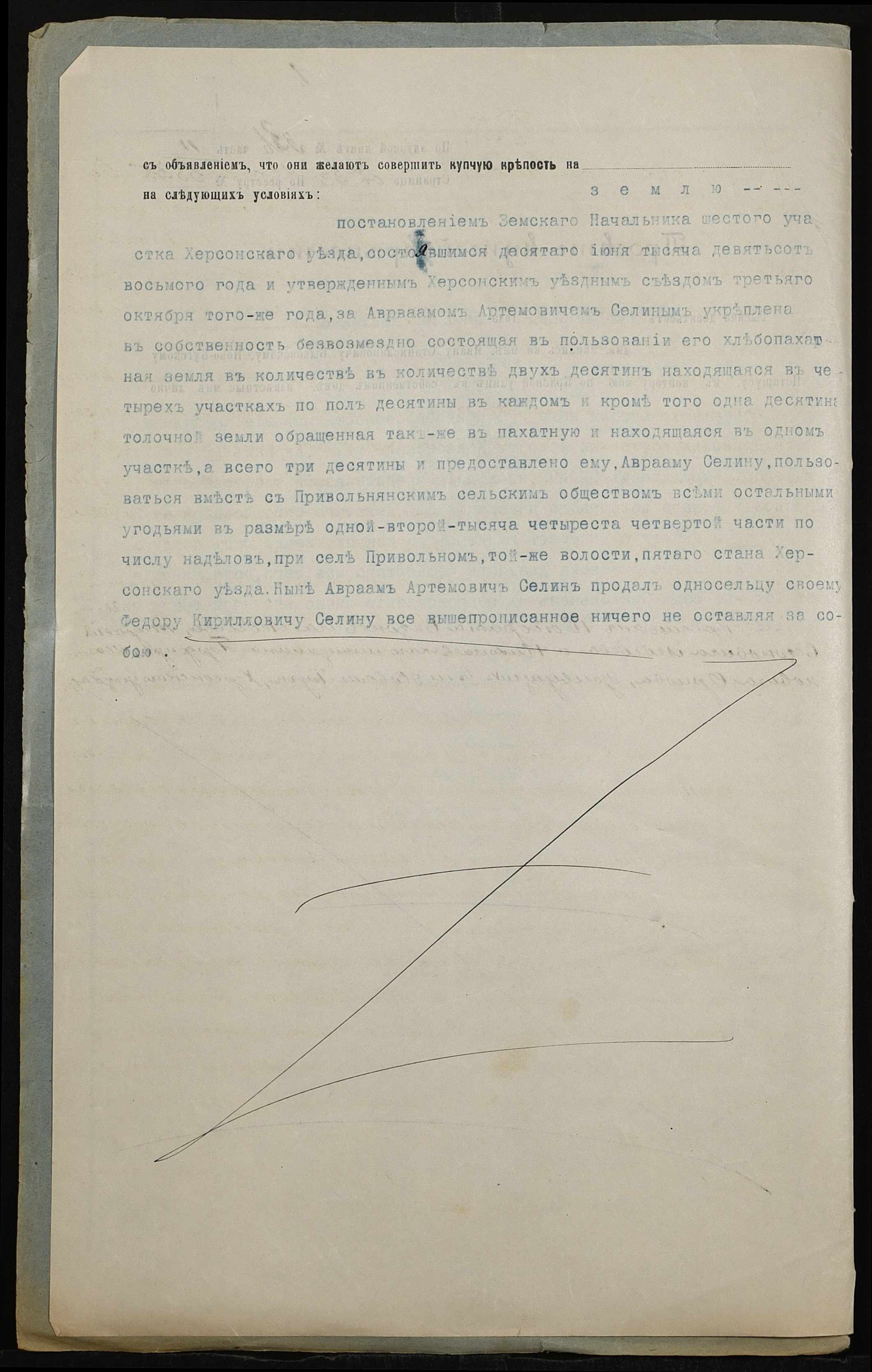 • • • • Справа № 167 “Справа про вчинення купчої про продаж землі селянином Селіним Аврамом (Селиным Авраамом) Артемовичем на користь селянина Селіна (Селина) Федора Кириловича (Кирилловича)”