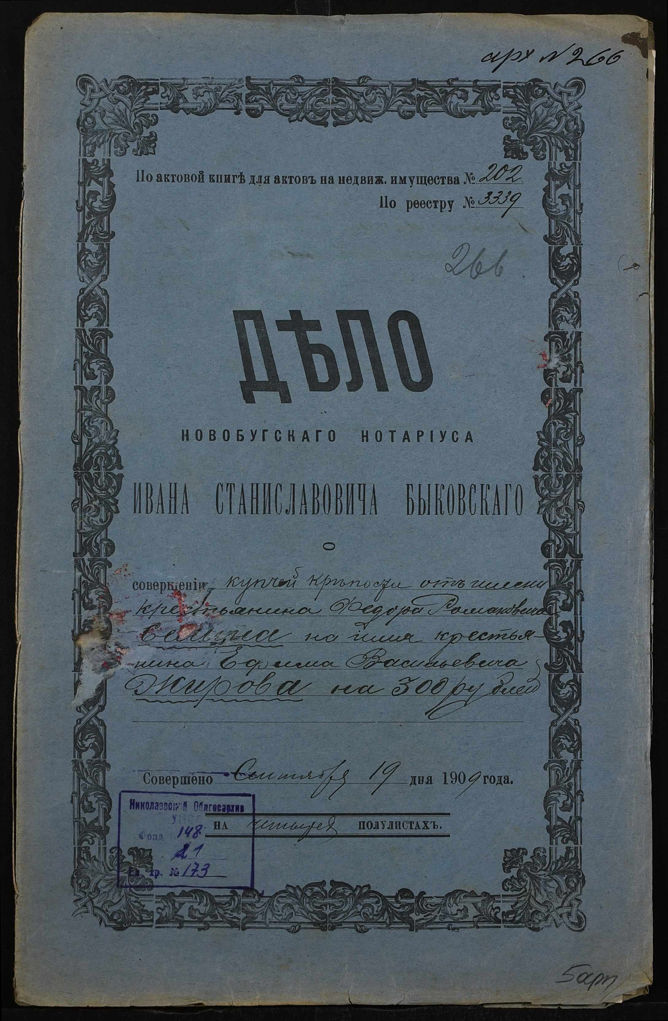 ◦ ◦ Фонд № 148 “Контора новобузького нотаріуса Биковського Івана Станіславовича”