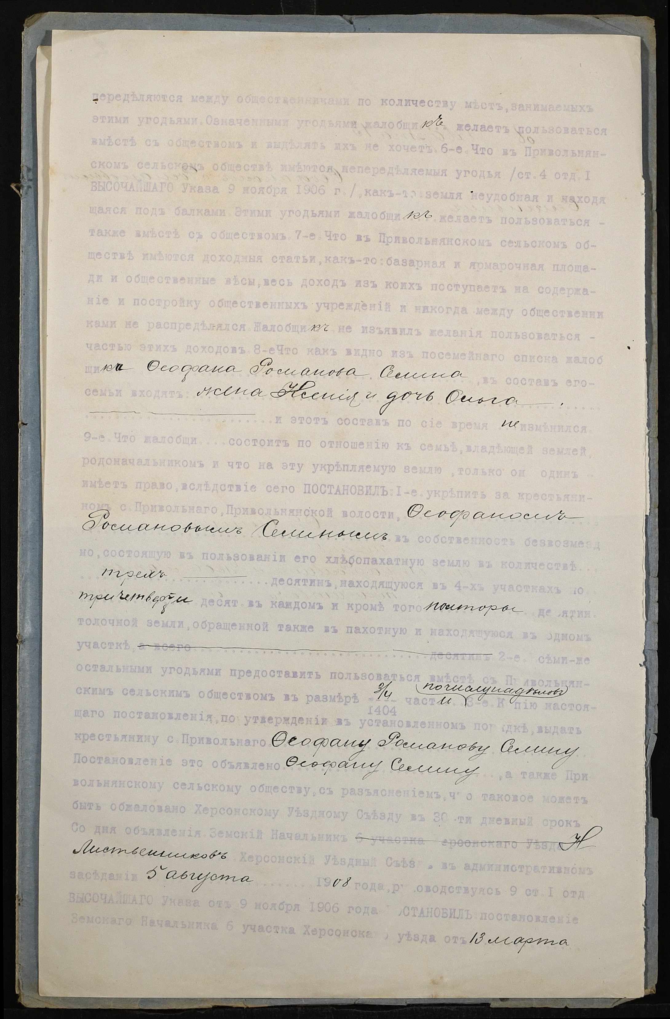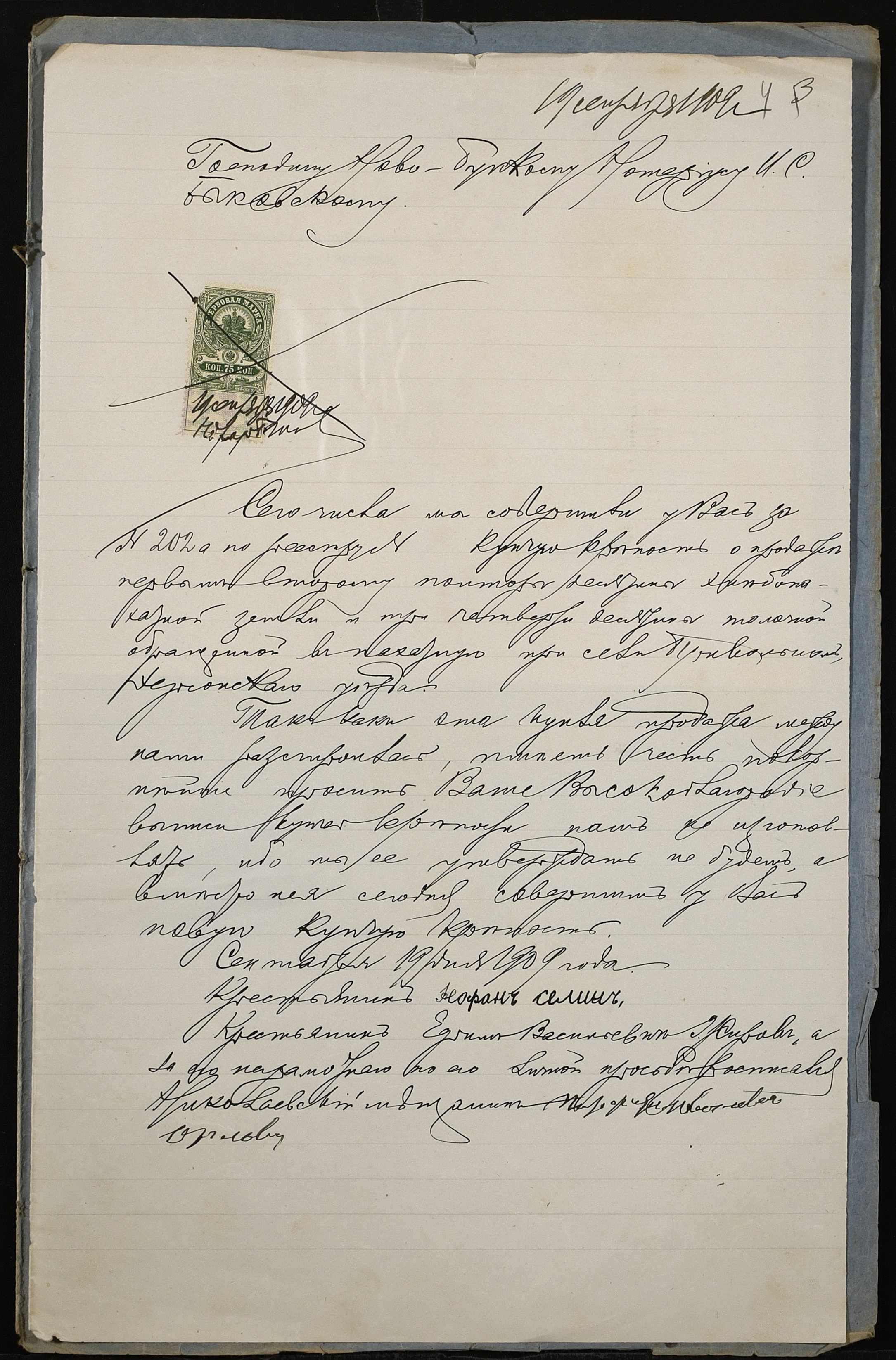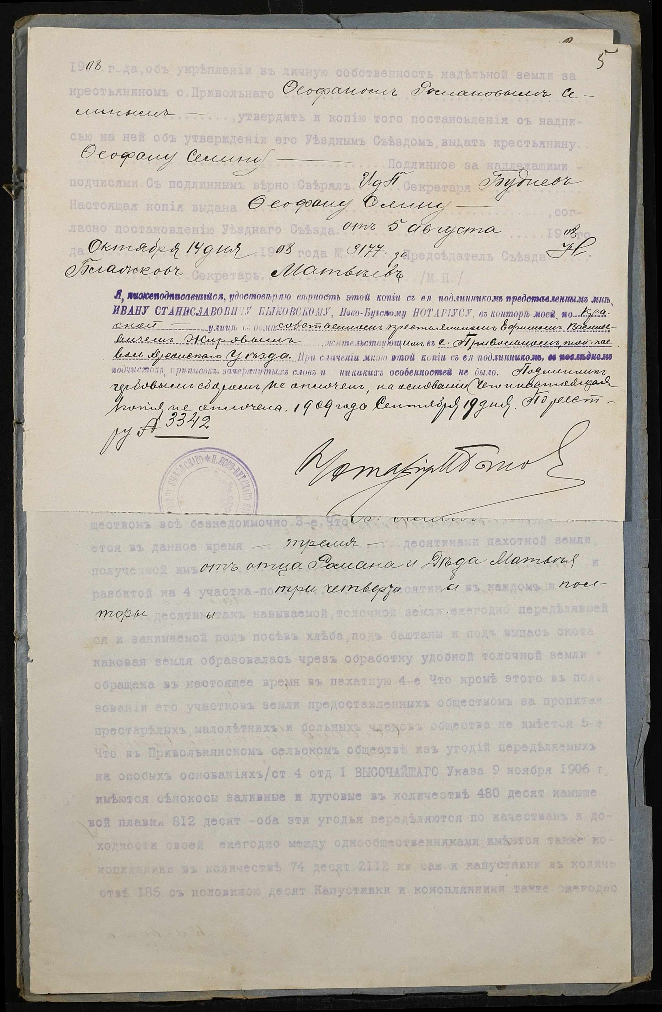 • • • • Справа № 173 “Справа про вчинення купчої про продаж землі селянином Селіним (Селиным) Федором Романовичем на користь селянина Жирова Юхима Васильовича (Ефима Васильевича)”