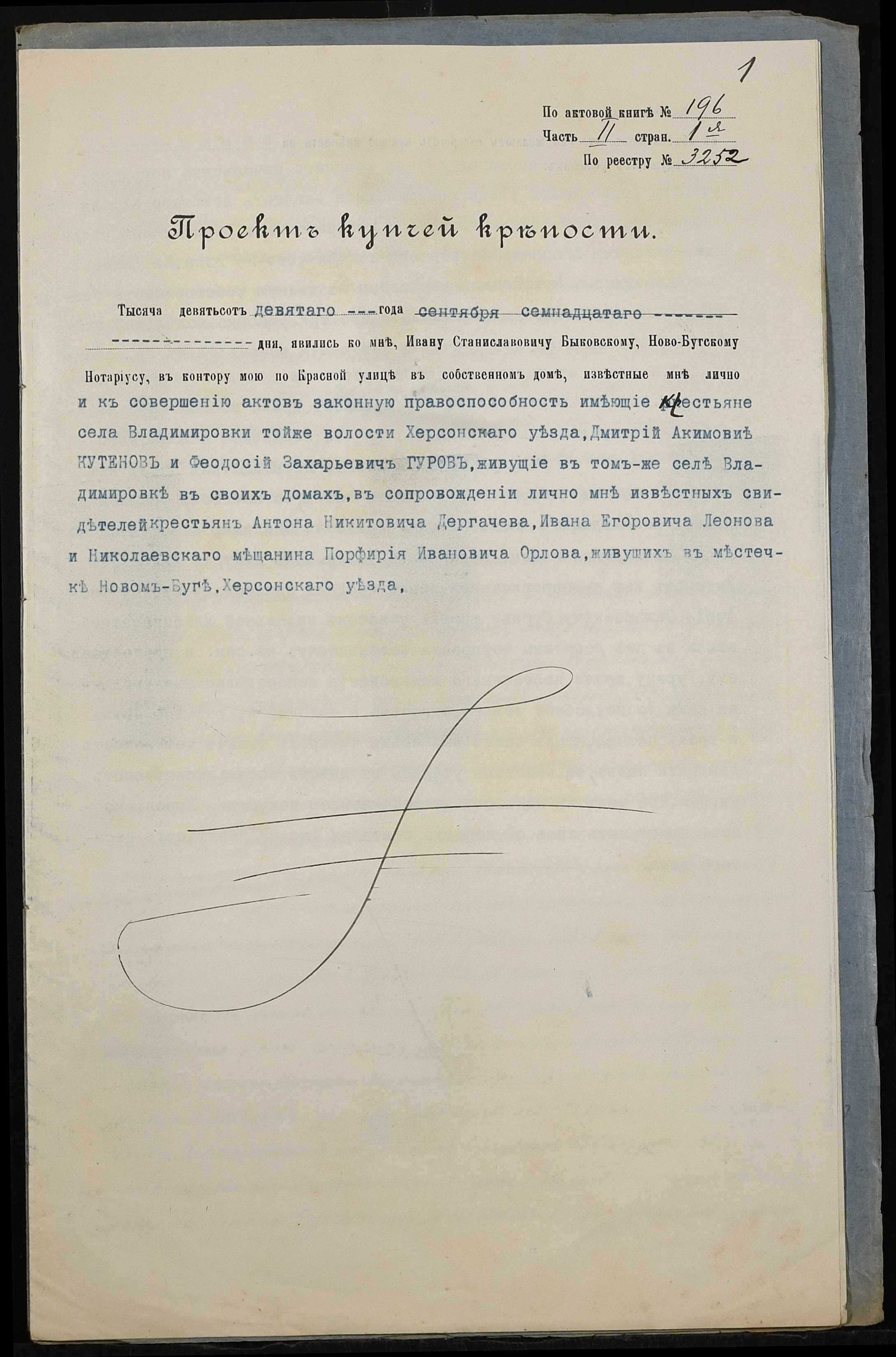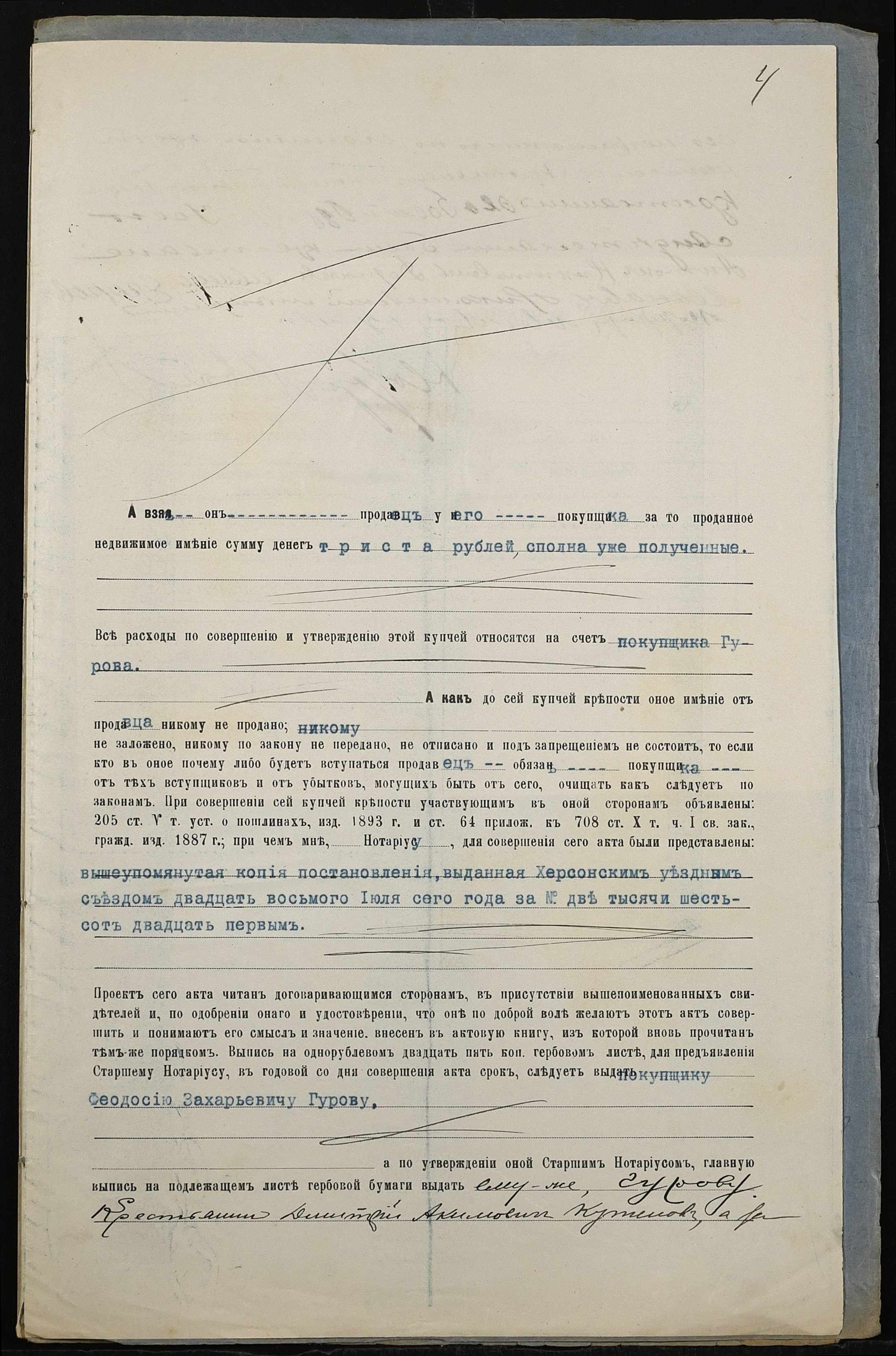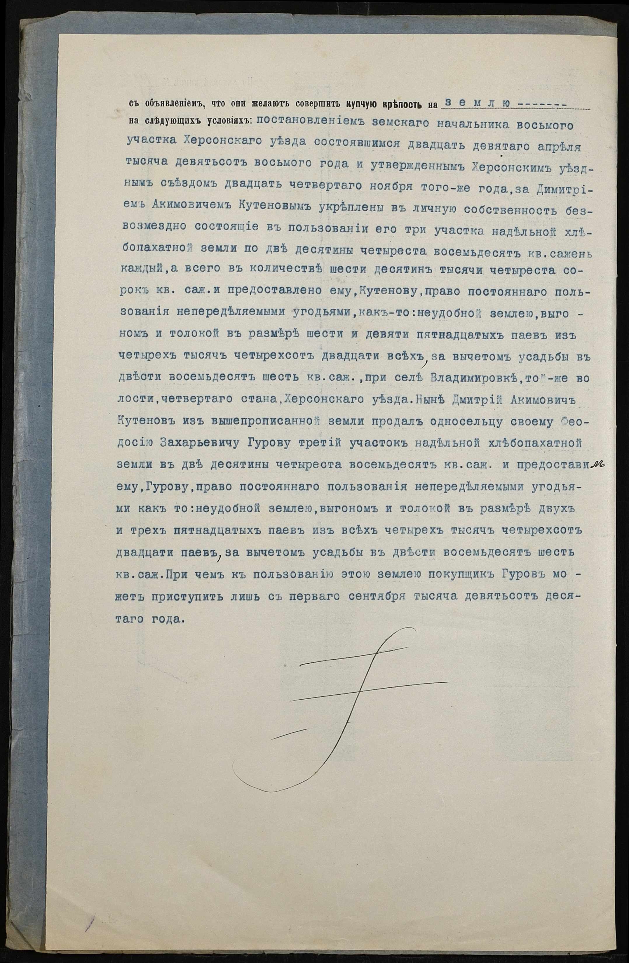 • • • • Справа № 179 “Справа про вчинення купчої про продаж землі селянином Кутеновим Дмитром Микитовичем (Кутеновым Дмитрием Никитовичем) на користь селянина Гурова Феодосія (Феодосия) Захаровича”