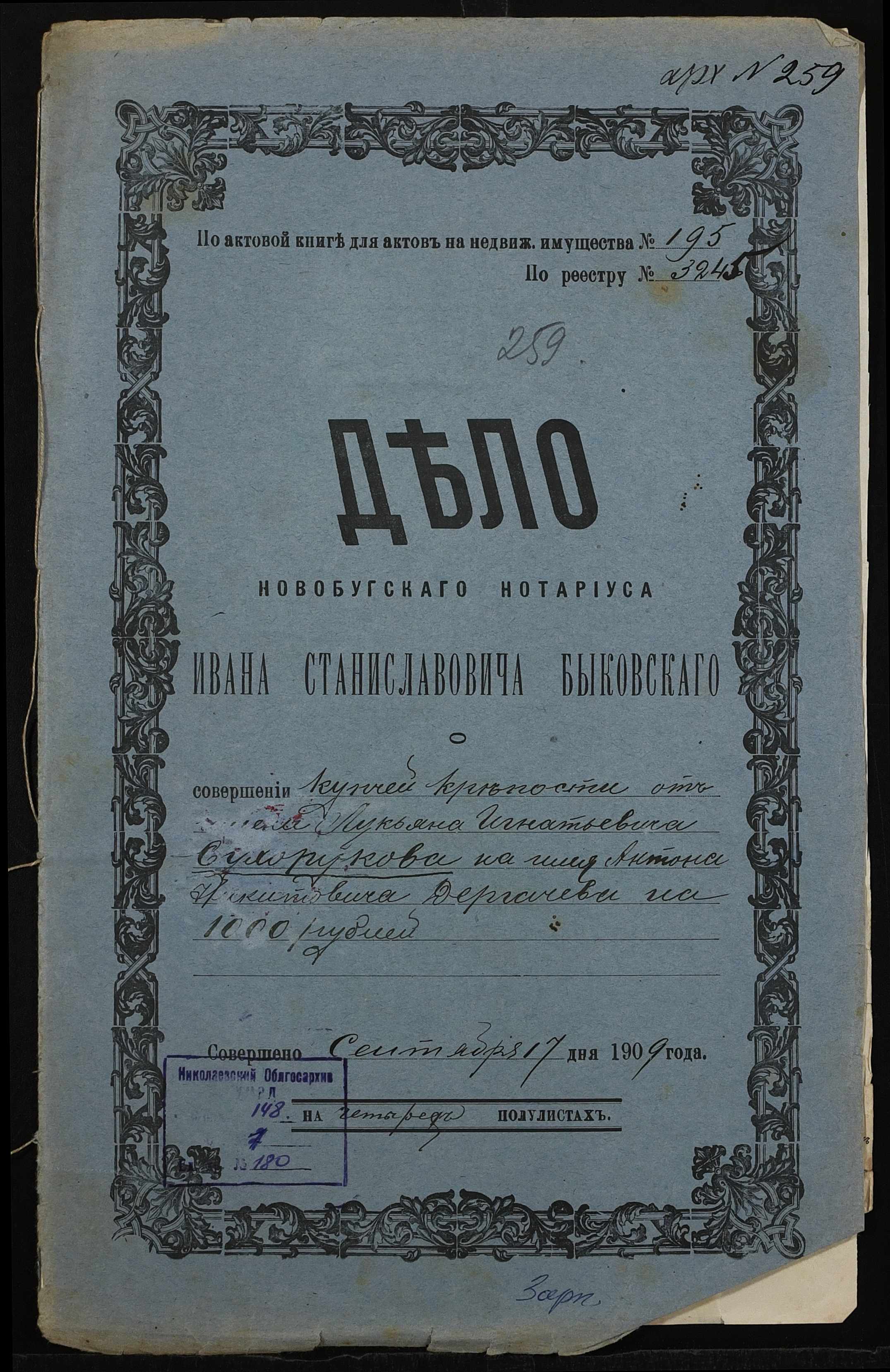 ◦ ◦ Фонд № 148 “Контора новобузького нотаріуса Биковського Івана Станіславовича”