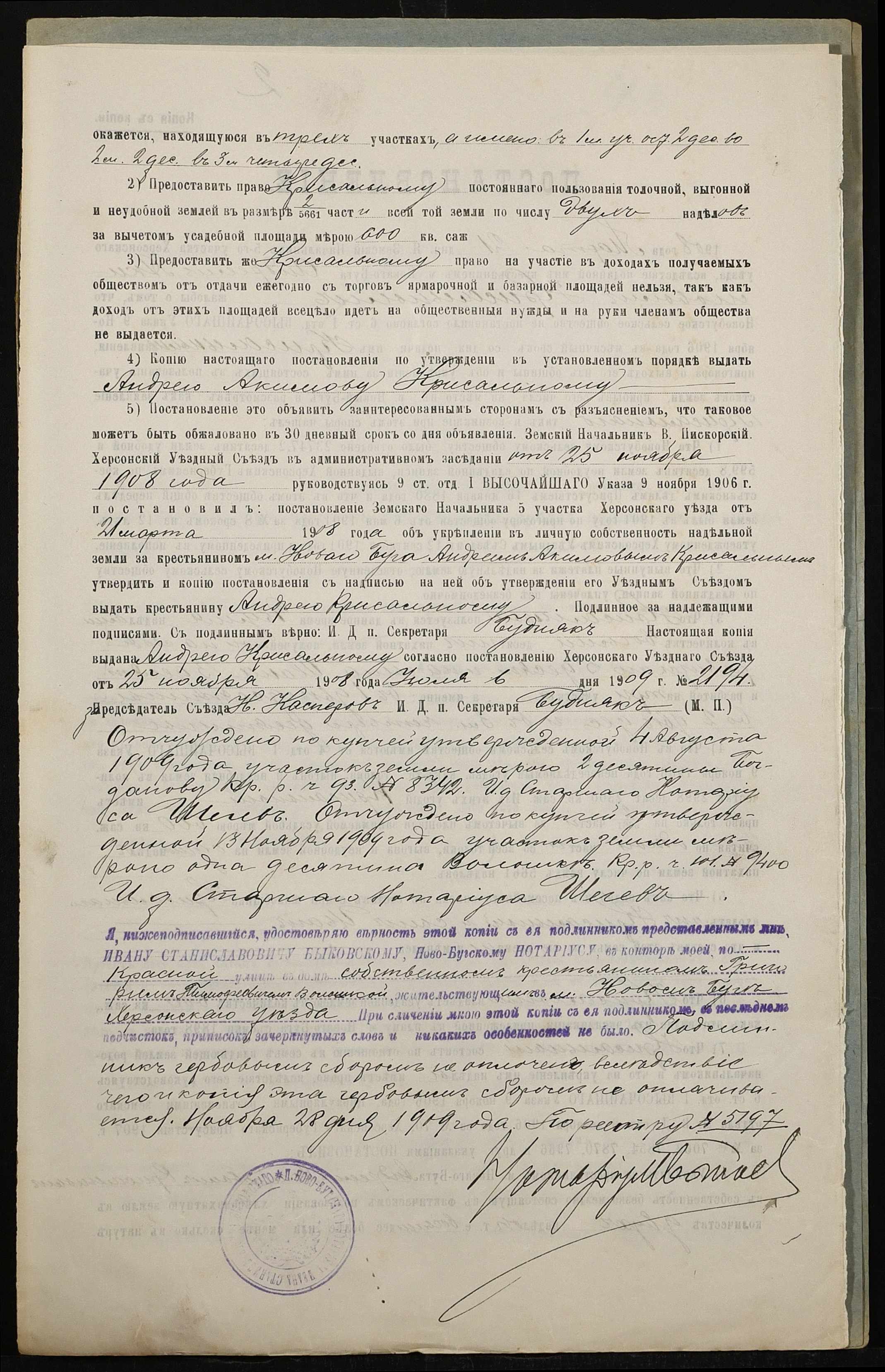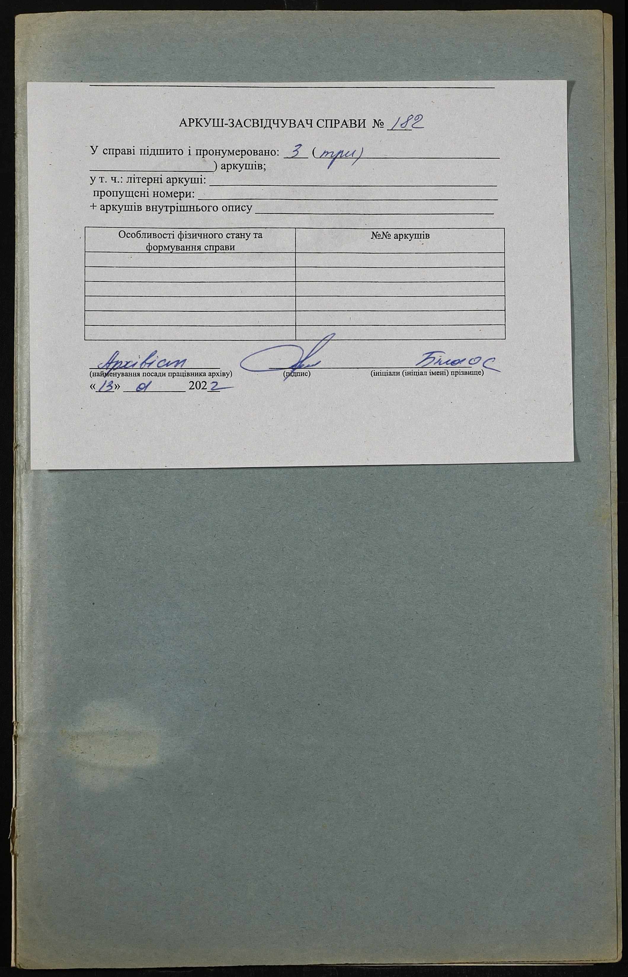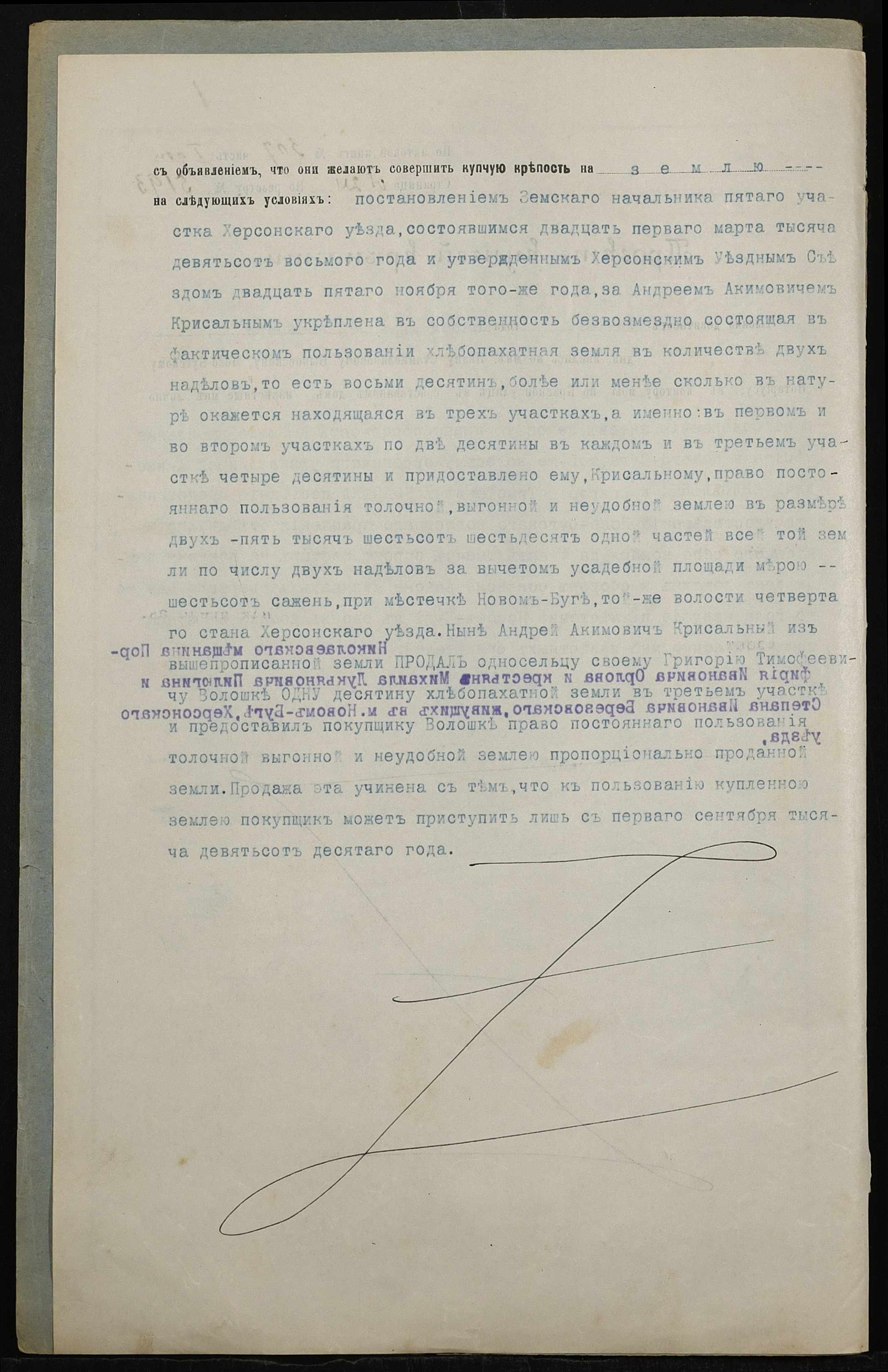 • • • • Справа № 182 “Справа про вчинення купчої про продаж землі селянином Крисальським Андрієм Якимовичем (Крисальским Андреем Акимовичем) на користь селянина Волошки Григорія Тимофійовича (Григория Тимофеевича)”