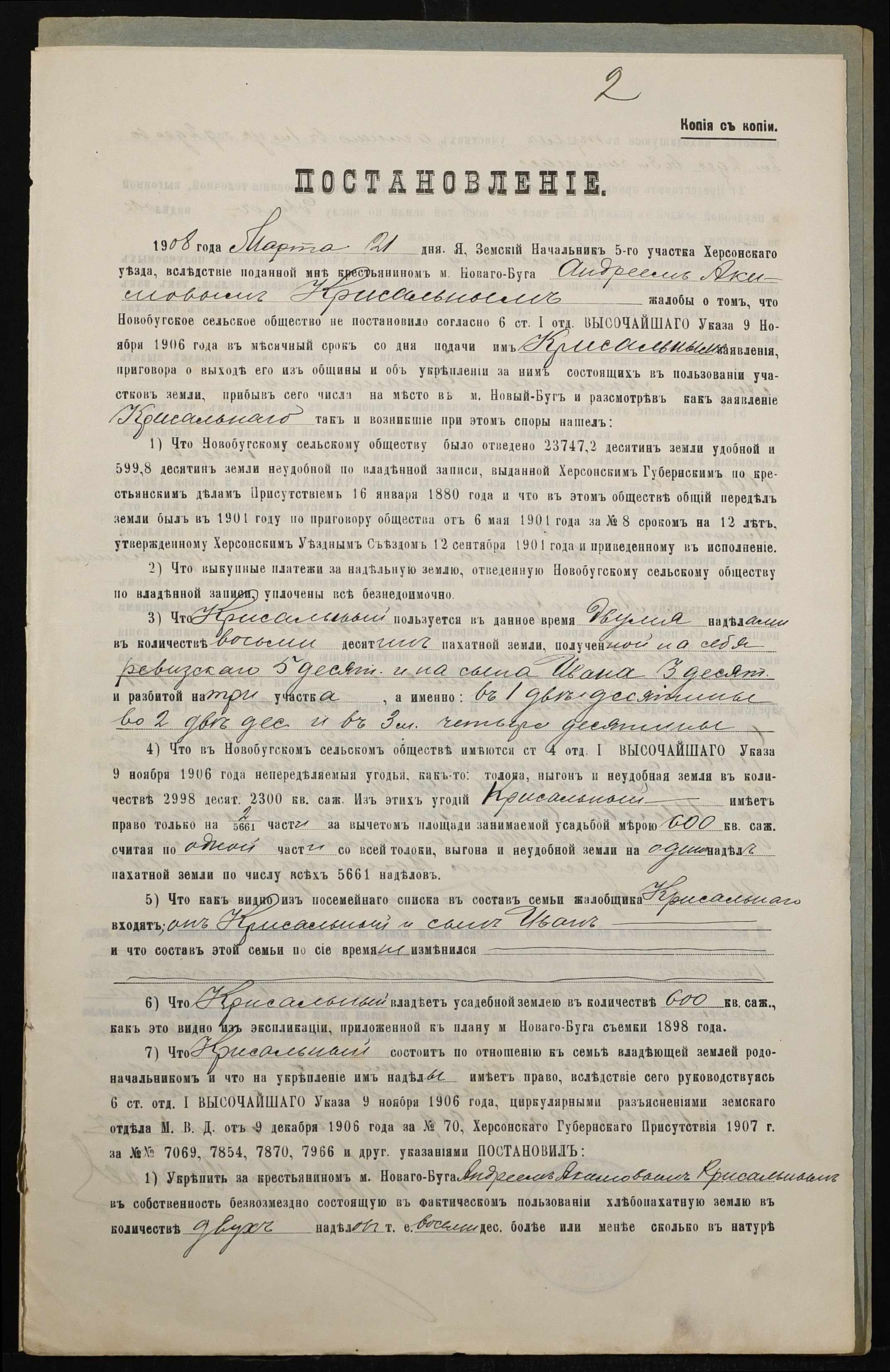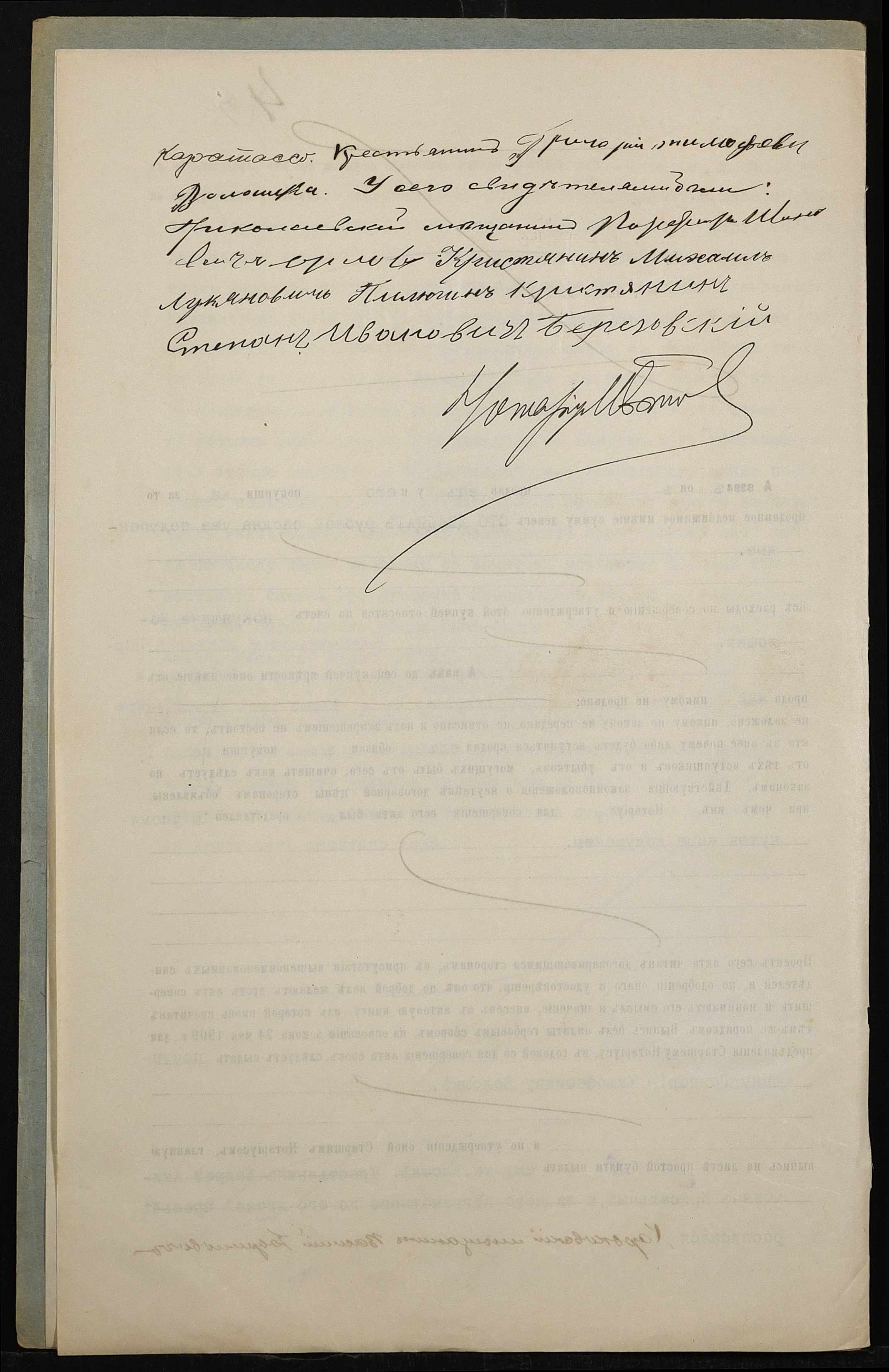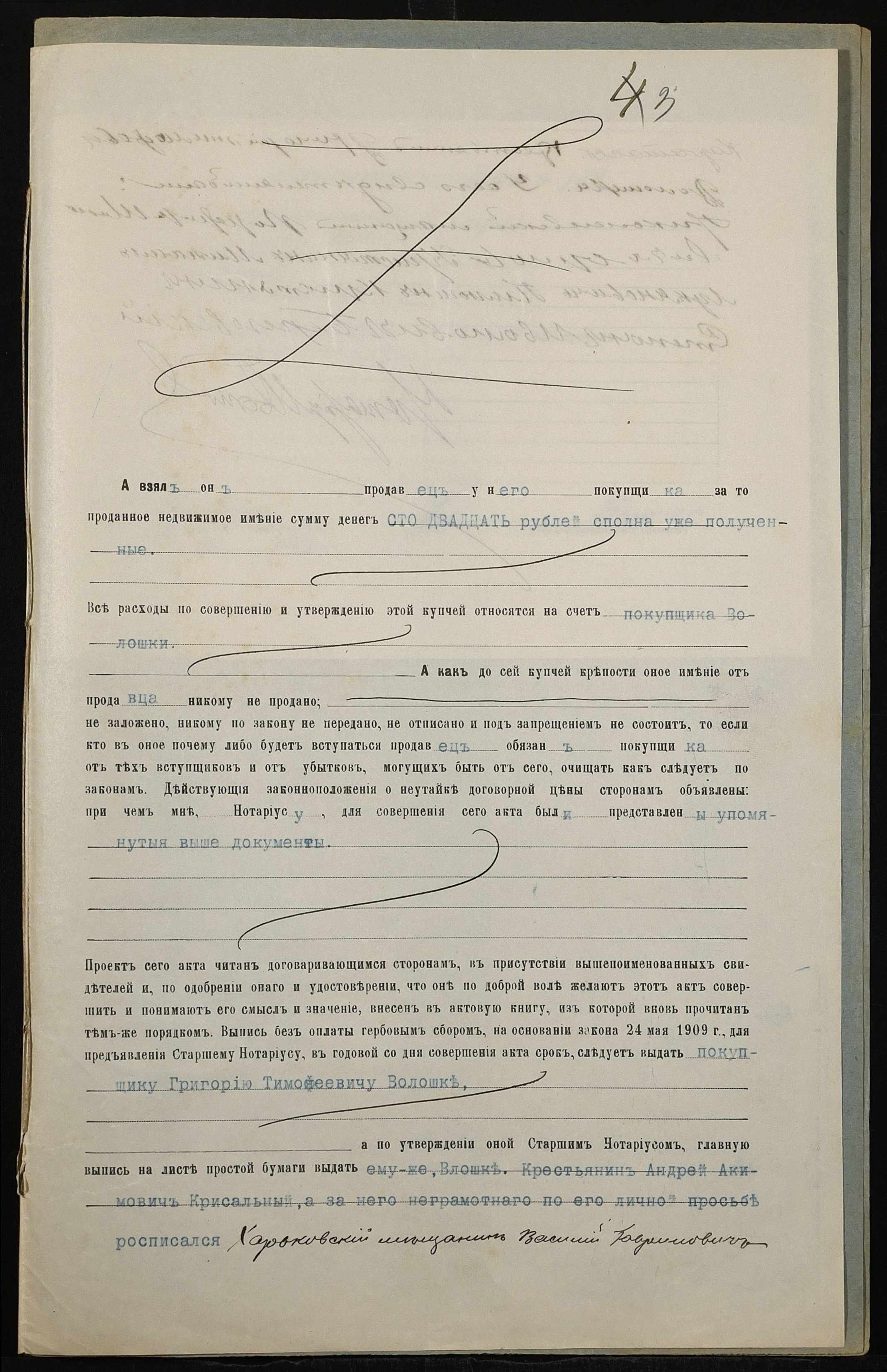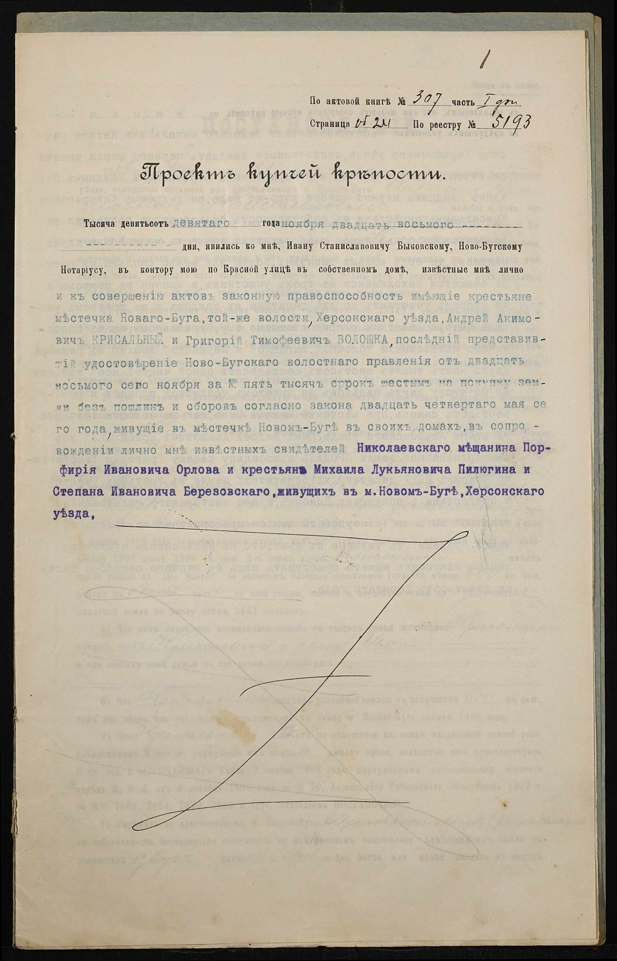 • • • • Справа № 182 “Справа про вчинення купчої про продаж землі селянином Крисальським Андрієм Якимовичем (Крисальским Андреем Акимовичем) на користь селянина Волошки Григорія Тимофійовича (Григория Тимофеевича)”