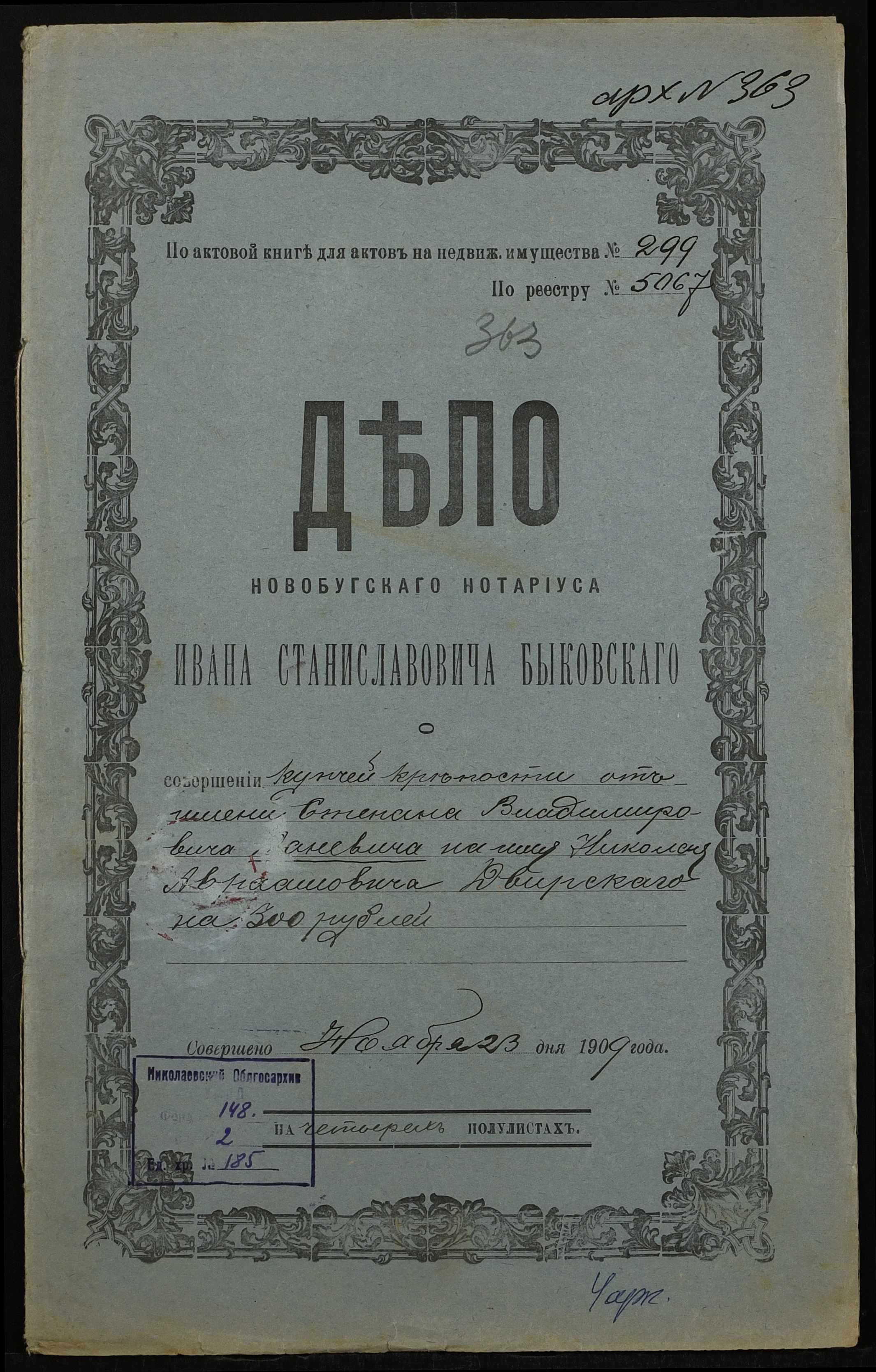 ◦ ◦ Фонд № 148 “Контора новобузького нотаріуса Биковського Івана Станіславовича”
