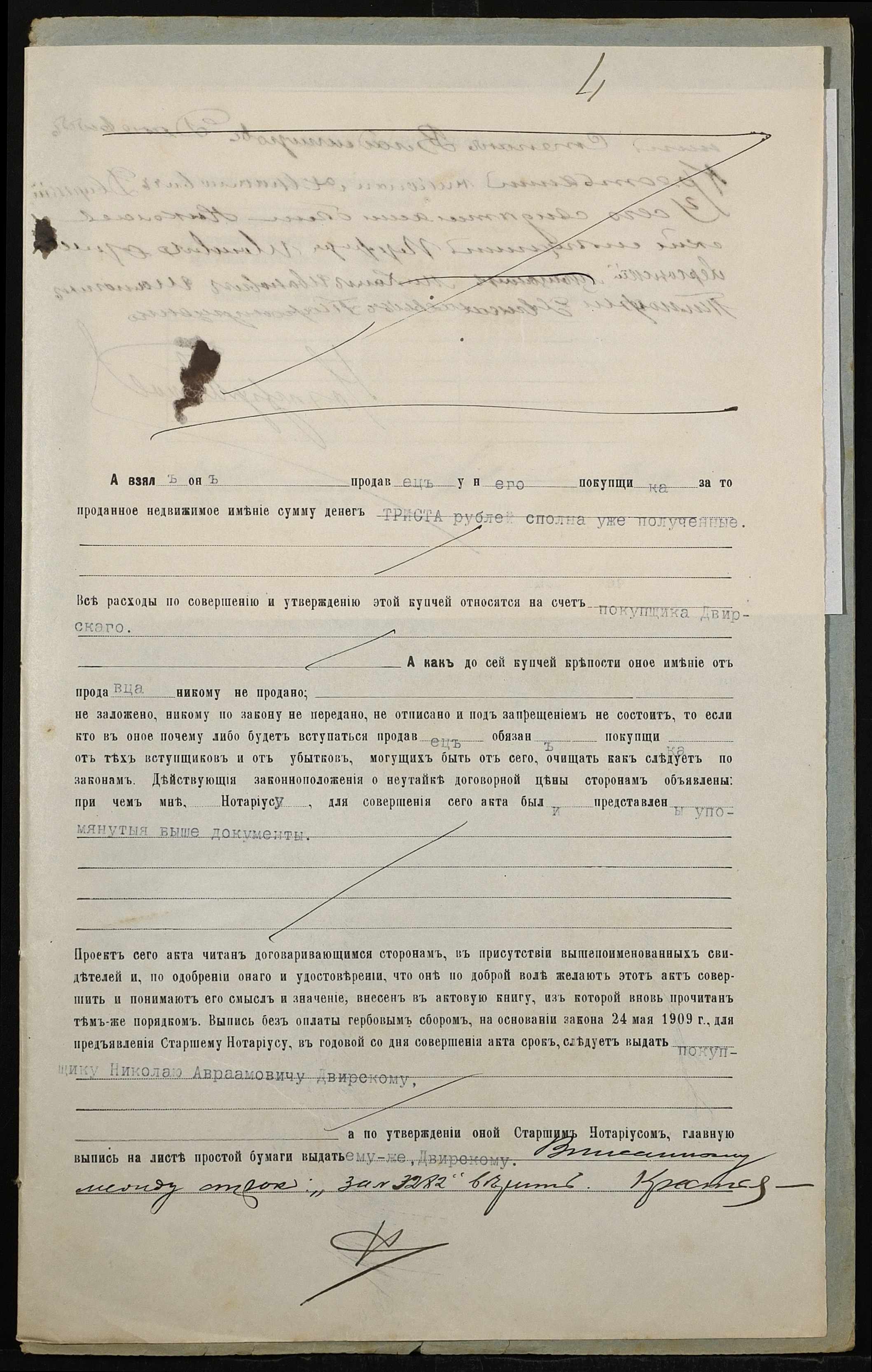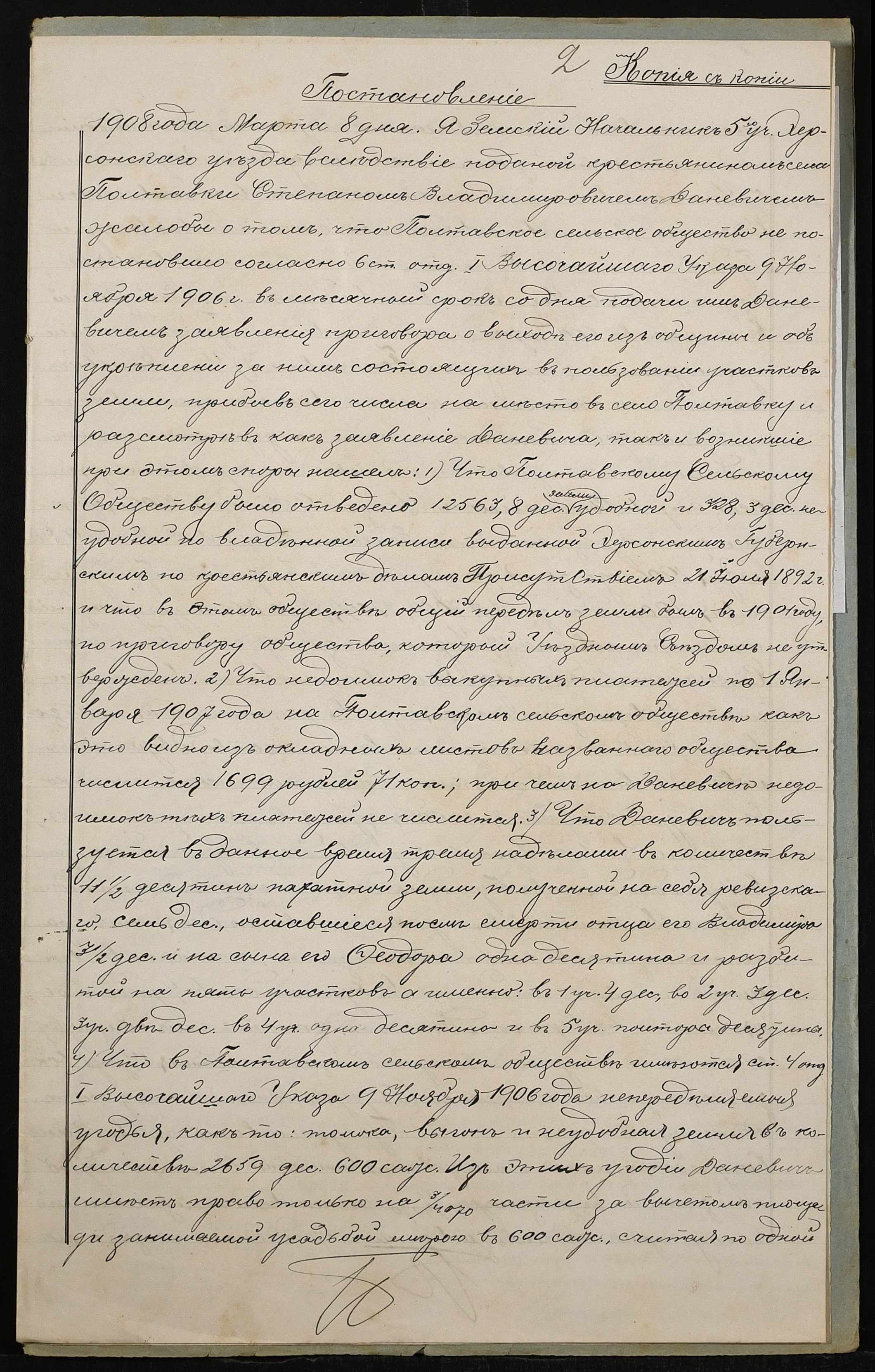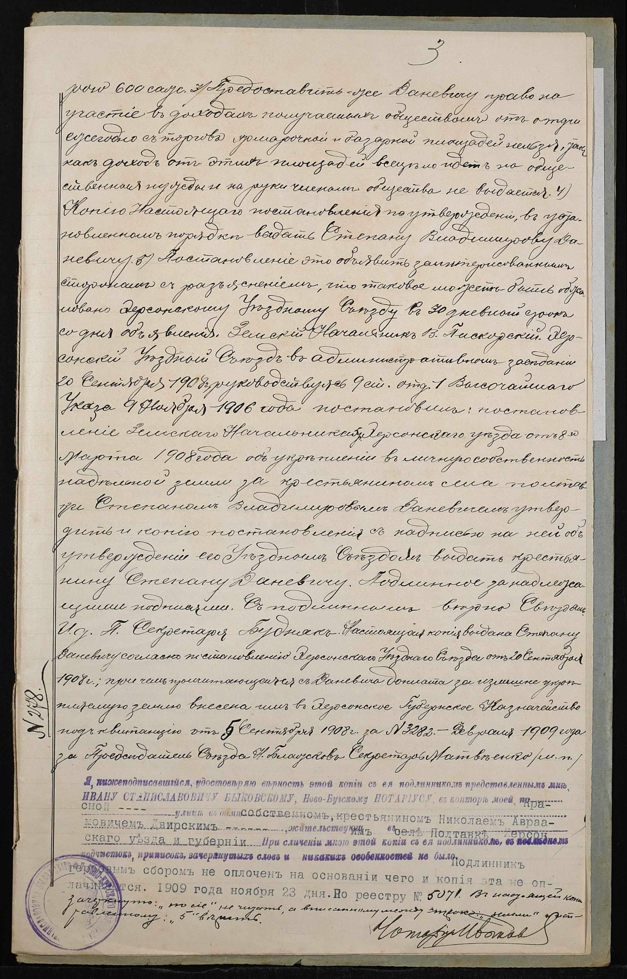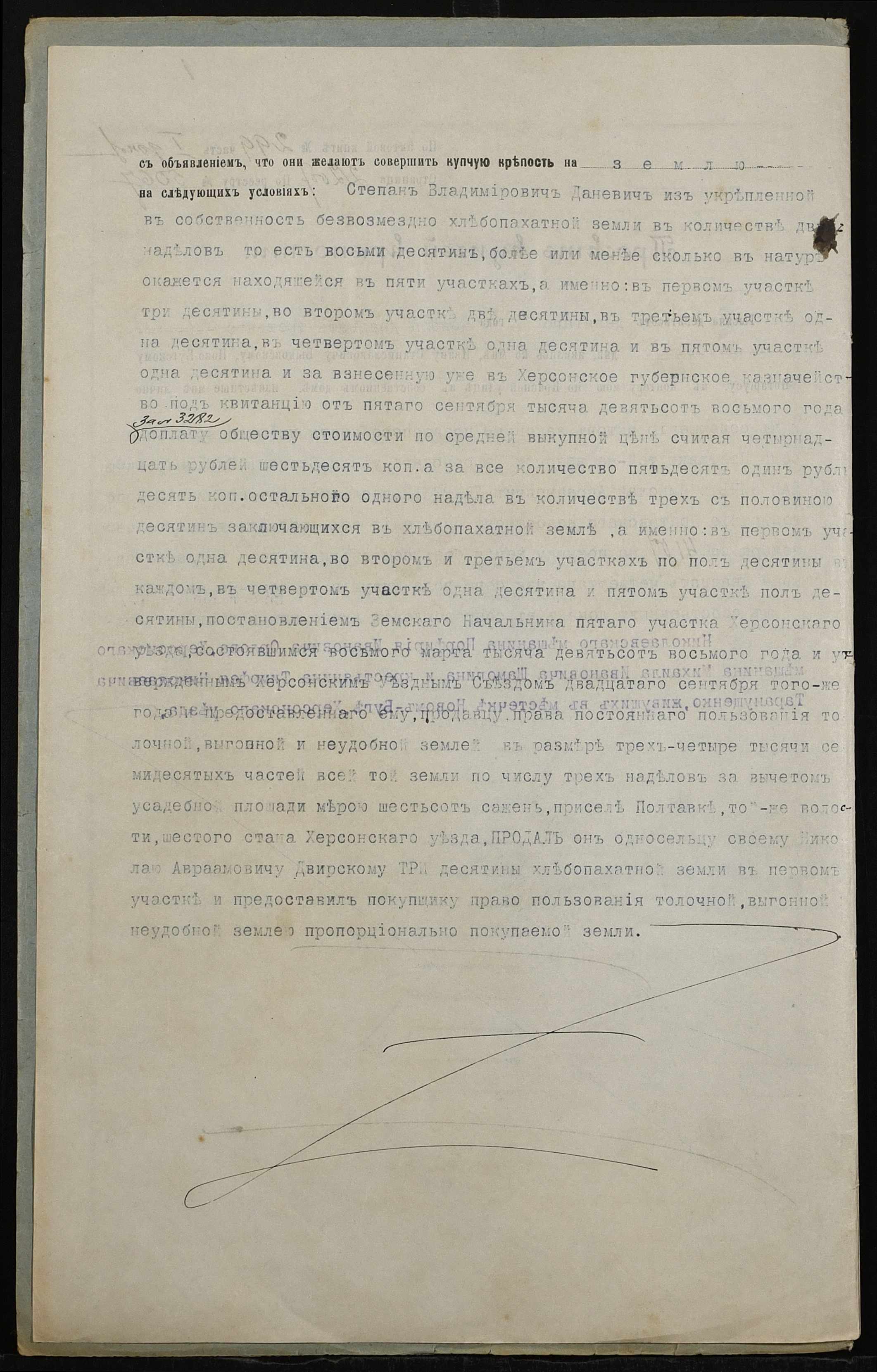 • • • • Справа № 185 “Справа про вчинення купчої про продаж землі селянином Даневичем Степаном Володимировичем (Владимировичем) на користь селянина Двирського Миколи Аврамовича (Двирского Николая Авраамовича)”