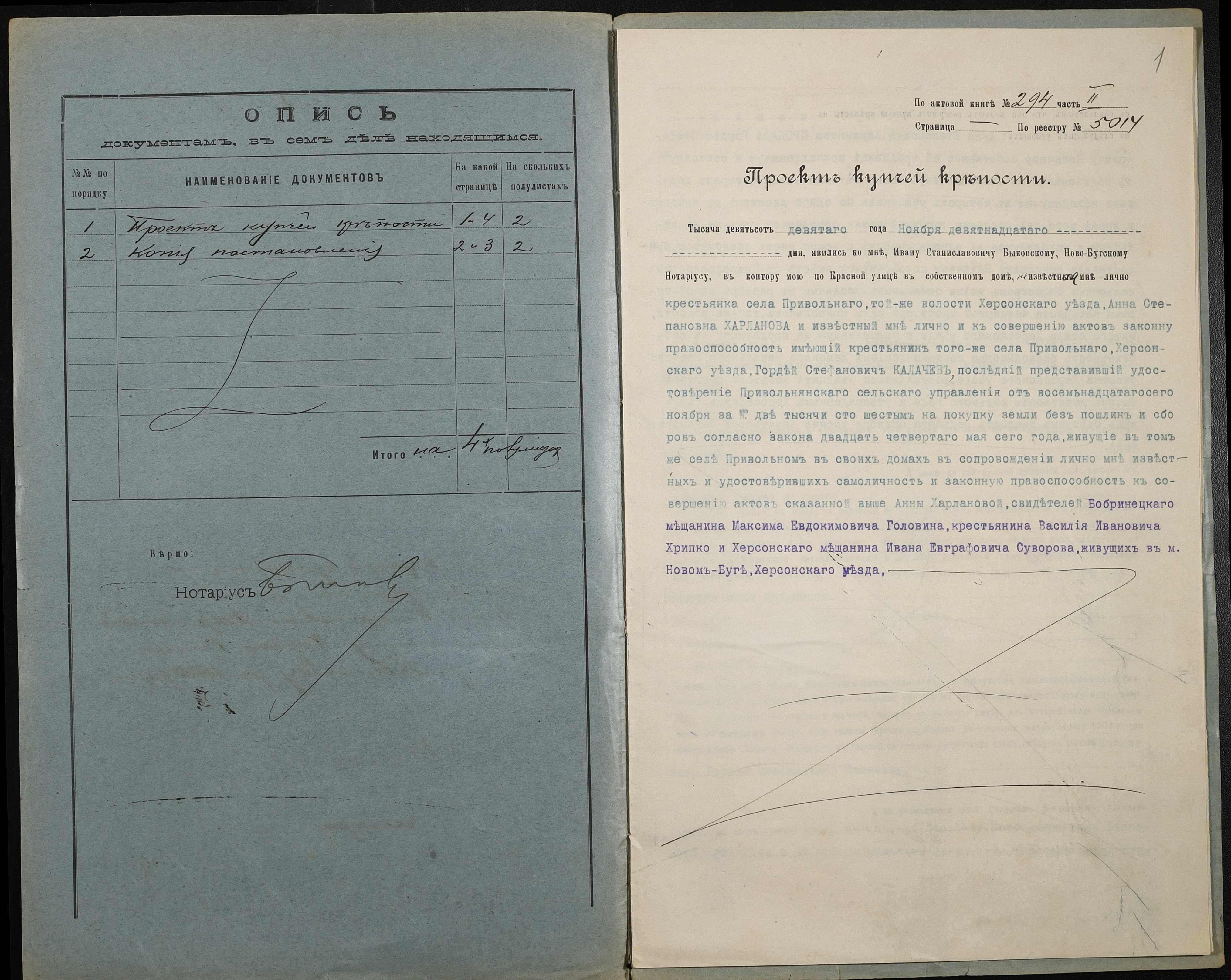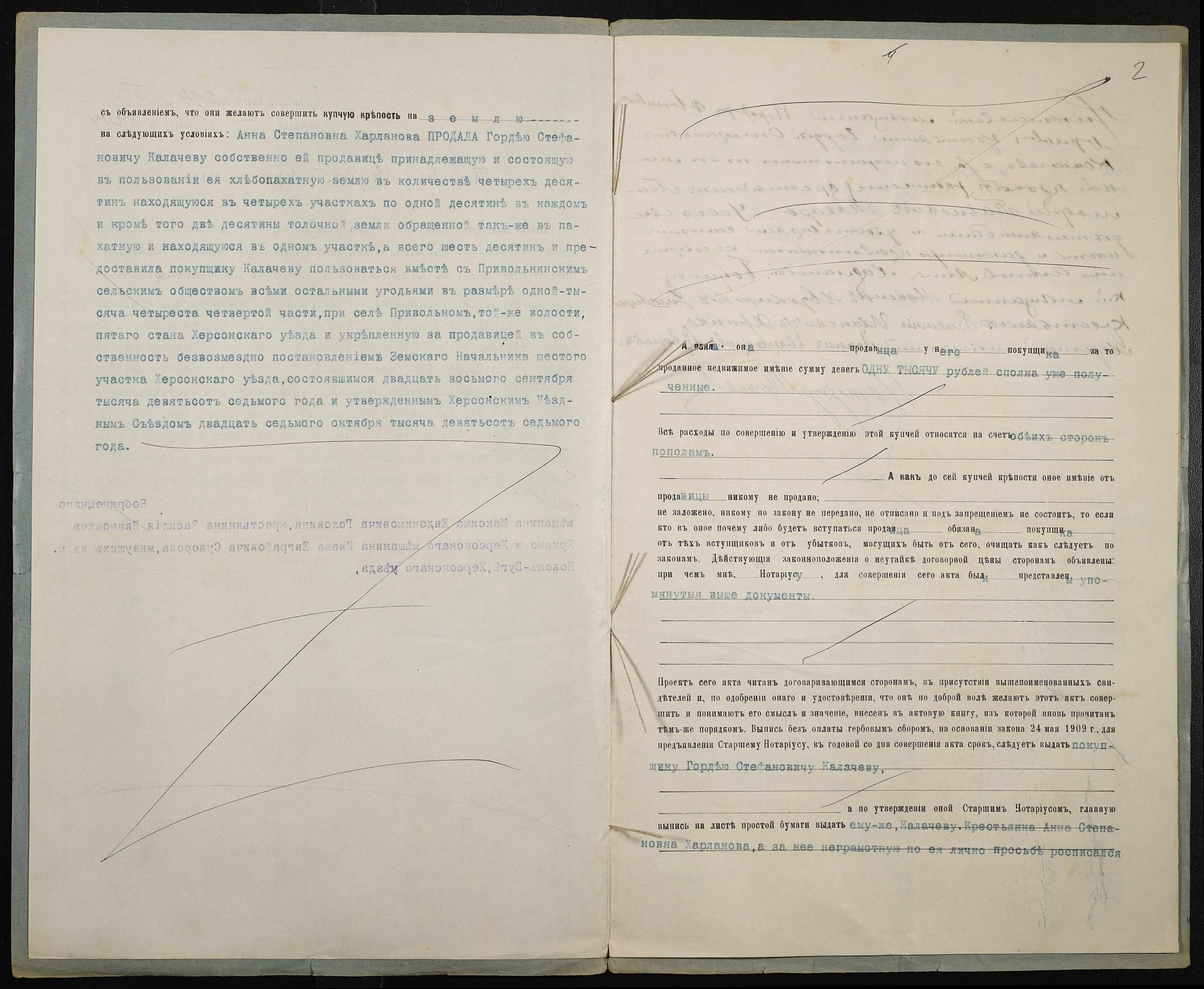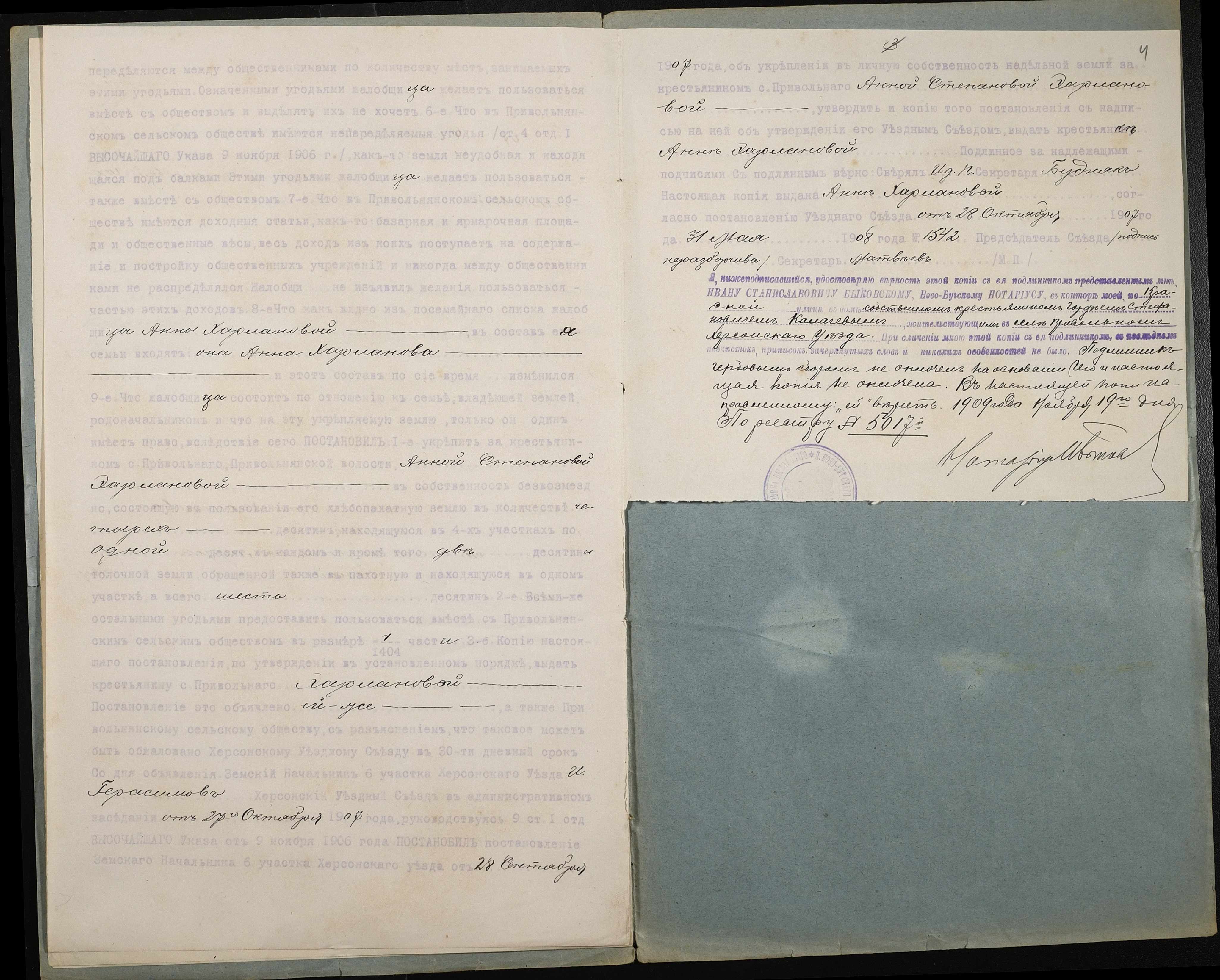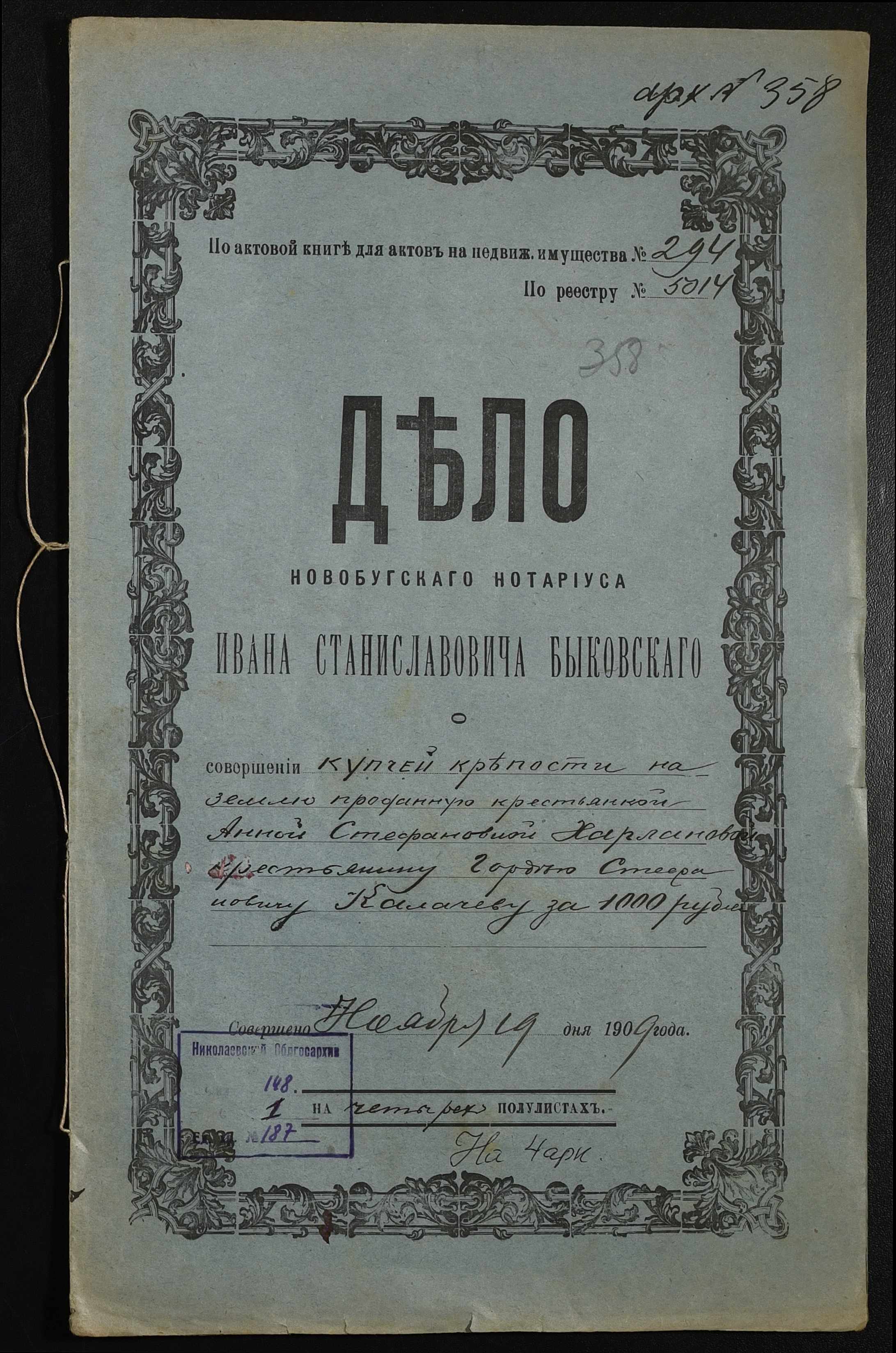 • • • • Справа № 187 “Справа про вчинення купчої про продаж землі селянкою Харлановою Ганною Стефанівною (Харлановой Анной Стефановной) на користь селянина Калачова Гордія (Калачева Гордея) Стефановича”