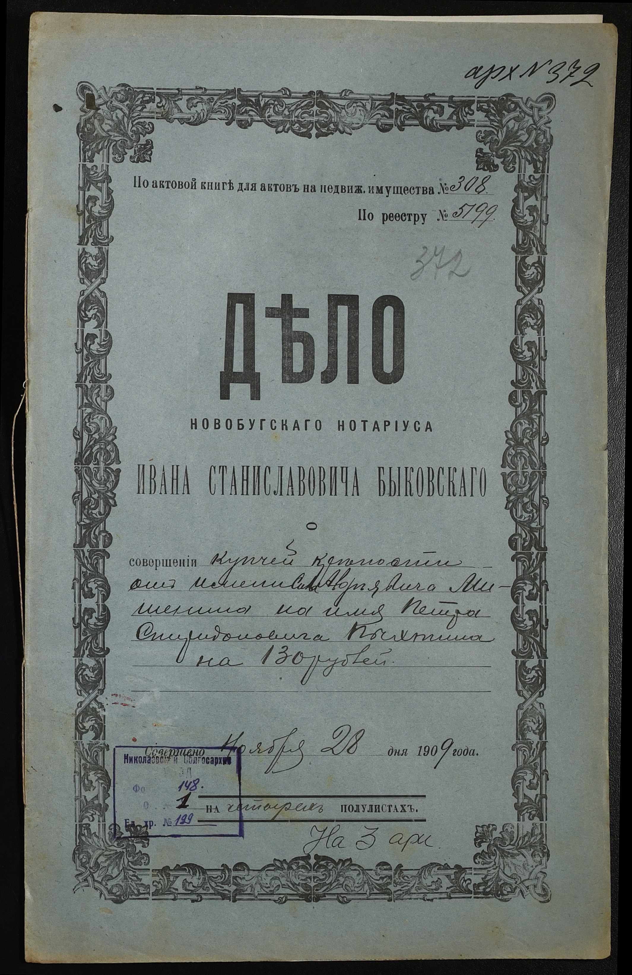 ◦ ◦ Фонд № 148 “Контора новобузького нотаріуса Биковського Івана Станіславовича”