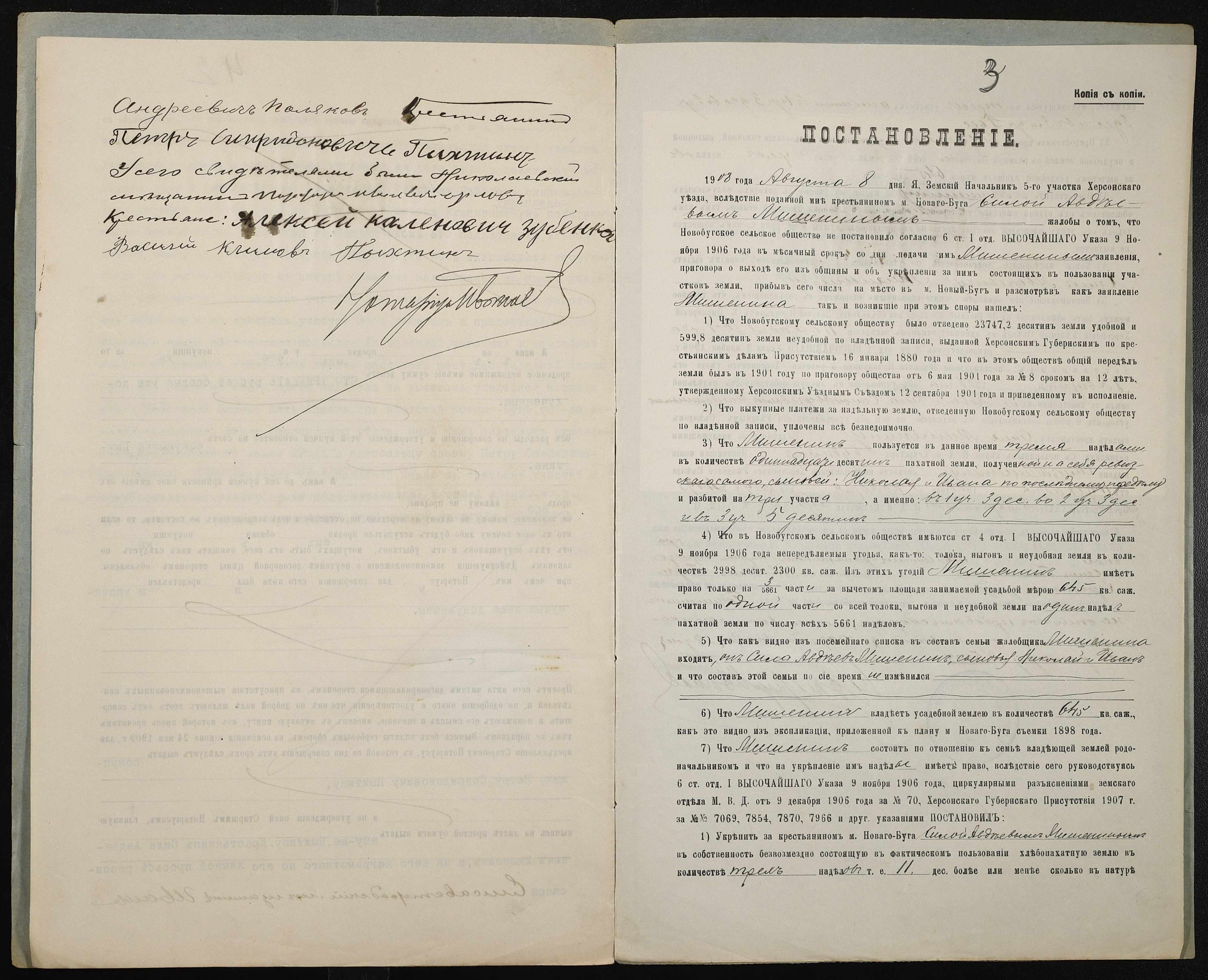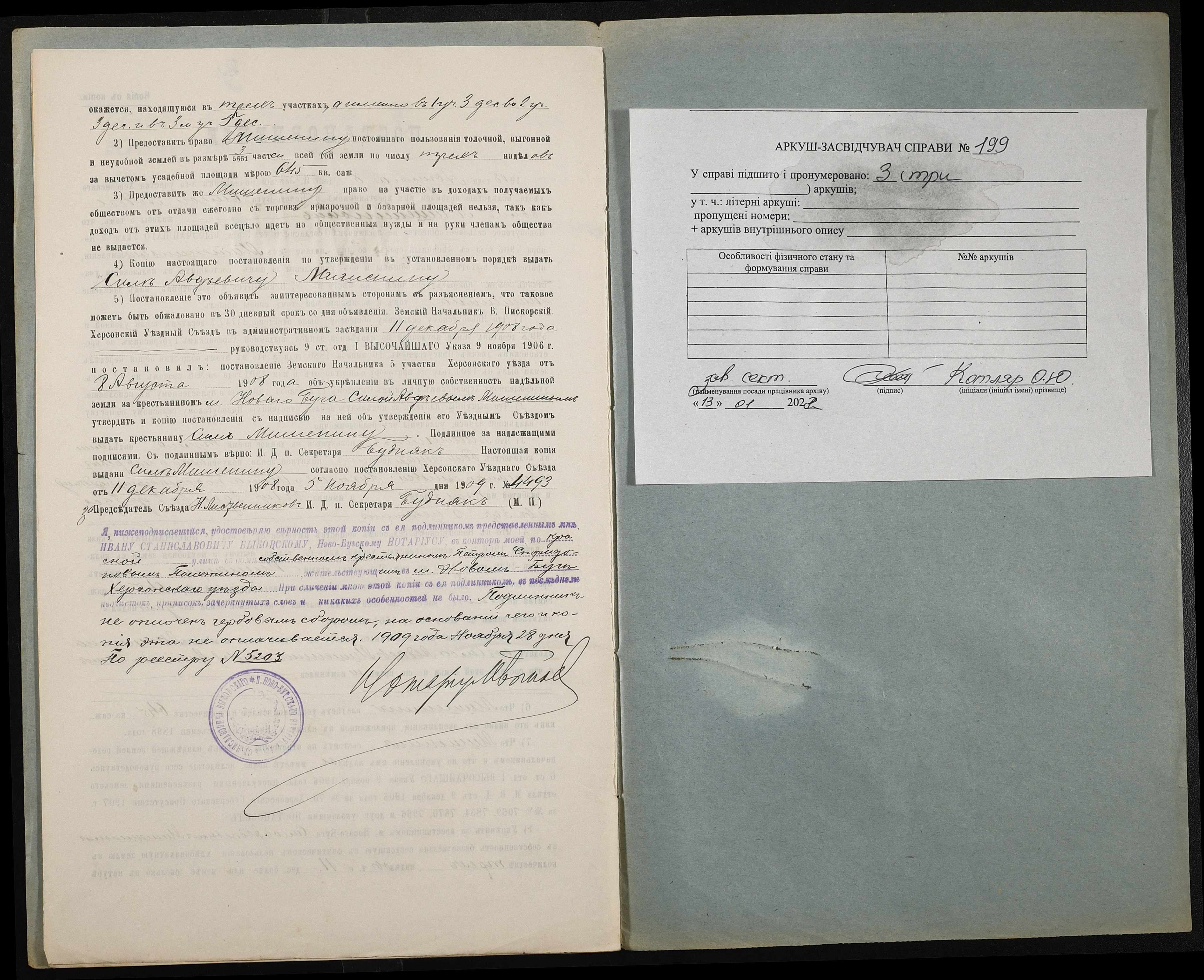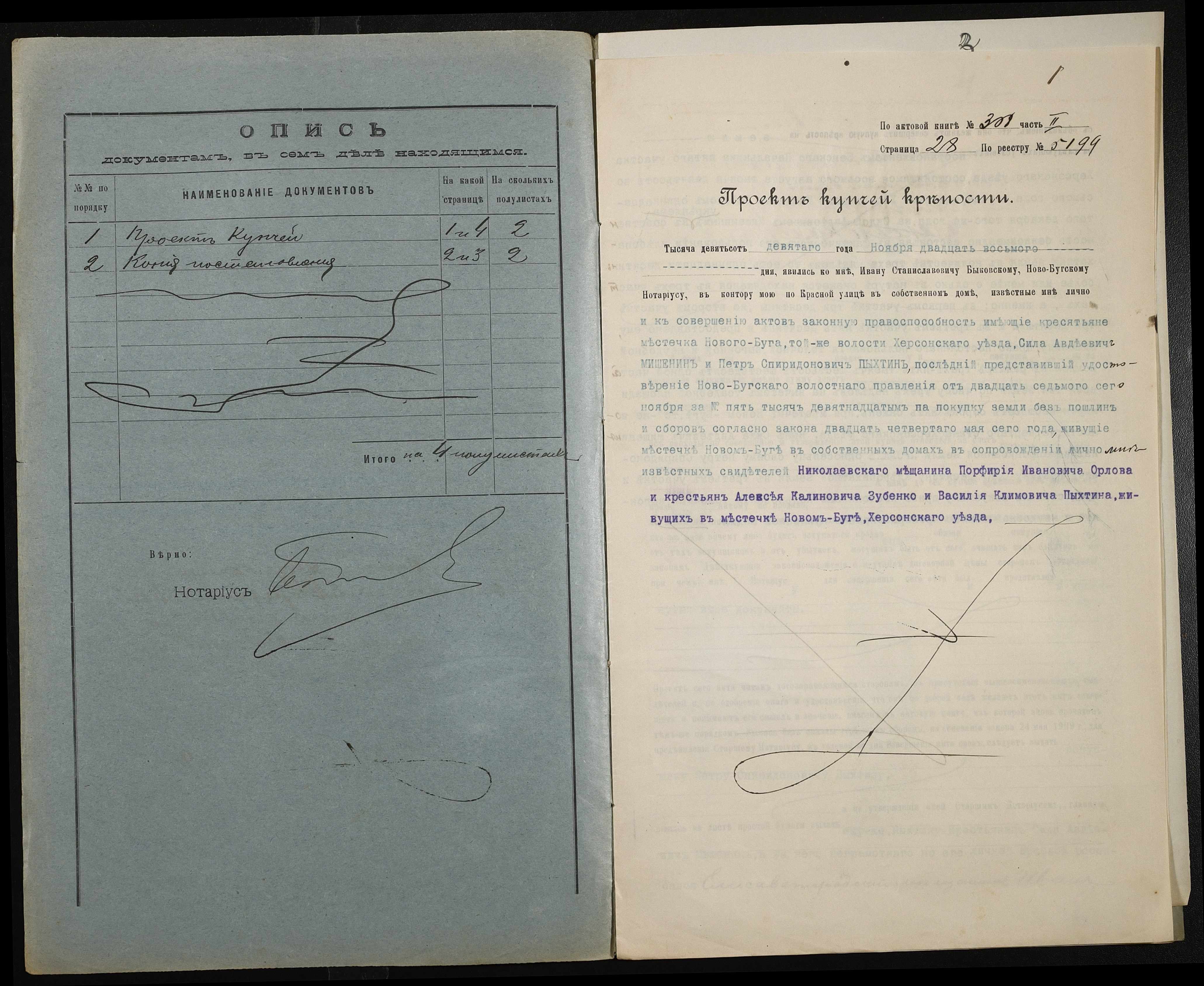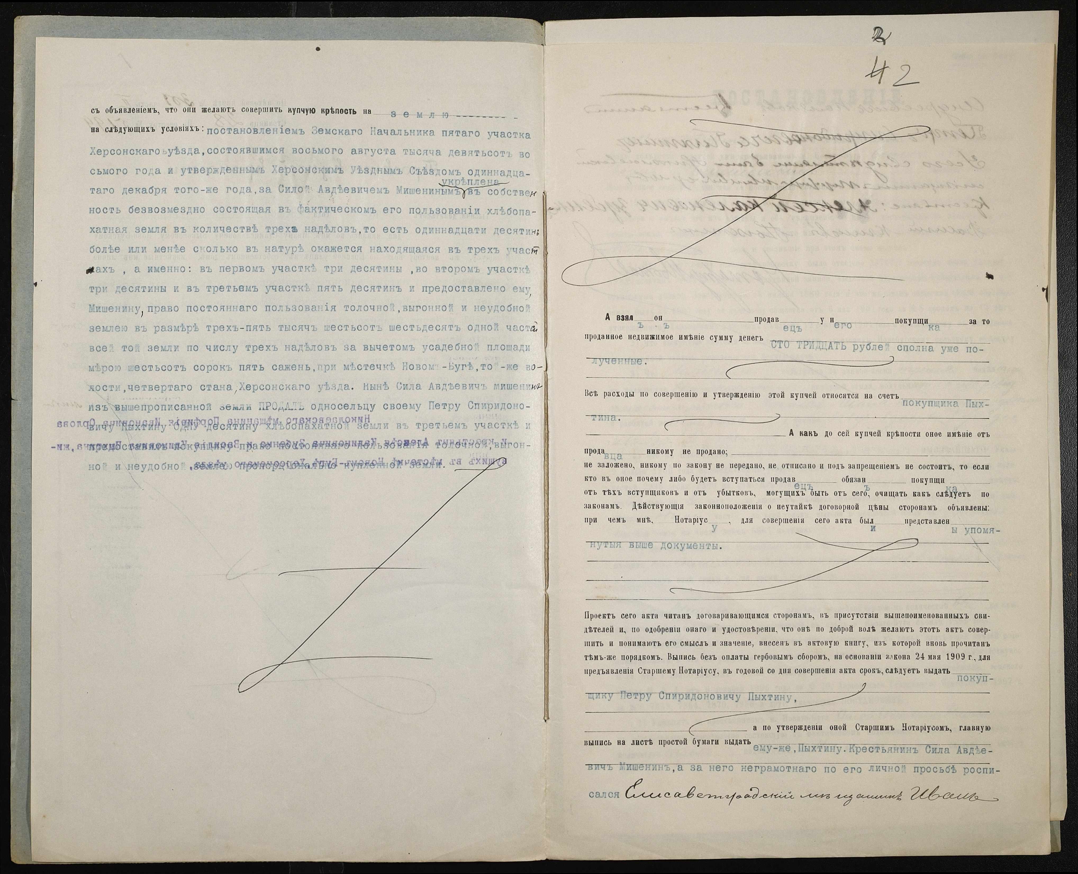 • • • • Справа № 199 “Справа про вчинення купчої про продаж землі селянином Мішеніним Силою Овдійовичем (Мишениным Силой Авдеевичем) на користь селянина Пихтіна (Пыхтина) Петра Спиридоновича”