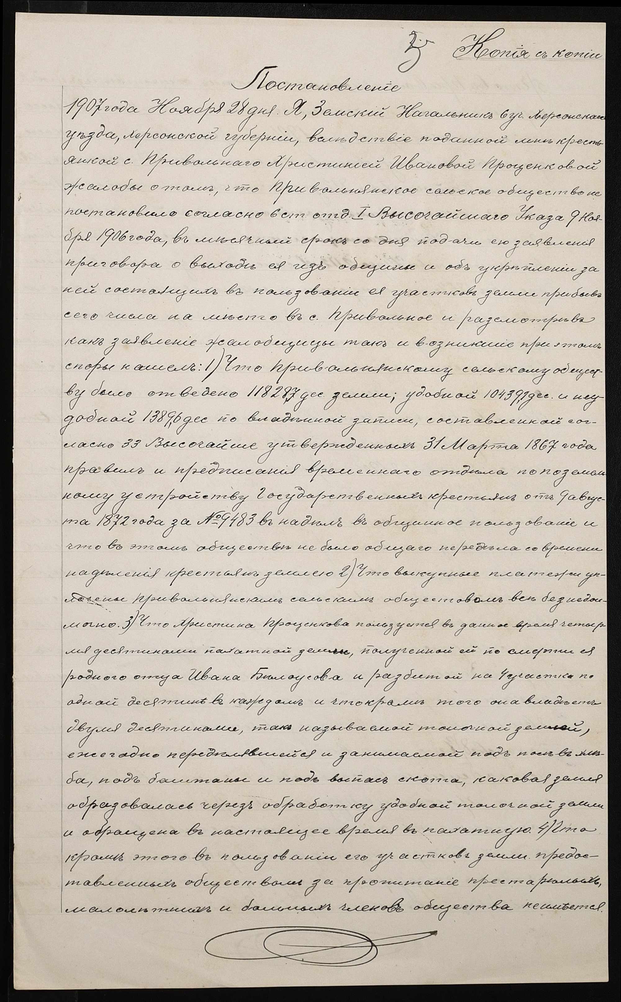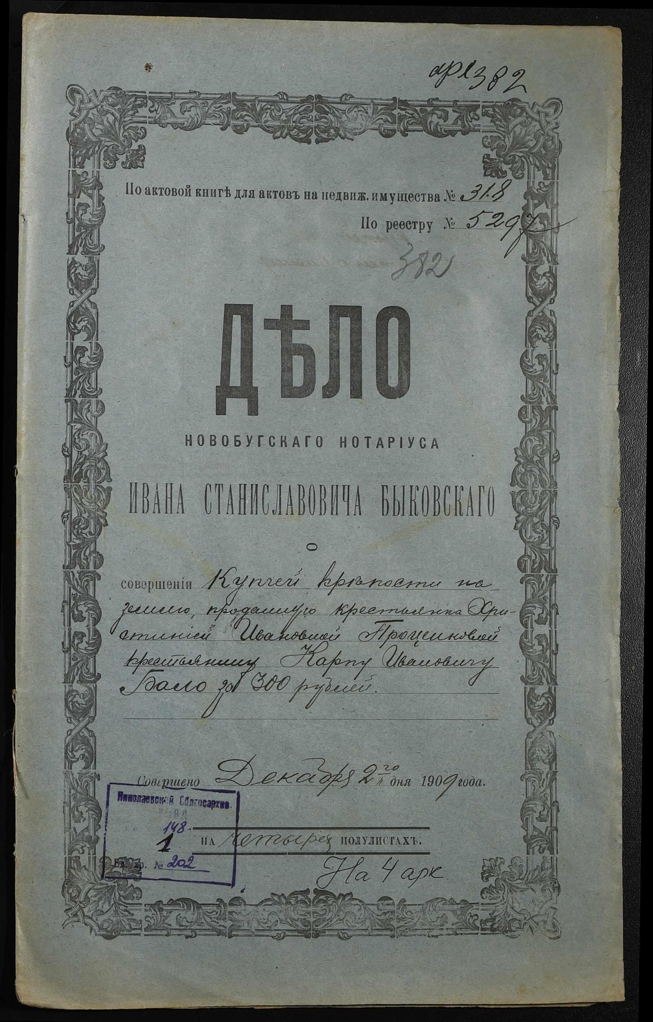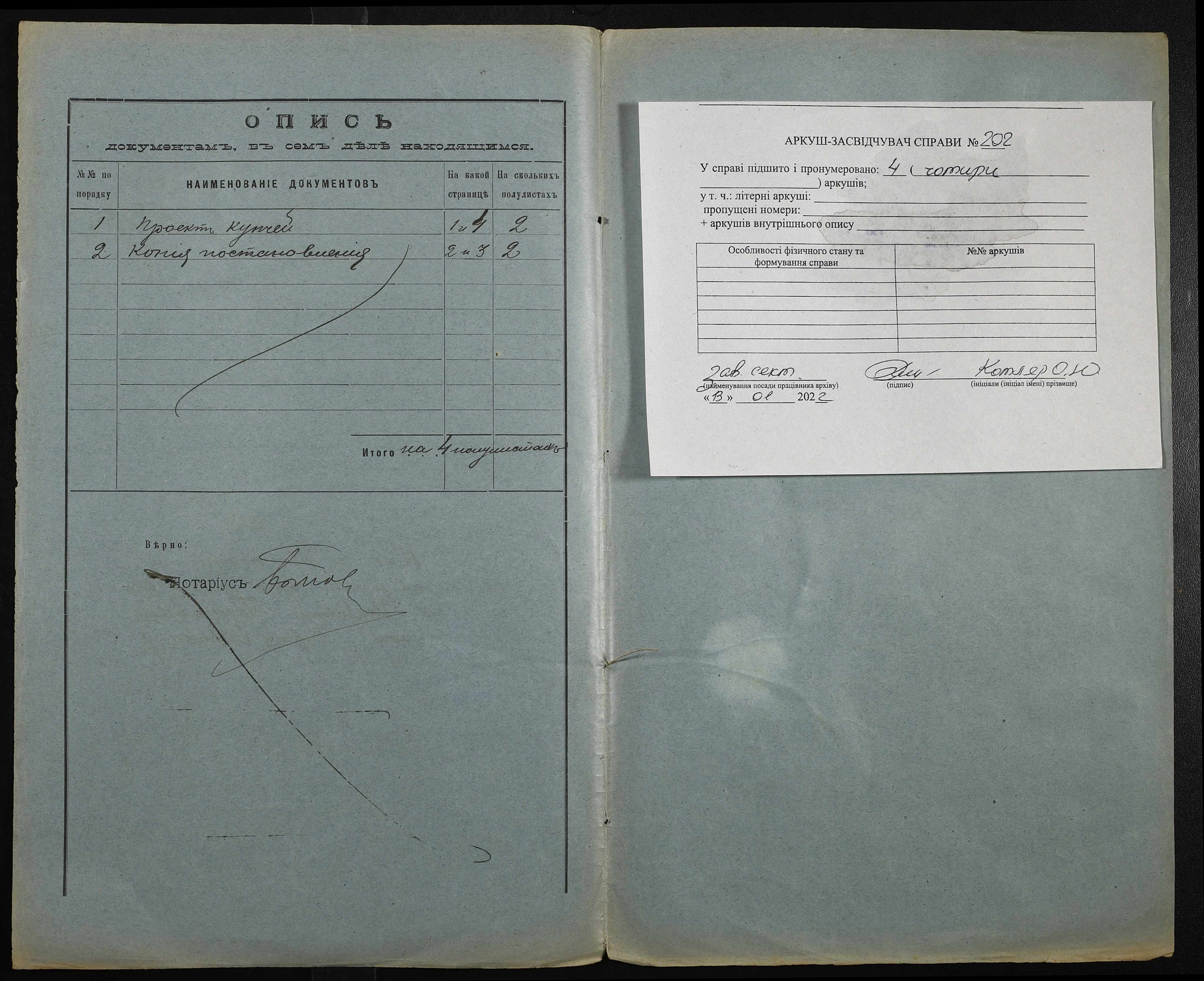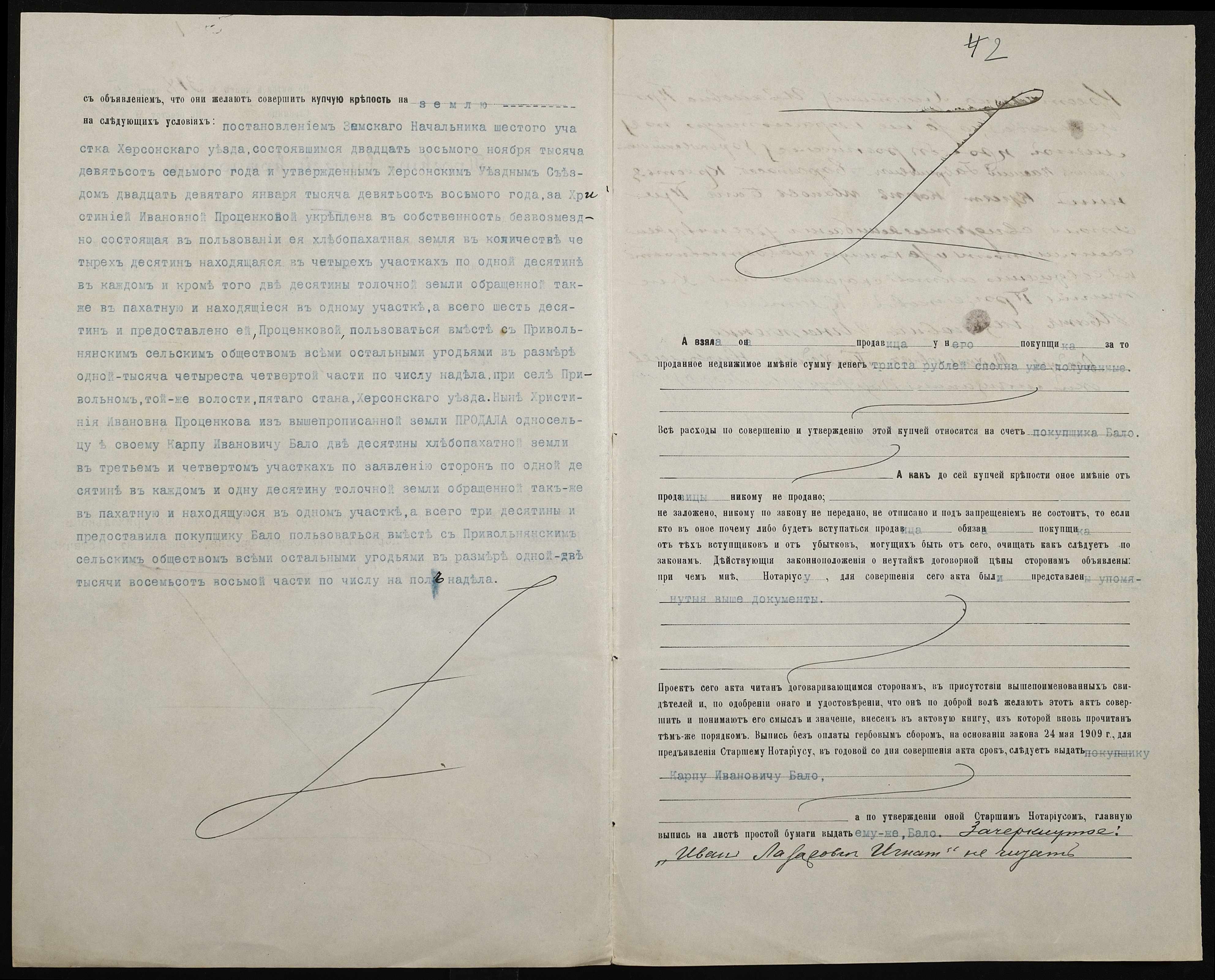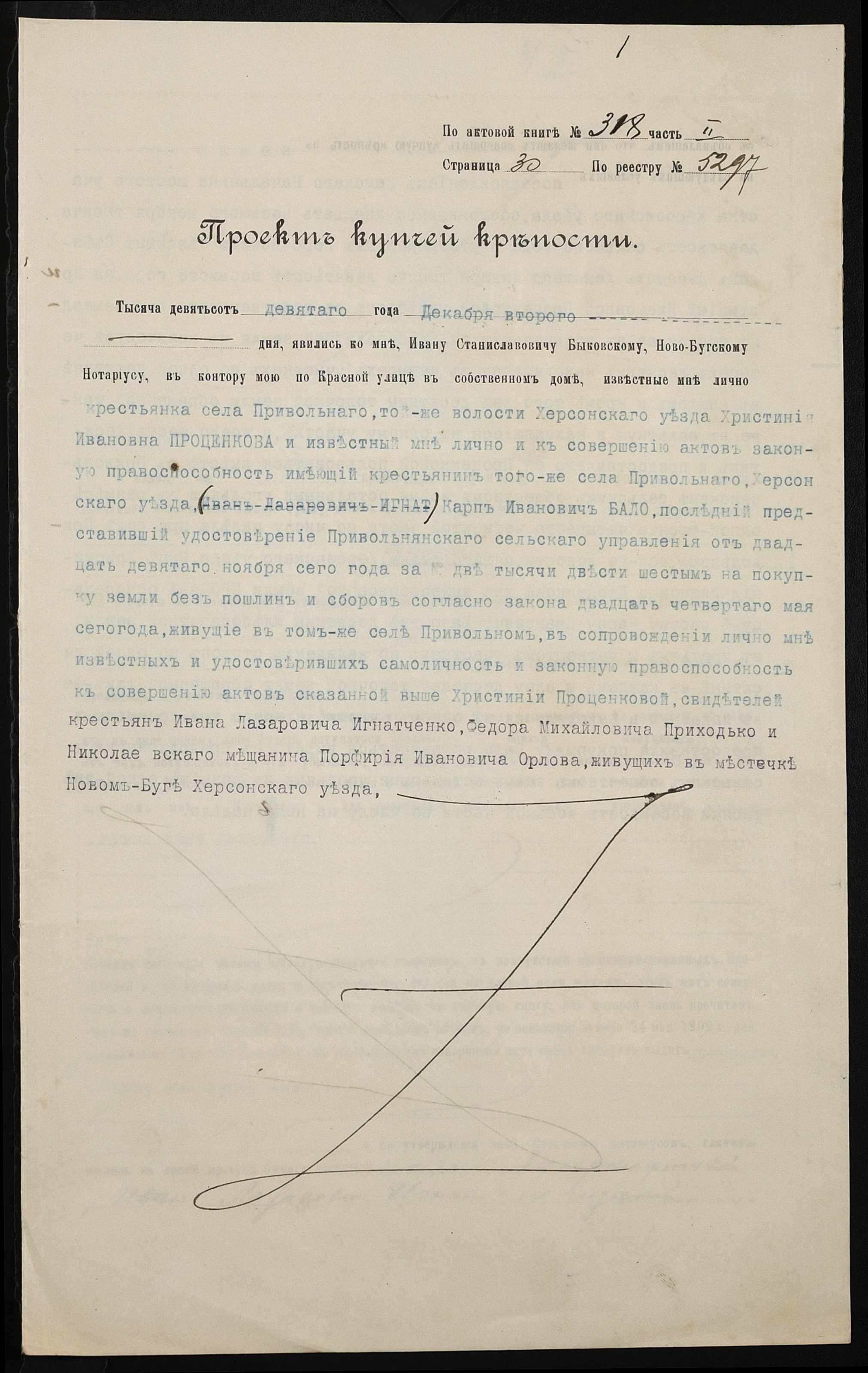 • • • • Справа № 202 “Справа про вчинення купчої про продаж землі селянкою Проценко Христиною Іванівною (Христиной Ивановной) на користь селянина Бала Карпа Івановича (Ивановича)”