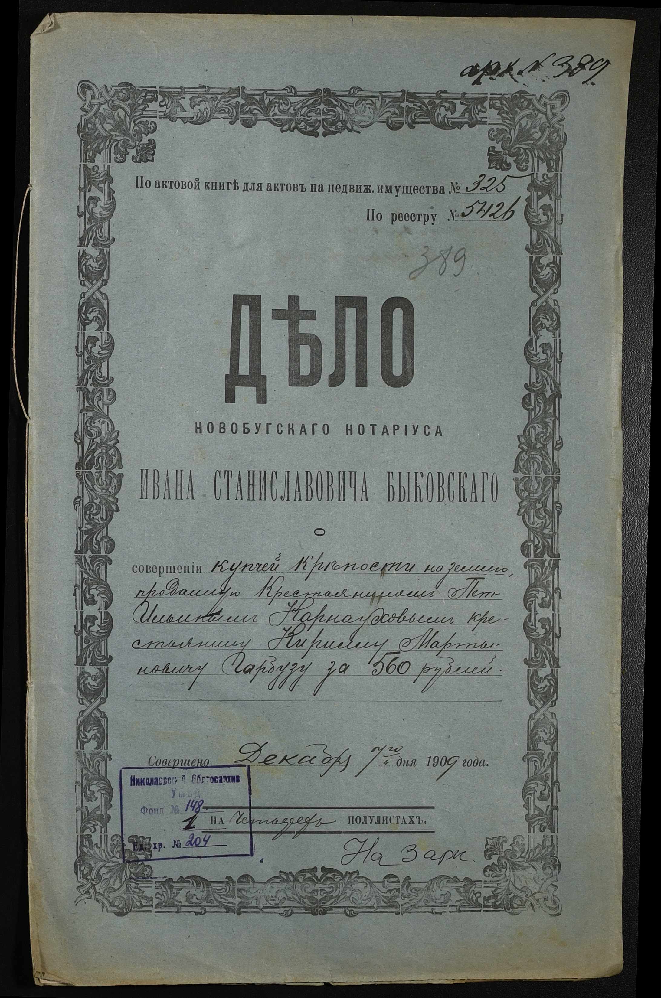 ◦ ◦ Фонд № 148 “Контора новобузького нотаріуса Биковського Івана Станіславовича”