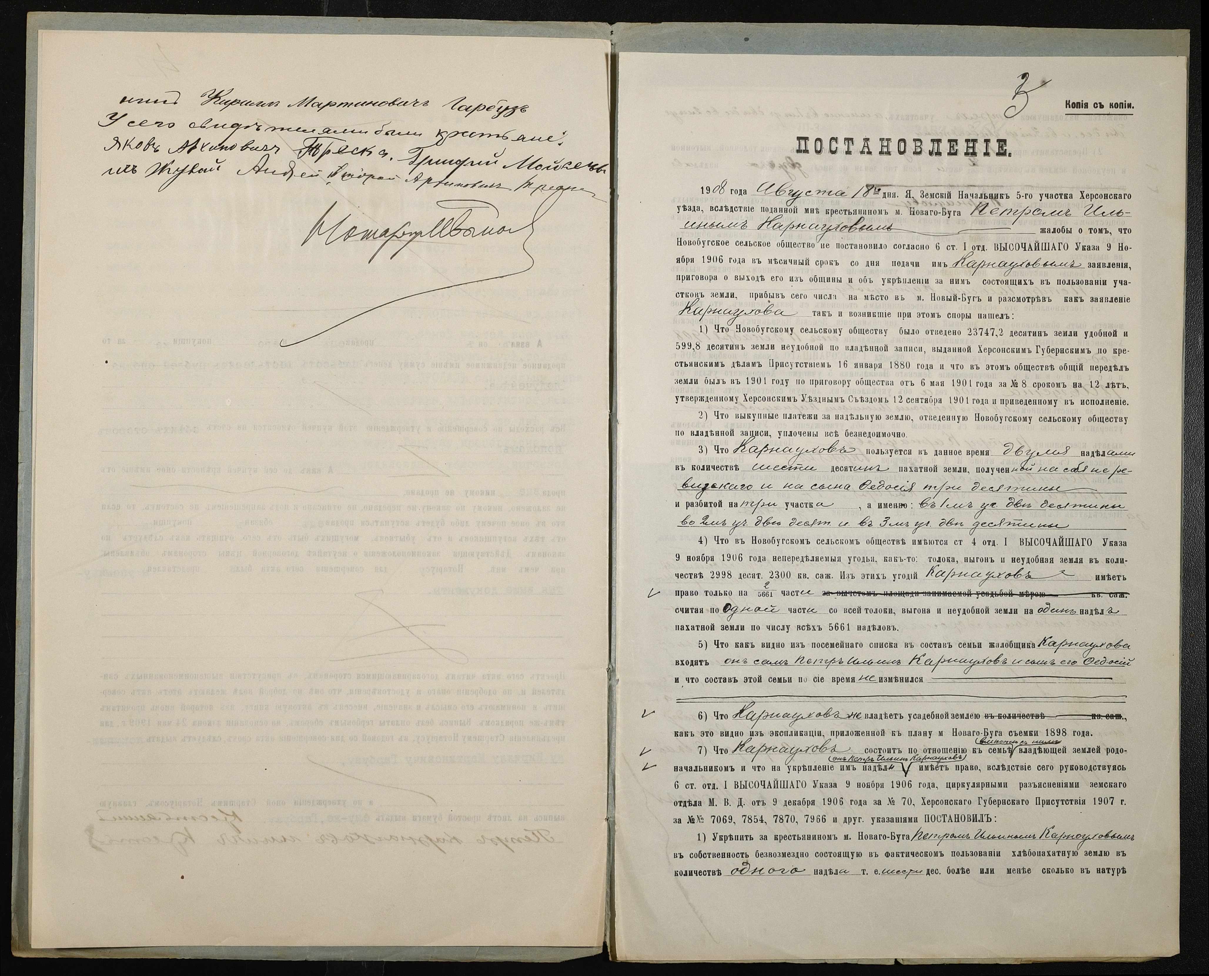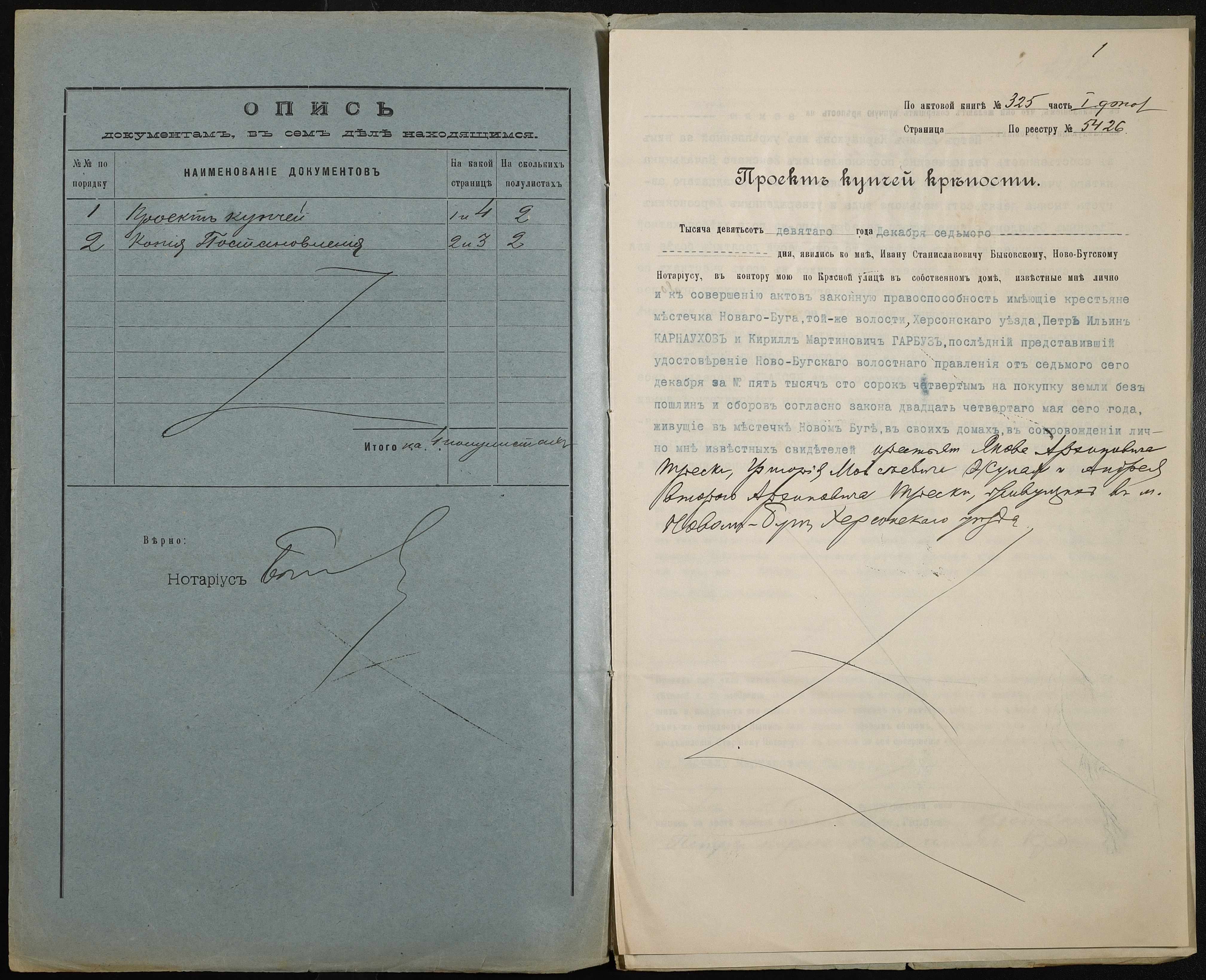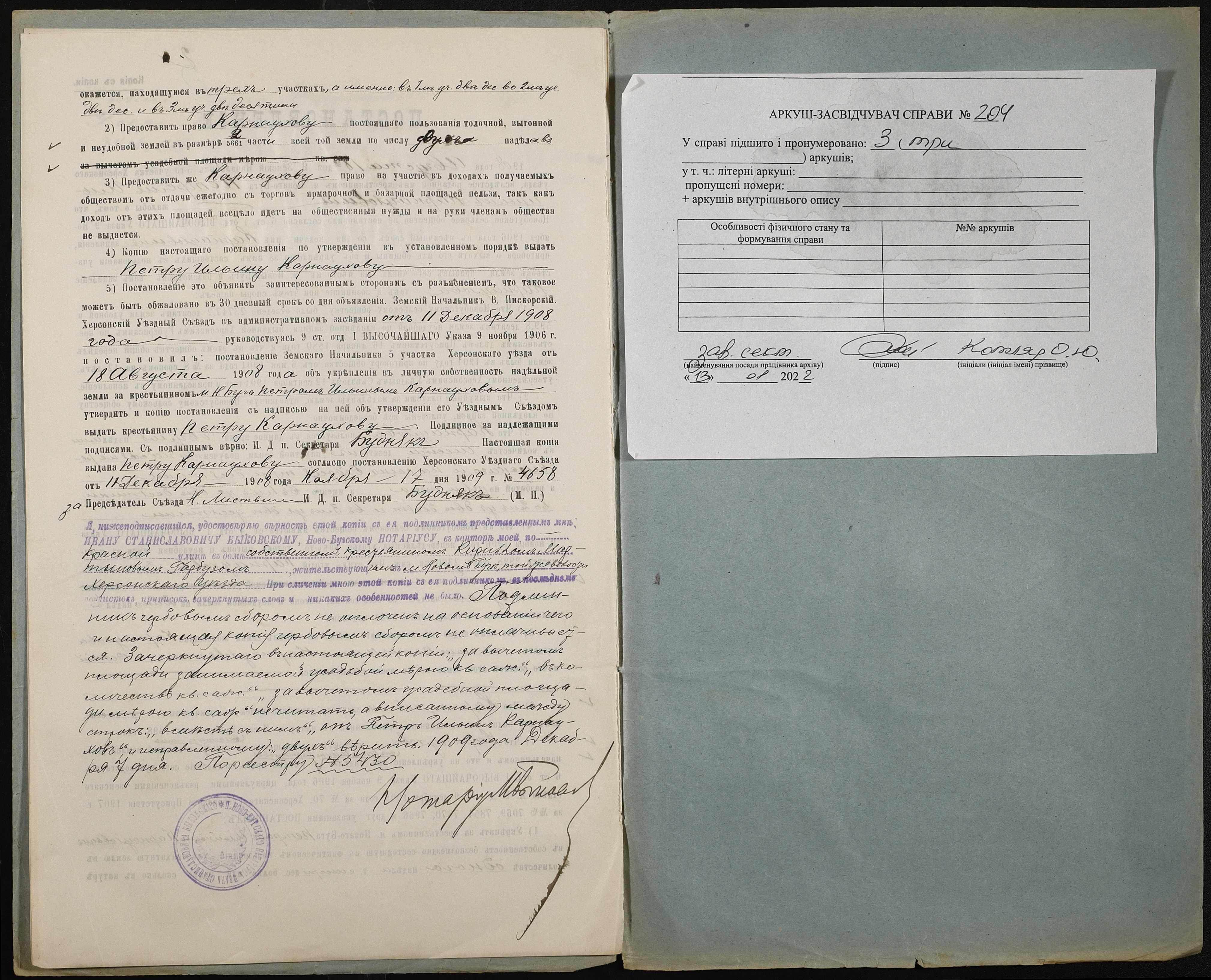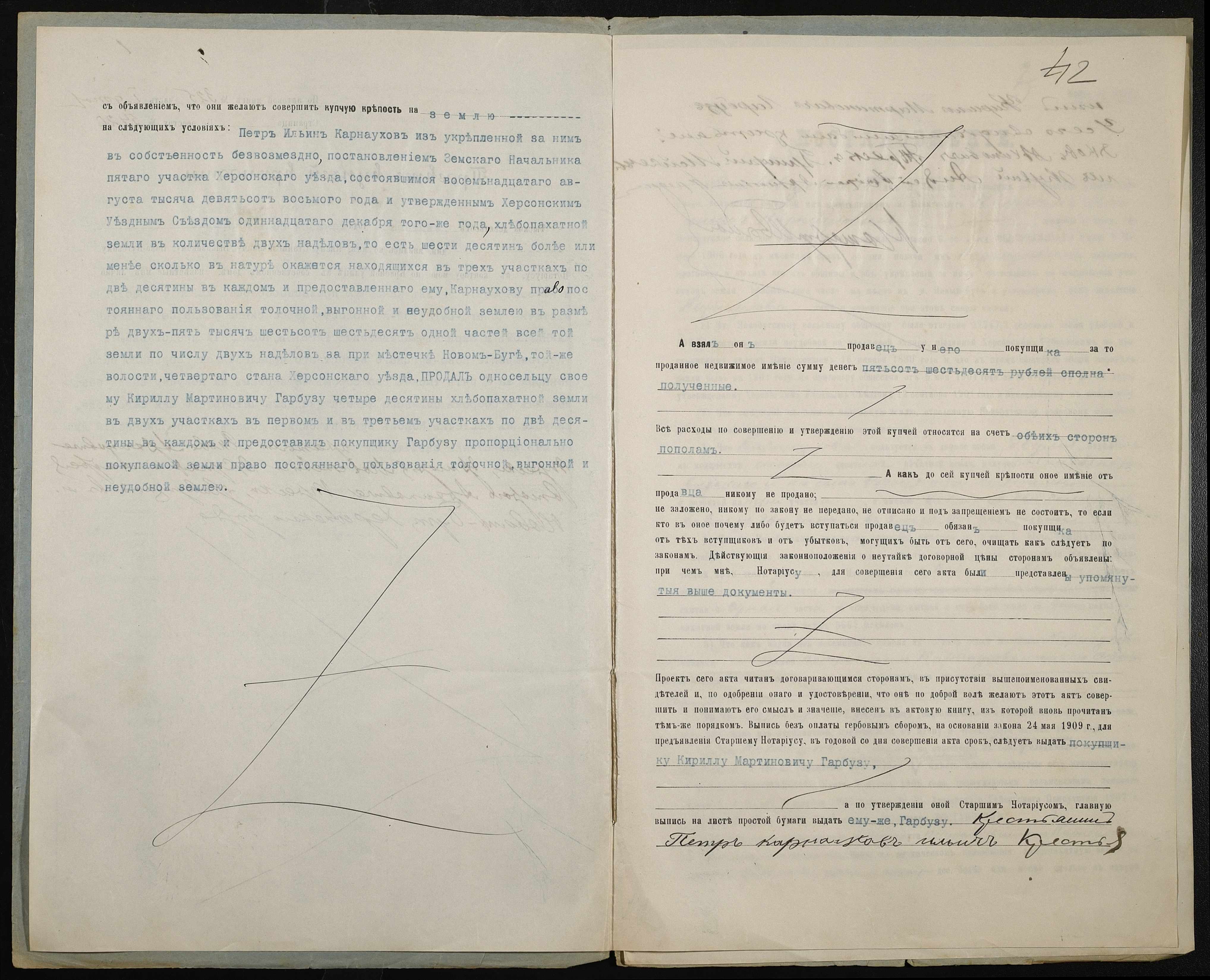 • • • • Справа № 204 “Справа про вчинення купчої про продаж землі селянином Карнауховим (Карнауховым) Петром Іллічем (Ильичем) на користь селянина Гарбуза Кирила Мартиновича (Кирилла Мартыновича)”