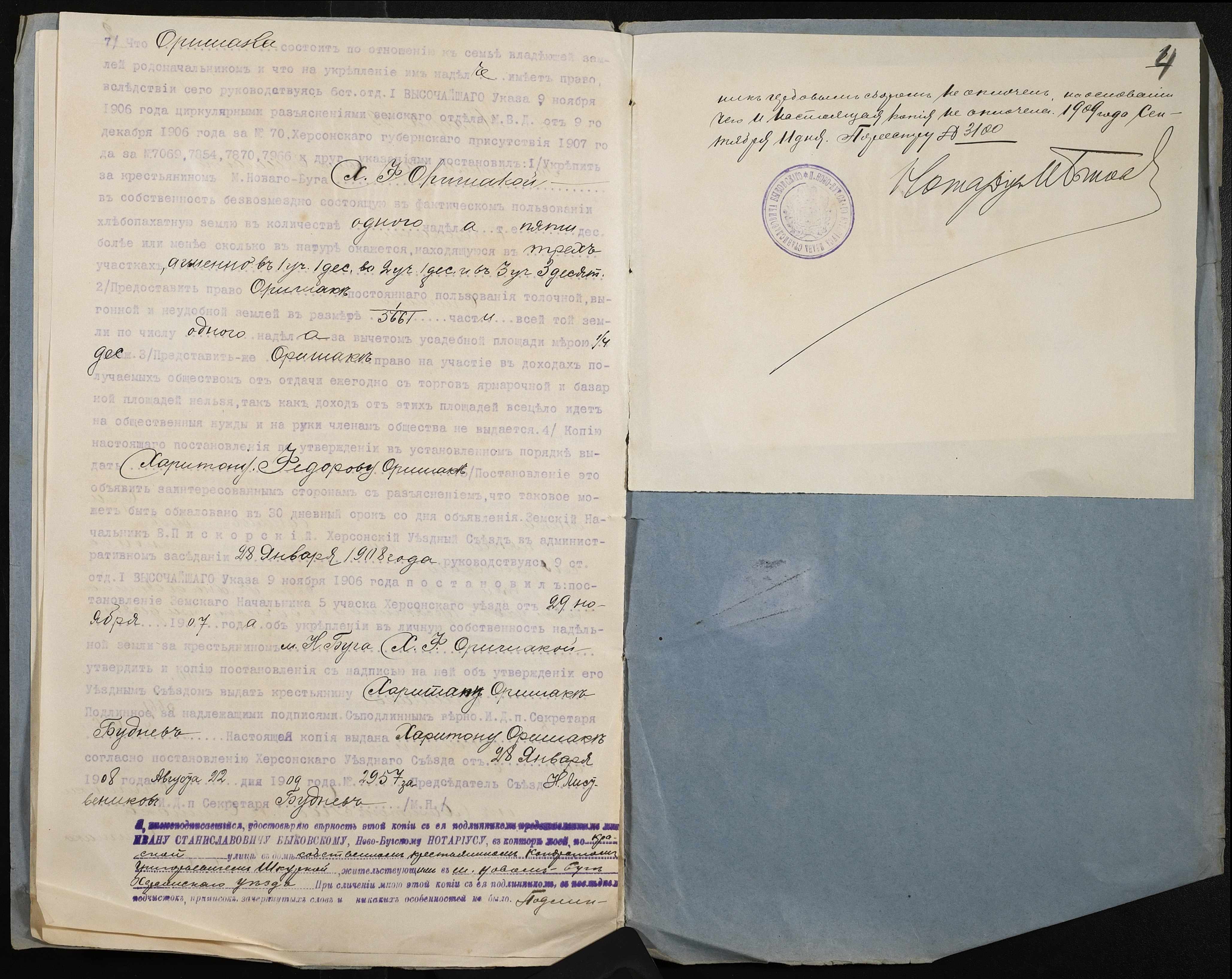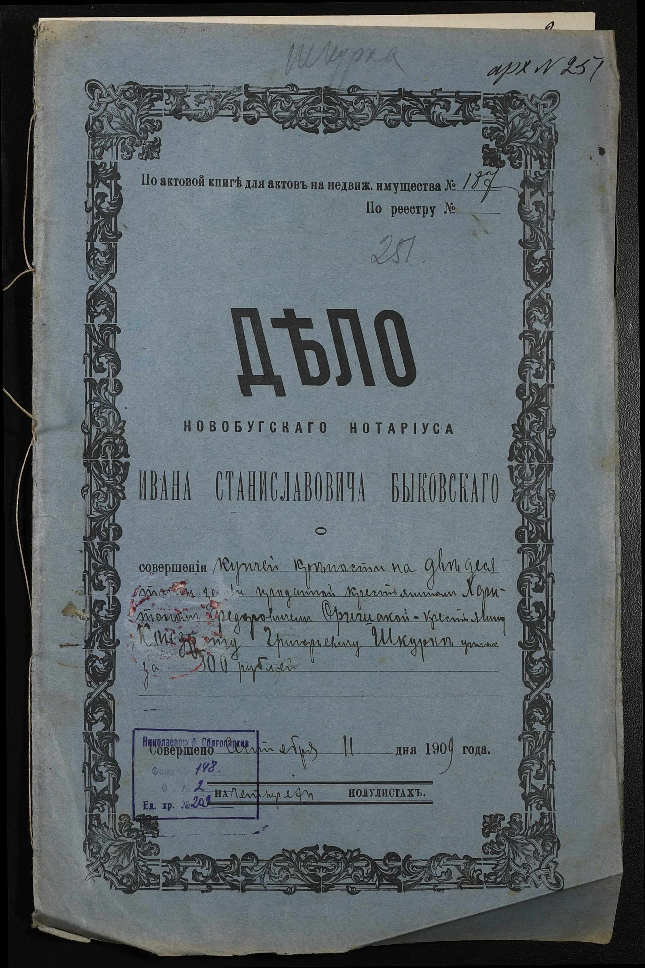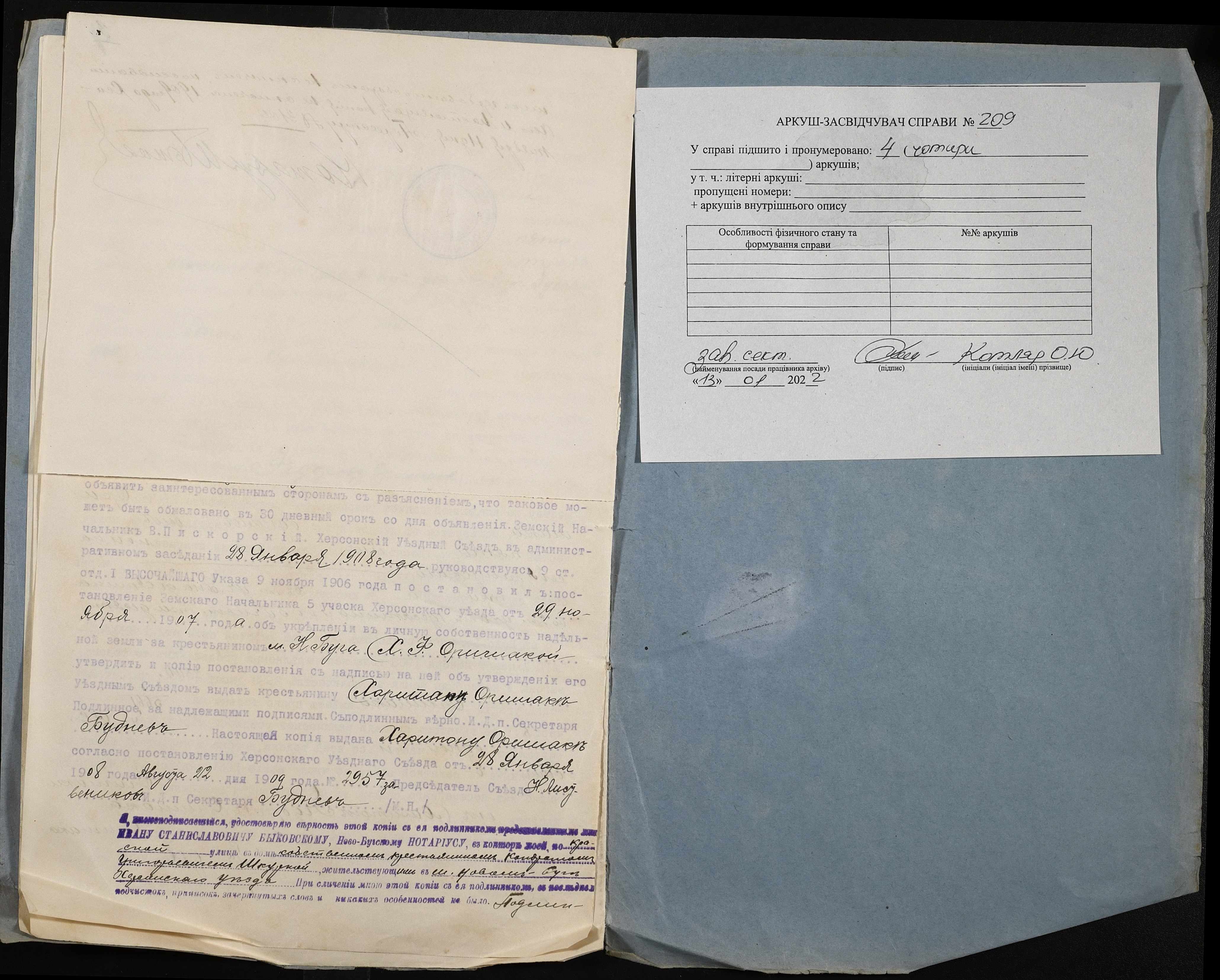 • • • • Справа № 209 “Справа про вчинення купчої про продаж землі селянином Оришакою (Оришакой) Харитоном Федоровичем на користь селянина Шкурки Кіндрата Григоровича (Кондрата Григорьевича)”