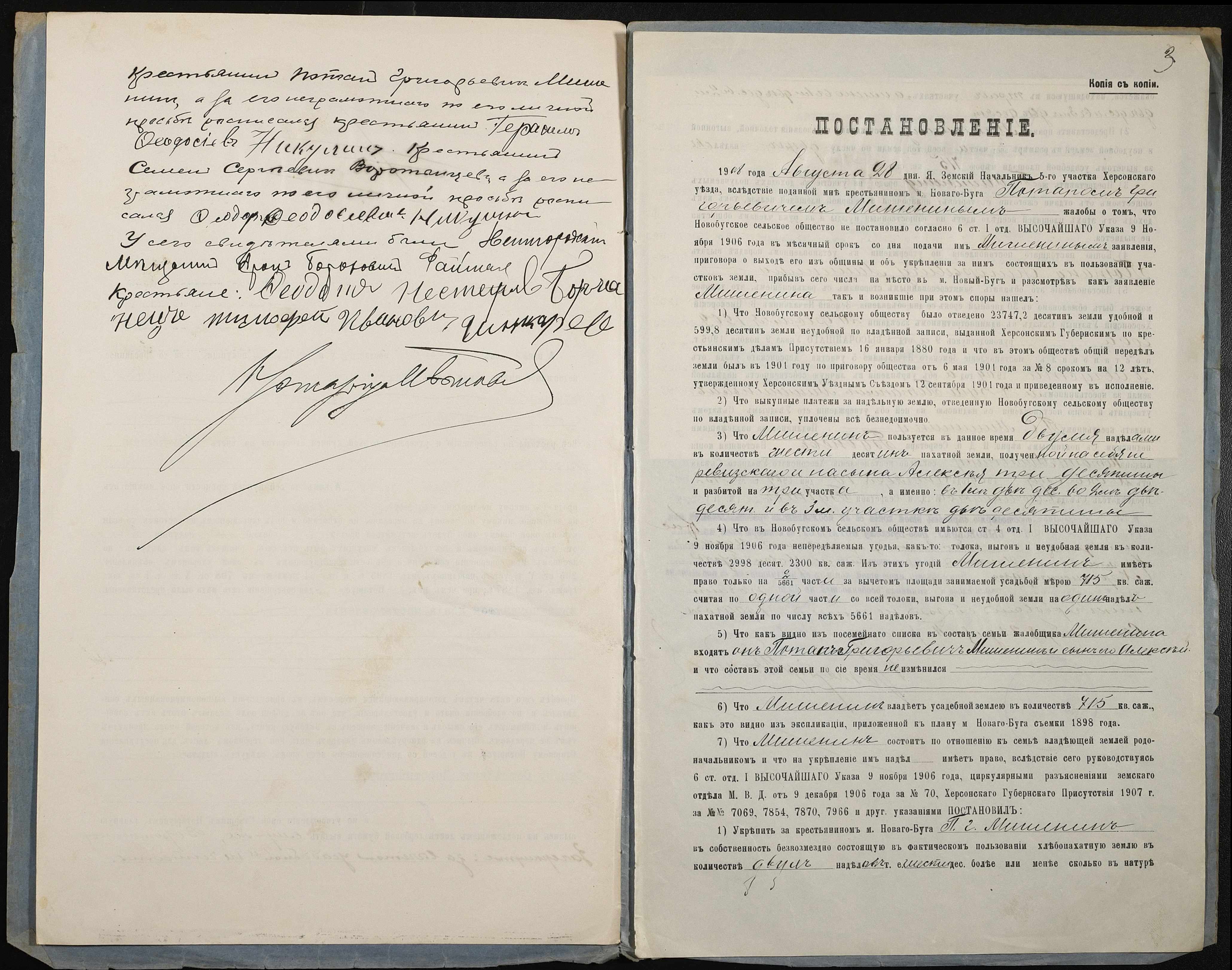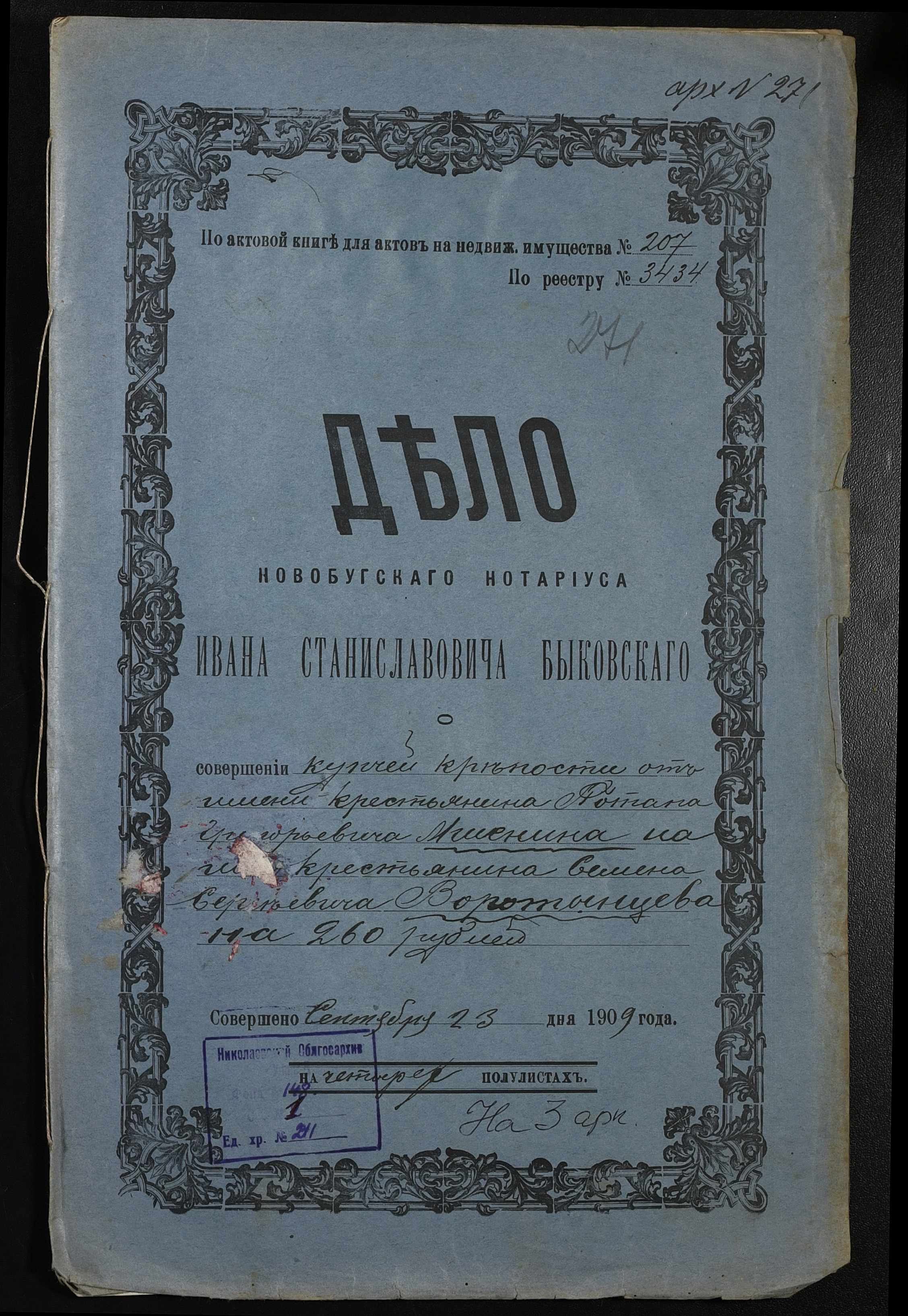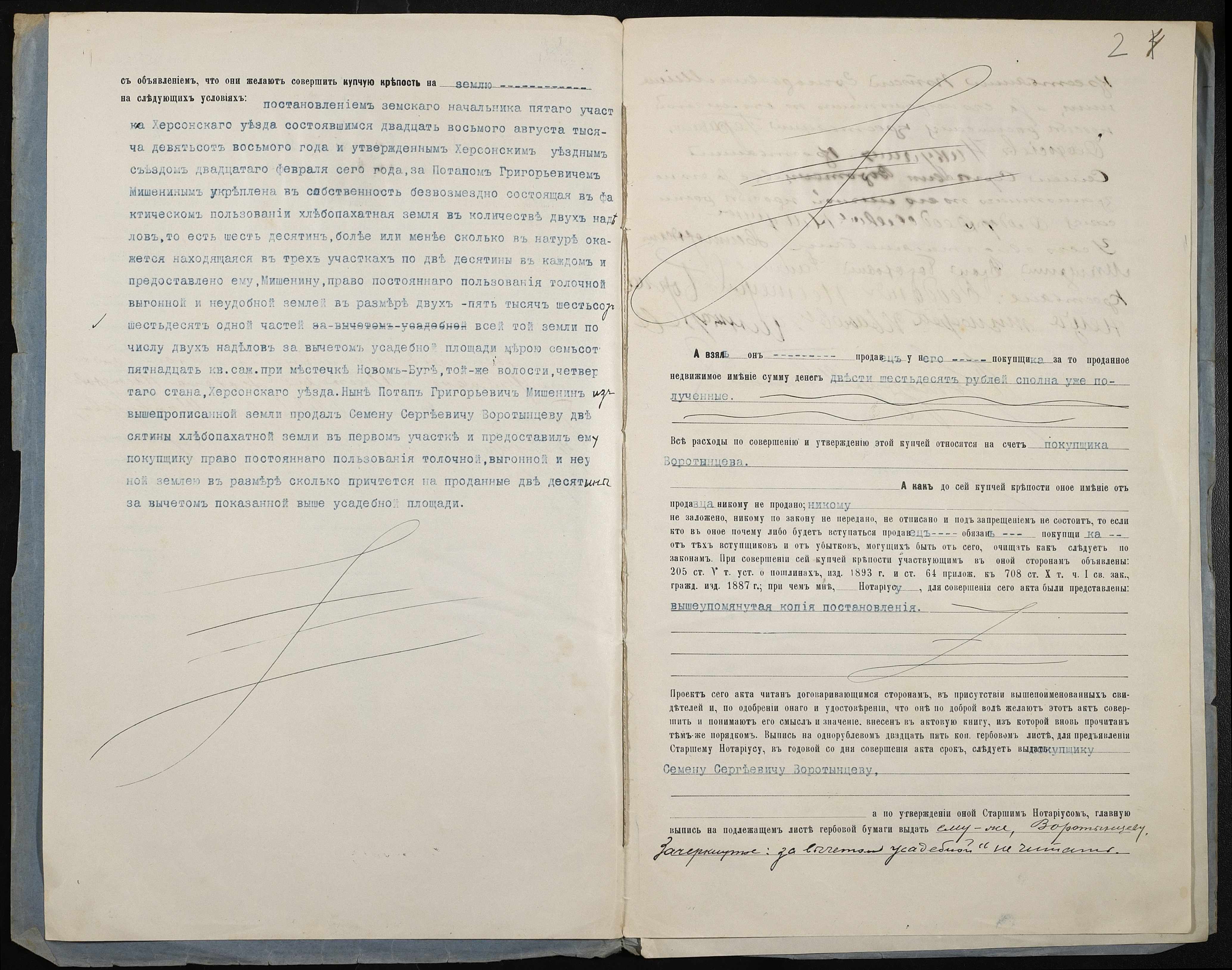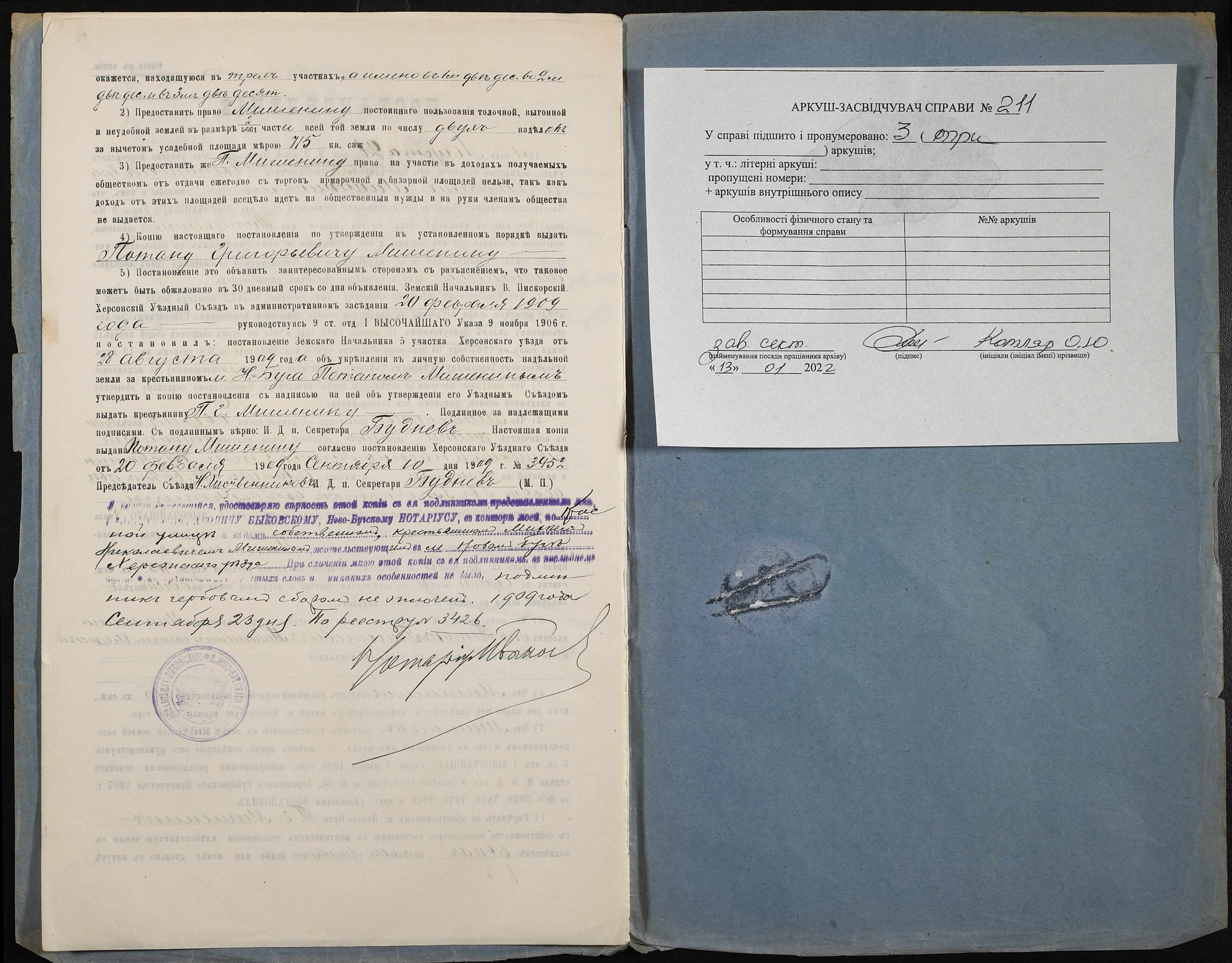 • • • • Справа № 211 “Справа про вчинення купчої про продаж землі селянином Мішеніним (Мишениным) Потапом Григоровичем (Григорьевичем) на користь селянина Воротинцева Семена Сергійовича (Сергеевича)”