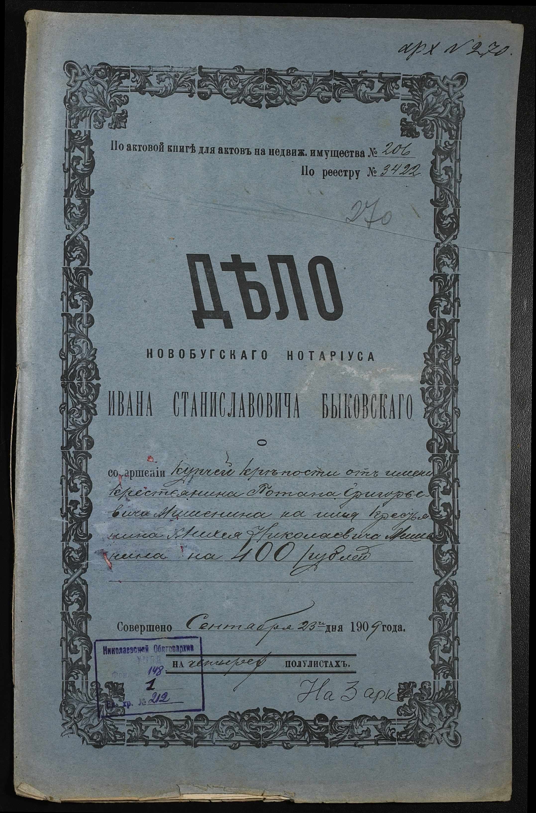 ◦ ◦ Фонд № 148 “Контора новобузького нотаріуса Биковського Івана Станіславовича”