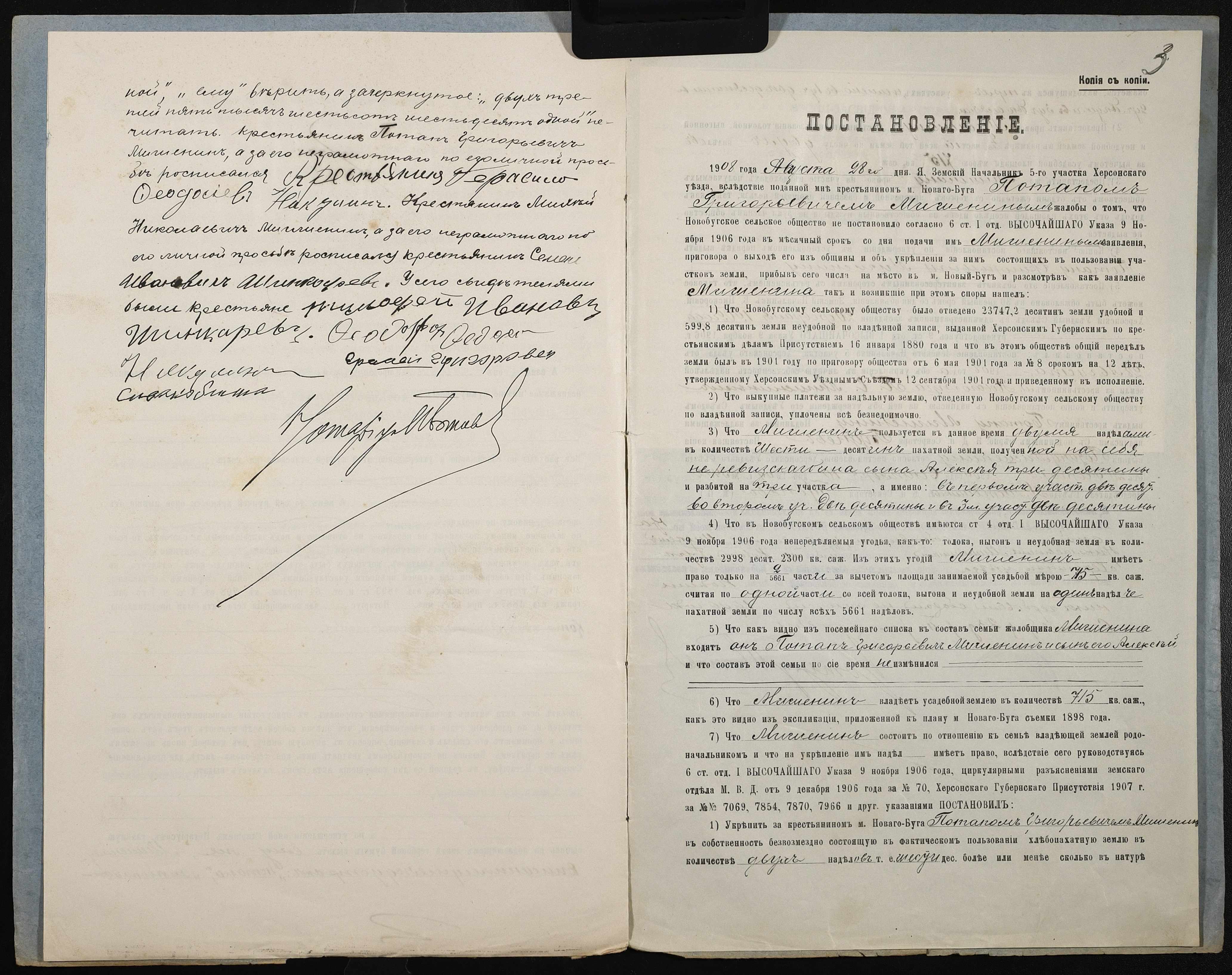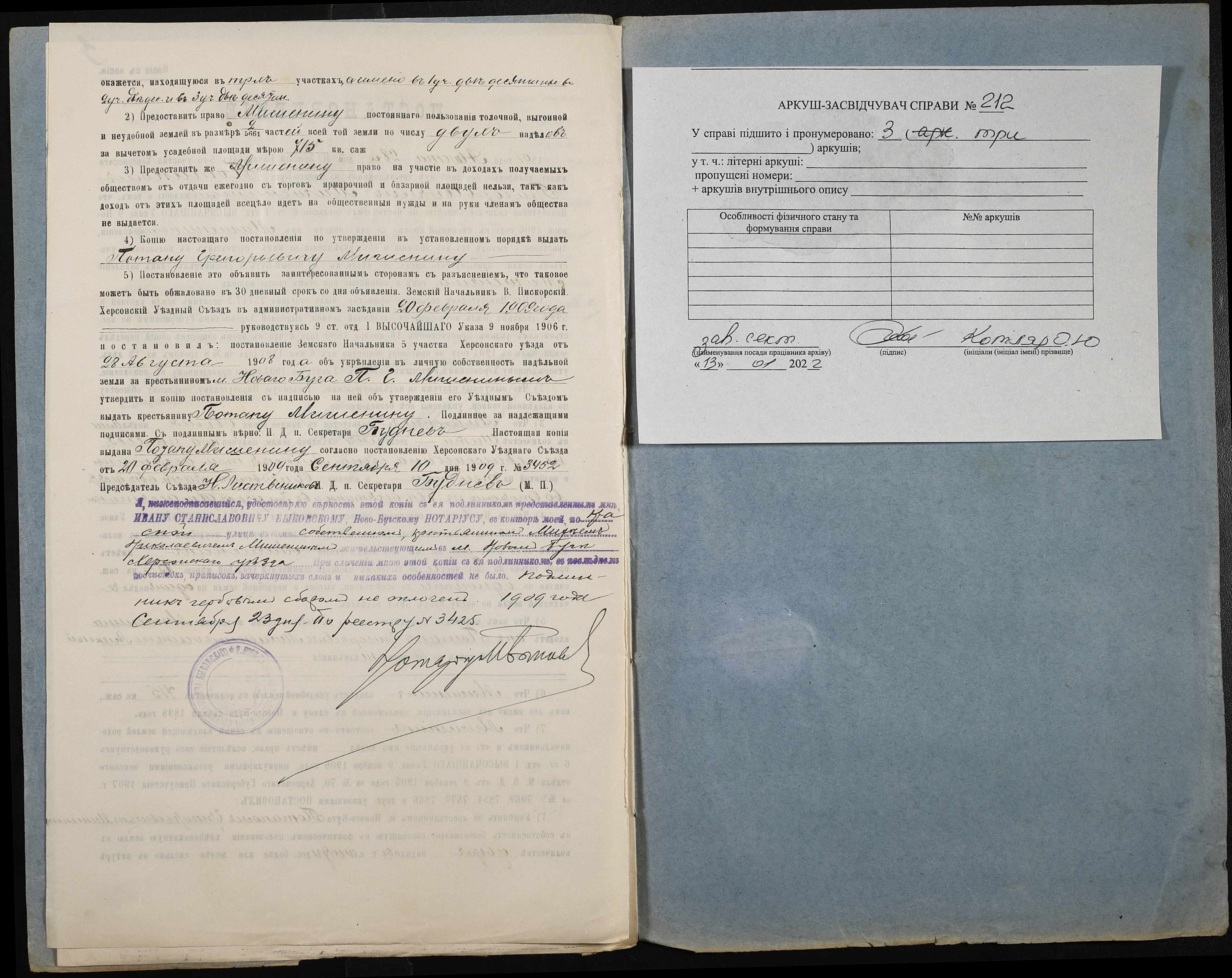 • • • • Справа № 212 “Справа про вчинення купчої про продаж землі селянином Мішеніним (Мишениным) Потапом Григоровичем (Григорьевичем) на користь селянина Мішеніна Міхея Миколайовича (Мишенина Михея Николаевича)”