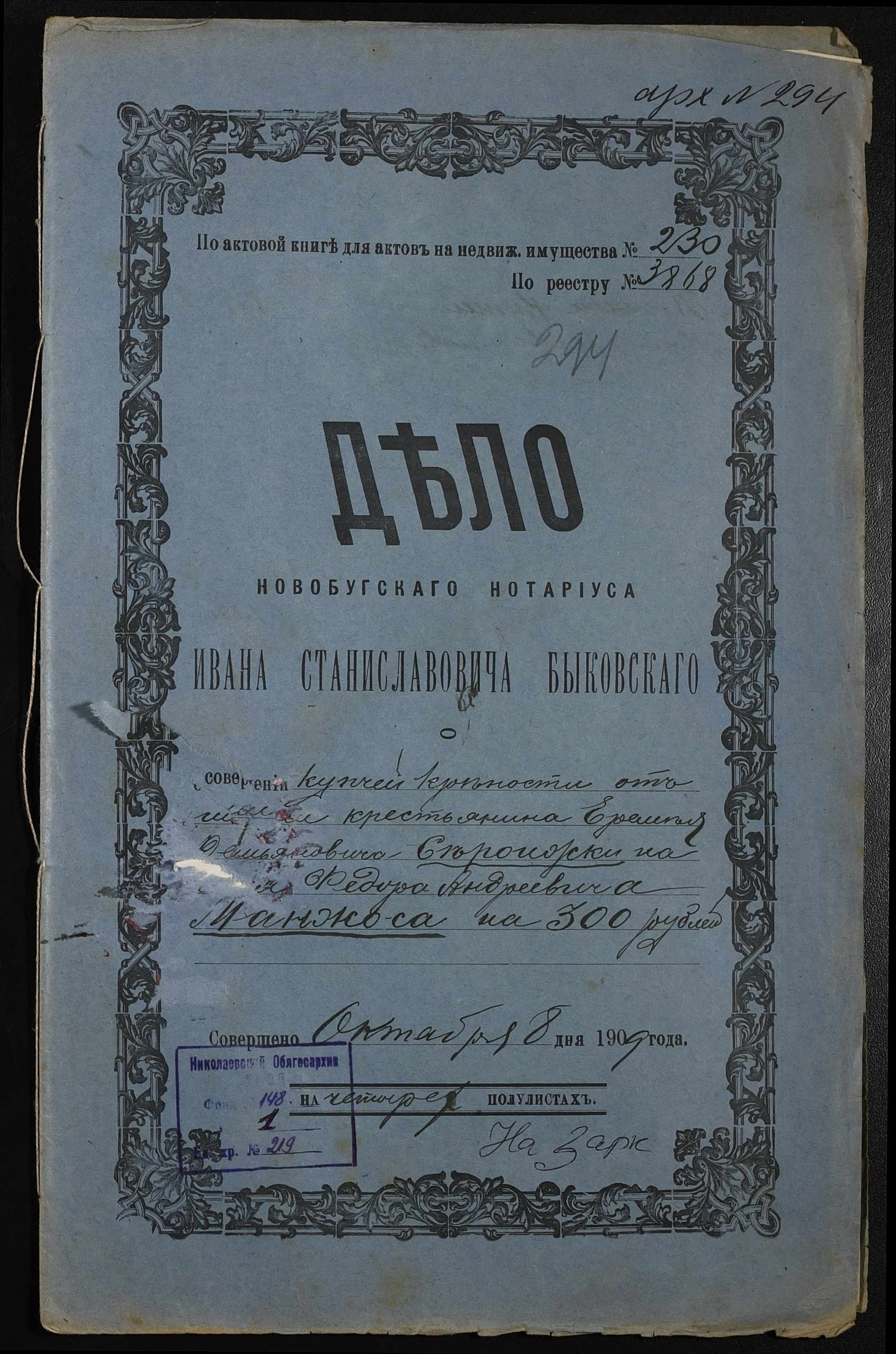 ◦ ◦ Фонд № 148 “Контора новобузького нотаріуса Биковського Івана Станіславовича”