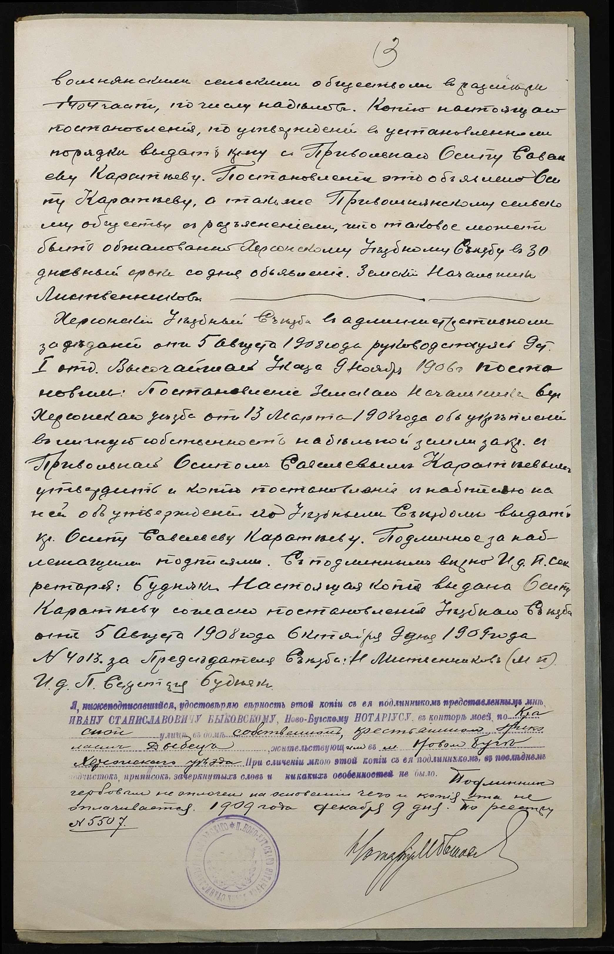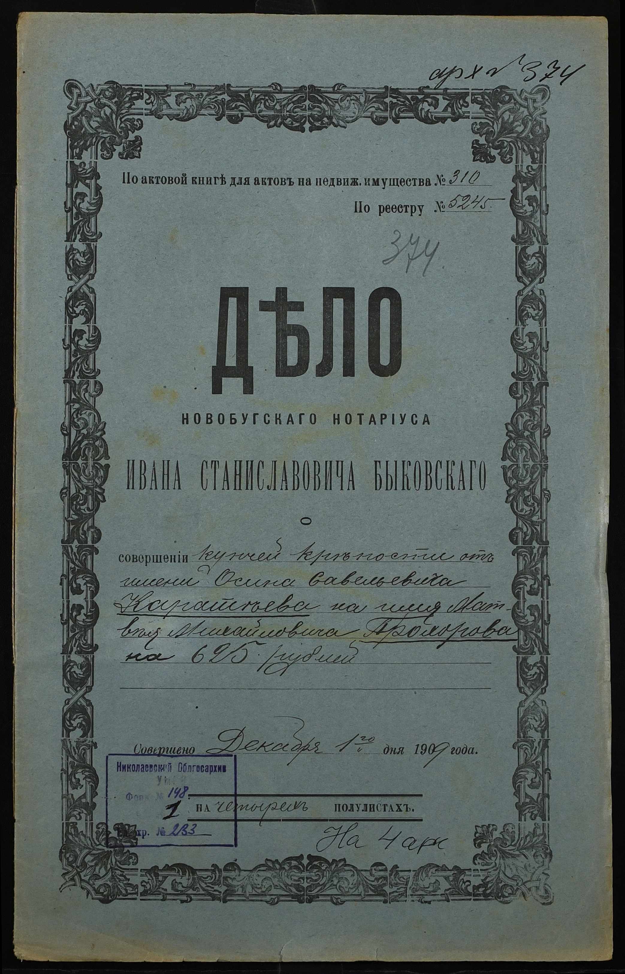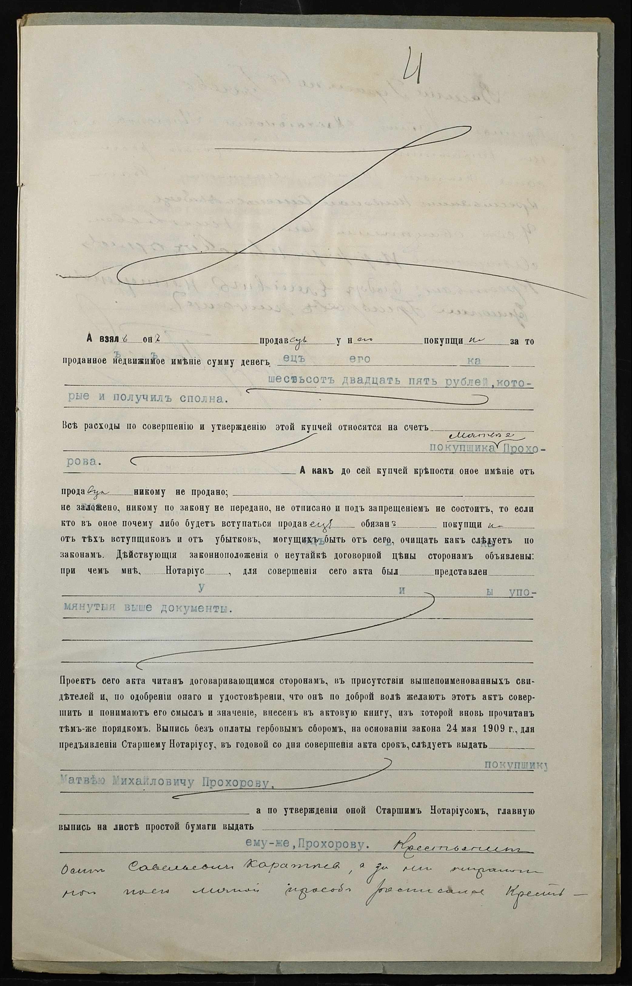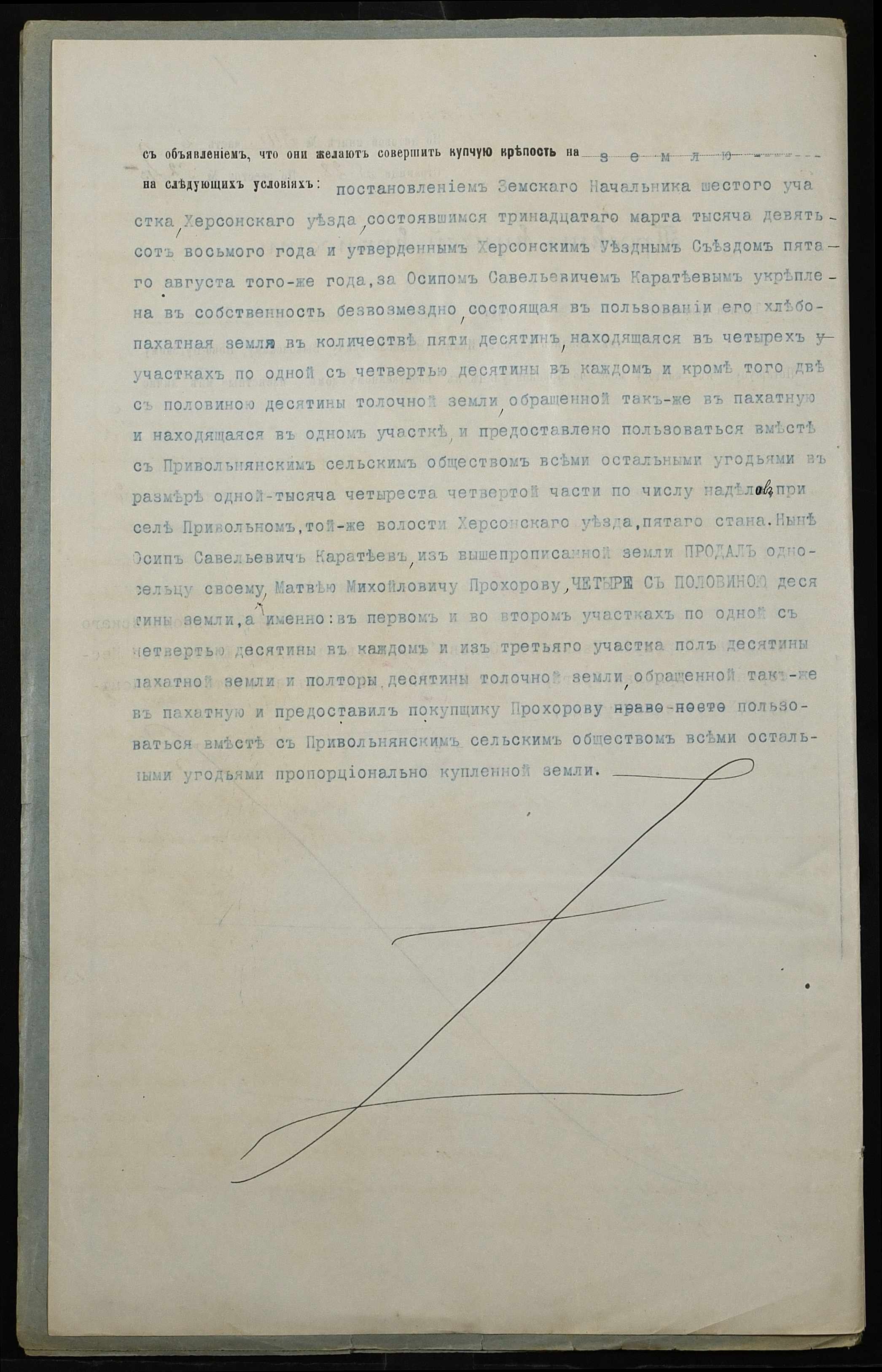 • • • • Справа № 233 “Справа про вчинення купчої про продаж землі селянином Каратєєвим (Каратеевым) Осипом Савелійовичем (Савельевичем) на користь селянина Прохорова Матвія (Матвея) Михайловича”