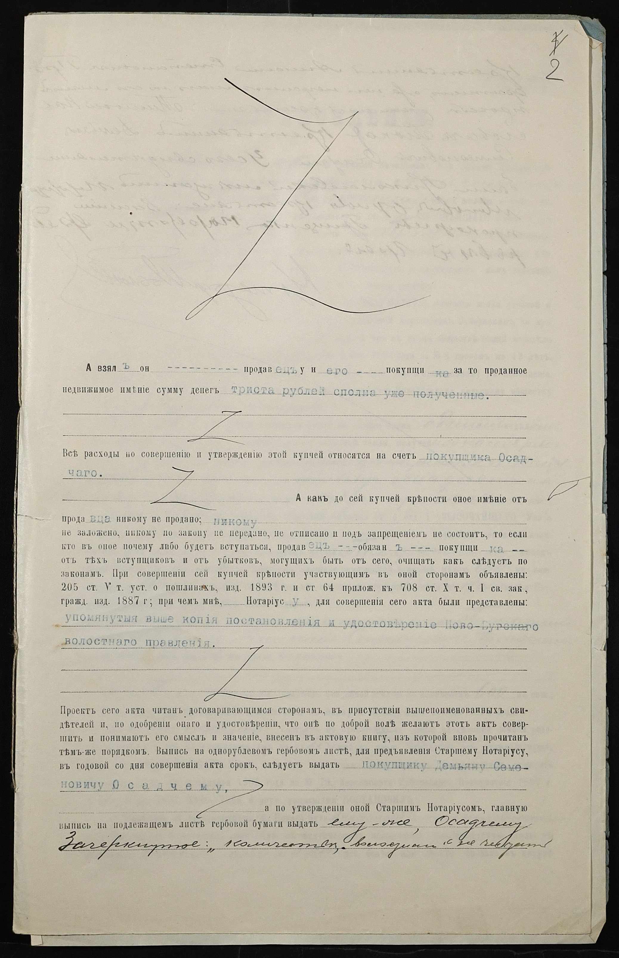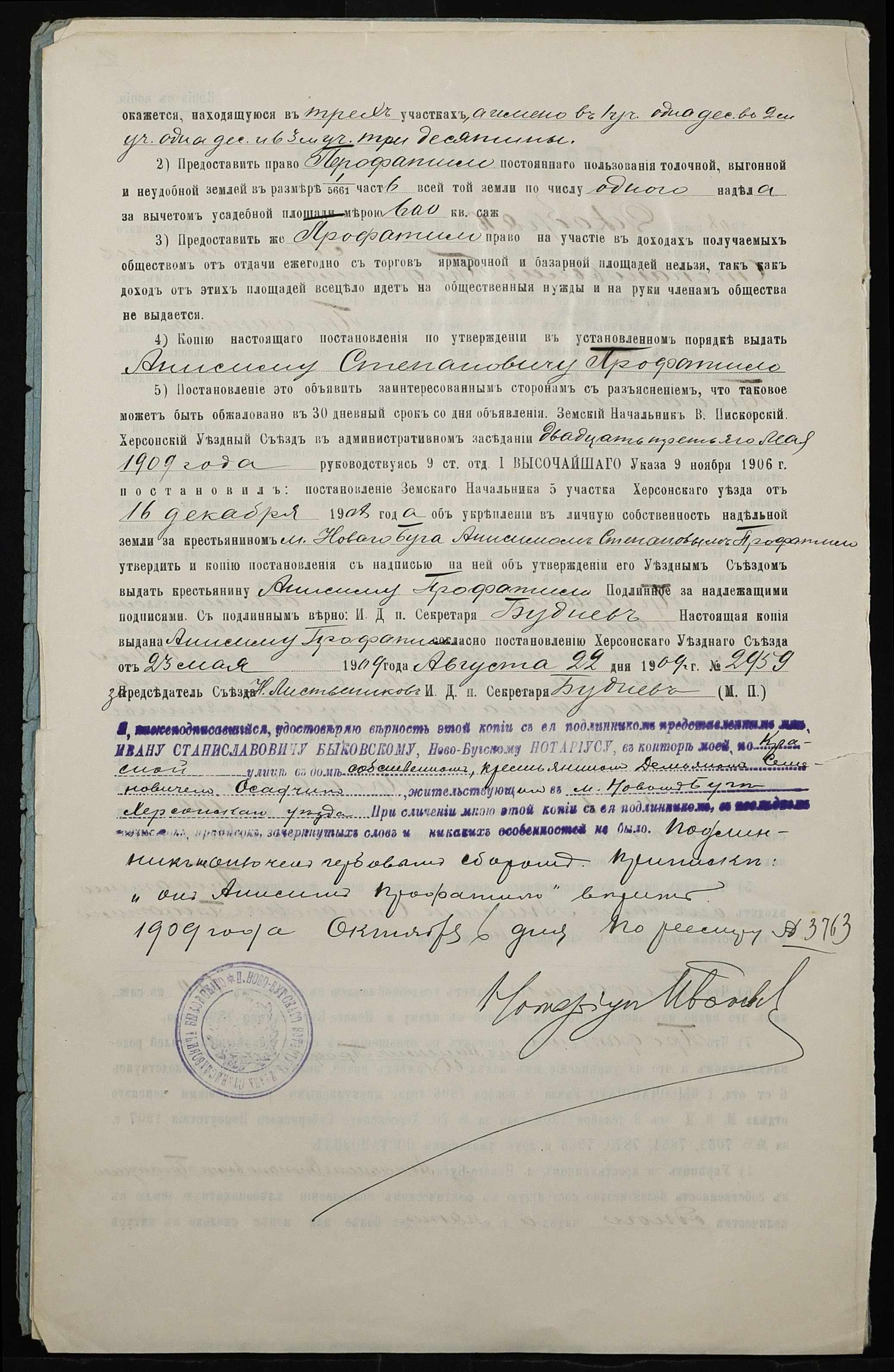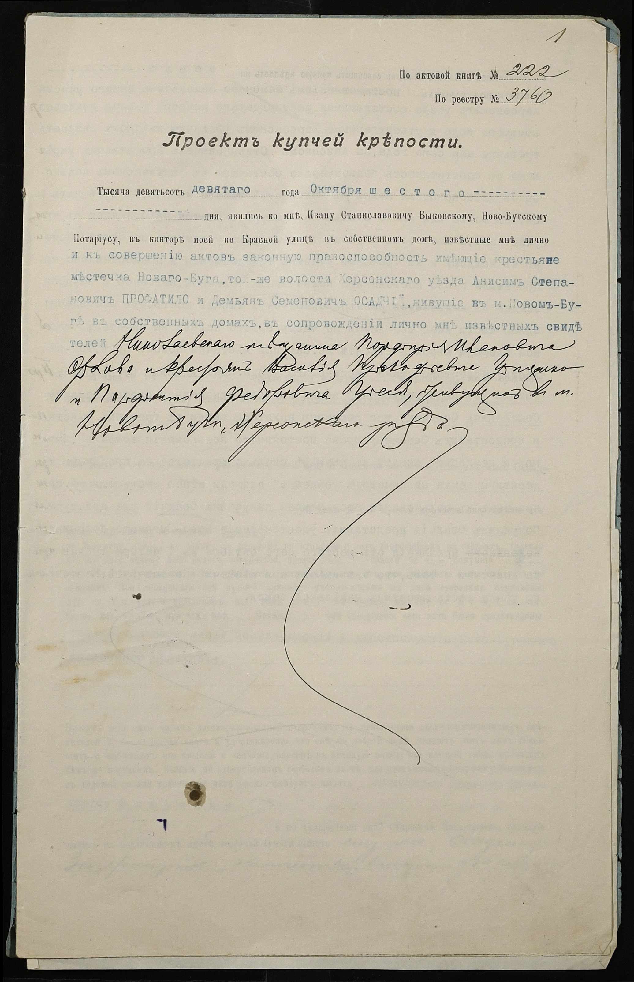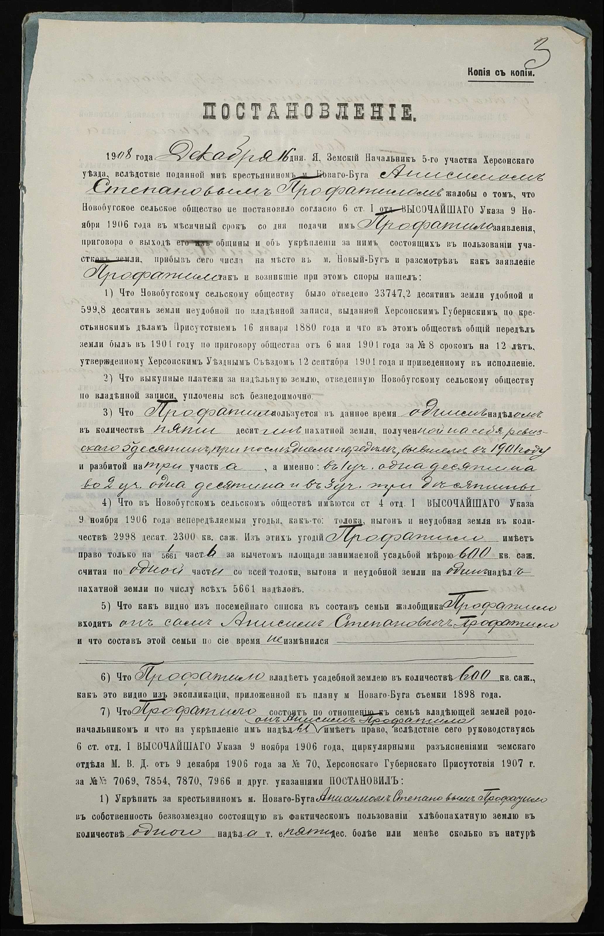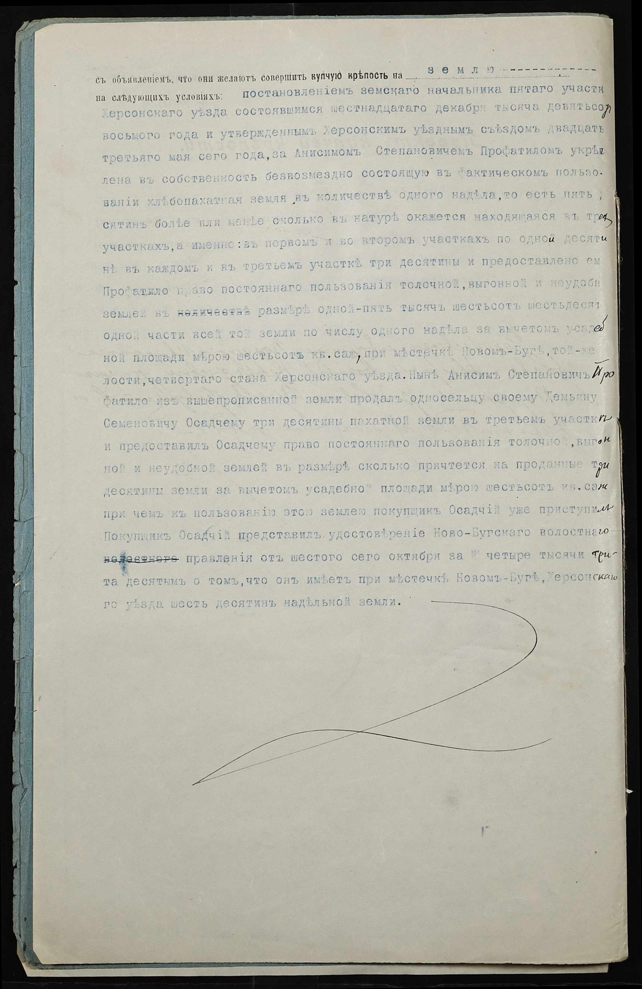 • • • • Справа № 235 “Справа про вчинення купчої про продаж землі селянином Профатилом Онисимом (Профатило Анисимом) Степановичем на користь селянина Осадчого Дем’яна (Осадчего Демьяна) Семеновича”