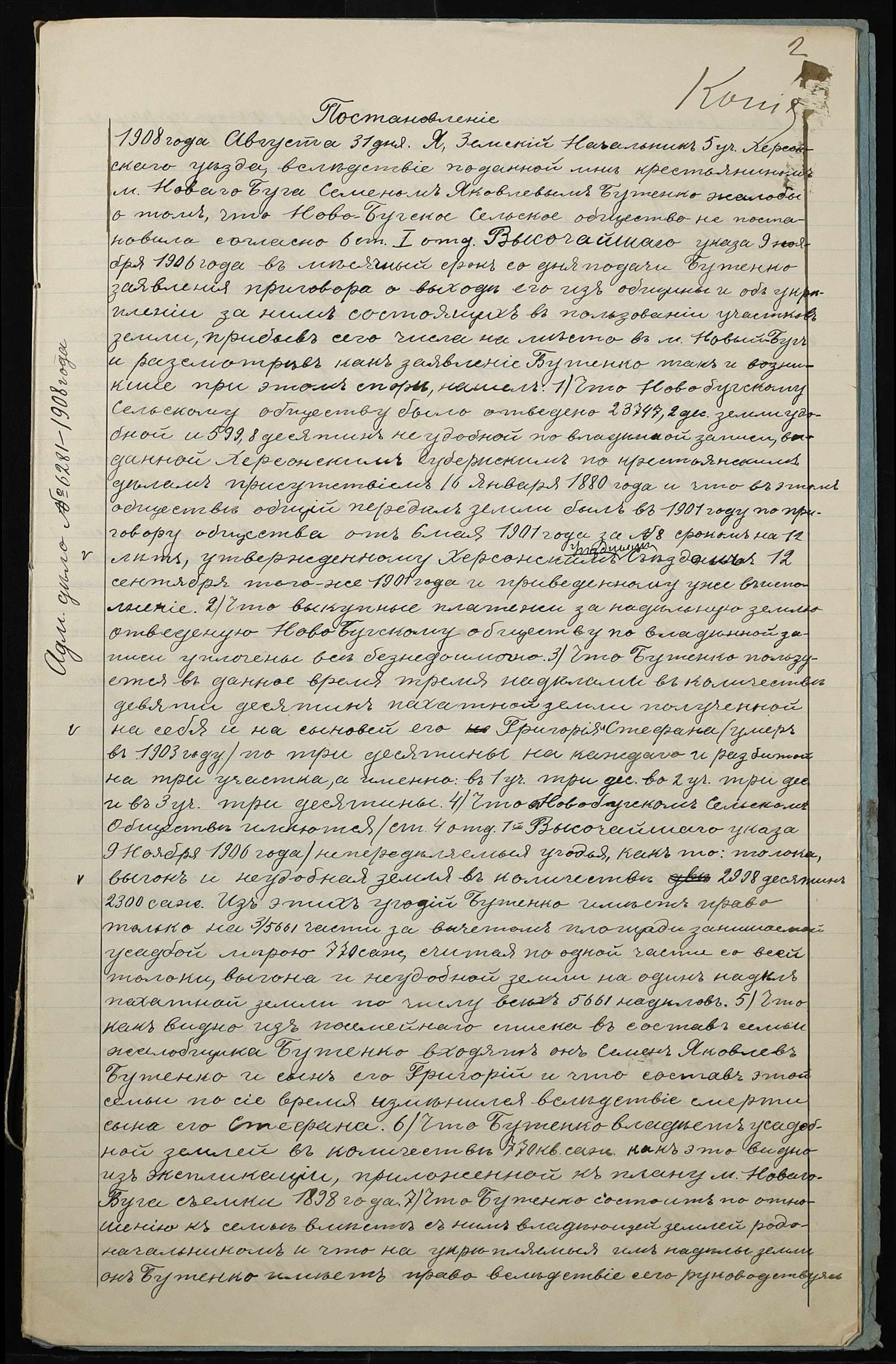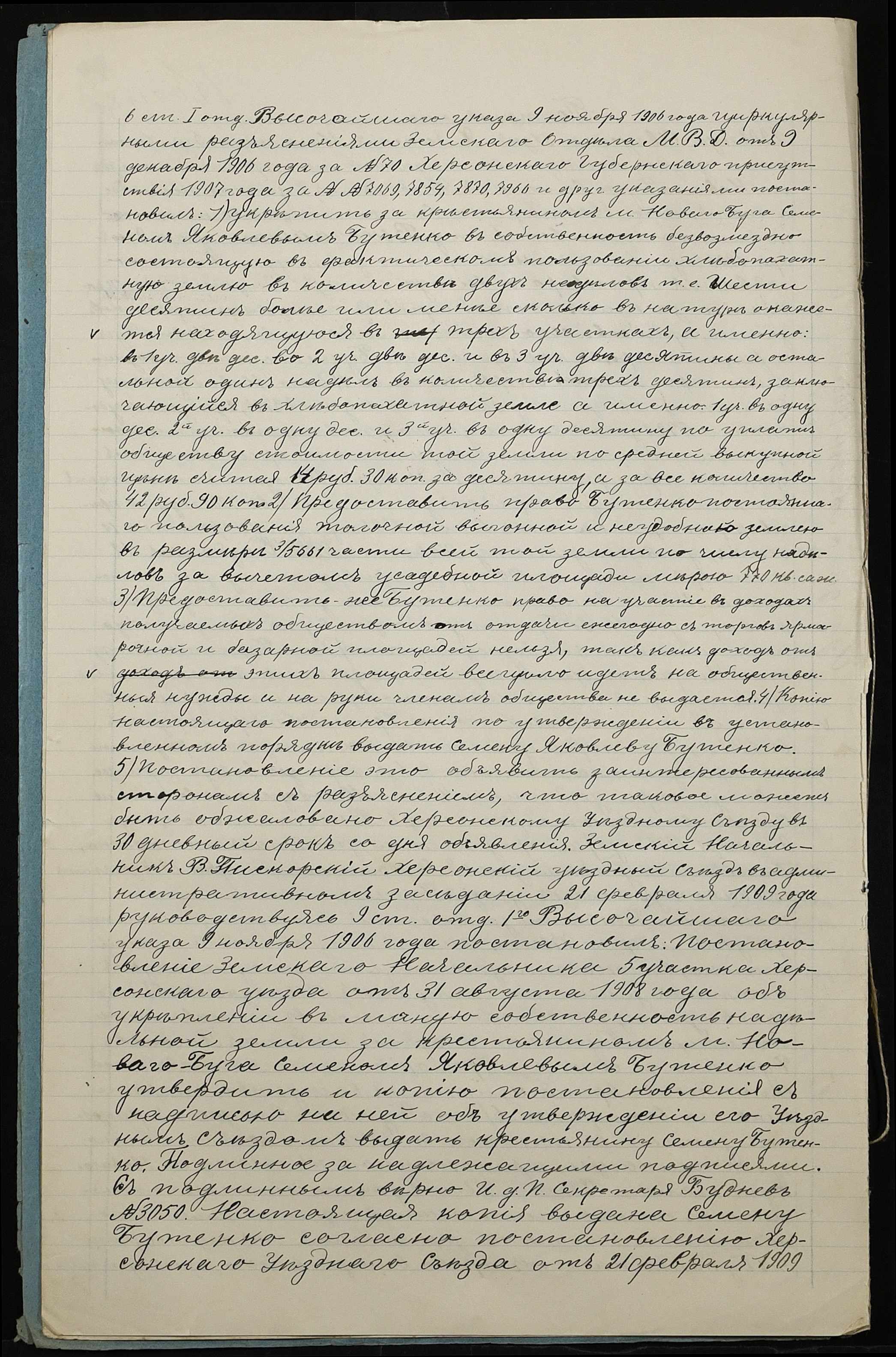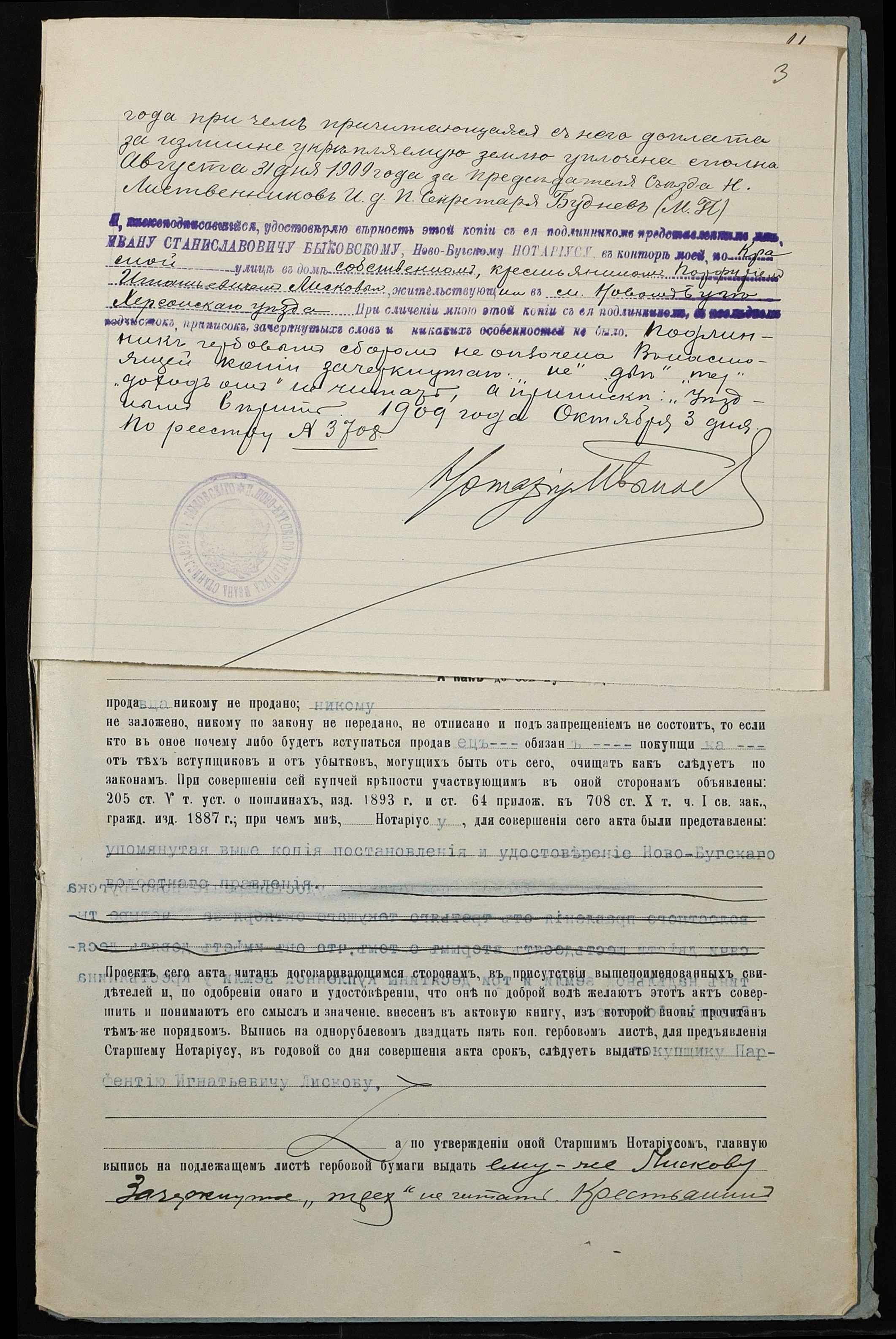 • • • • Справа № 236 “Справа про вчинення купчої про продаж землі селянином Бутенком (Бутенко) Семеном Яковичем (Яковлевичем) на користь селянина Ліскова Парфентія Гнатовича (Лискова Парфентия Игнатовича)”