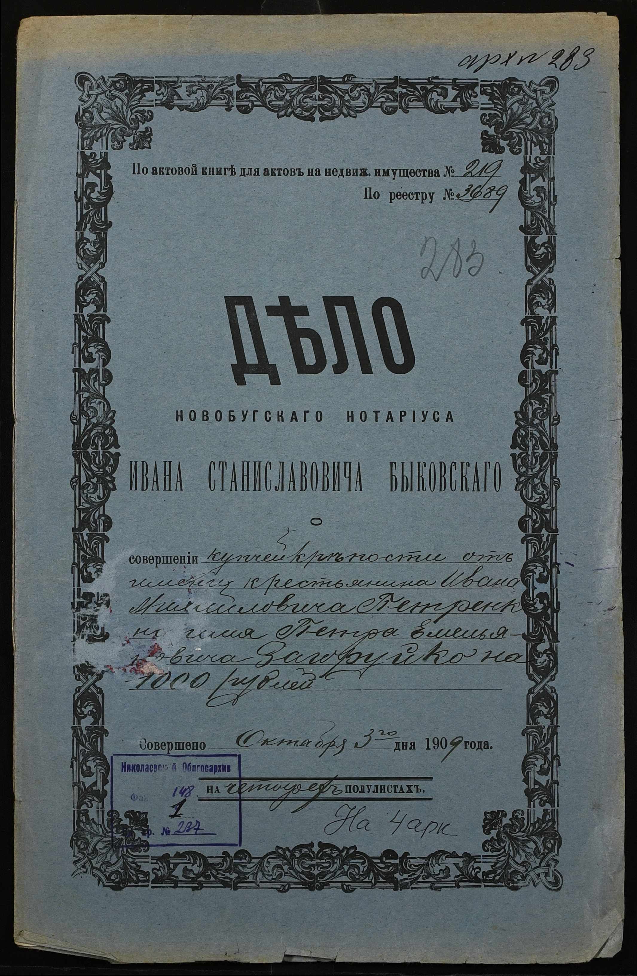 ◦ ◦ Фонд № 148 “Контора новобузького нотаріуса Биковського Івана Станіславовича”