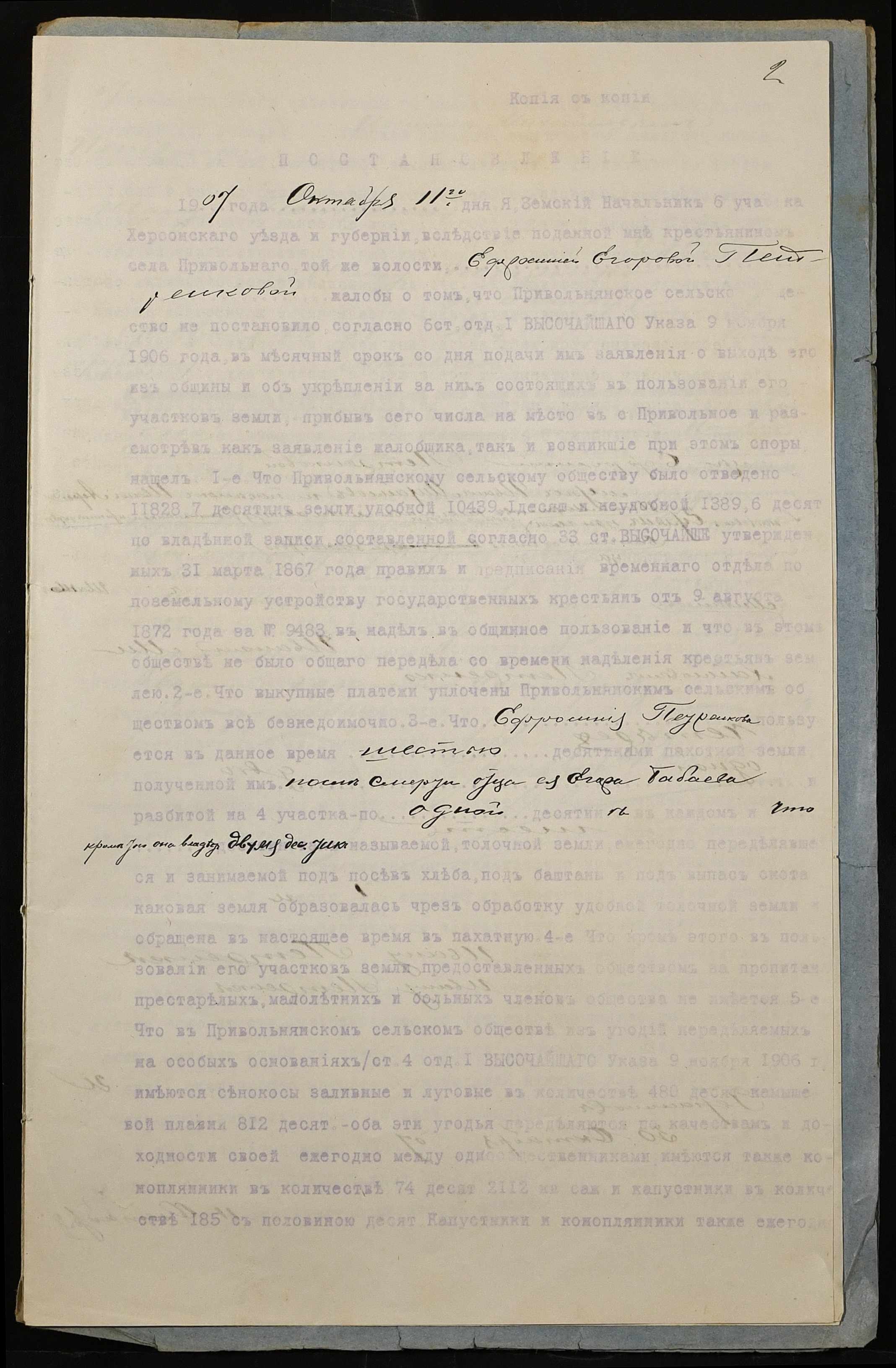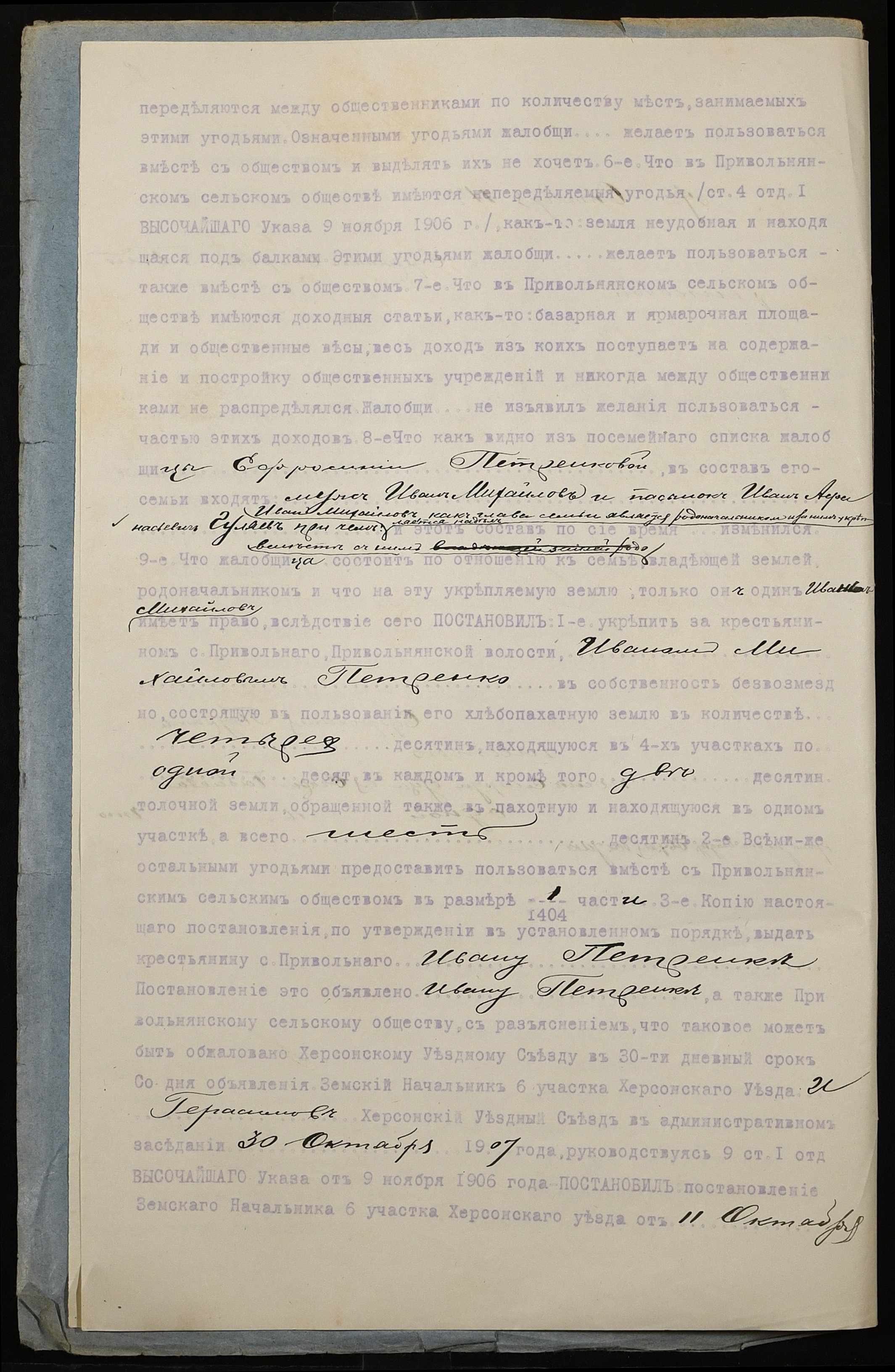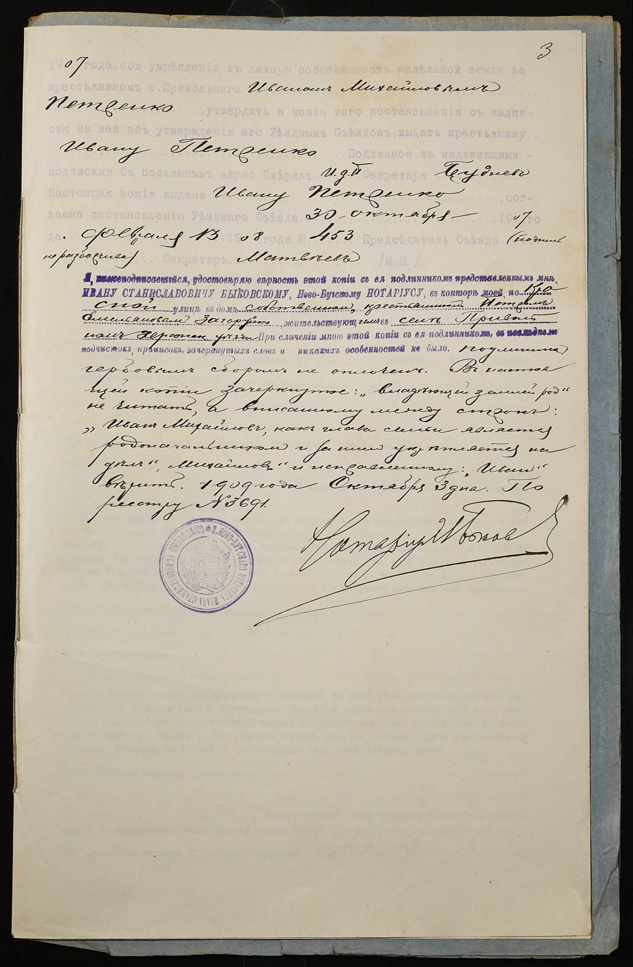 • • • • Справа № 237 “Справа про вчинення купчої про продаж землі селянином Петренком Іваном (Петренко Иваном) Михайловичем на користь селянина Загоруйка (Загоруйко) Петра Омеляновича (Емельяновича)”