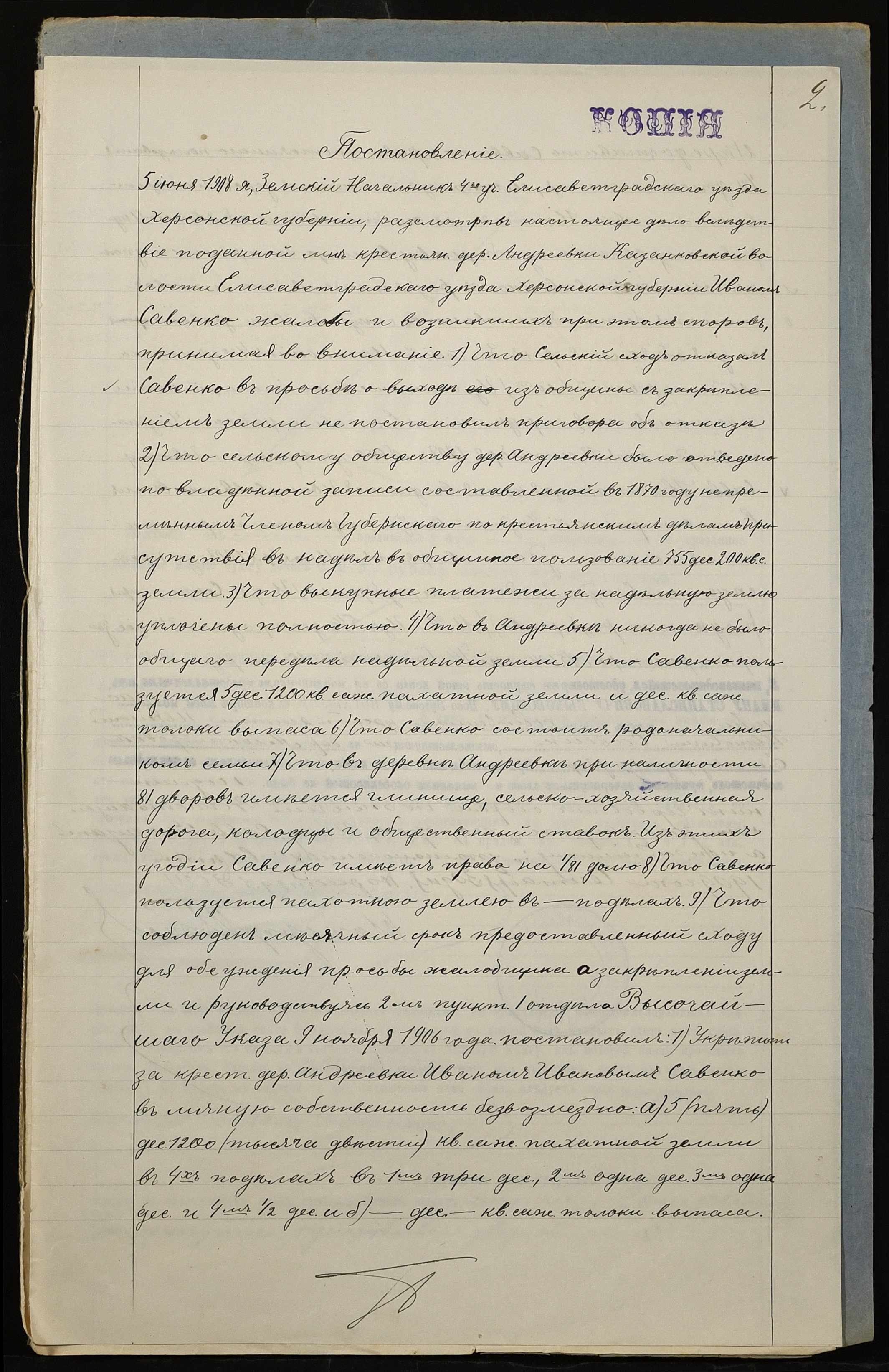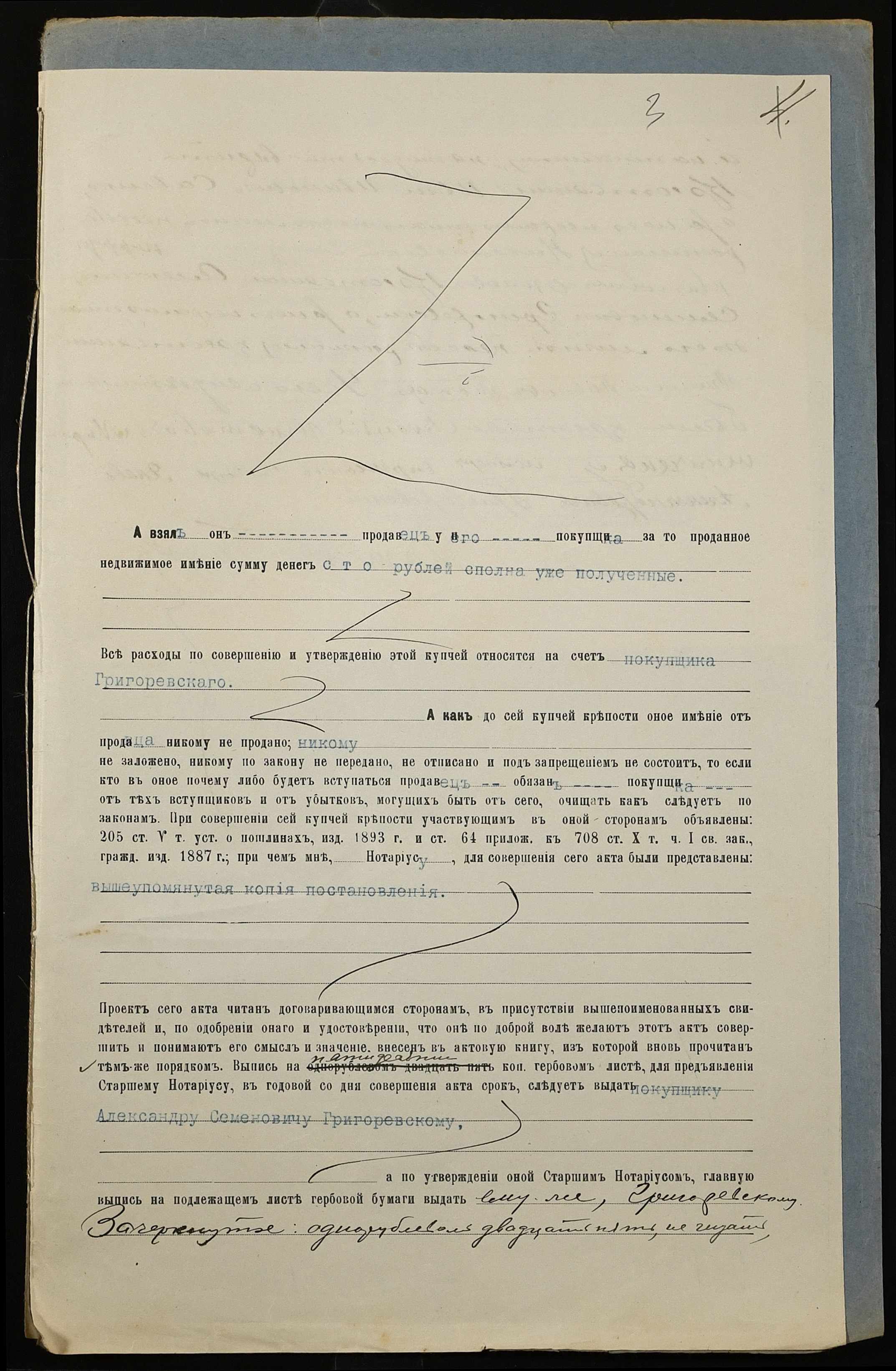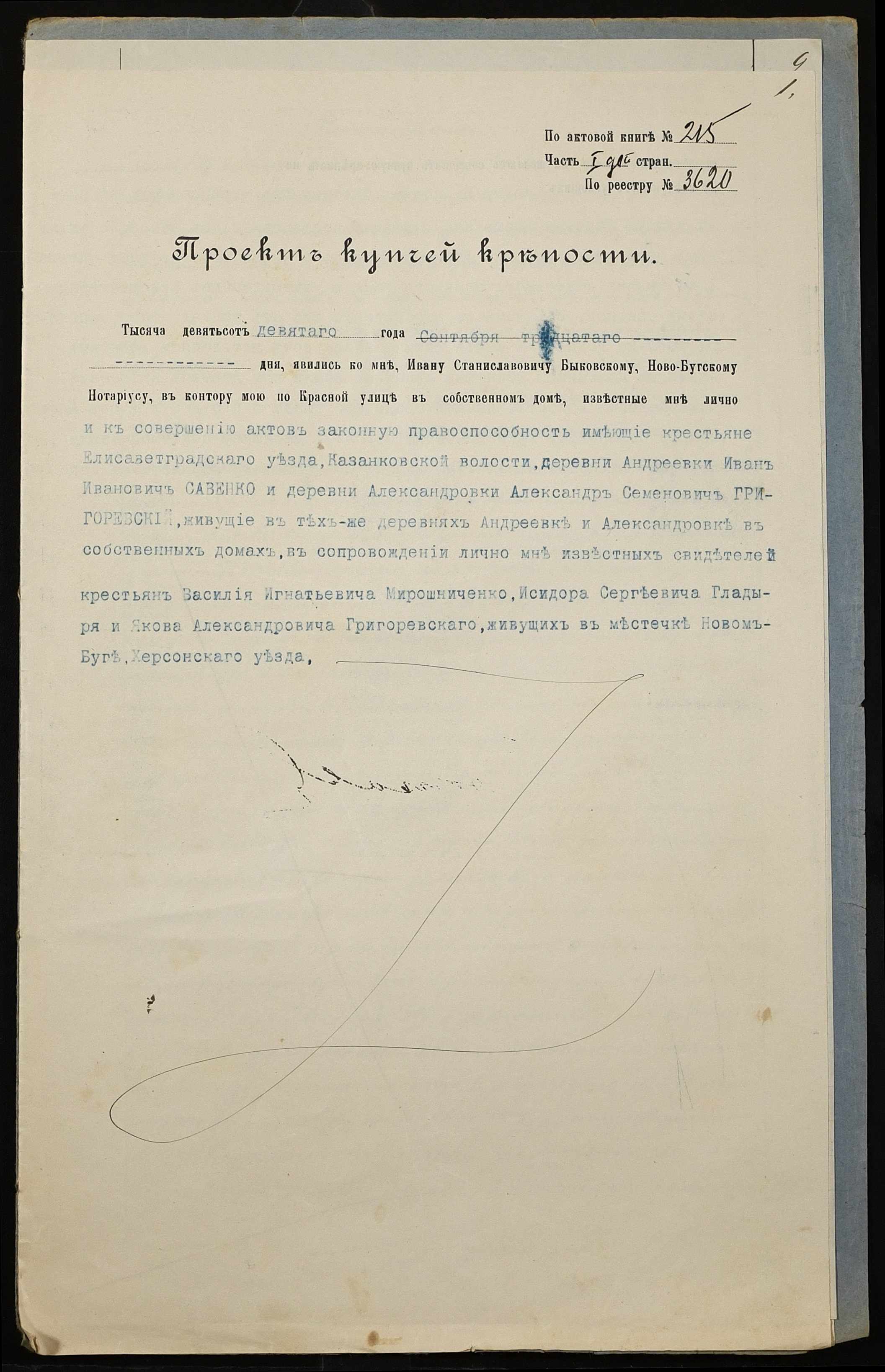 • • • • Справа № 238б “Справа про вчинення купчої про продаж землі селянином Савенком Іваном Івановичем (Савенко Иваном Ивановичем) на користь селянина Григоревського Олександра (Григоревского Александра) Семеновича”