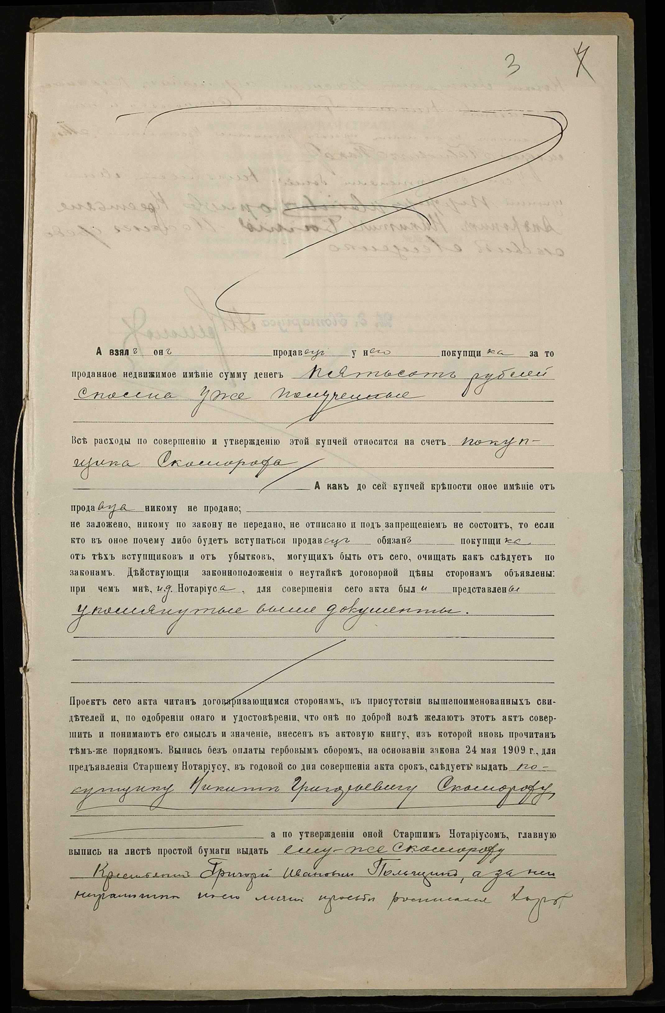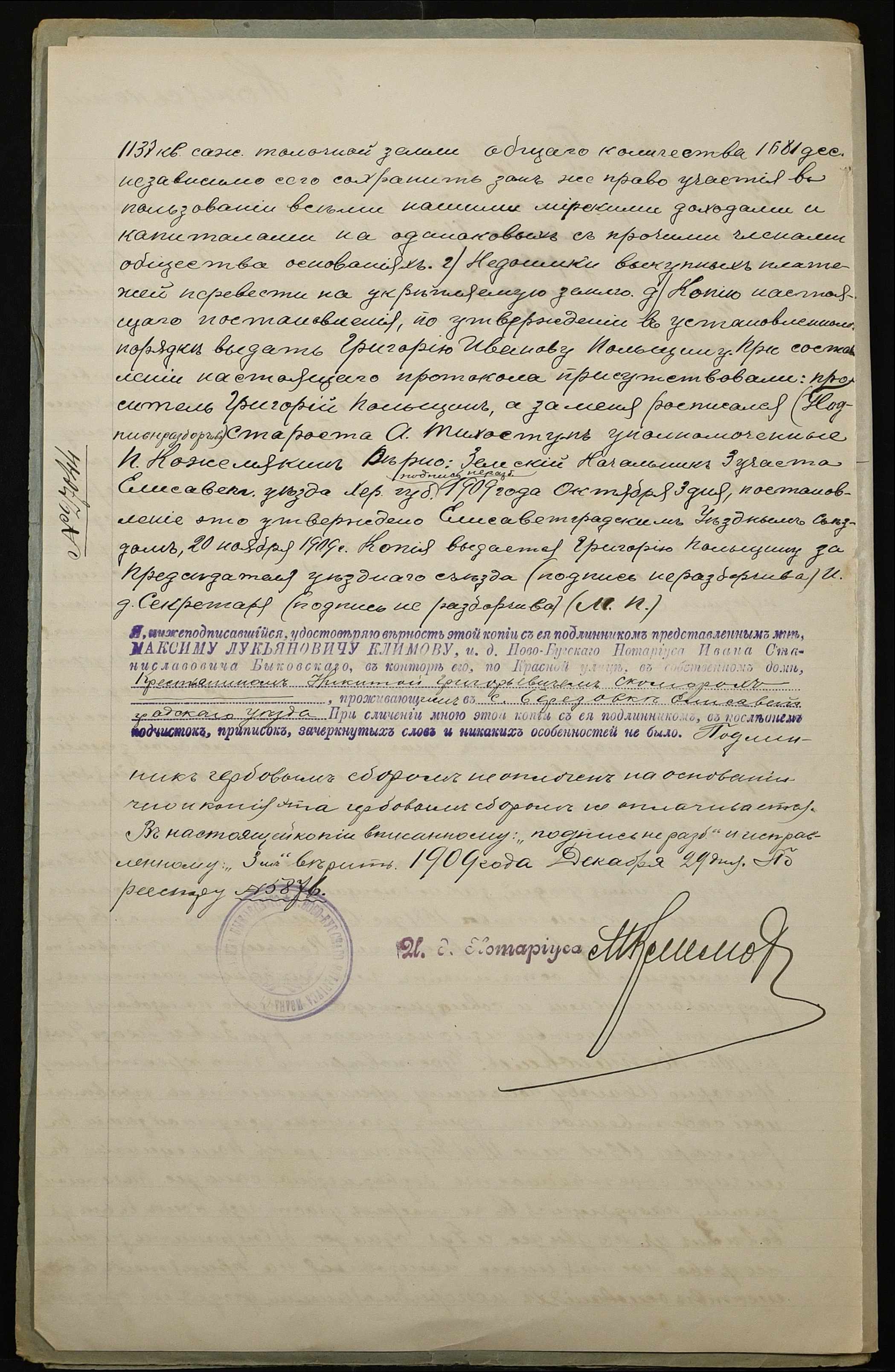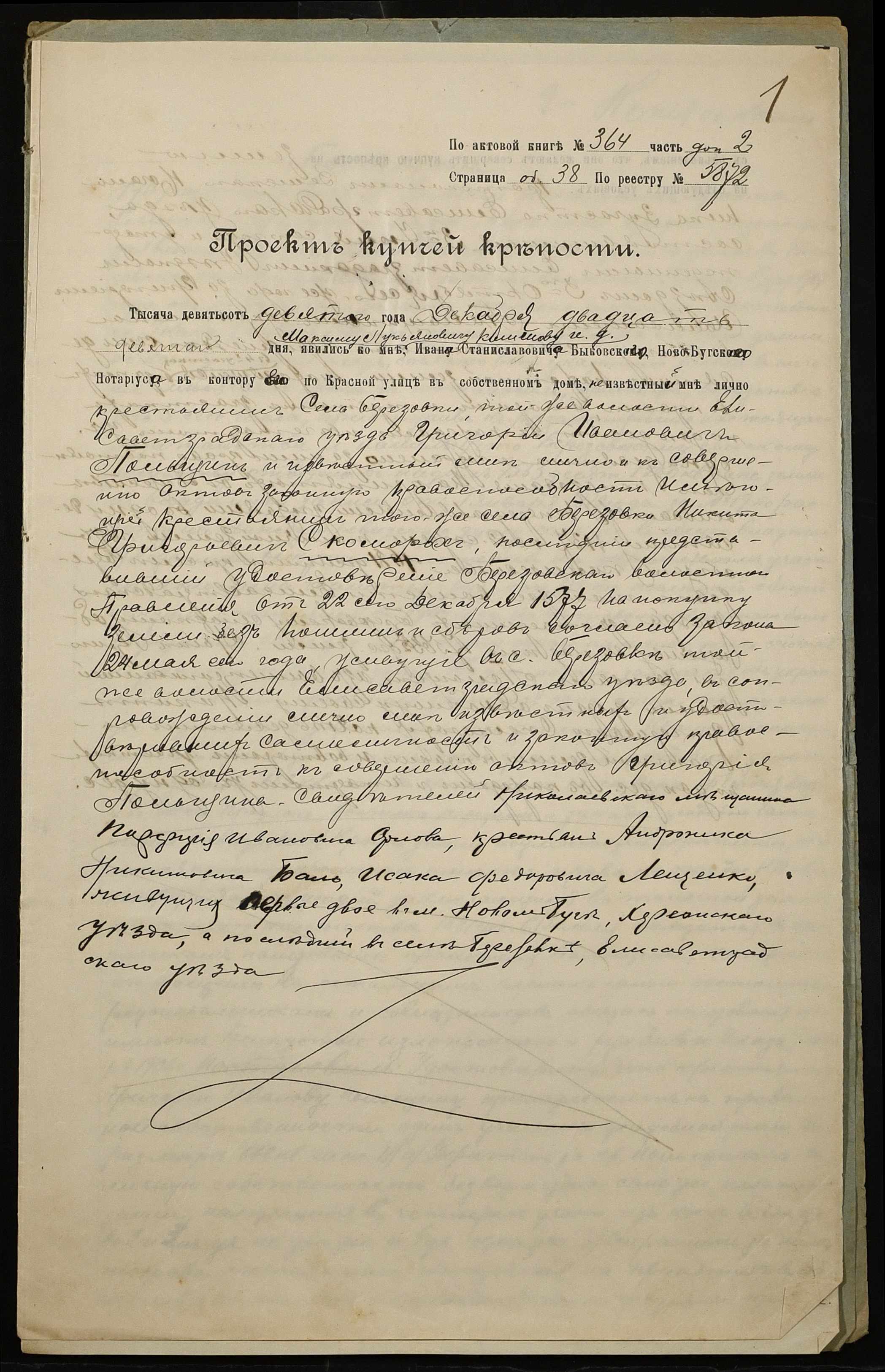 • • • • Справа № 244 “Справа про вчинення купчої про продаж землі селянином Польщиним Григорієм Івановичем (Польщиным Григорием Ивановичем) на користь селянина Скомороха Микити Григоровича (Никиты Григорьевича)”