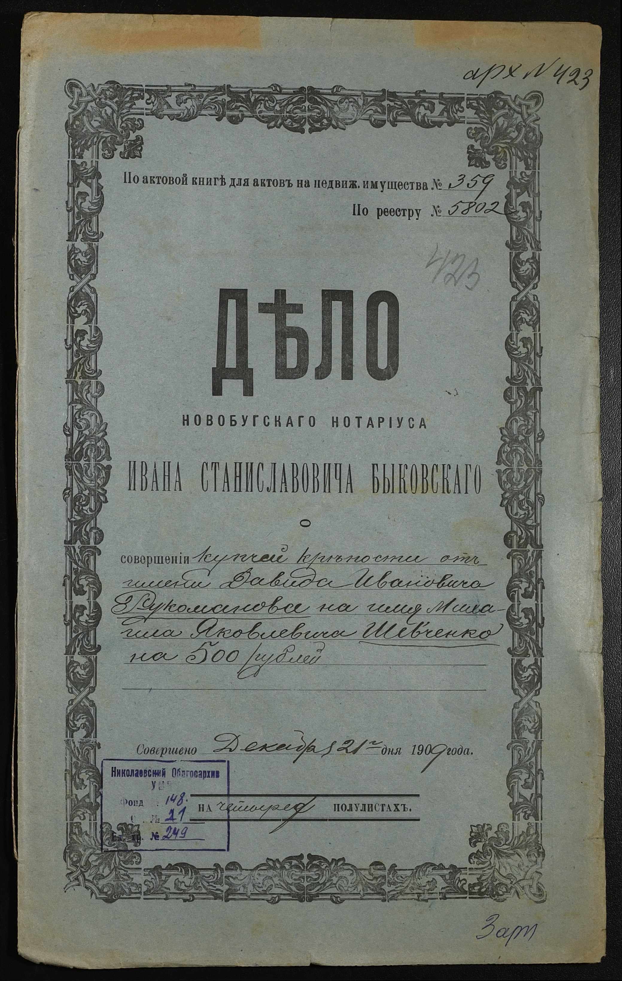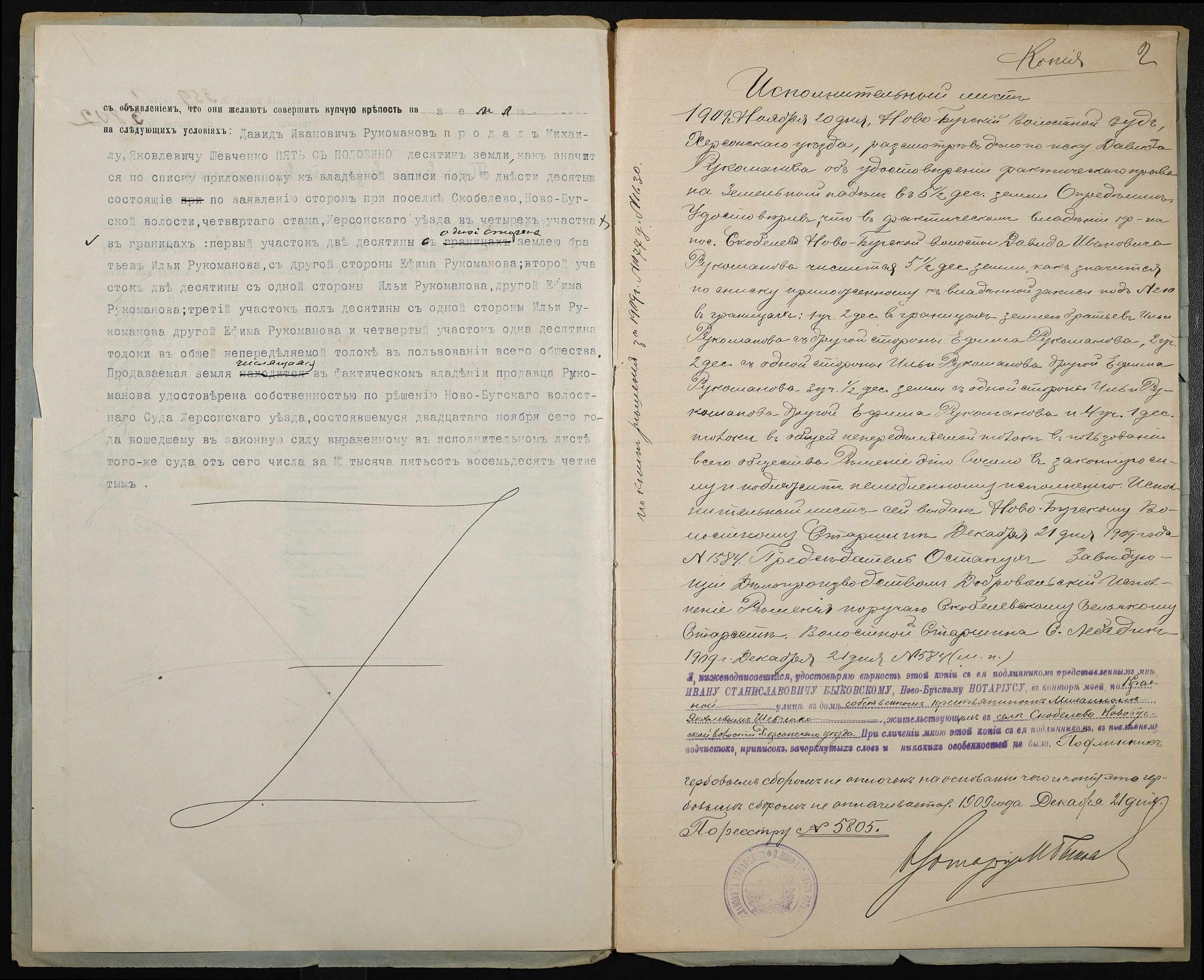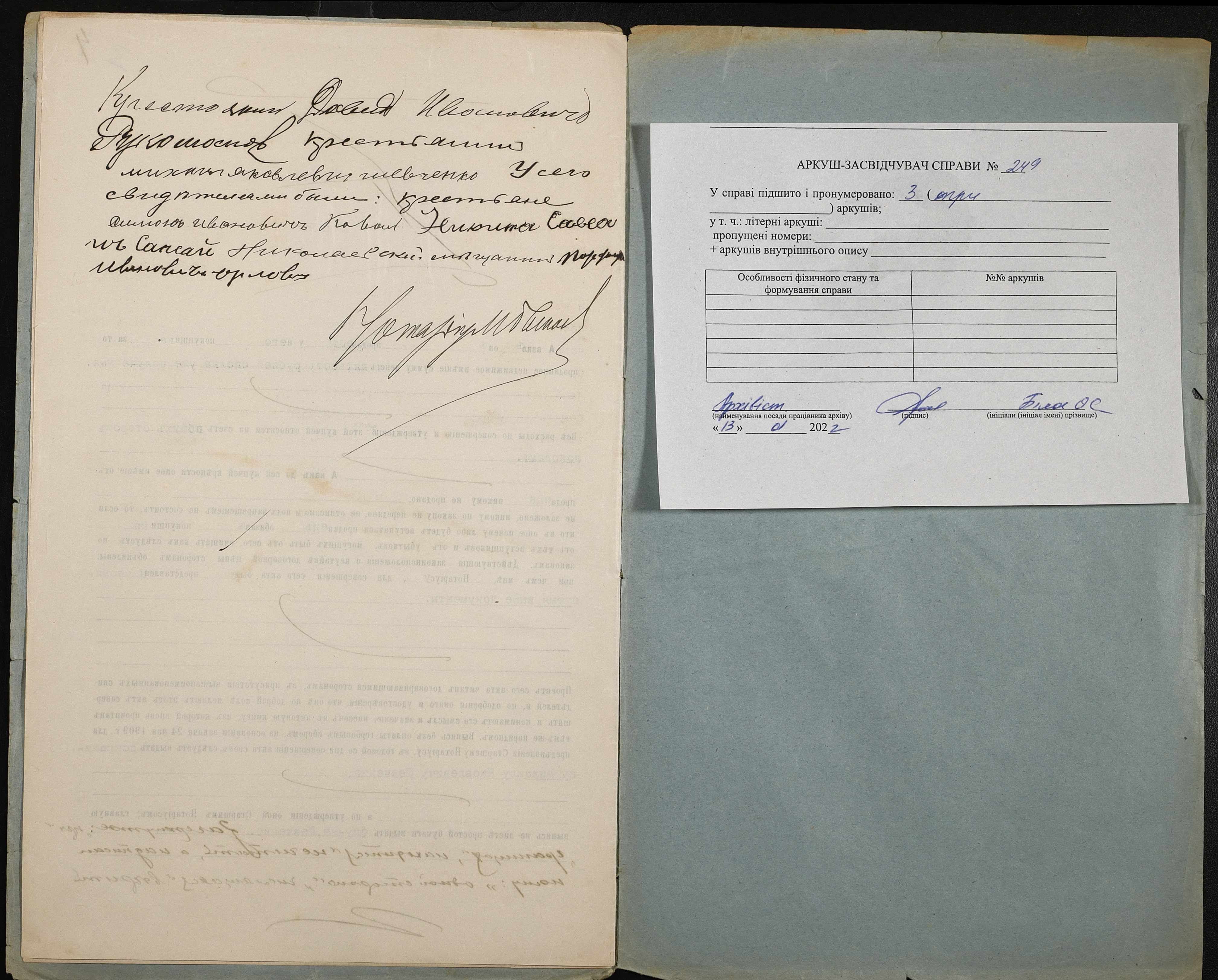 • • • • Справа № 249 “Справа про вчинення купчої про продаж землі селянином Рукомановим (Рукомановым) Давидом Івановичем (Ивановичем) на користь селянина Шевченка Михайла Яковича (Шевченко Михаила Яковлевича)”