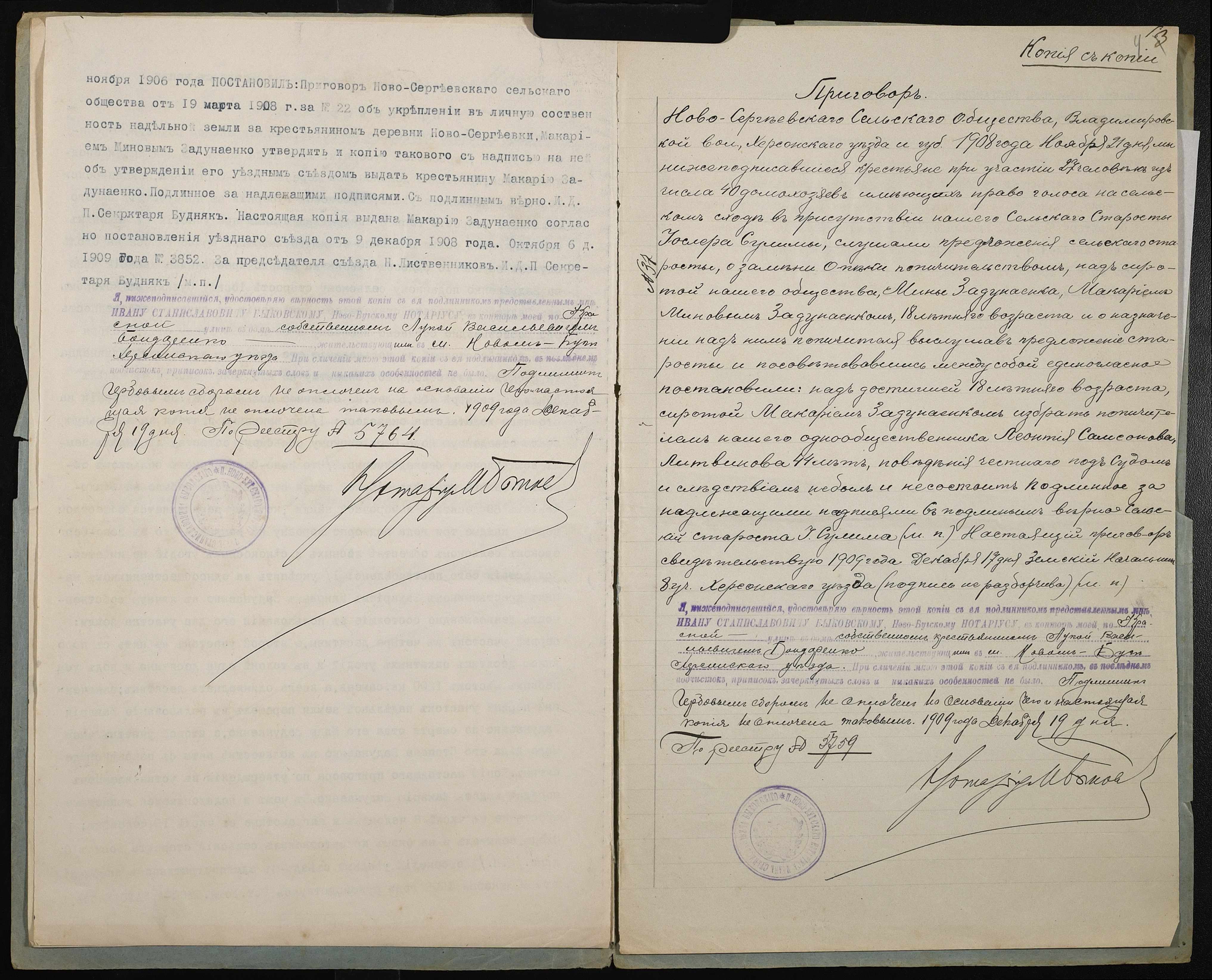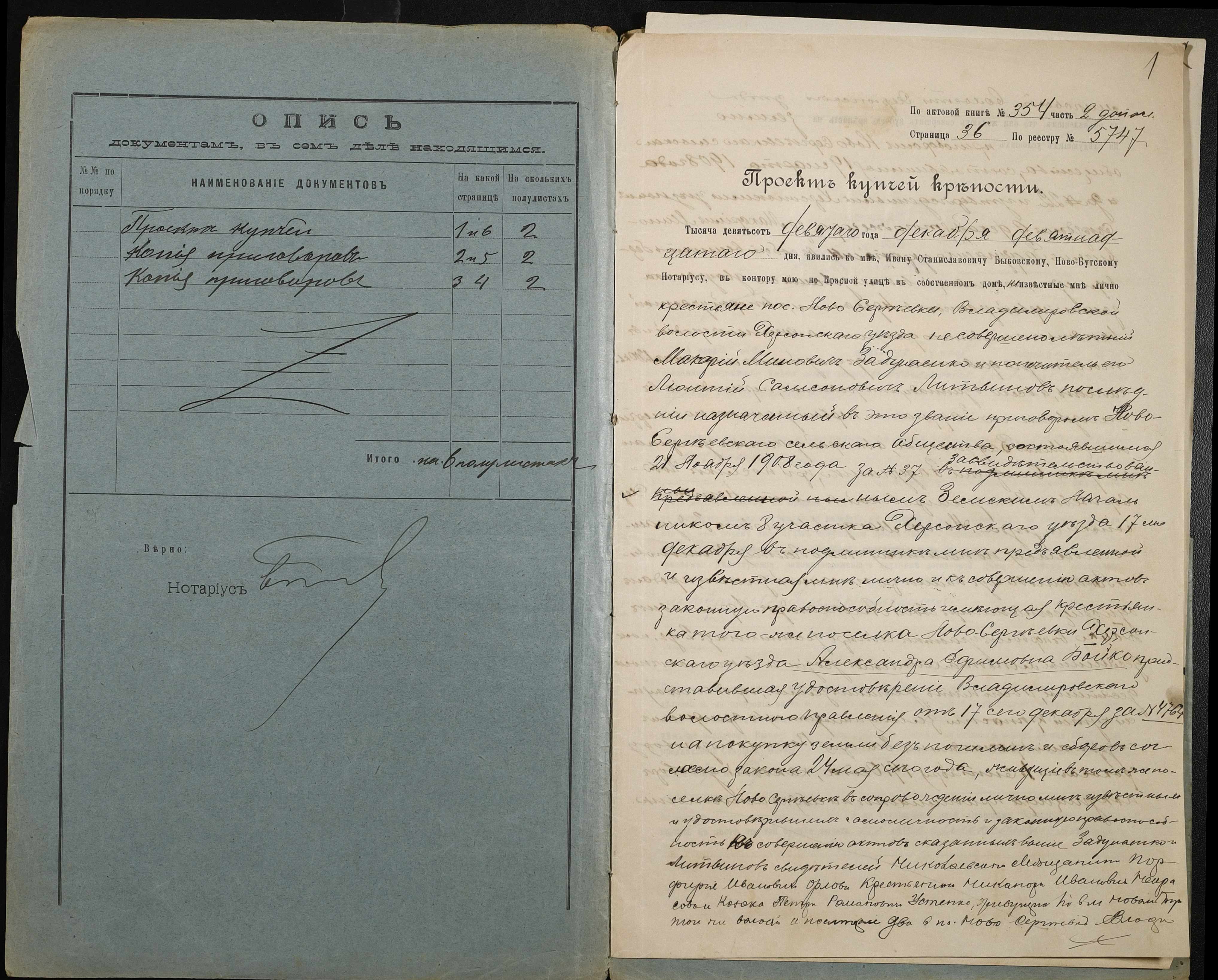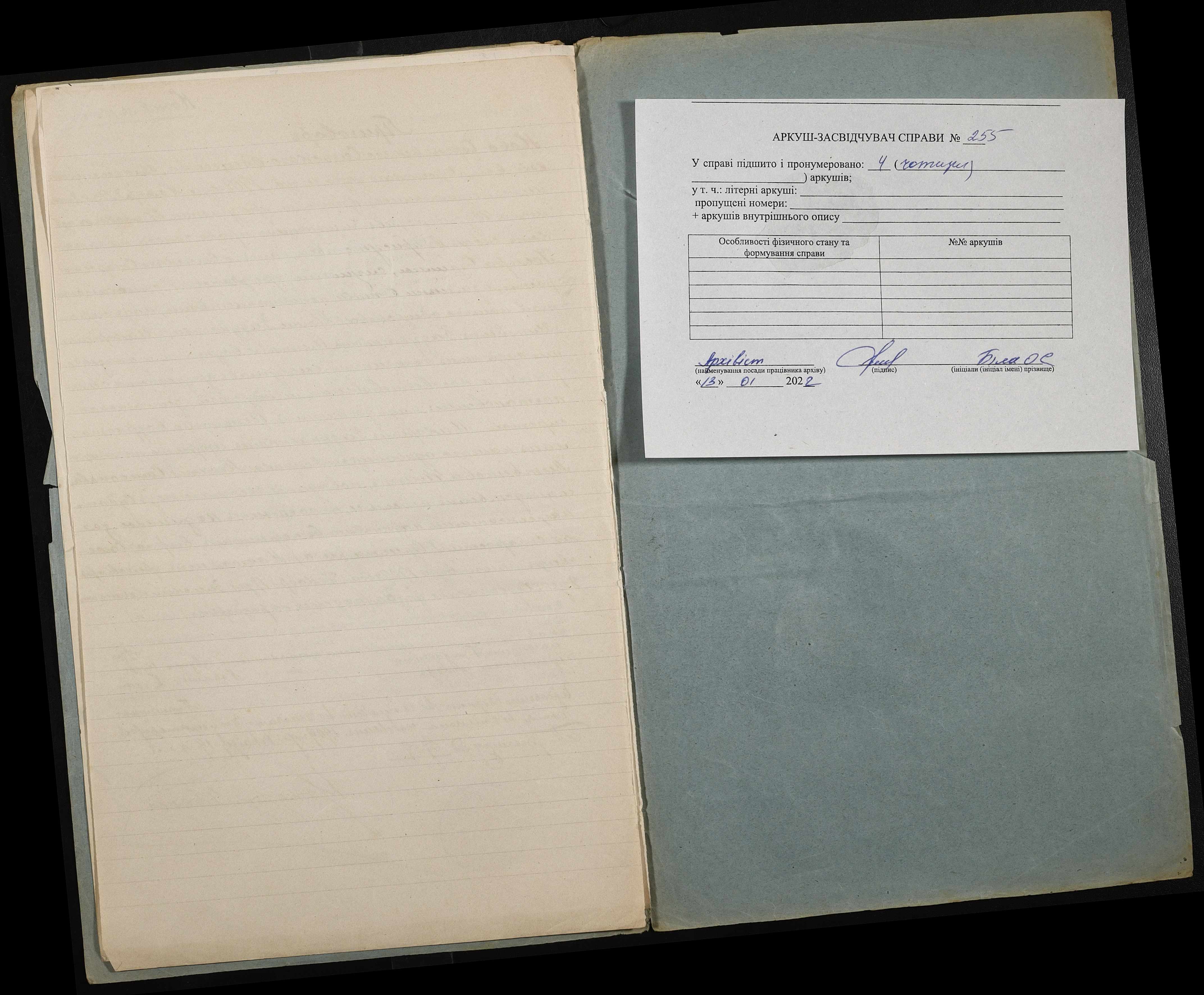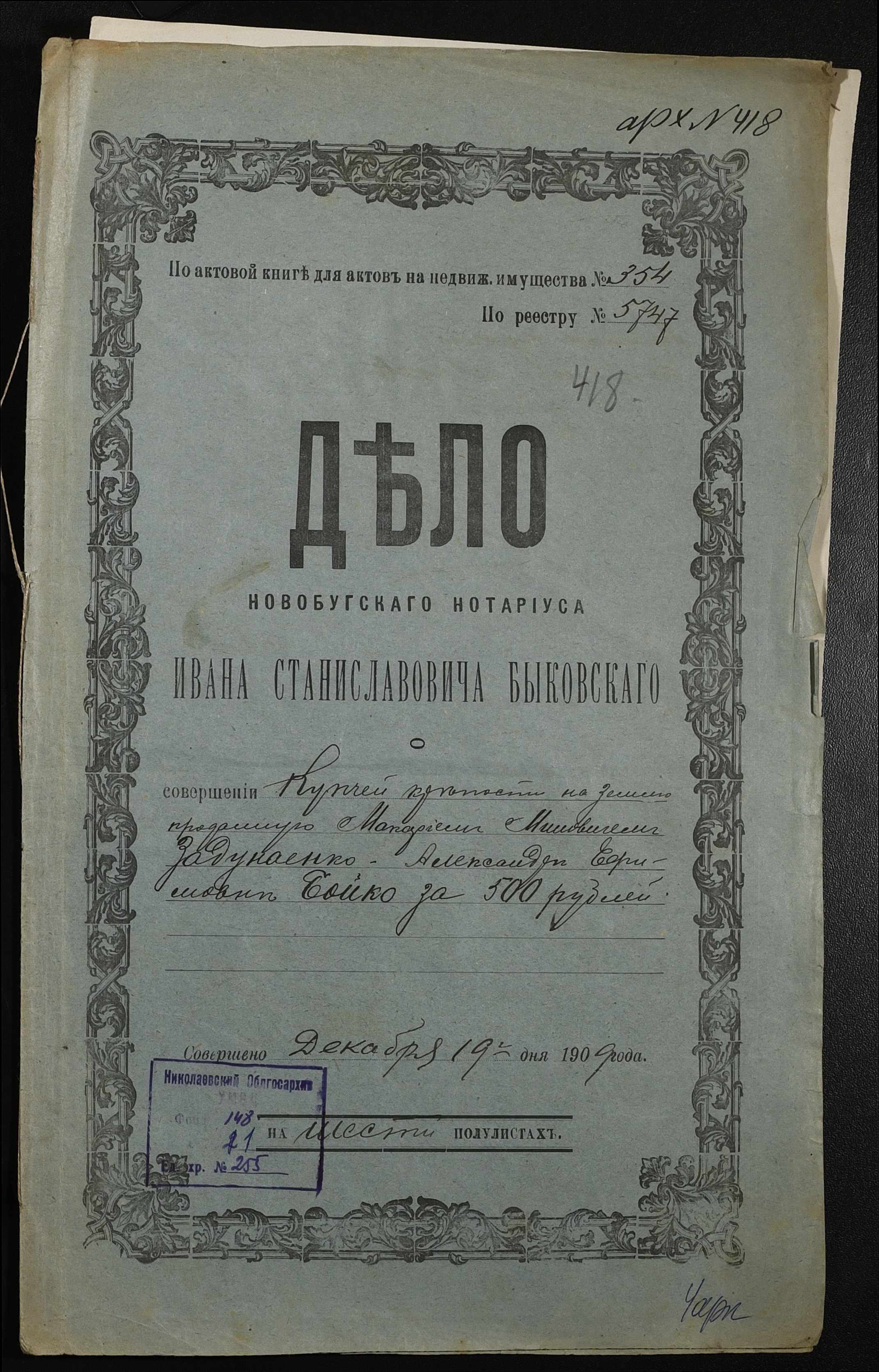 • • • • Справа № 255 “Справа про вчинення купчої про продаж землі селянином Задунаєнком Макарієм (Задунаенко Макарием) Миновичем на користь селянки Бойко Олександри Юхимівни (Александры Ефимовны)”