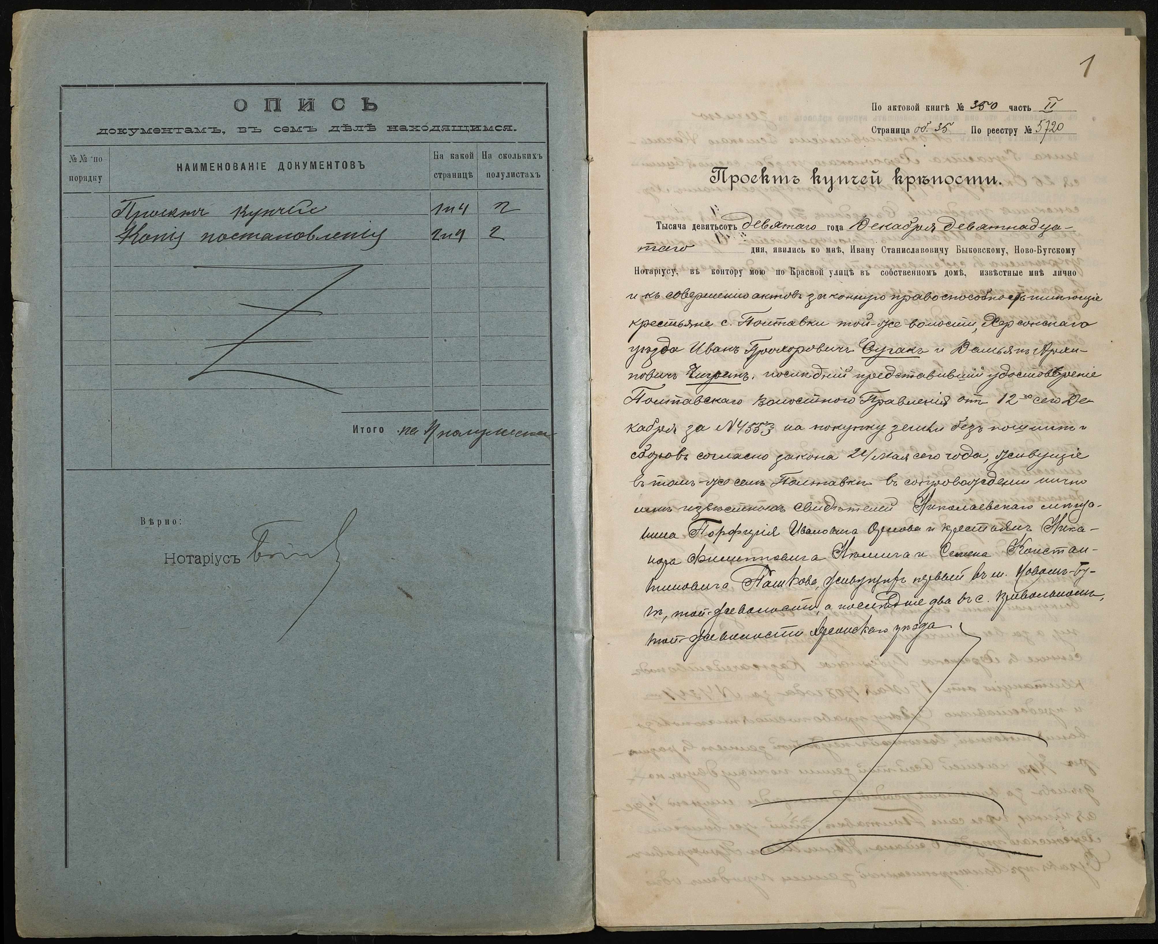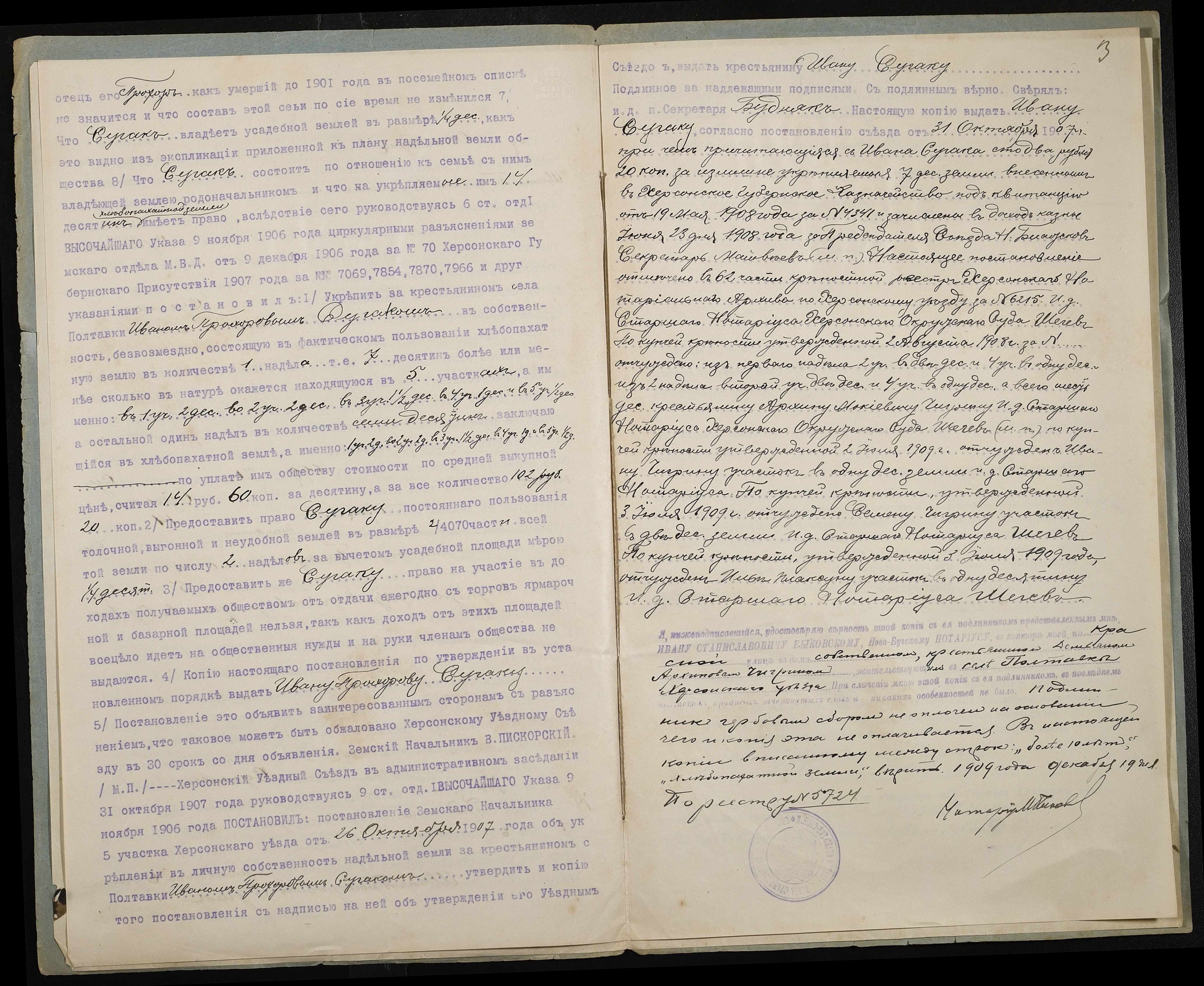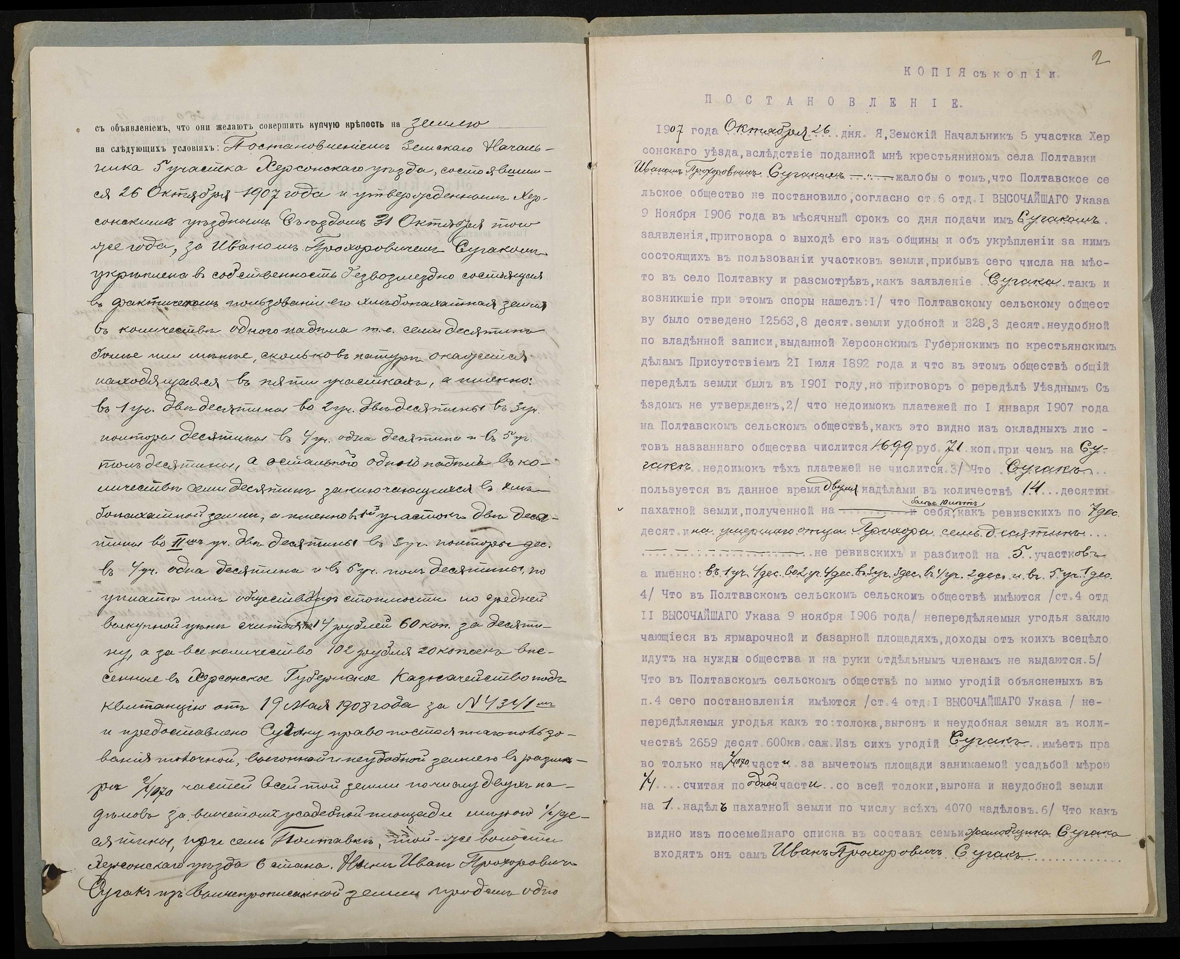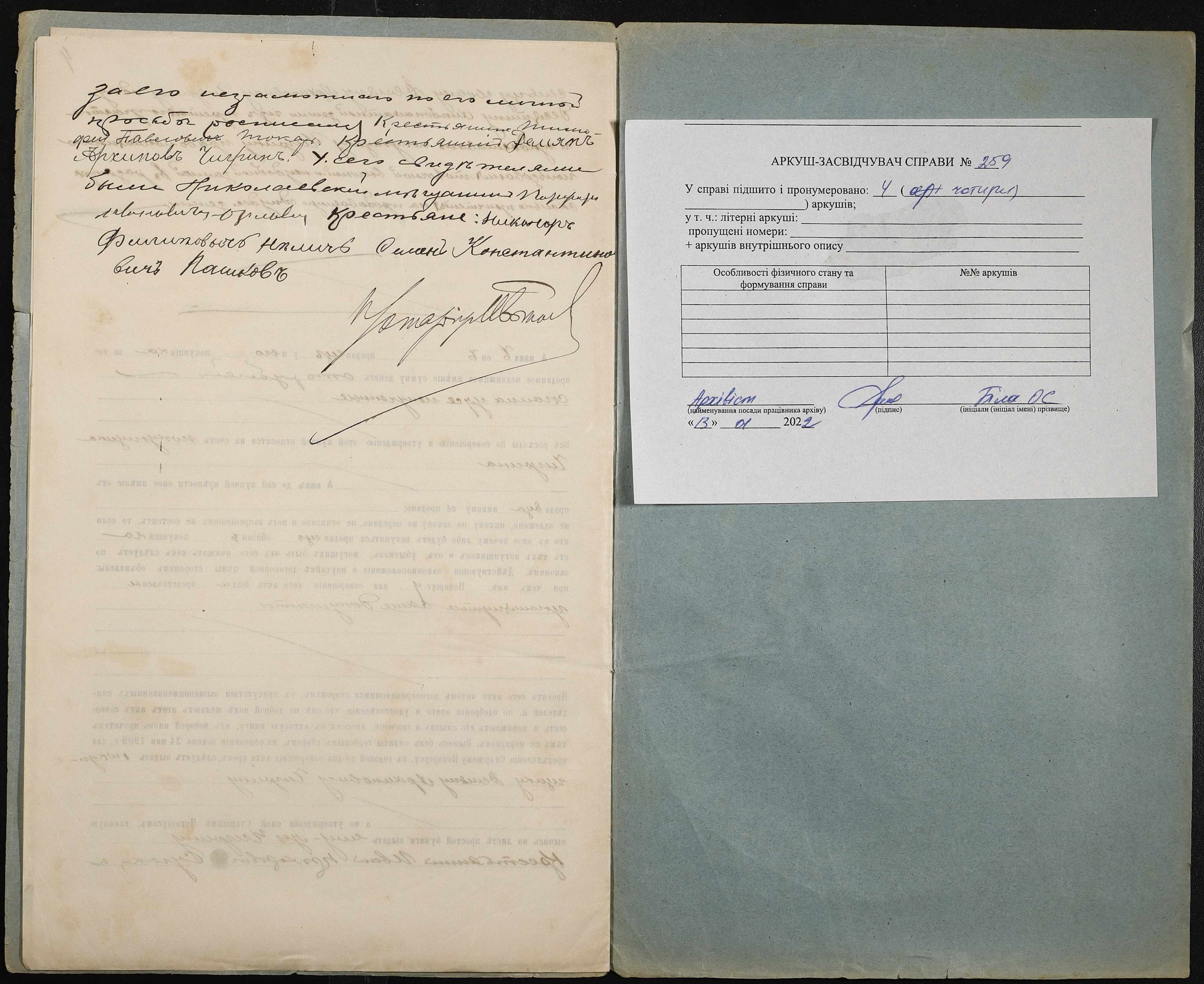 • • • • Справа № 259 “Справа про вчинення купчої про продаж землі селянином Сугаком Іваном (Иваном) Прохоровичем на користь селянина Чигрина Дем’яна (Демьяна) Архиповича”