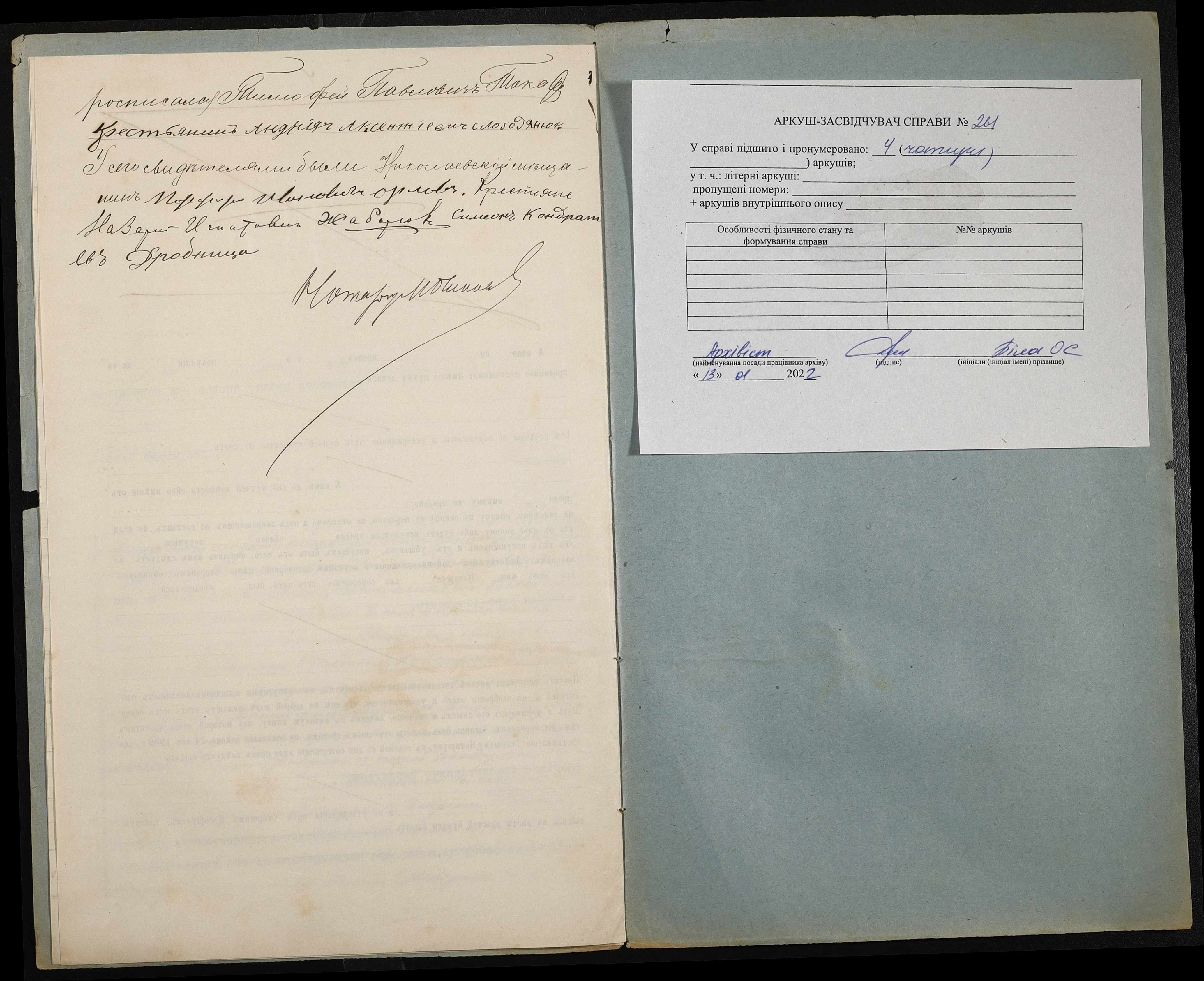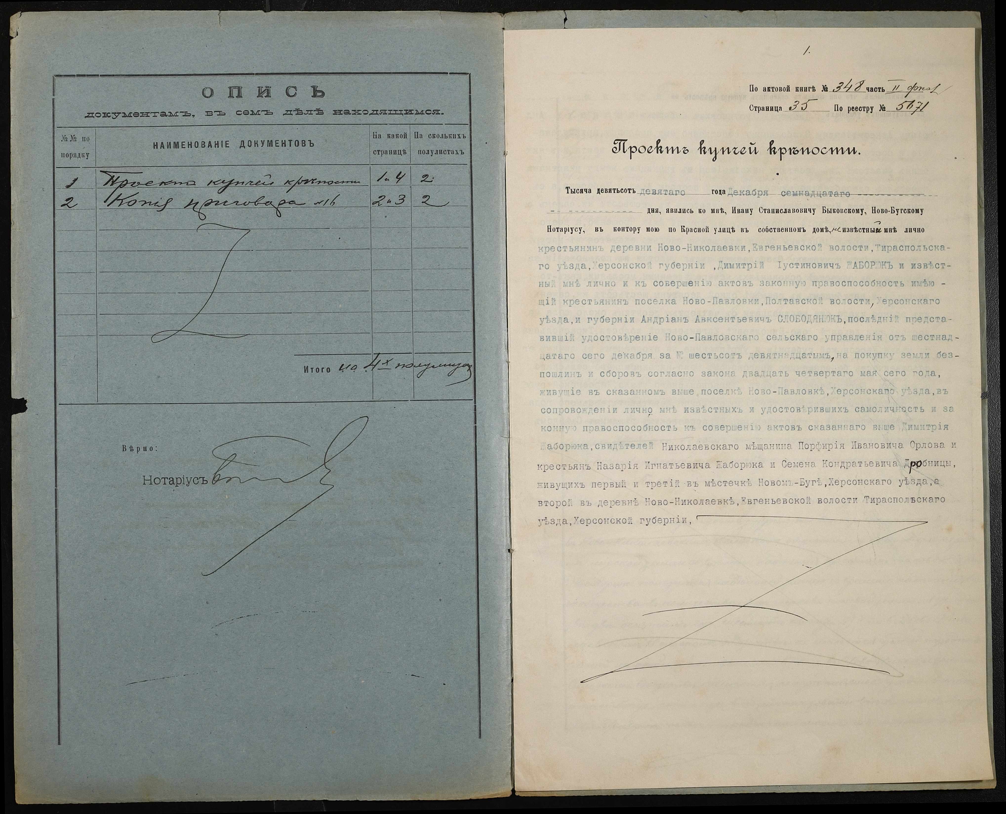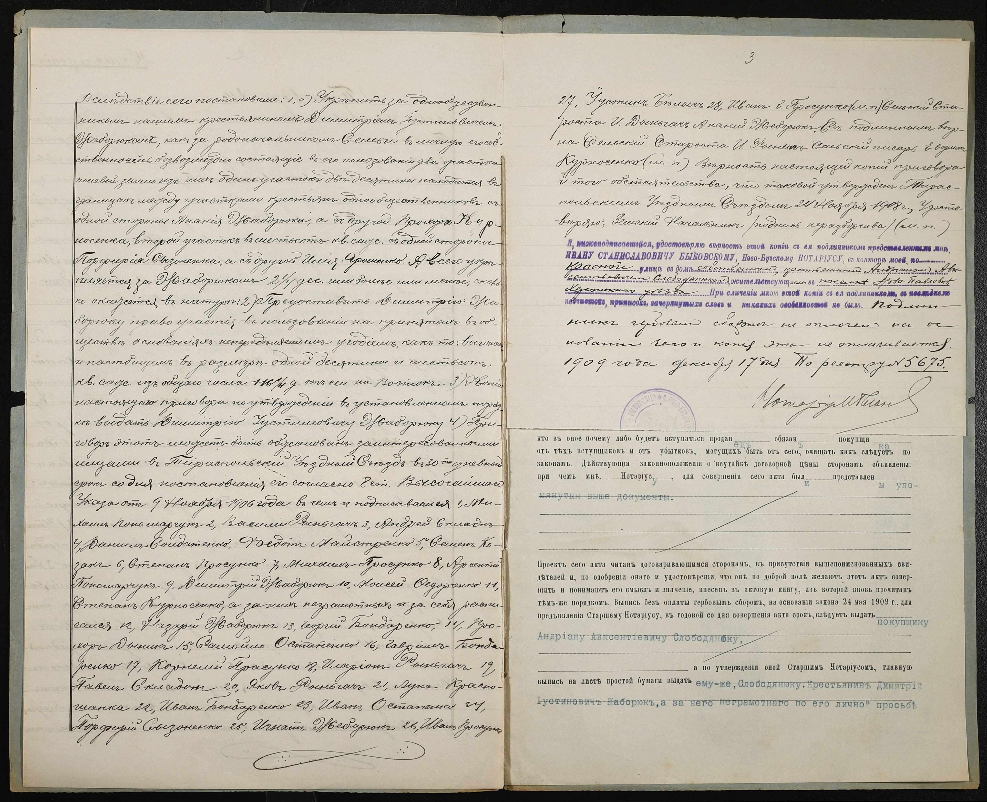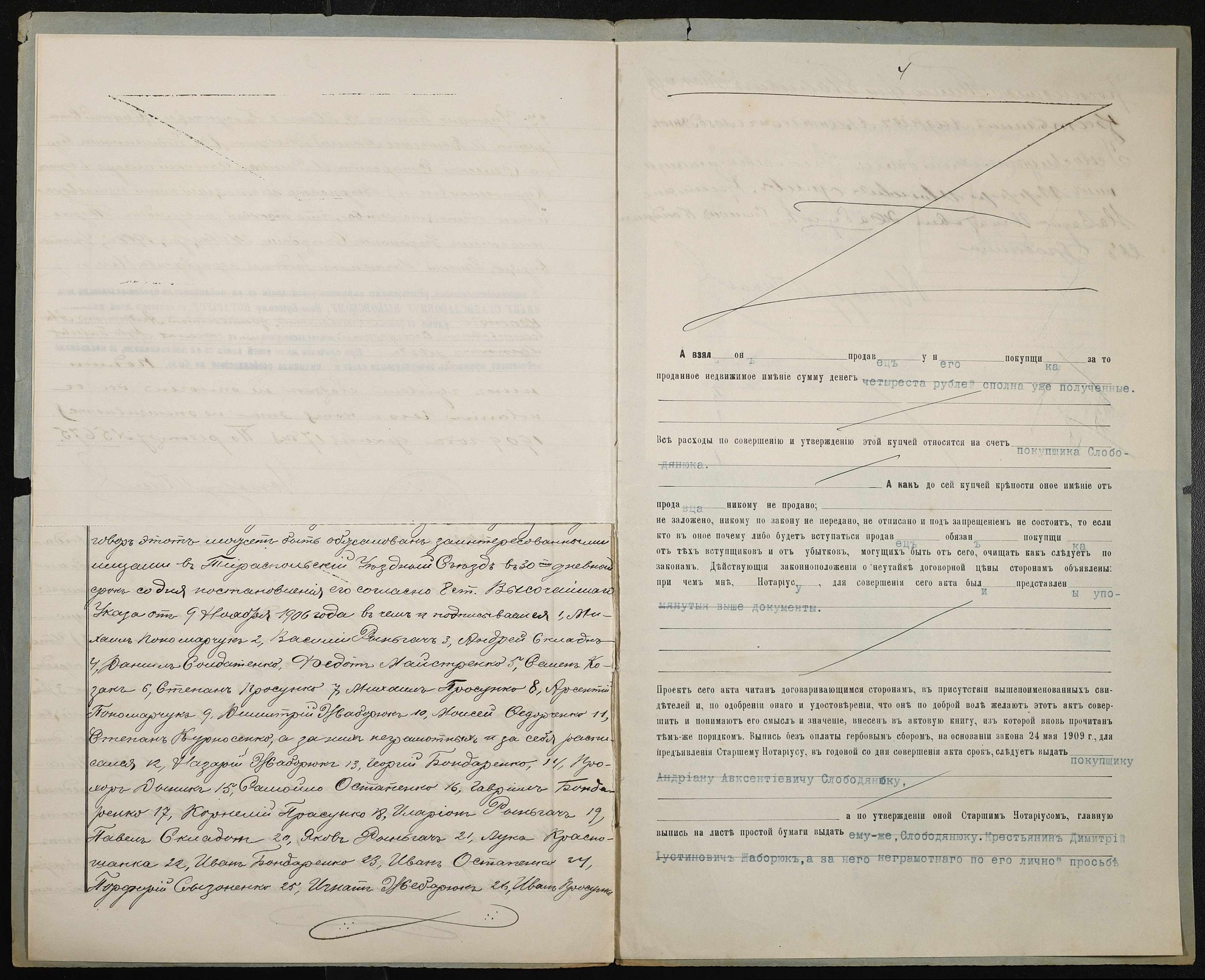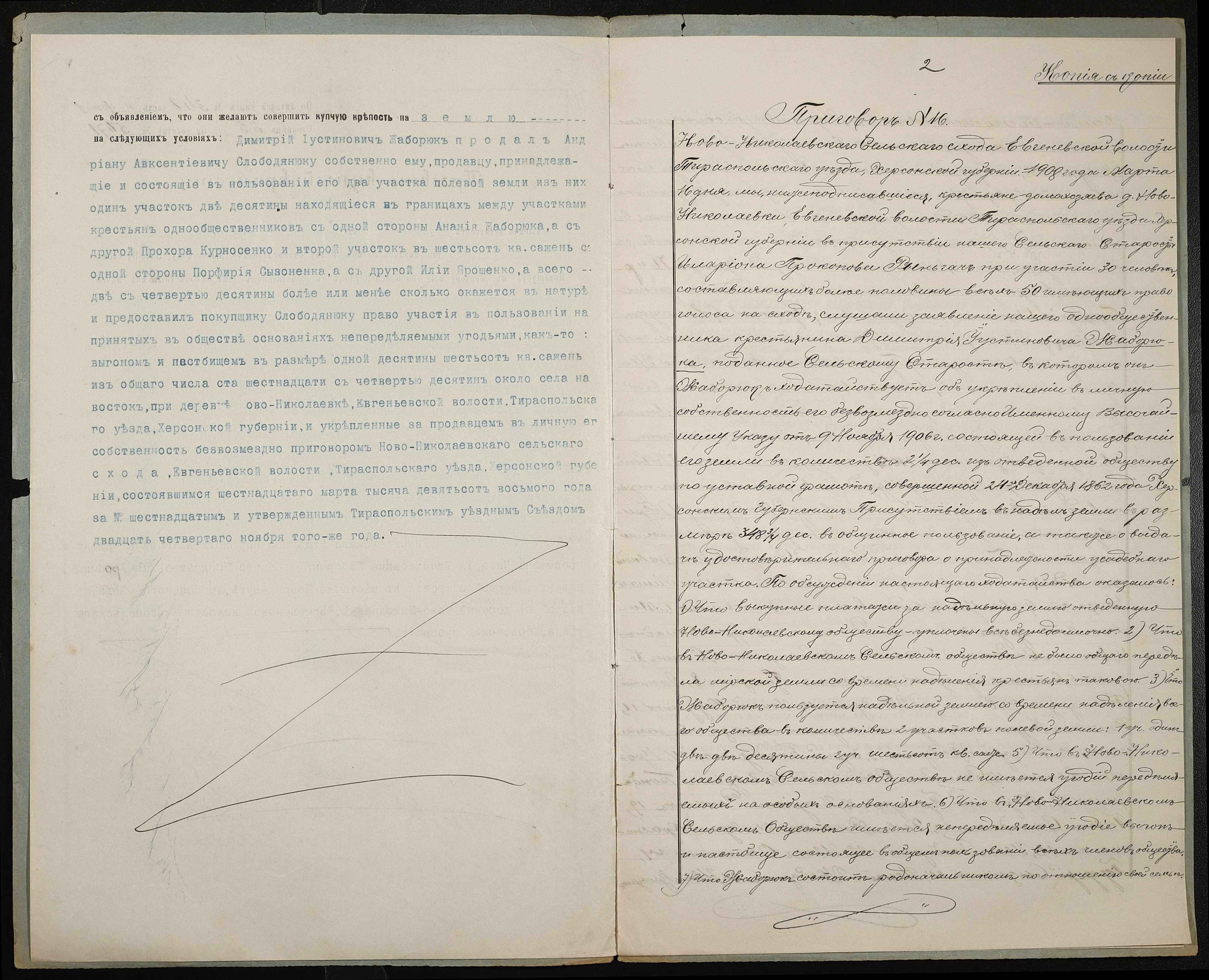 • • • • Справа № 261 “Справа про вчинення купчої про продаж землі селянином Жаборюком Дмитром Устиновичем (Дмитрием Иустиновичем) на користь селянина Слободянюка Андріана Овксентійовича (Андриана Авксентьевича)”