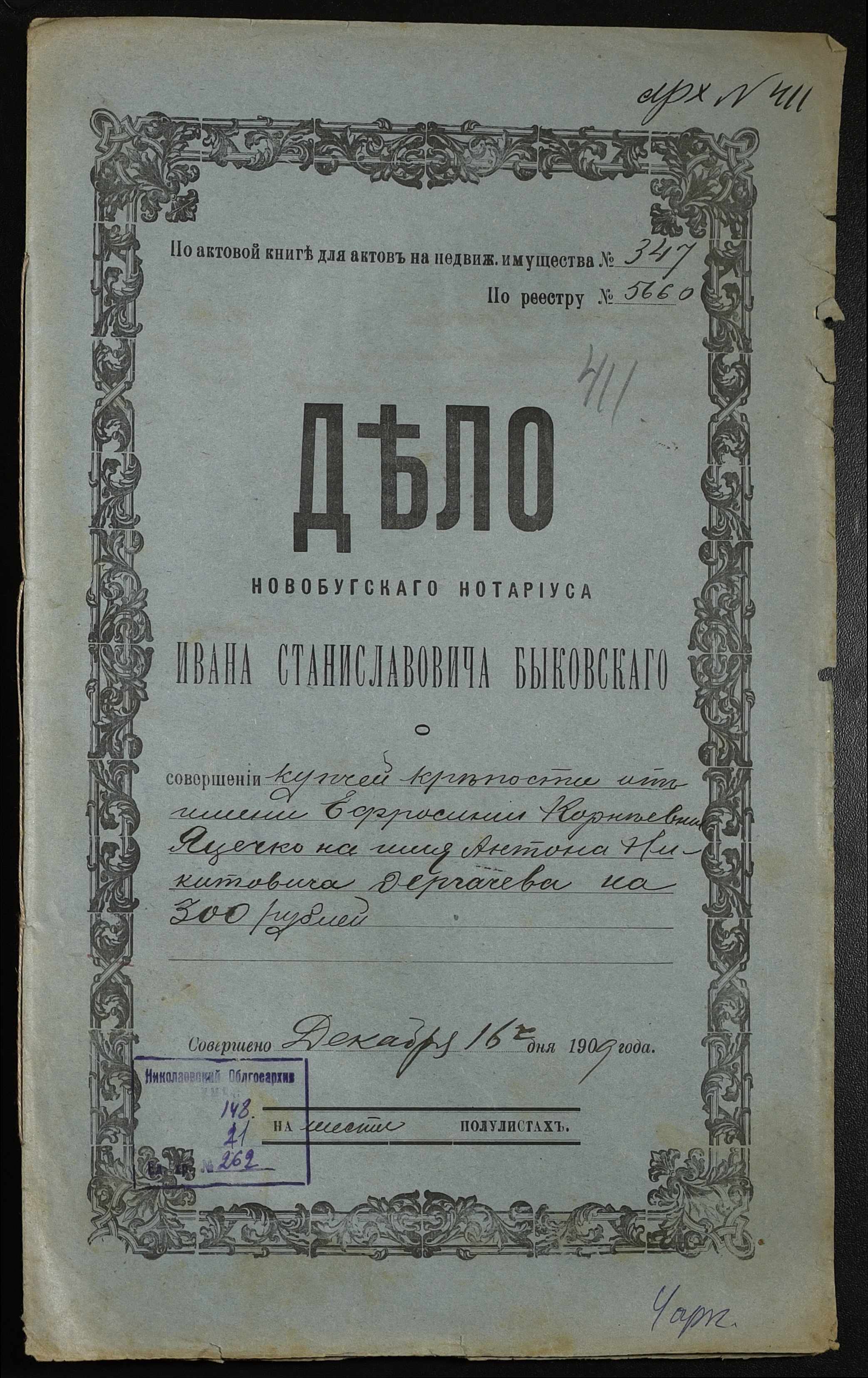 ◦ ◦ Фонд № 148 “Контора новобузького нотаріуса Биковського Івана Станіславовича”
