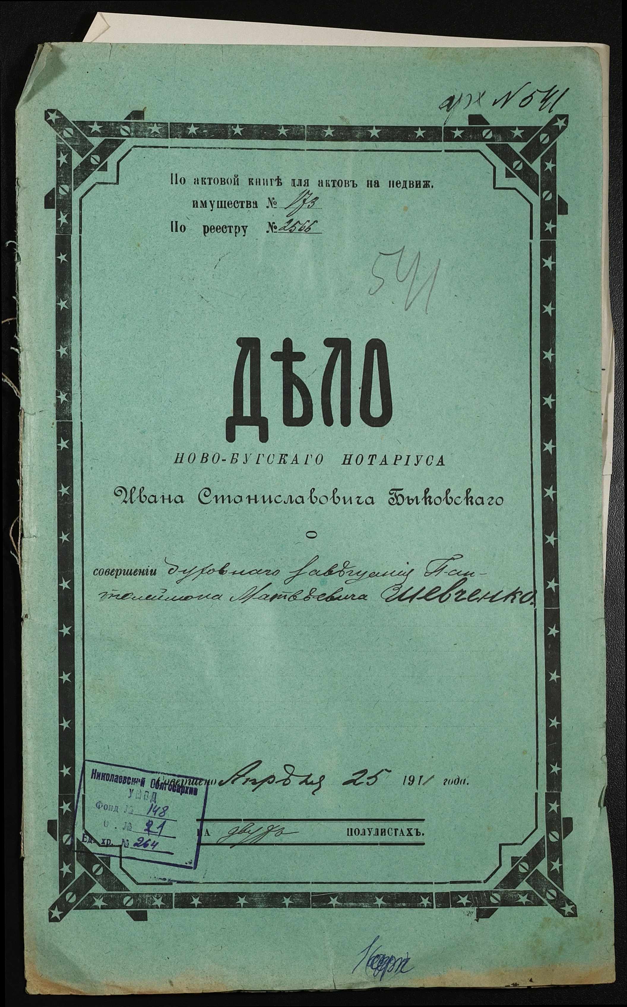 ◦ ◦ Фонд № 148 “Контора новобузького нотаріуса Биковського Івана Станіславовича”