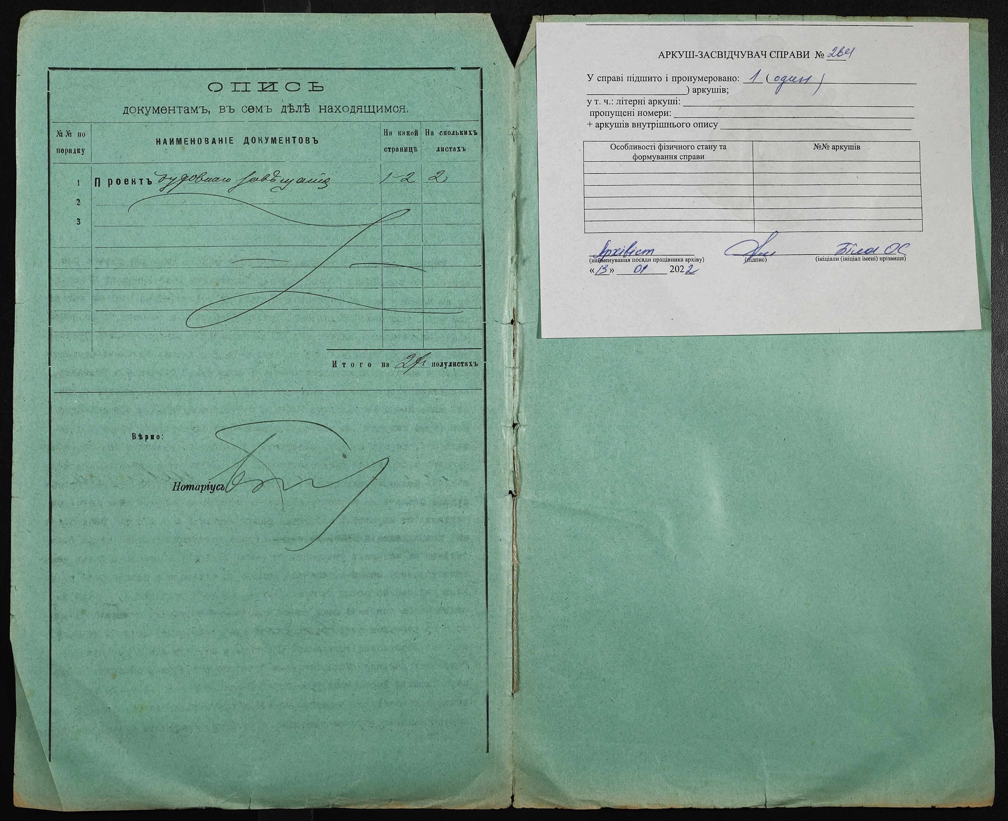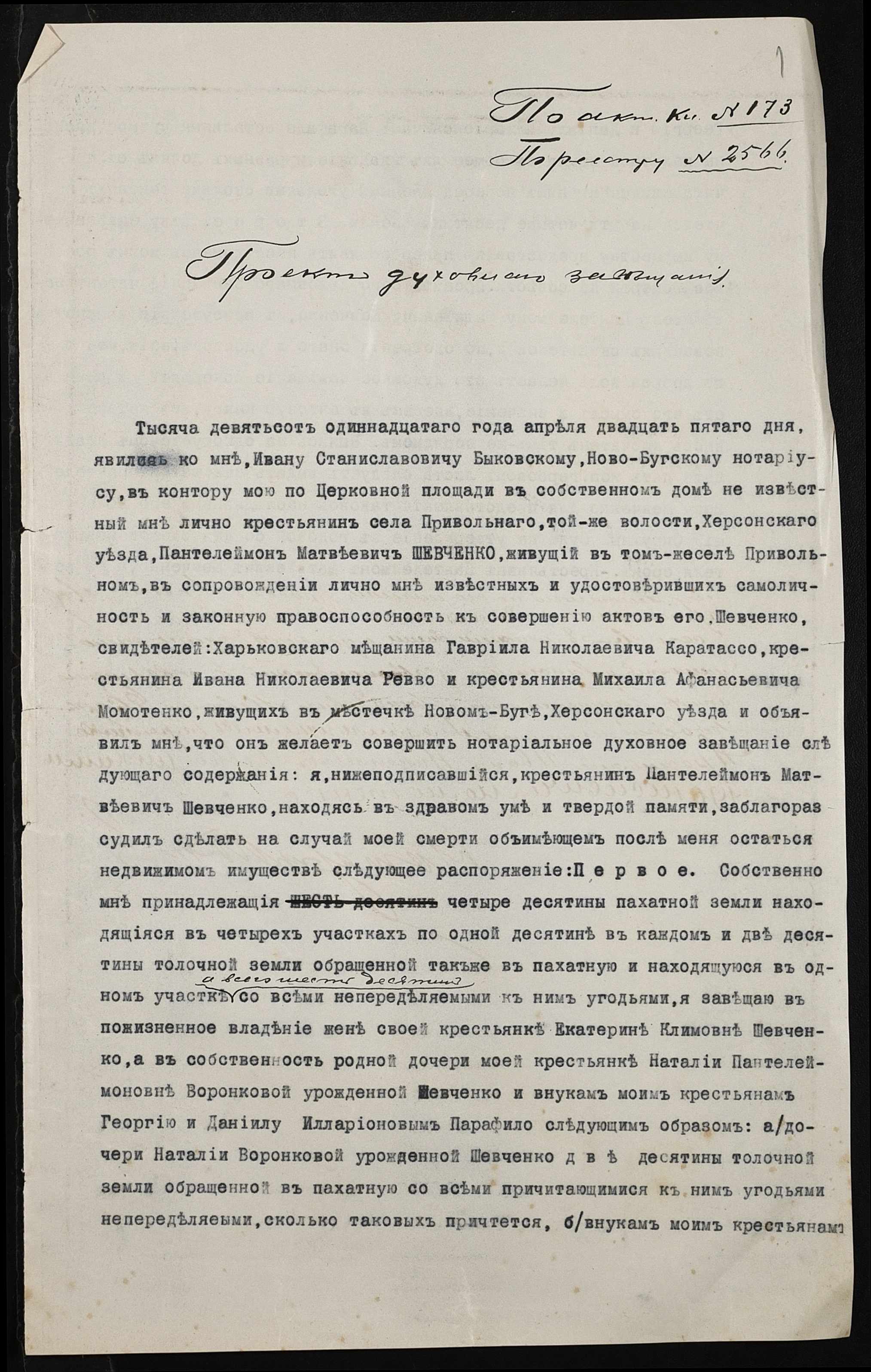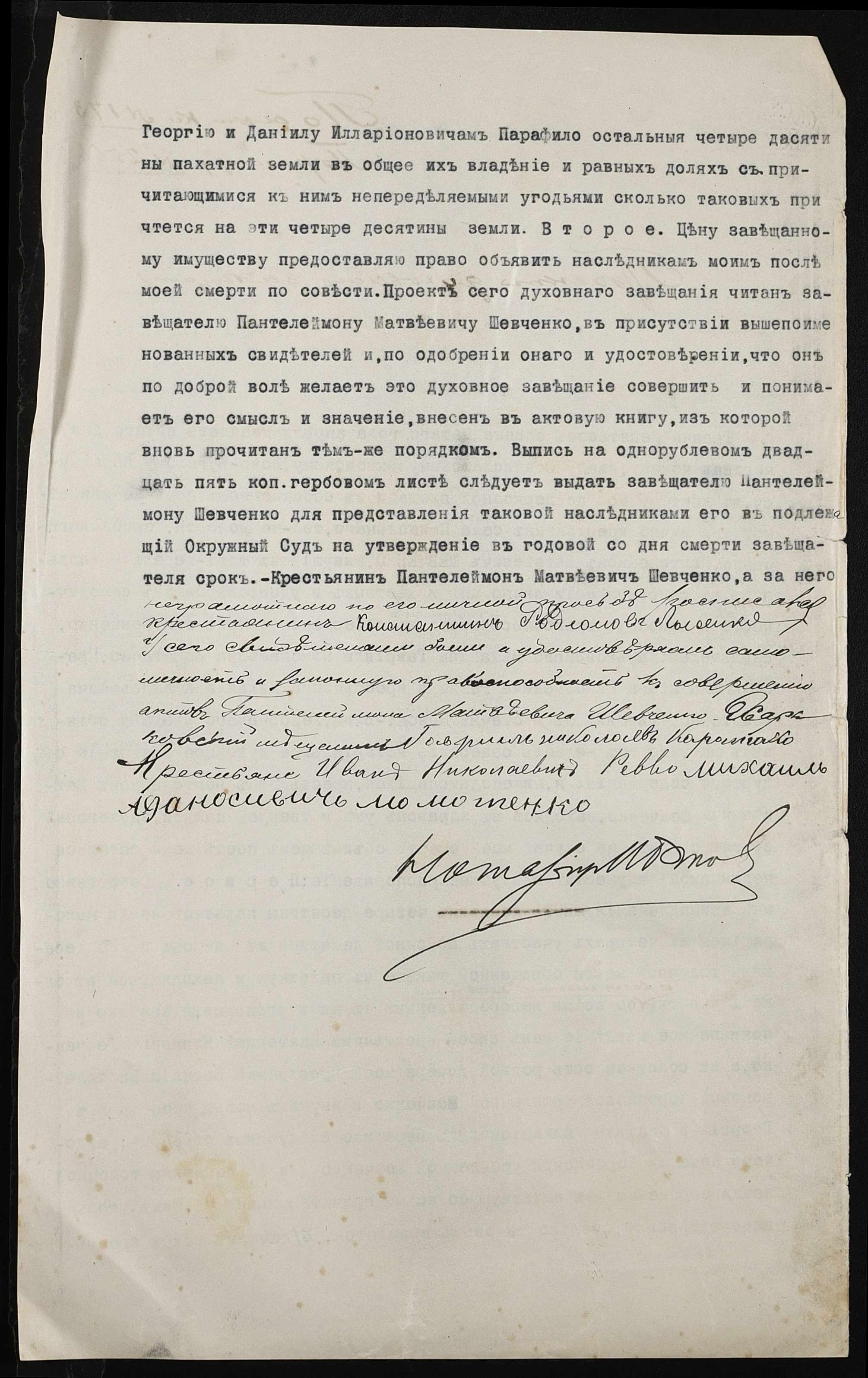 • • • • Справа № 264 “Проєкт духівниці Шевченка (Шевченко) Пантелеймона Матвійовича (Матвеевича)”