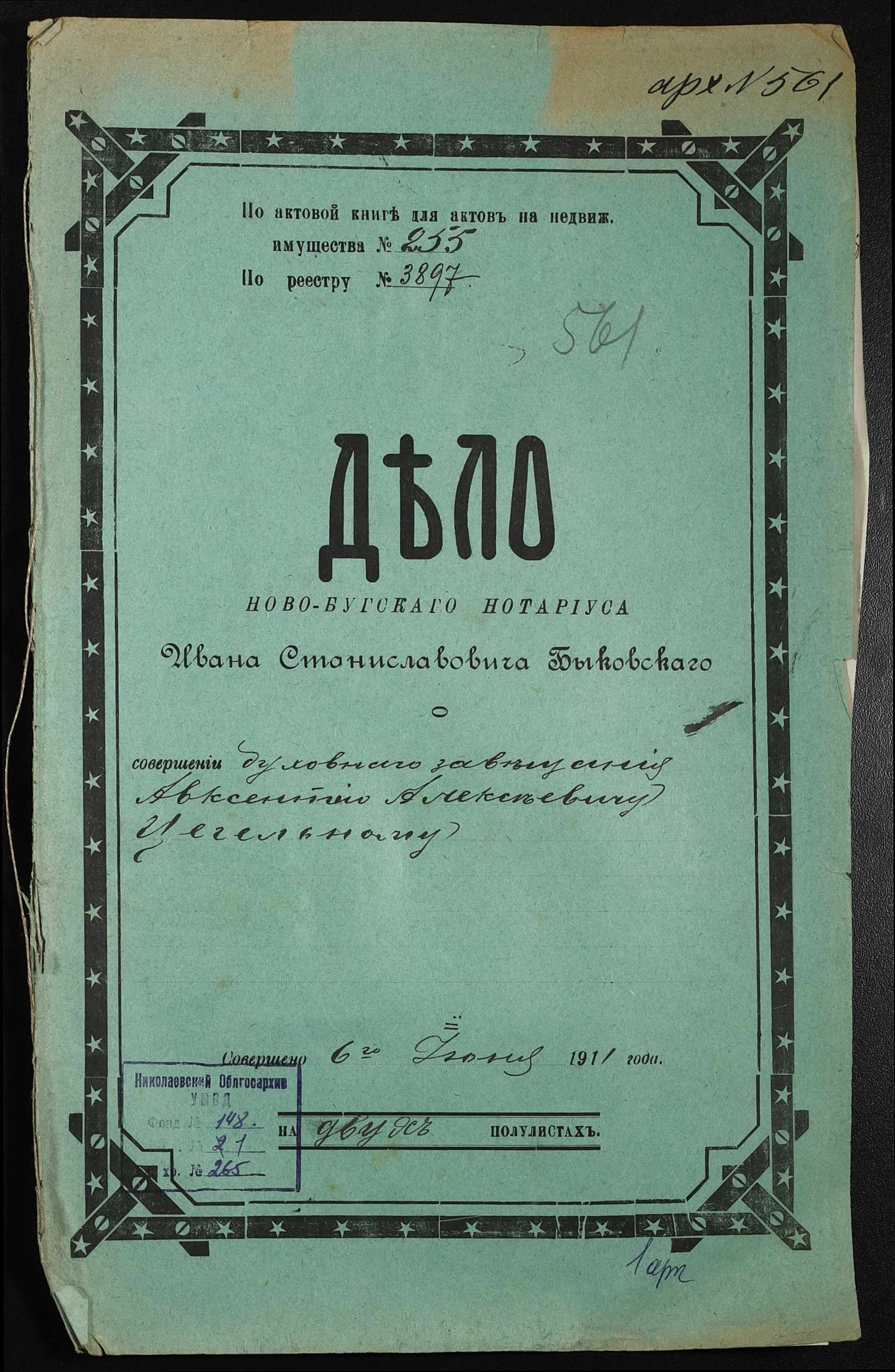 ◦ ◦ Фонд № 148 “Контора новобузького нотаріуса Биковського Івана Станіславовича”