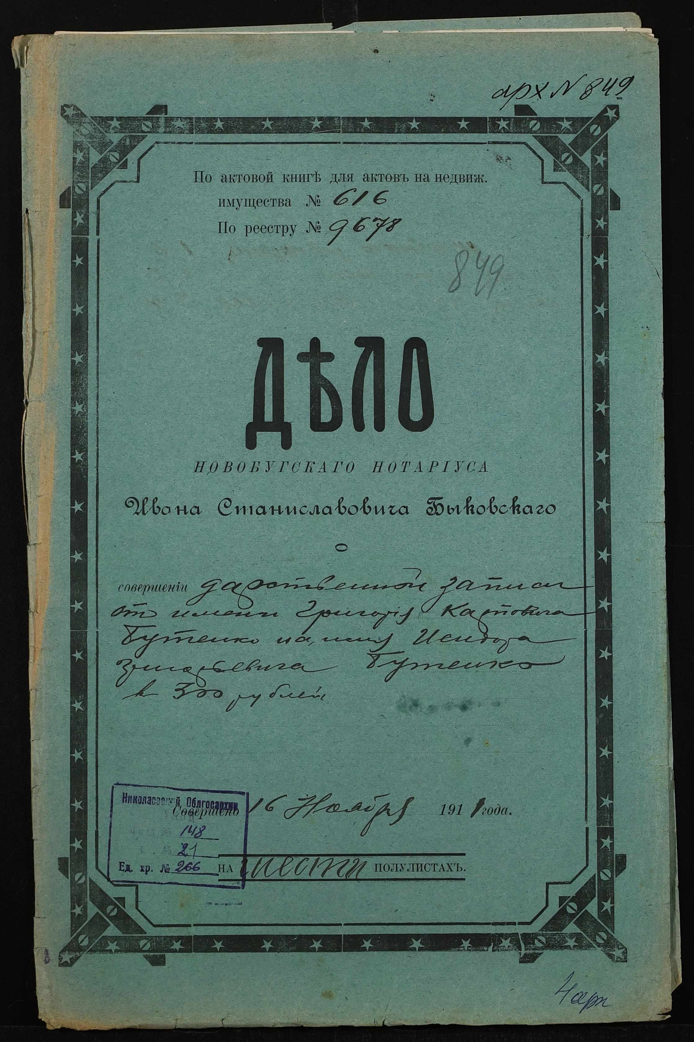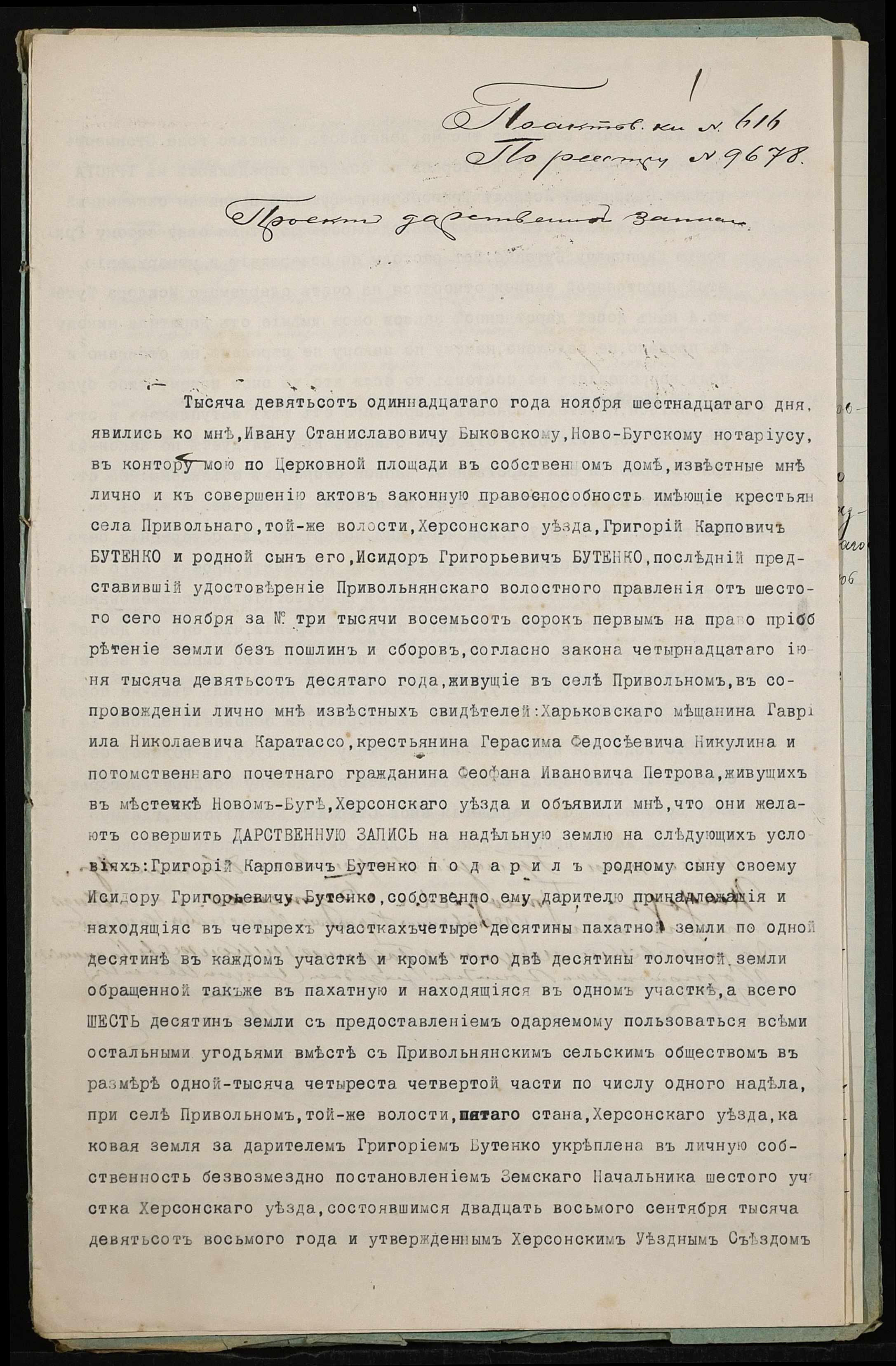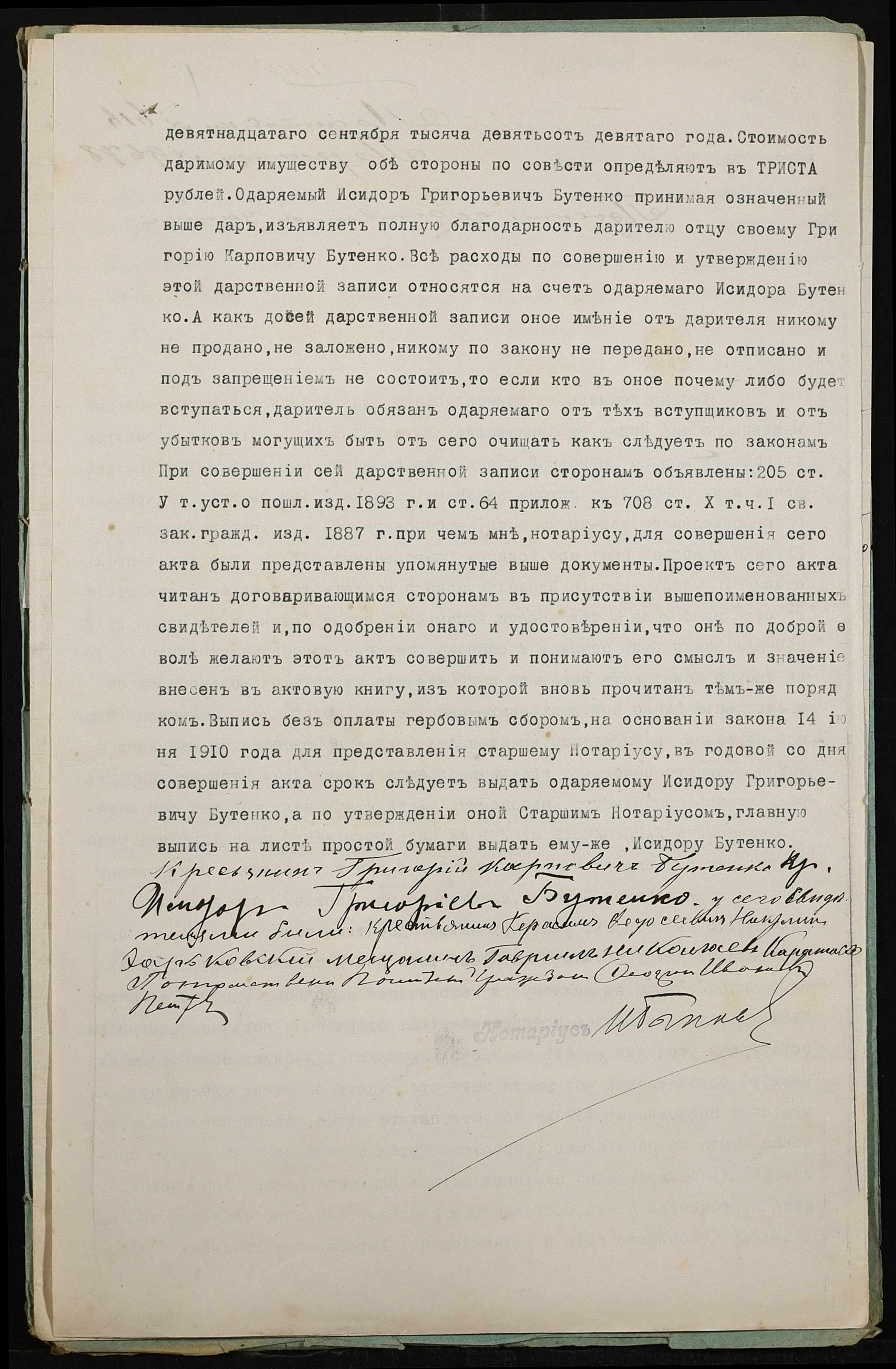 • • • • Справа № 266 “Справа про вчинення дарчої на землю, передану Бутенком Григорієм (Бутенко Григорием) Карповичем у власність Бутенка Ісидора Григоровича (Бутенко Исидора Григорьевича)”