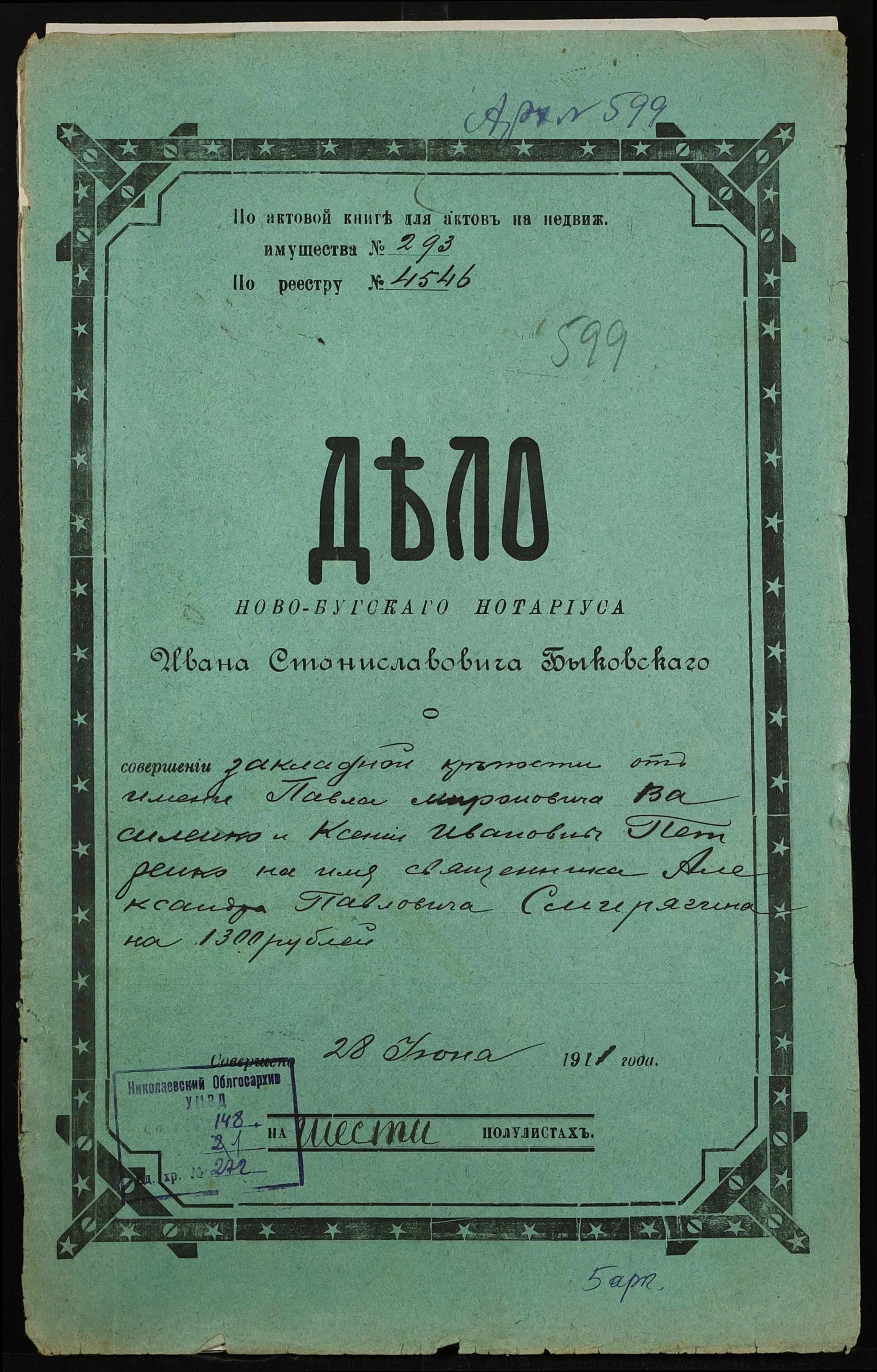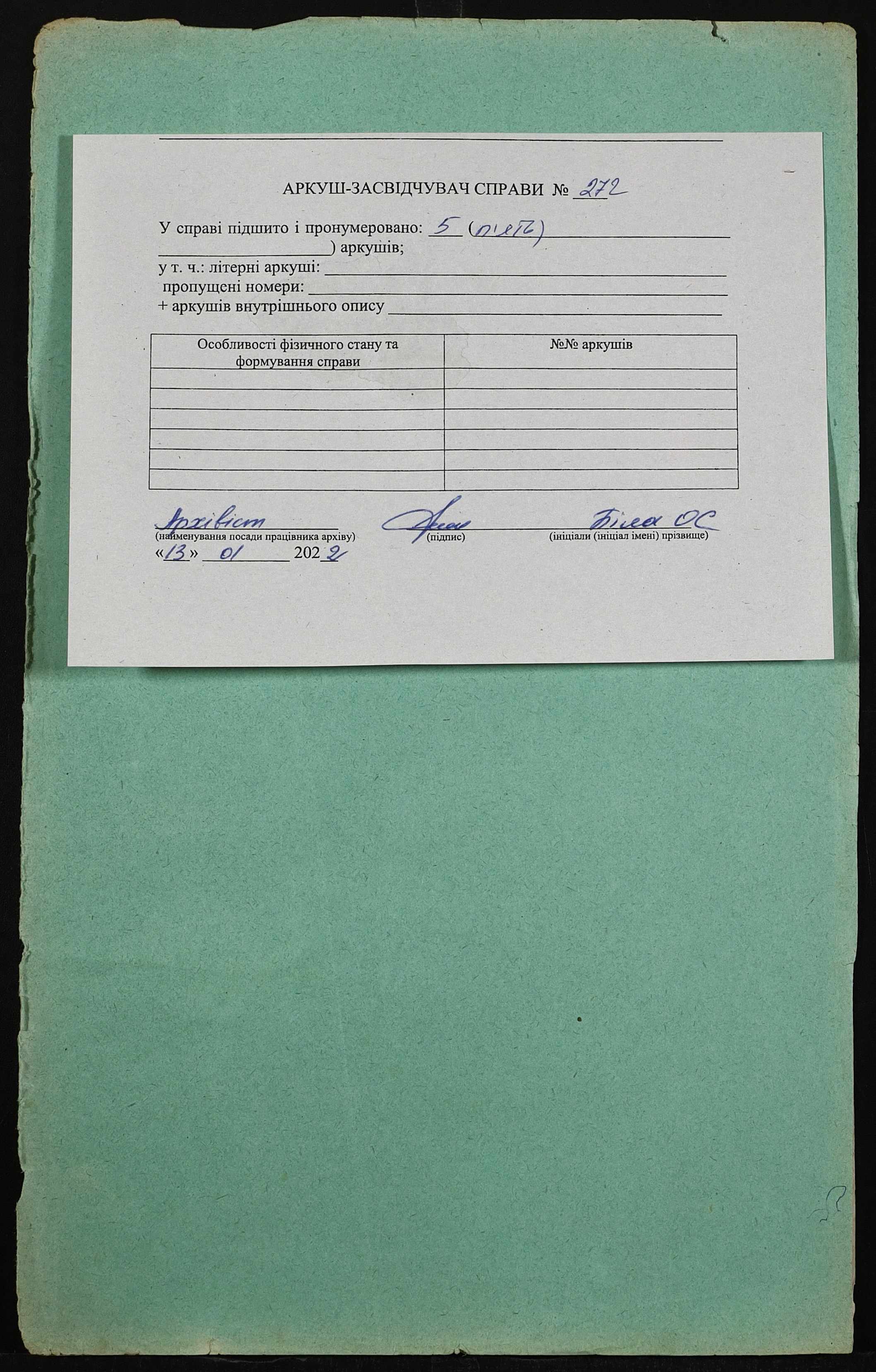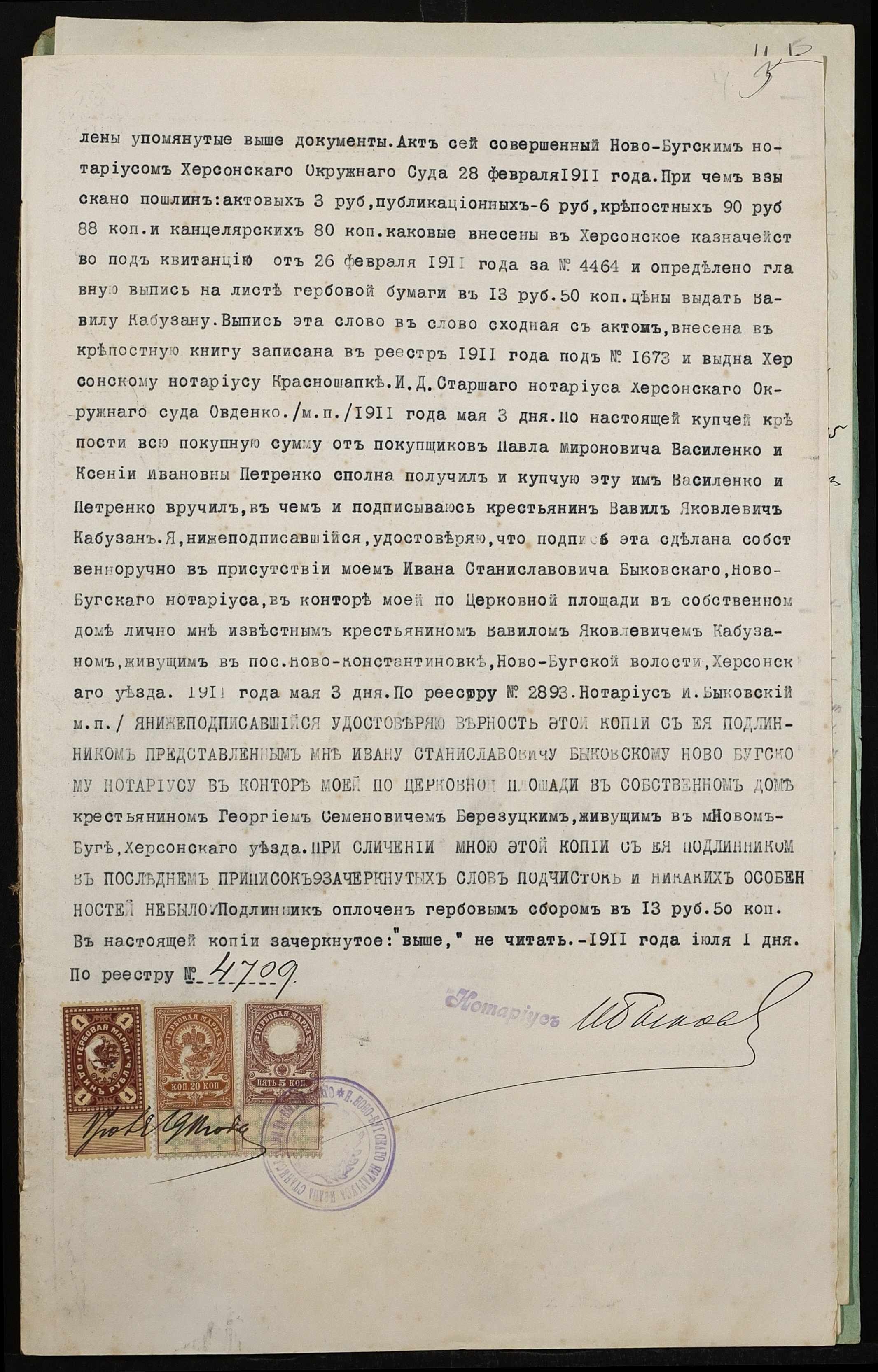 • • • • Справа № 272 “Справа про вчинення закладної на землю, заставлену селянами Василенком (Василенко) Павлом Мироновичем і Петренко Ксенією Іванівною (Ксенией Ивановной) священнику Смирягіну Олександру (Смирягину Александру) Павловичу”